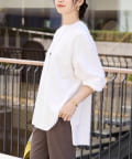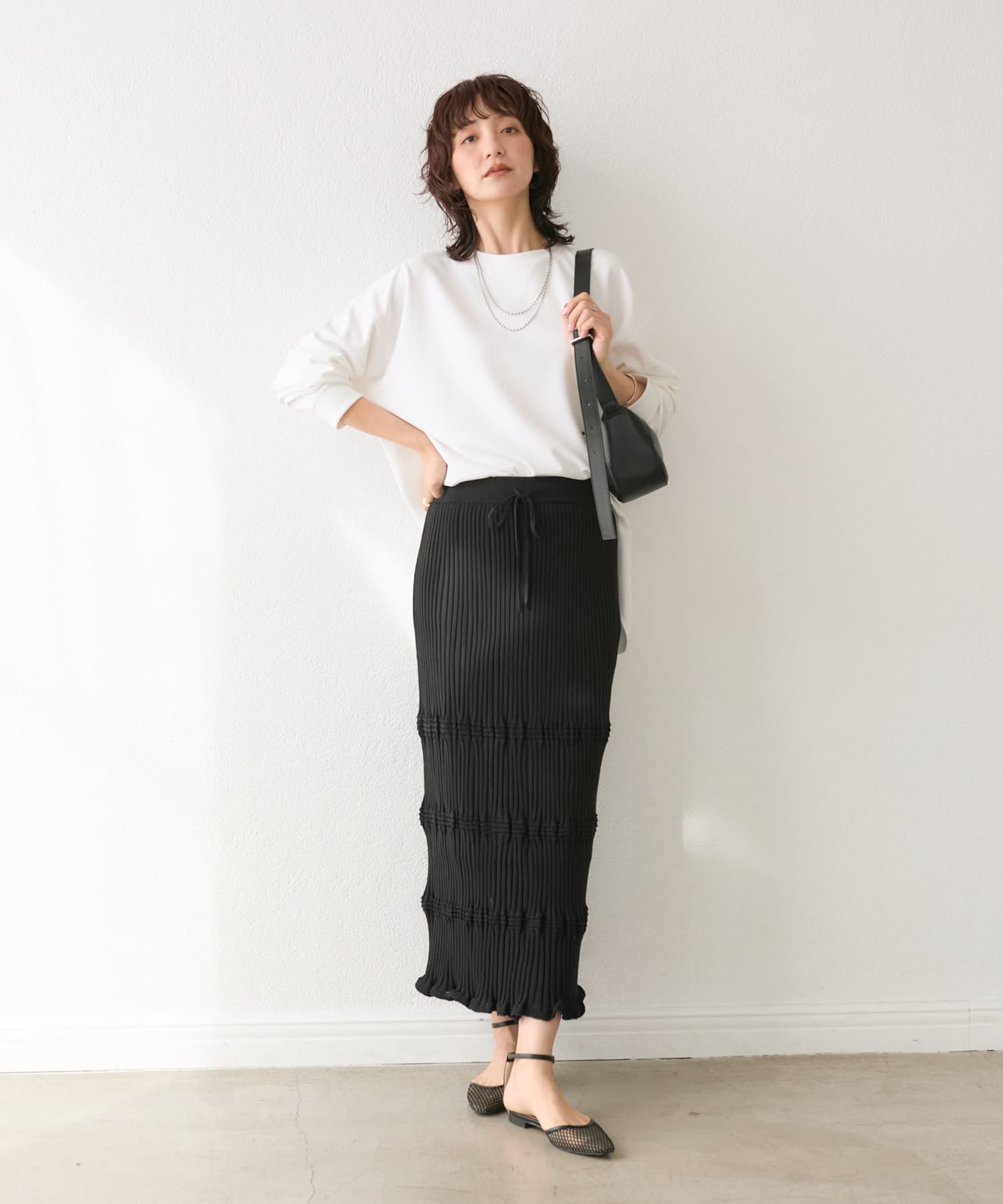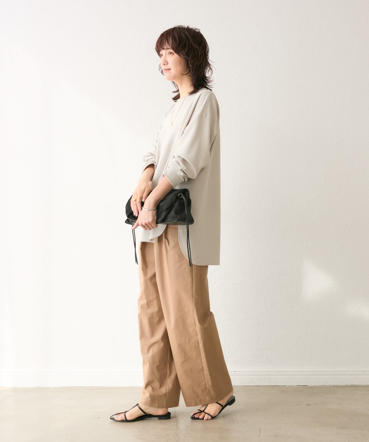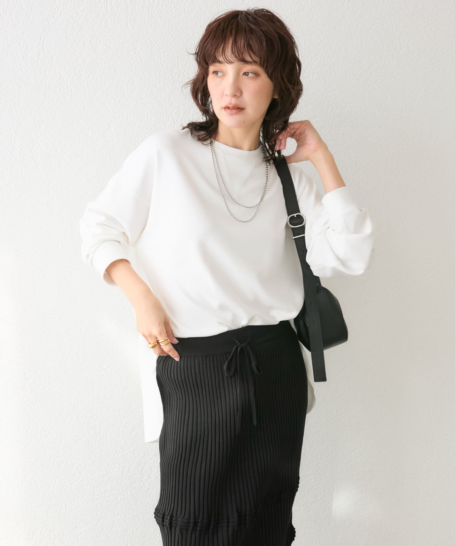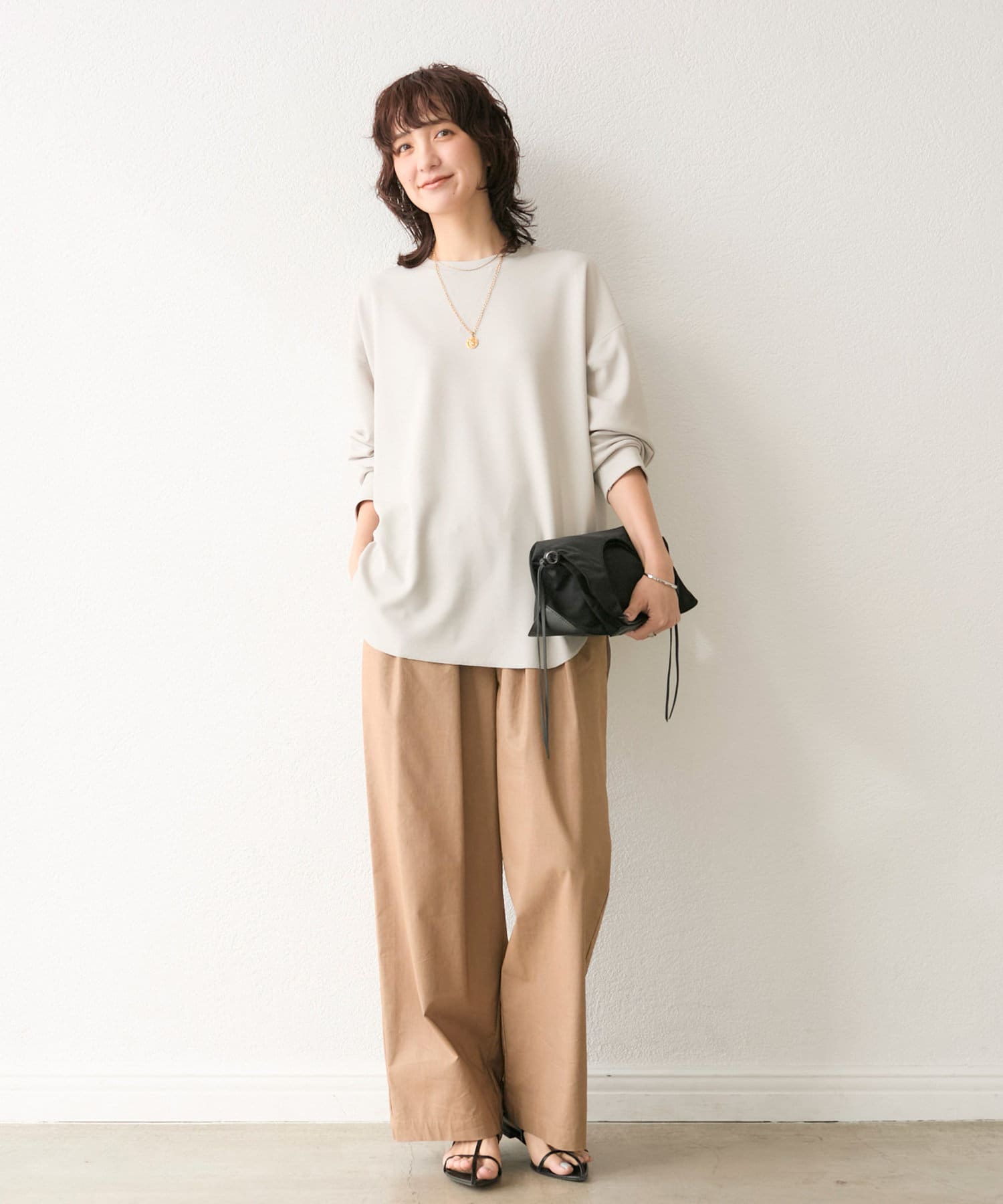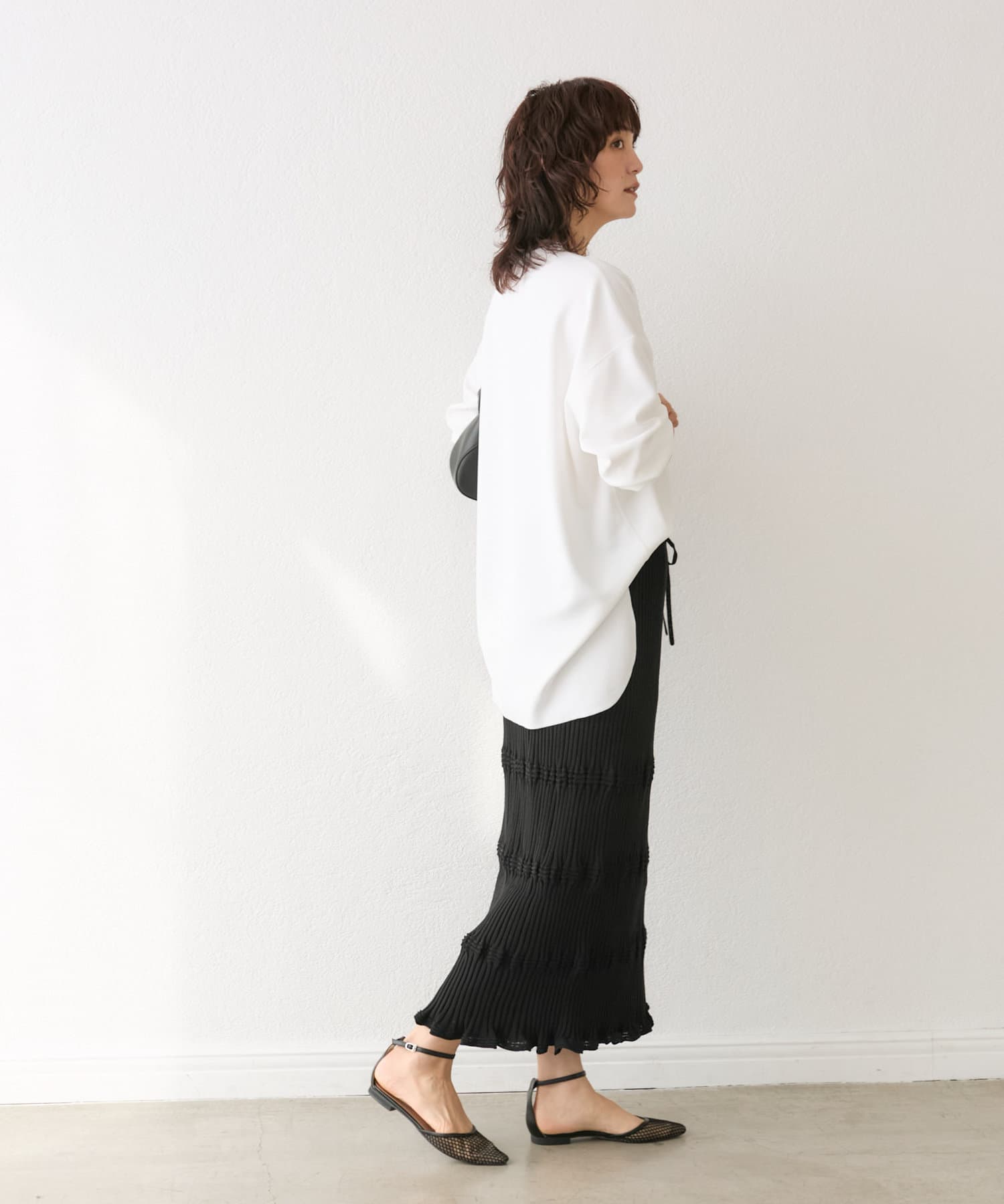 ジャージー素材でありながら、ブラウス見えする上品な質感が特徴。