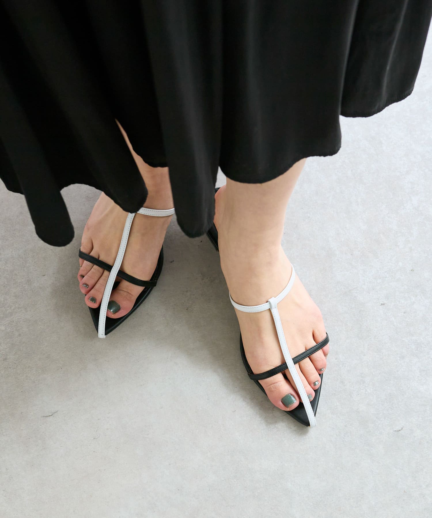 甲部分は細幅のストラップがT字に交差するデザインで、足元を繊細で華奢な印象に見せてくれます。