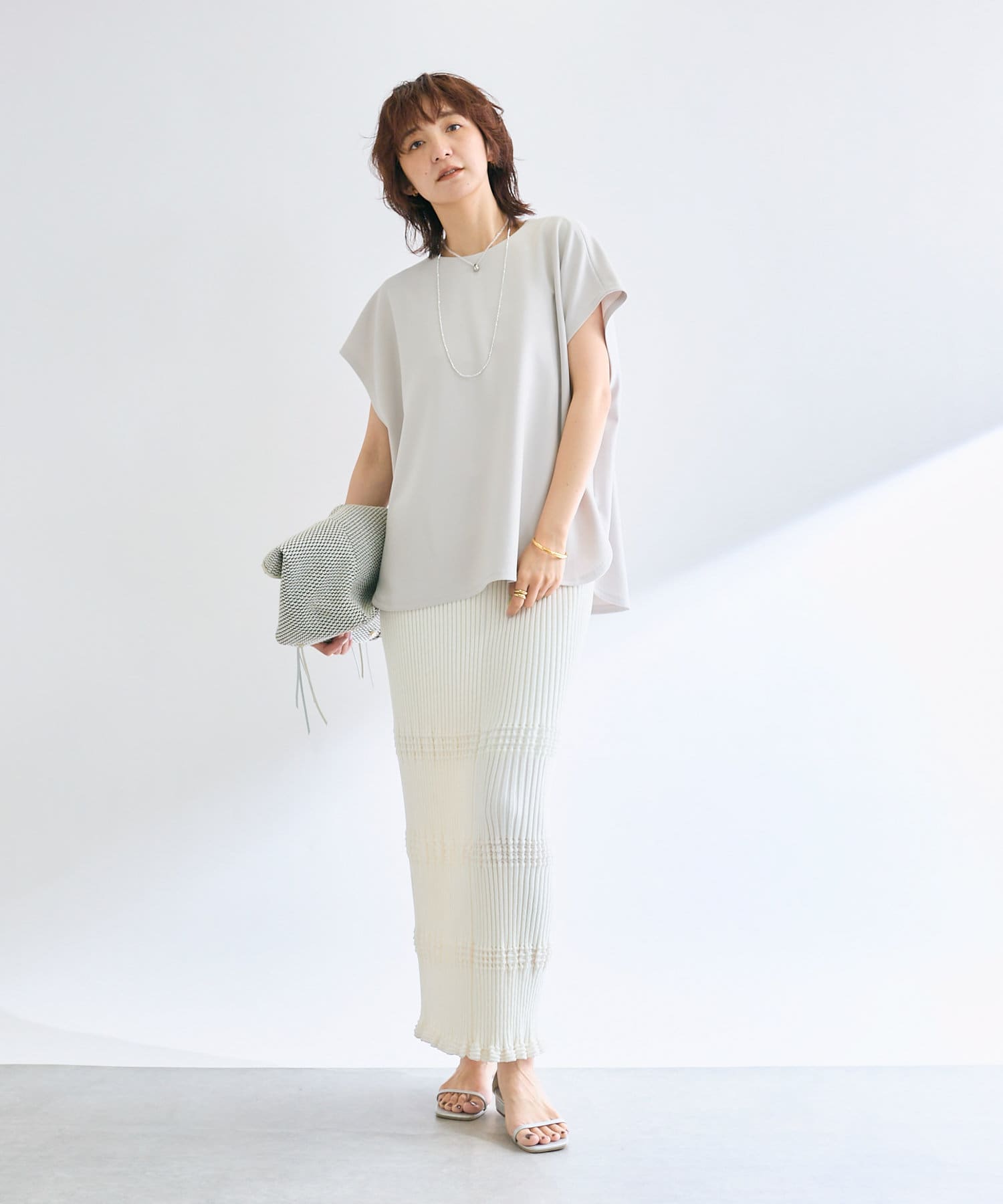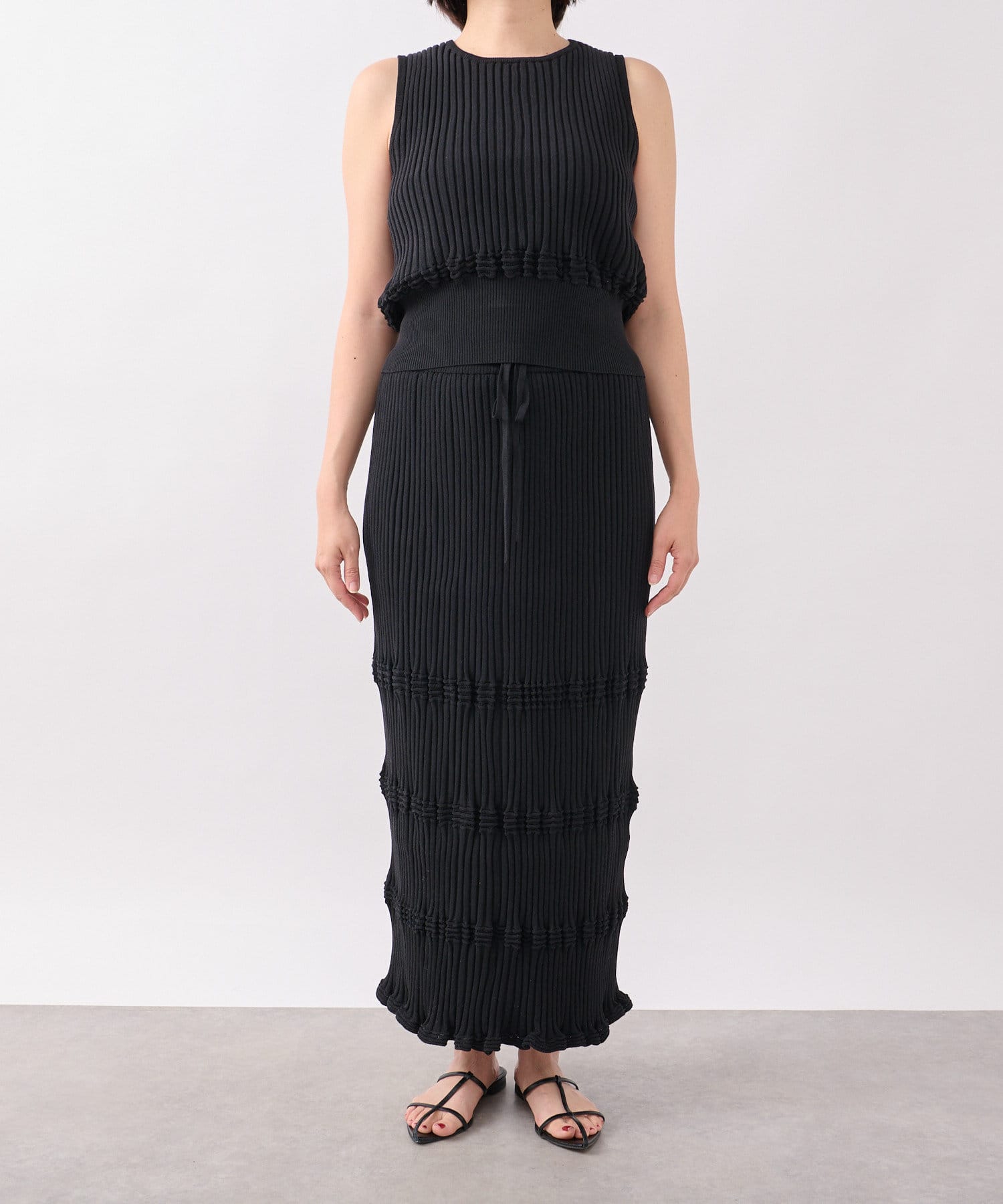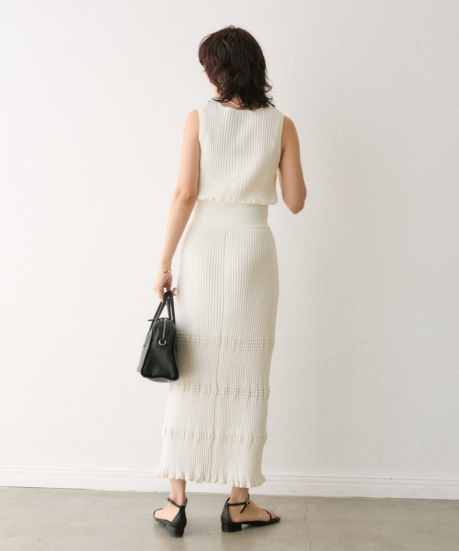 同素材でお作りしているウェービーリブニット(RDZ1051305A0007)とのセットアップも一推し◎