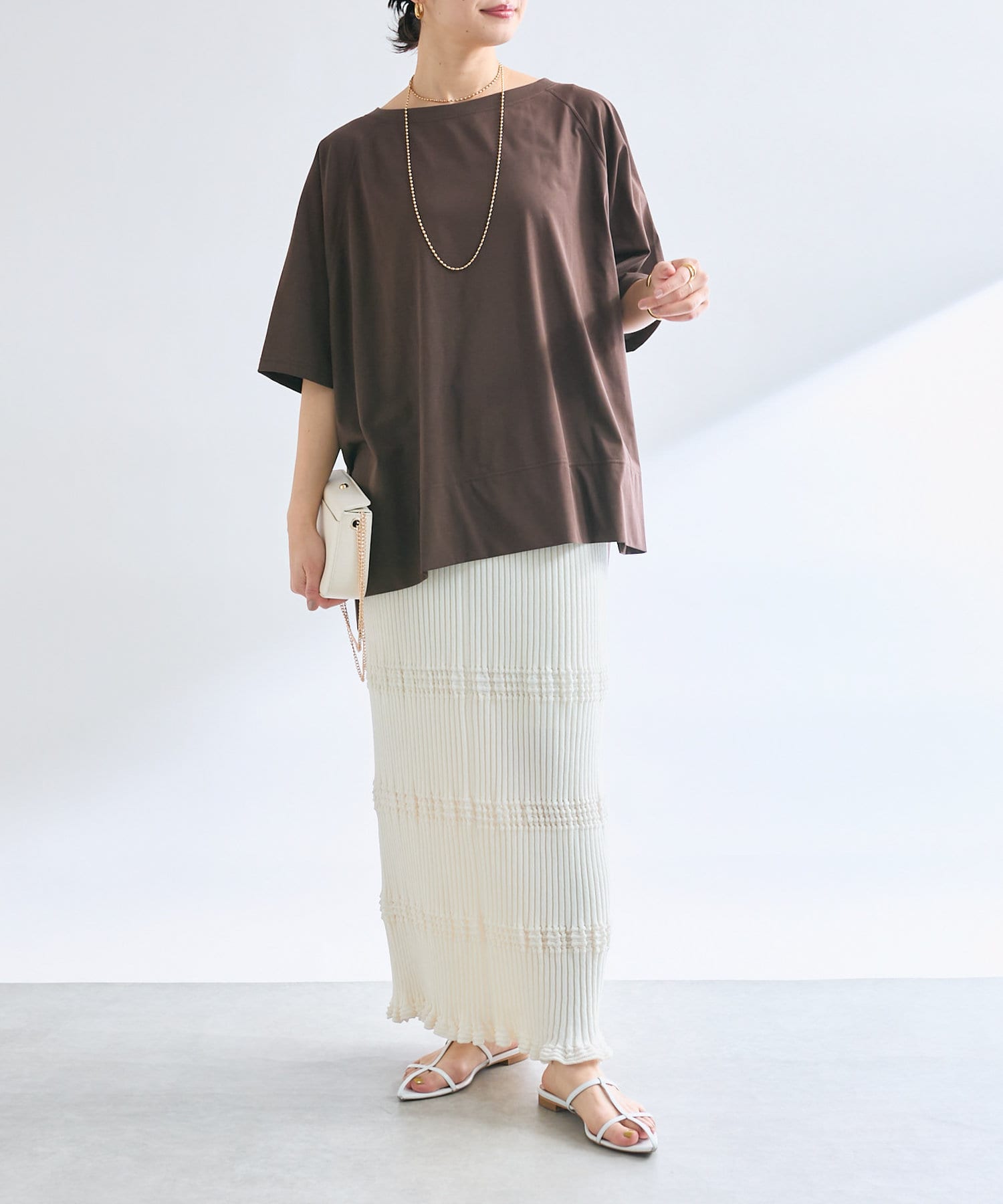 オーバーサイズのカットソーや、リネンシャツ、テーラードジャケットなどシンプルなアイテムを