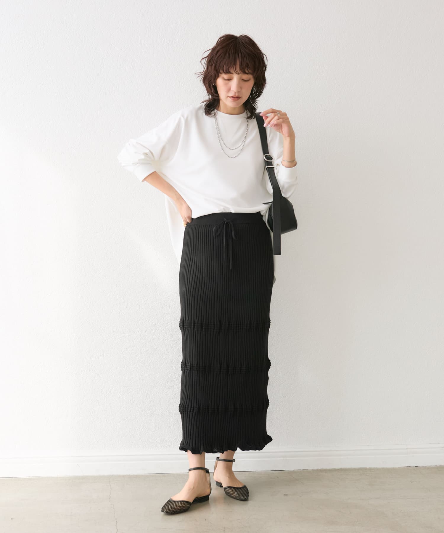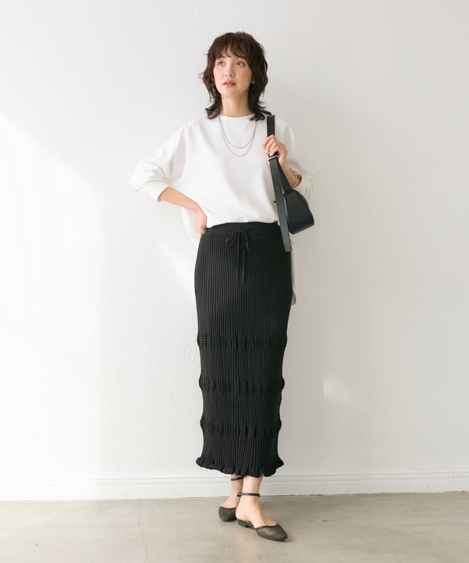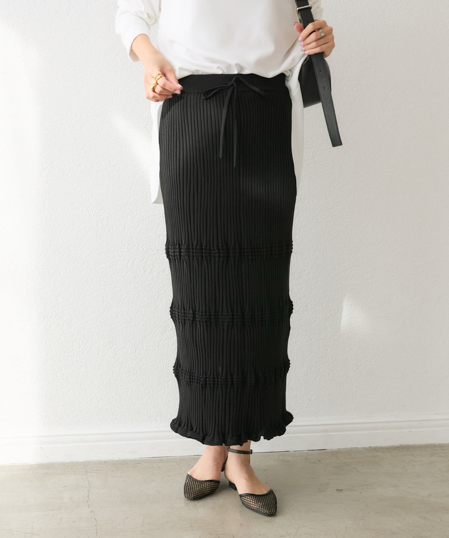 ニットの表情がアクセントになる、美シルエットニットスカート