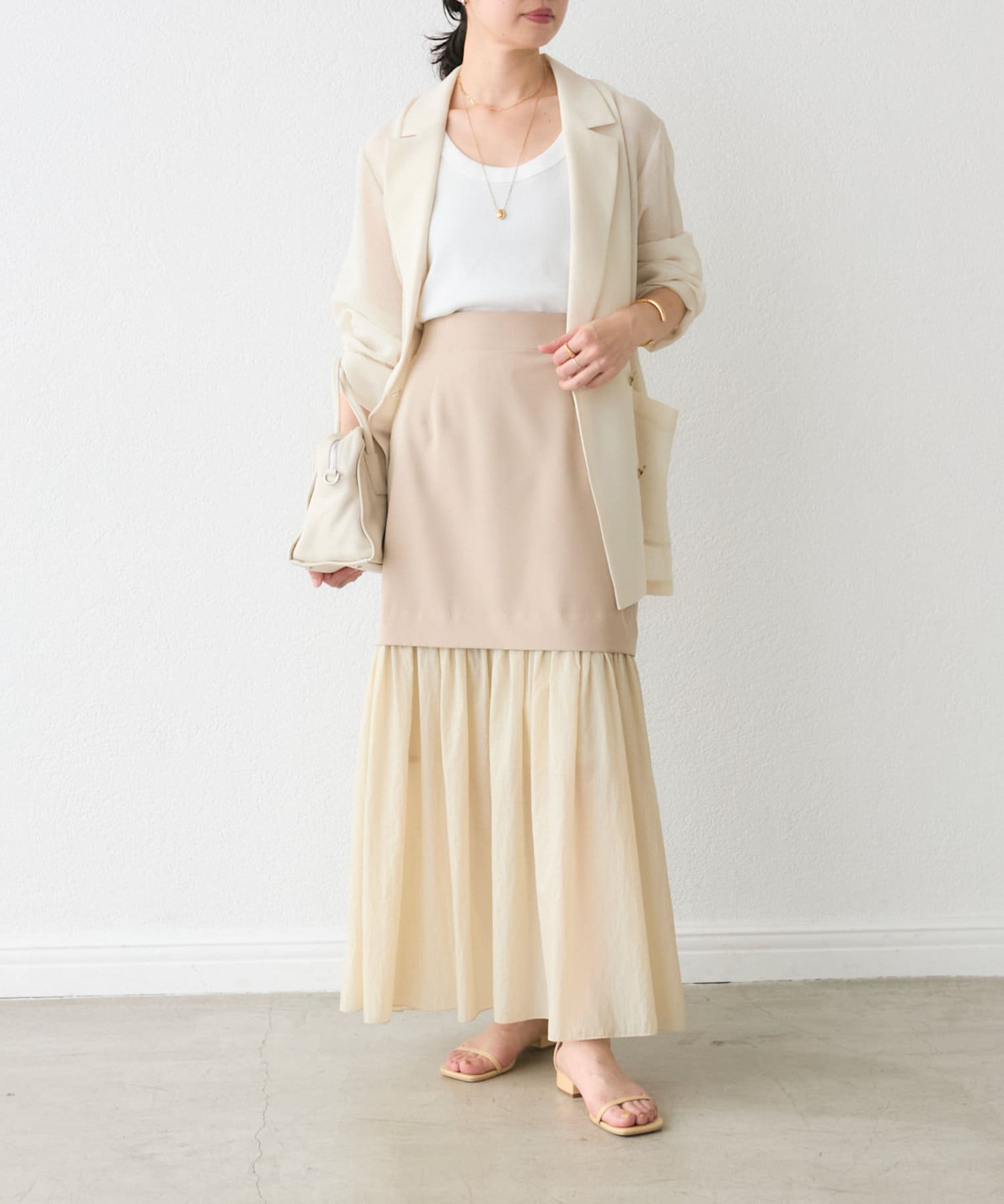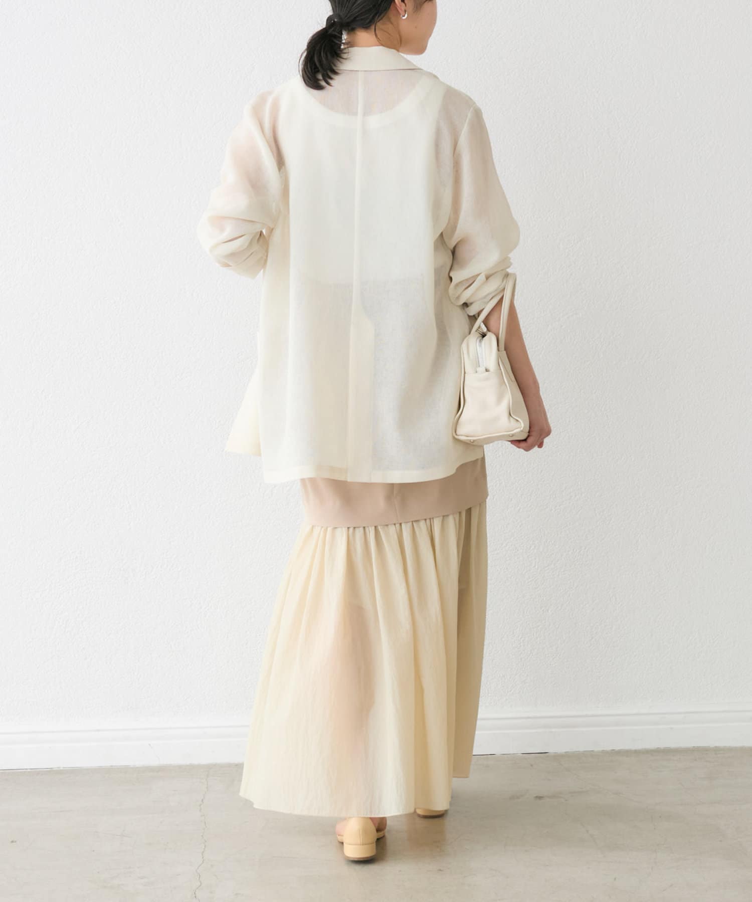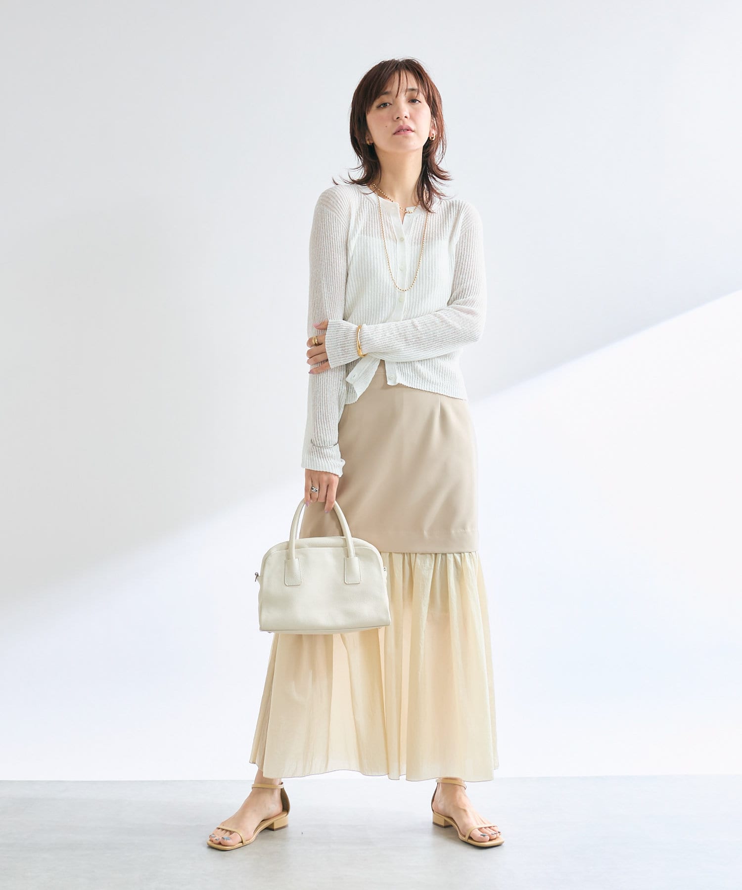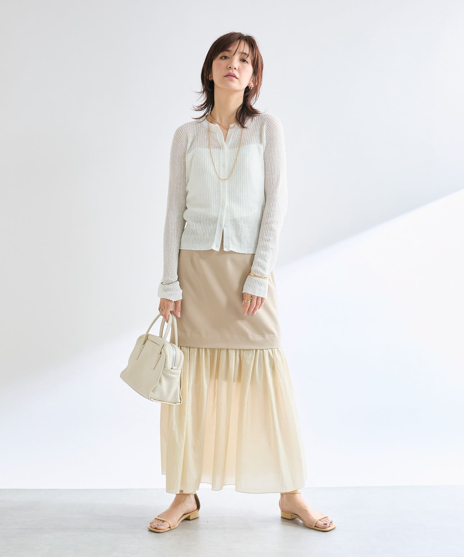 大人の女性が着やすい透けすぎないシアー感が魅力ですが、膝下のシアー感も楽しんで着こなしたい!という方の為に、