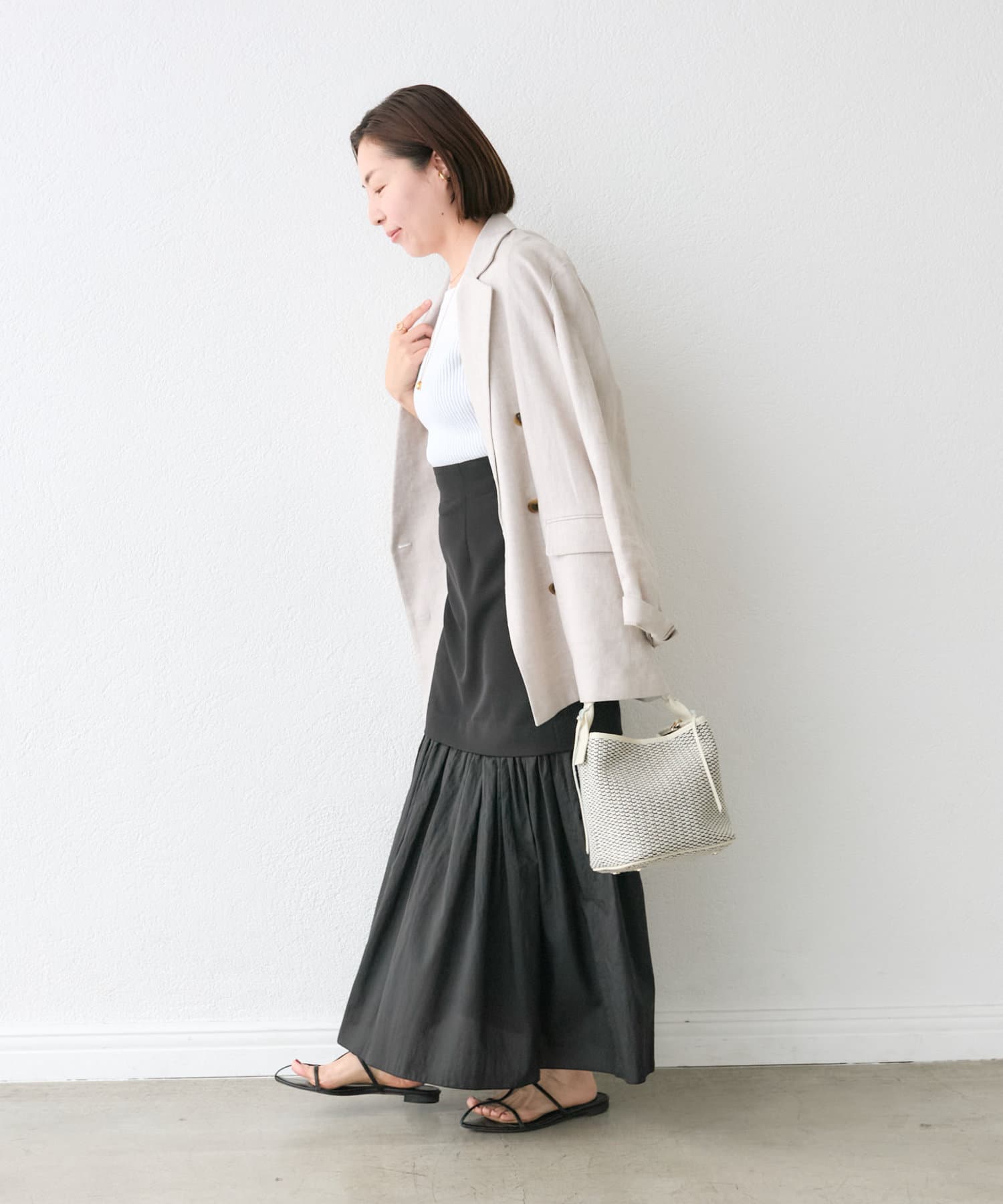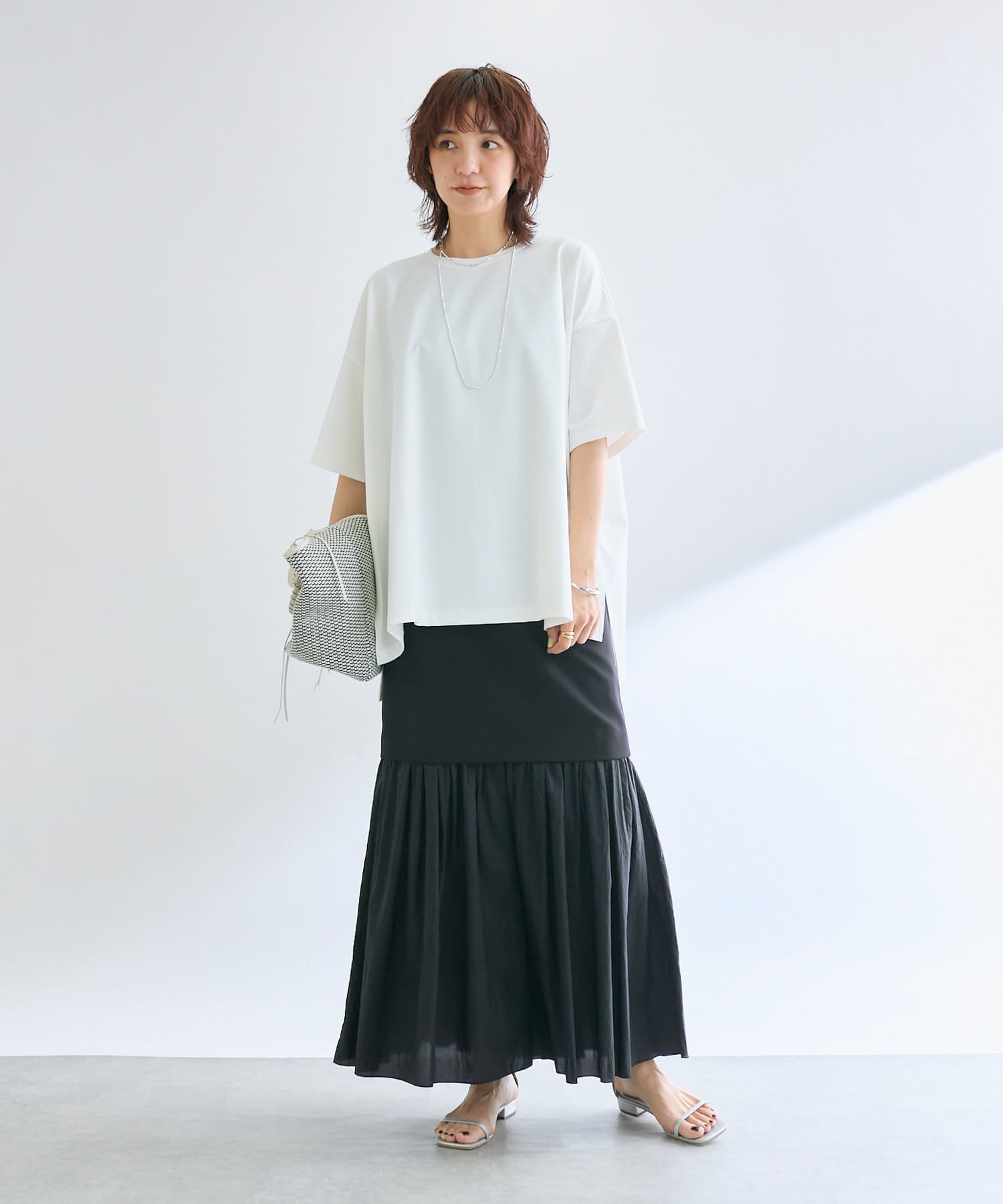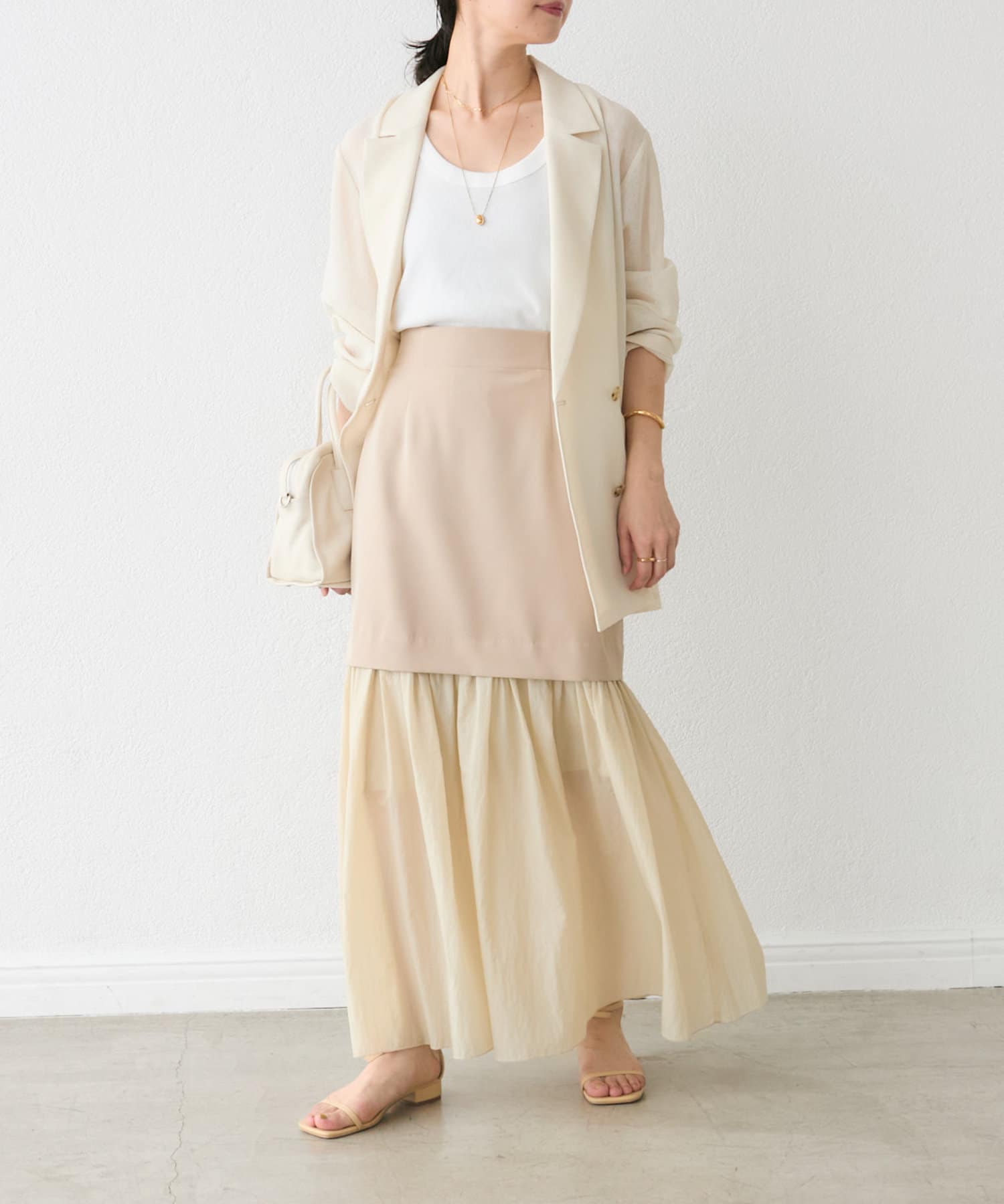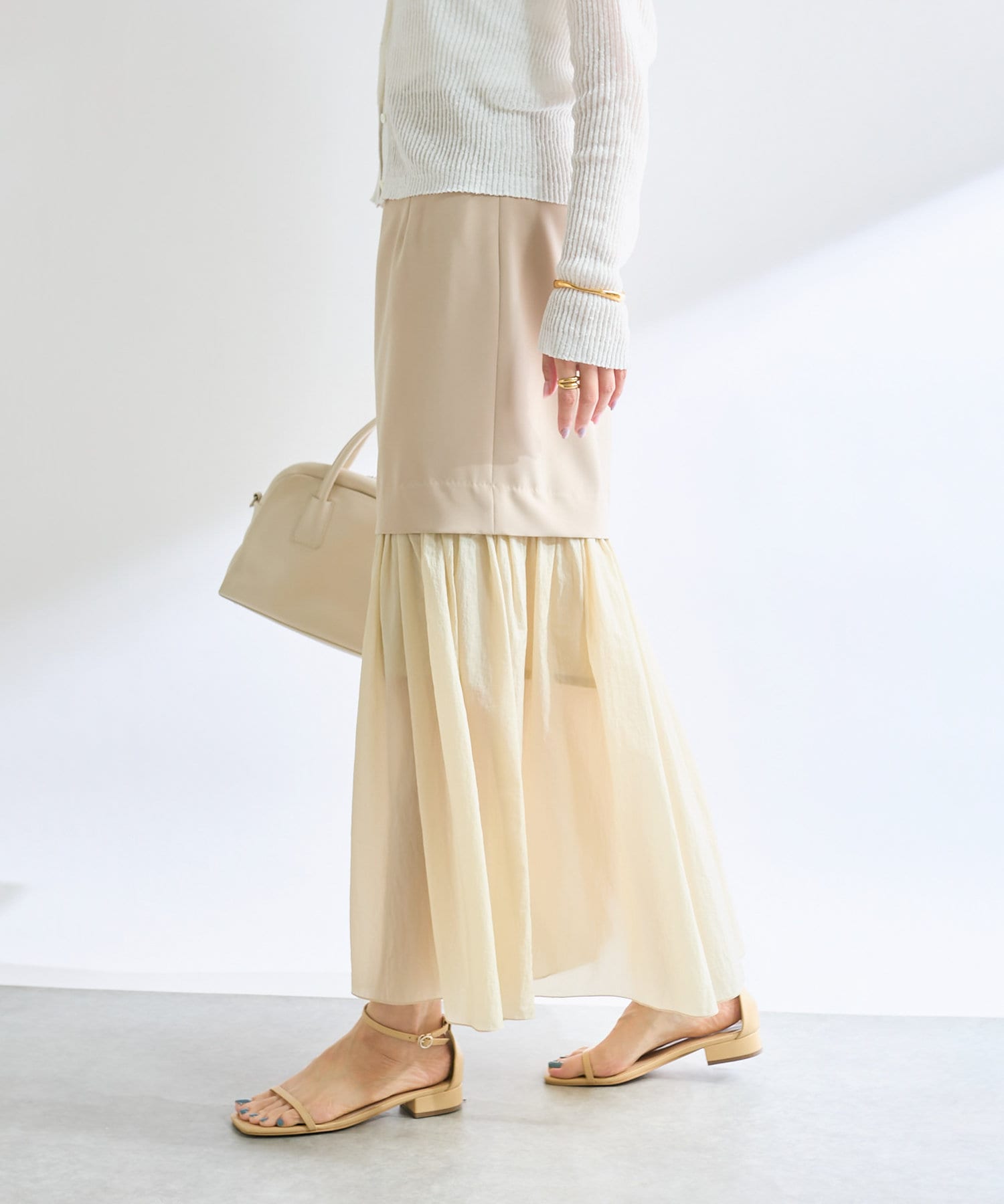 大人の女性が着やすい透けすぎないシアー感が魅力ですが、膝下のシアー感も楽しんで着こなしたい!という方の為に、