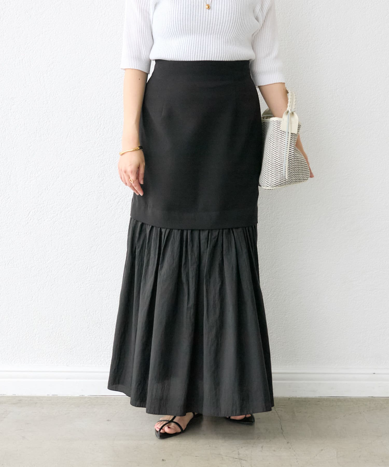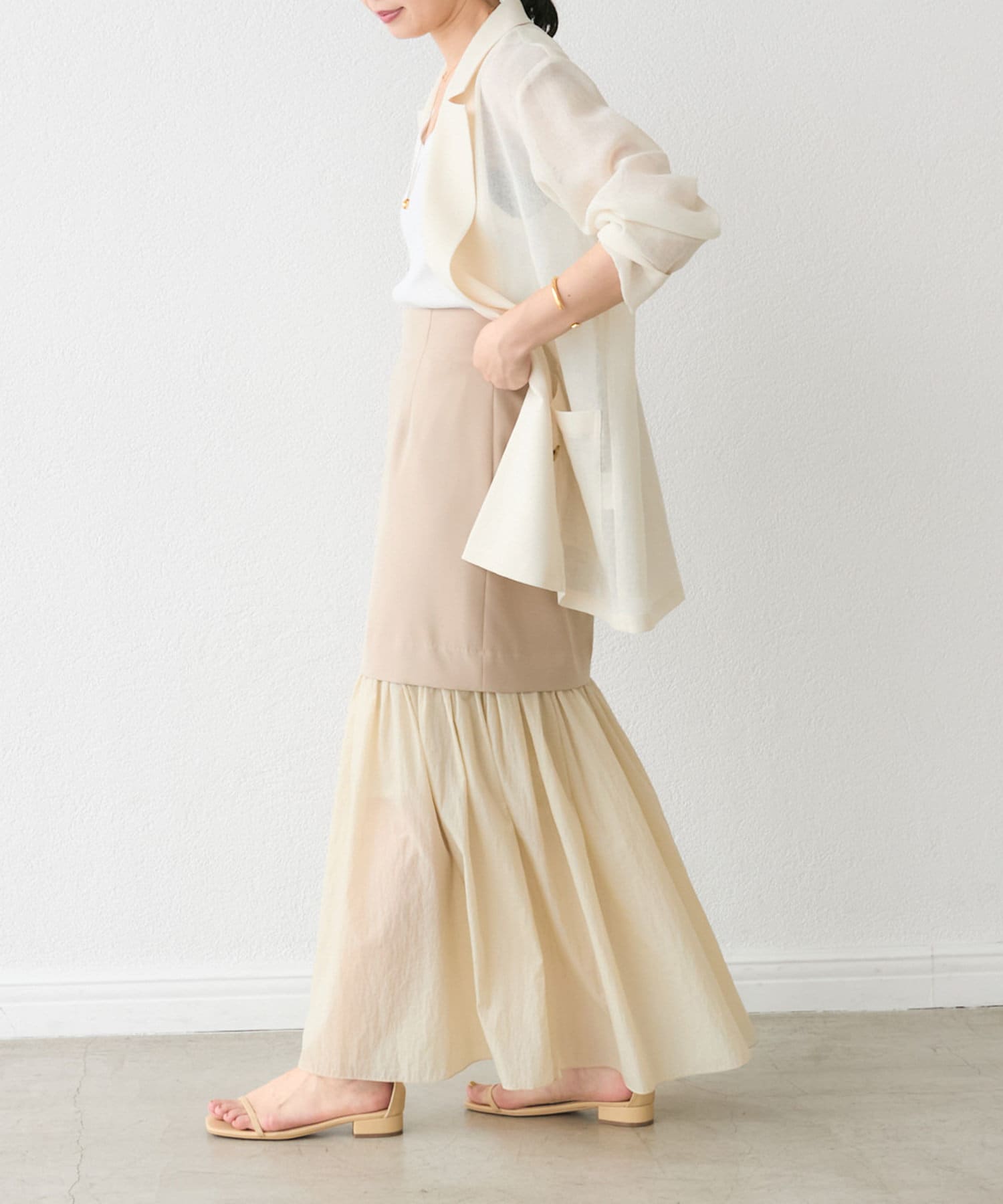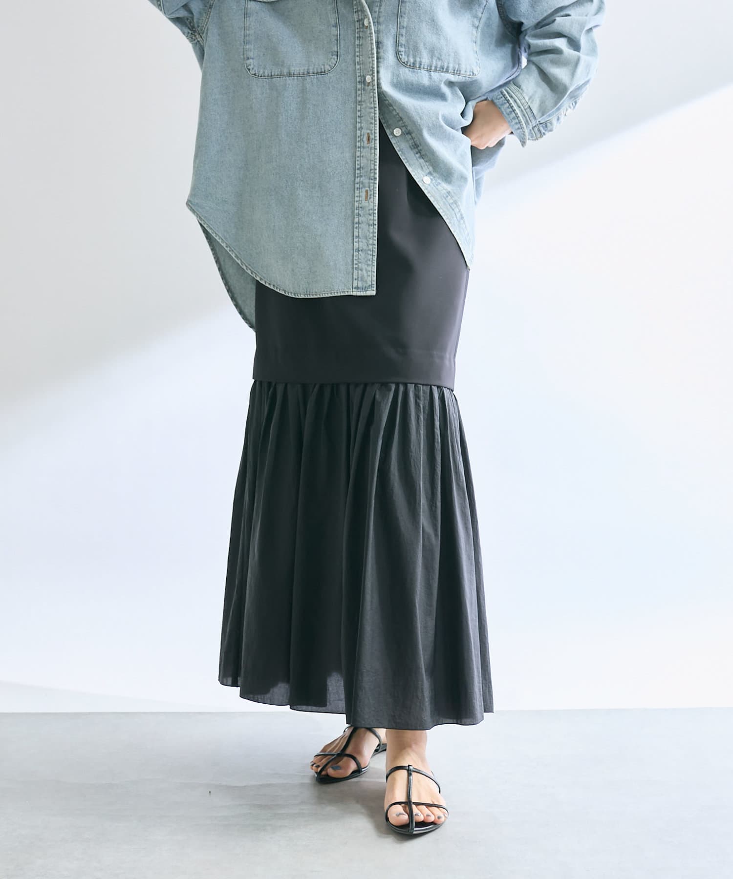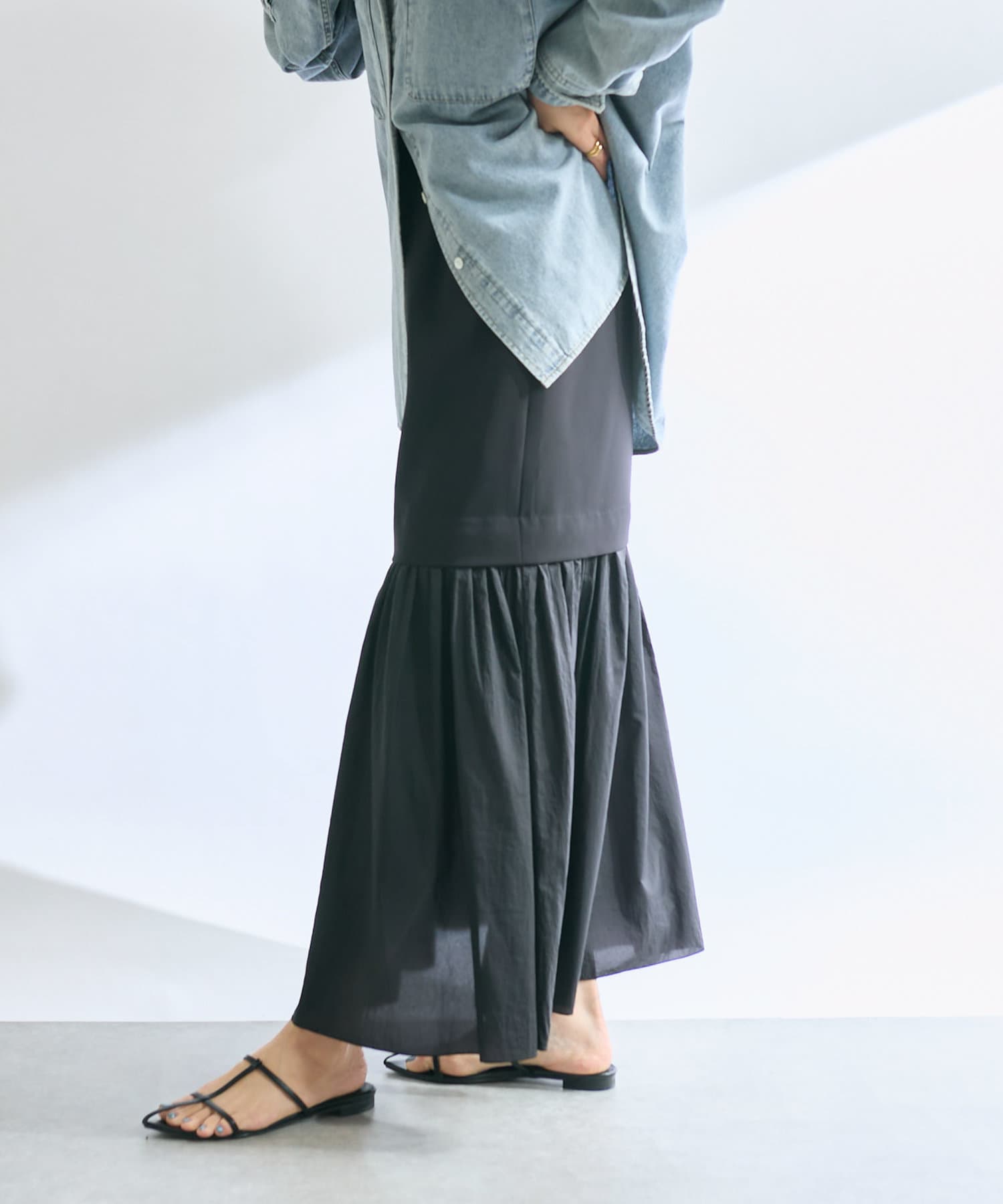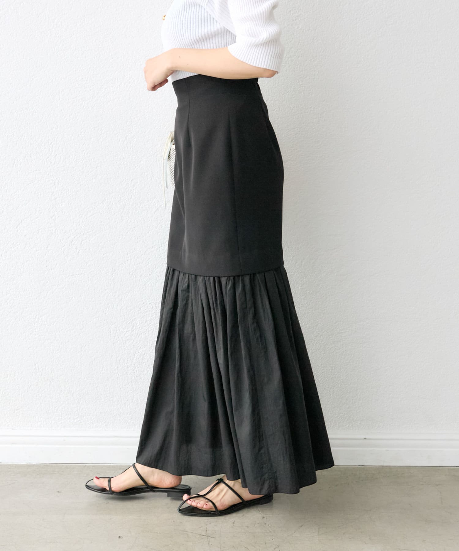 【RIVE DROITE】シアー切替ギャザーマーメイドスカート