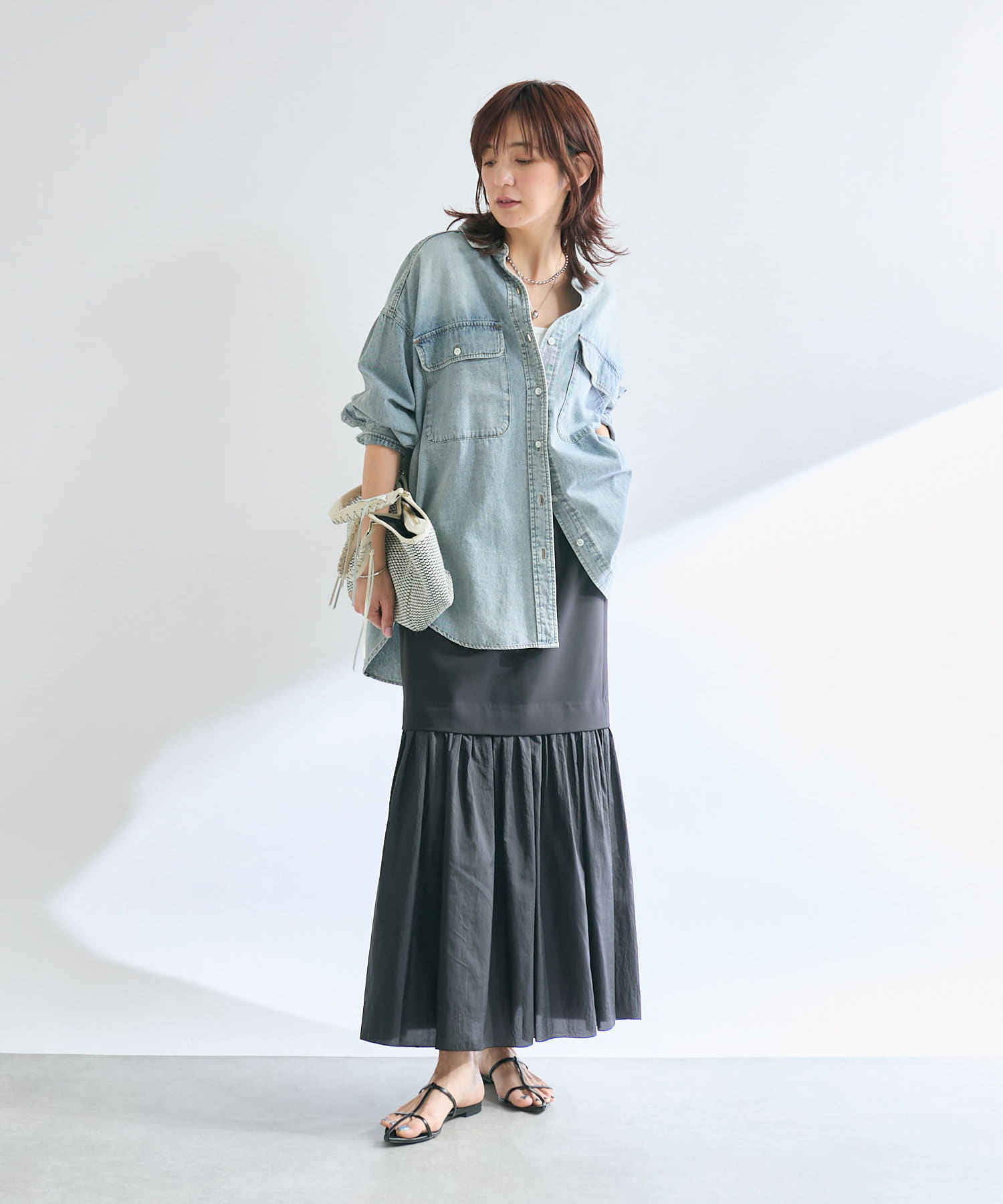 Tシャツやシアーニット、シャツなど、これからのシーズンに着たい幅広いトップスと合うので、