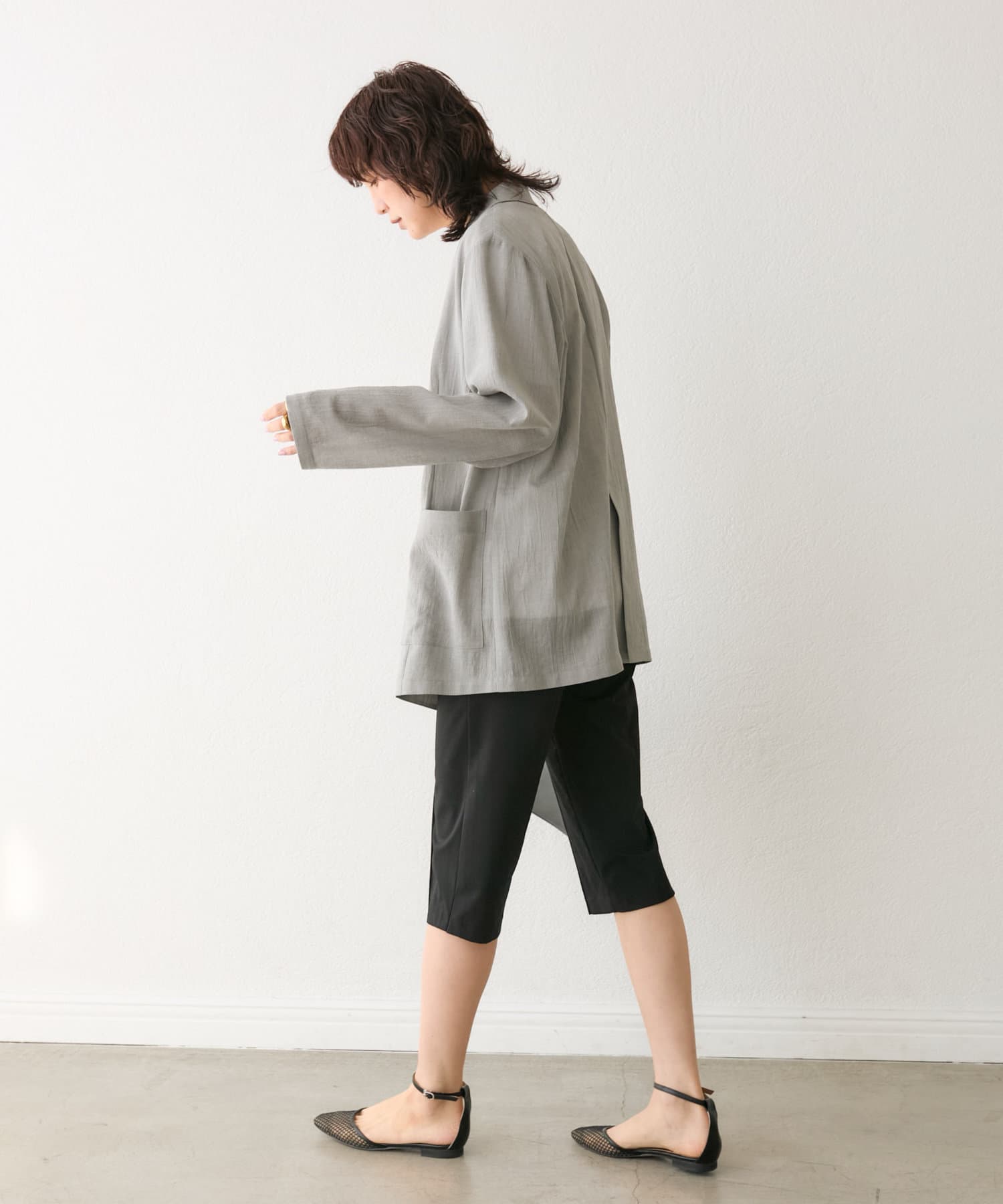長めのシャツやニットと合わせて、足元は抜け感のある華奢なサンダルを合わせていただくとこなれた印象へ。