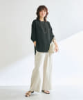 リネン100%のナチュラルな風合いが魅力のワイドパンツ。