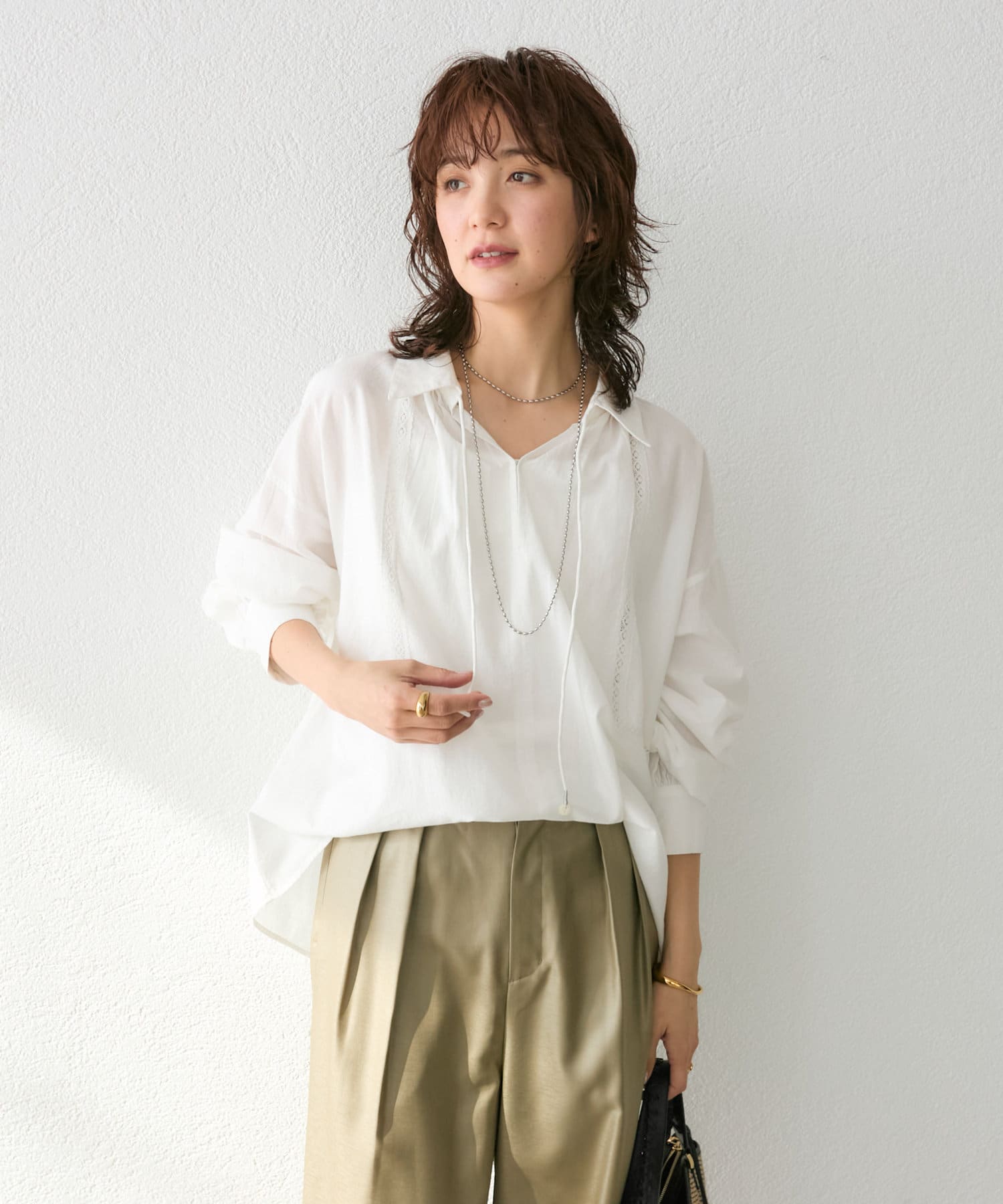【大人のこなれ感】レーストリムスキッパーシャツ