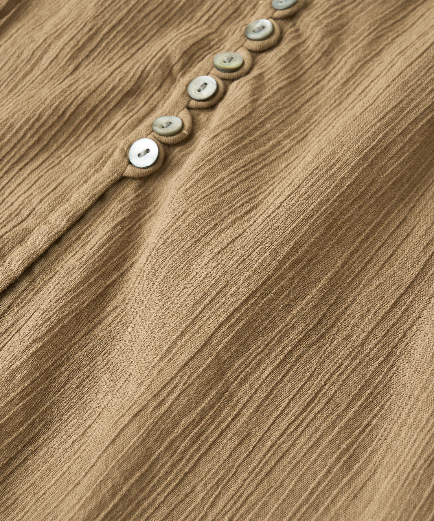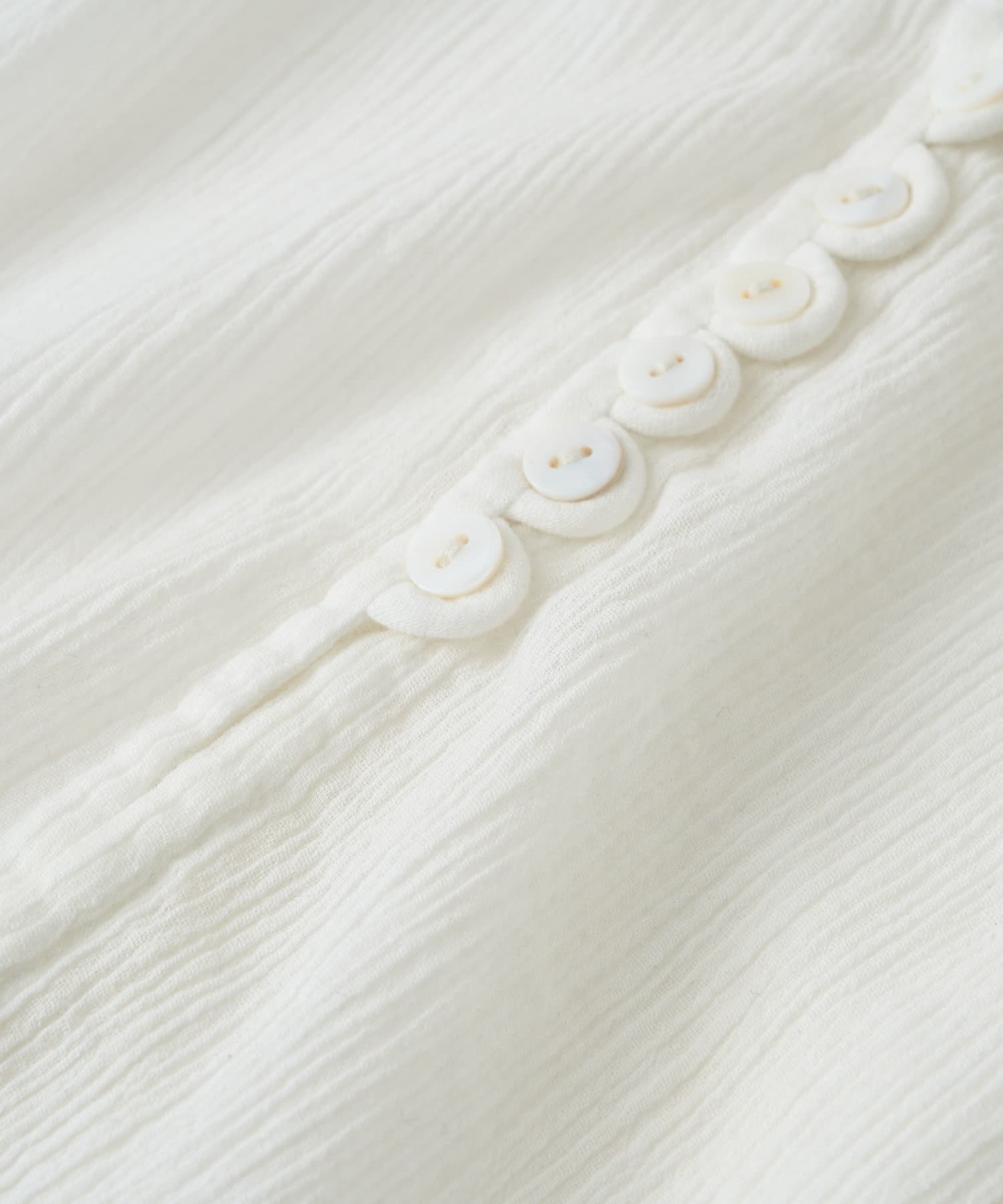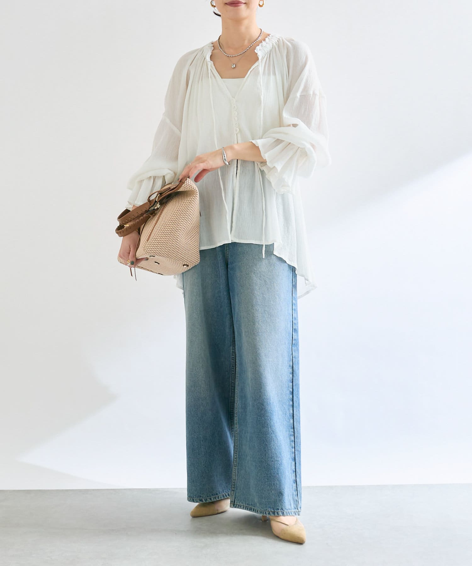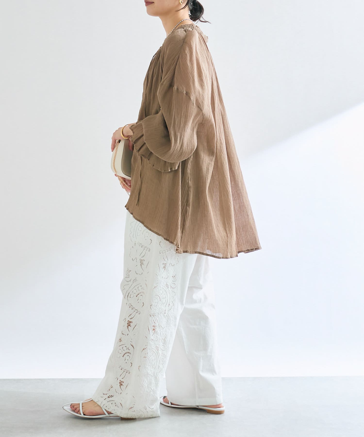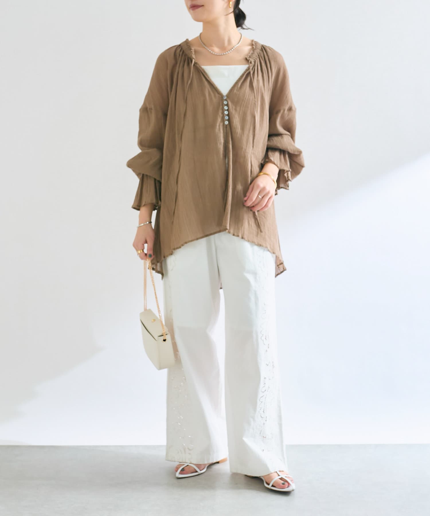 清涼感のあるコットン楊柳素材を使用したギャザーブラウス。