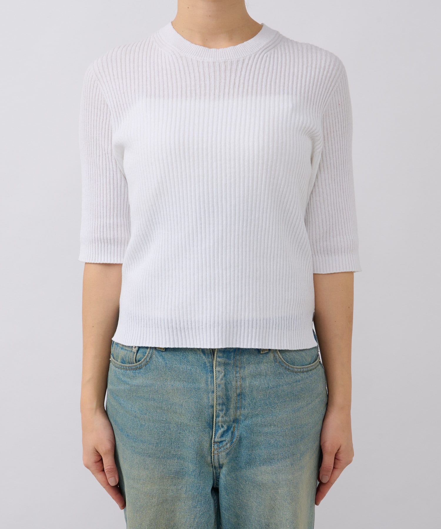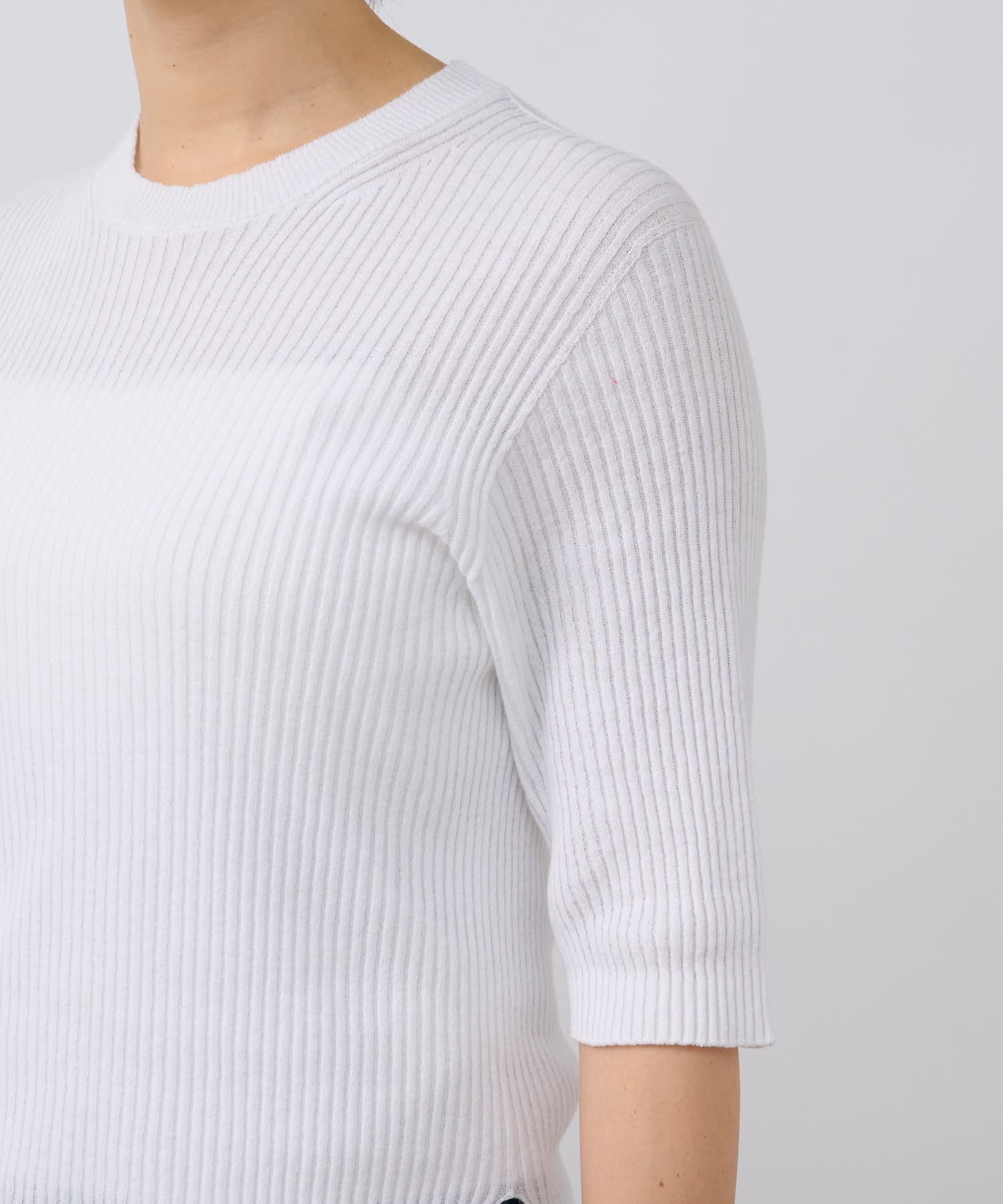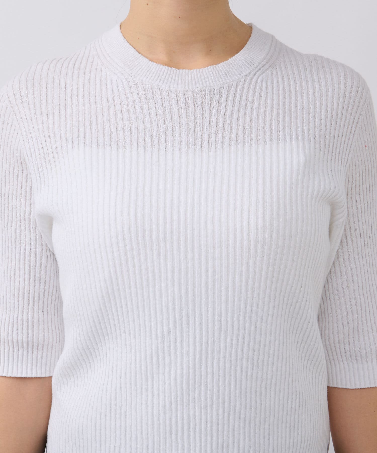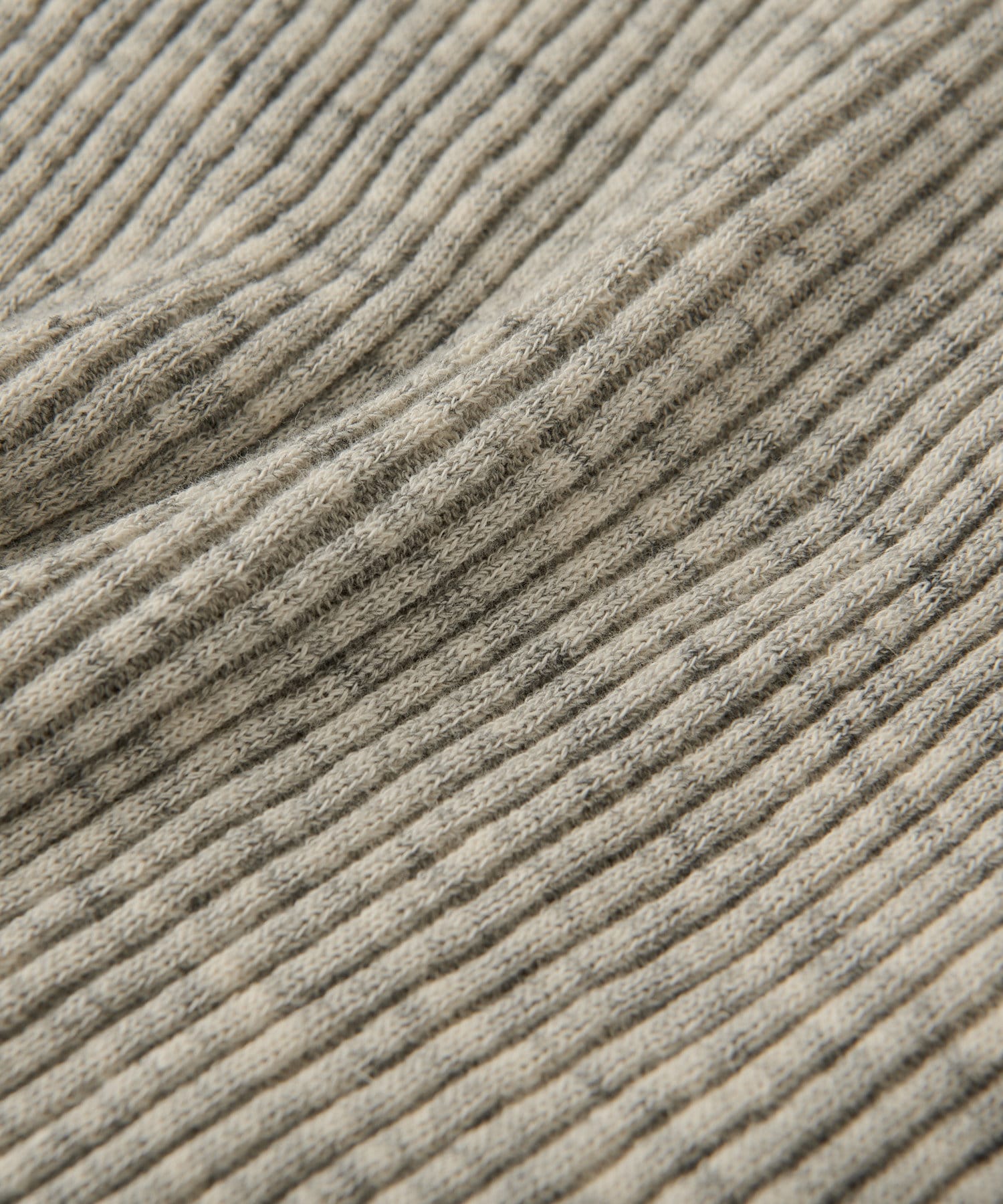 油分が少なく独特のシャリ感を持つ綿の糸を使用したシンプルなリブクルーニット。