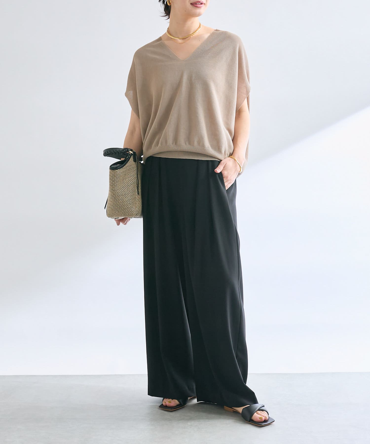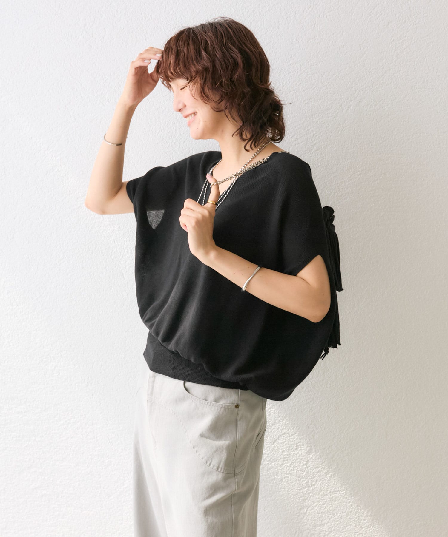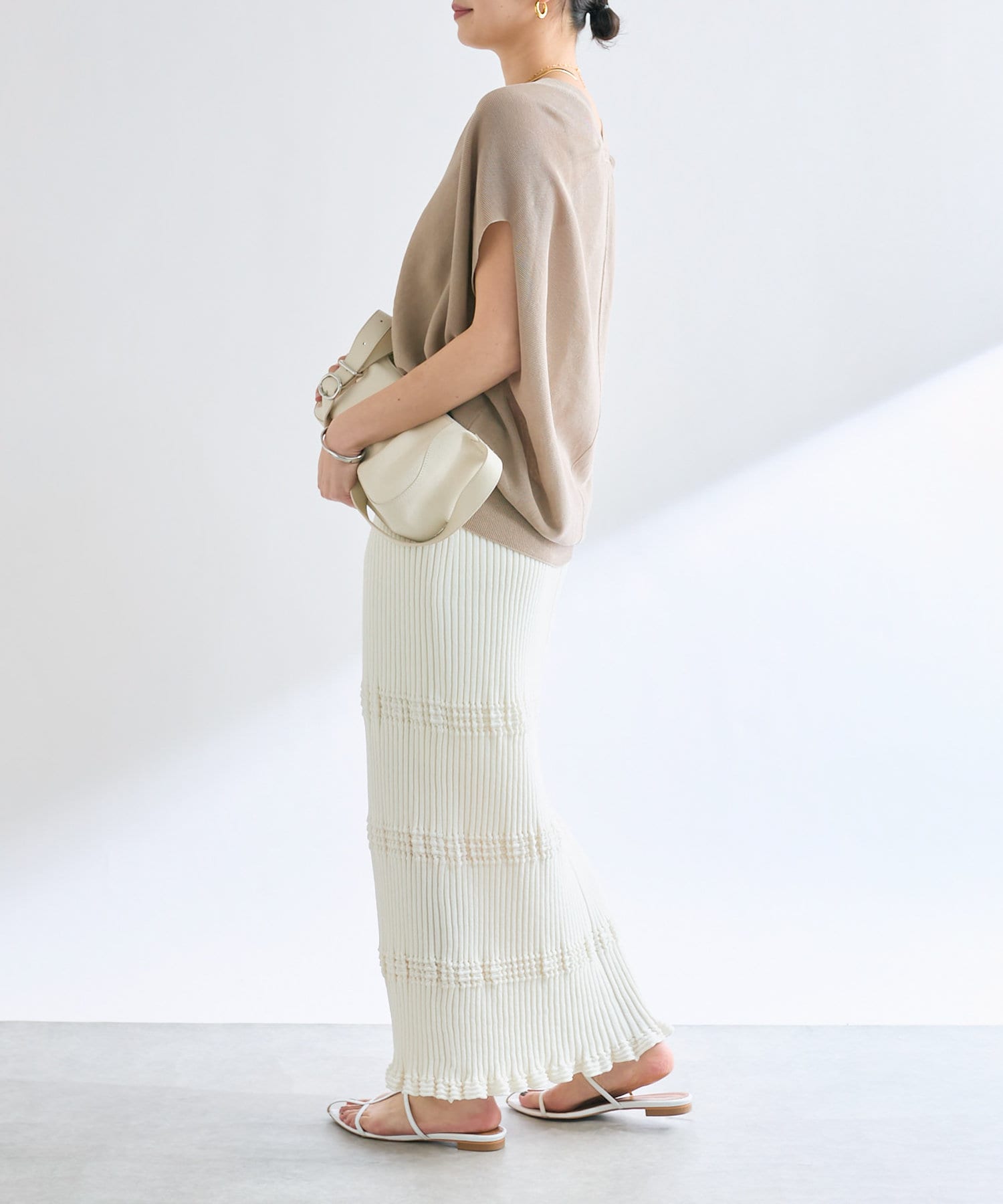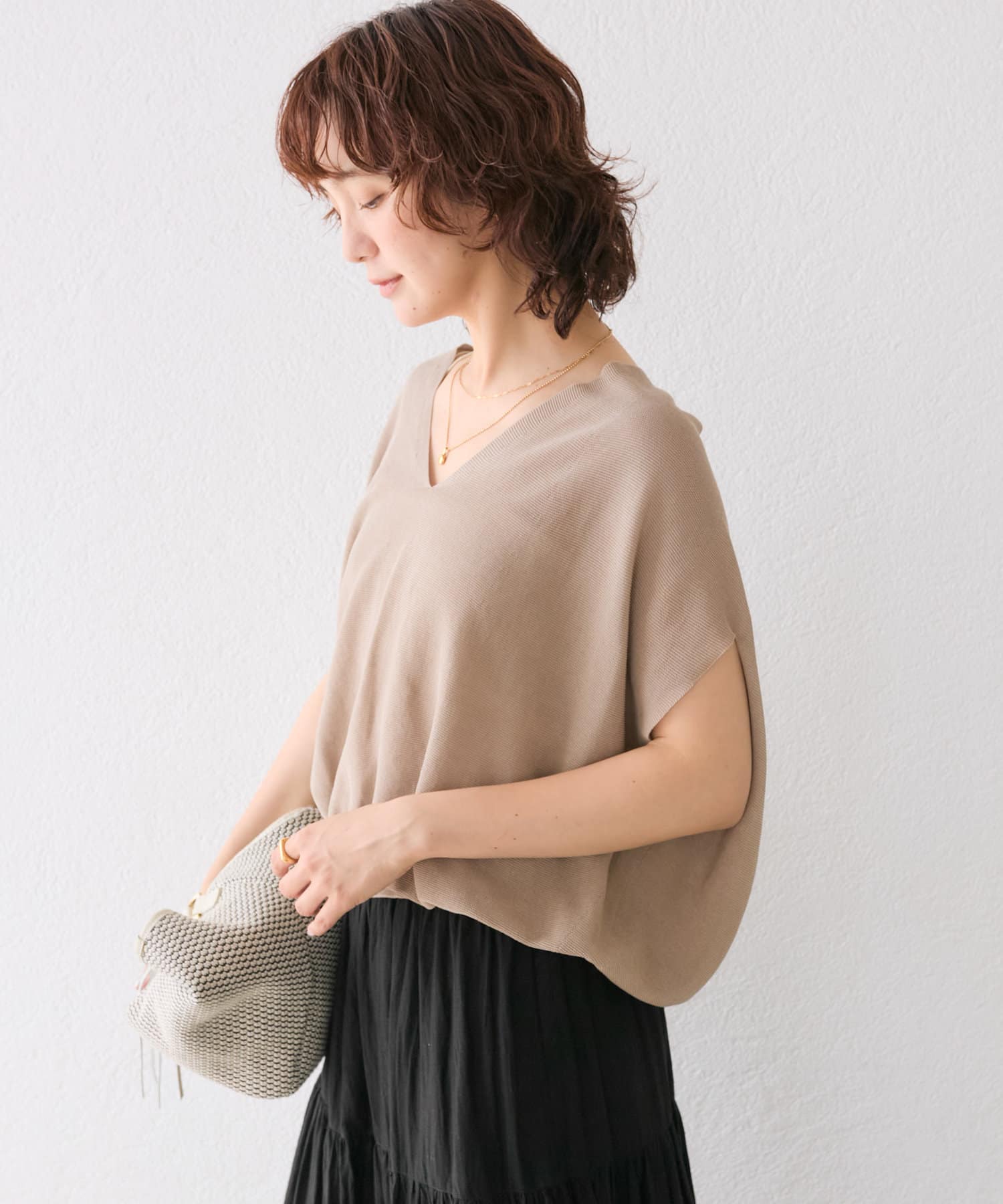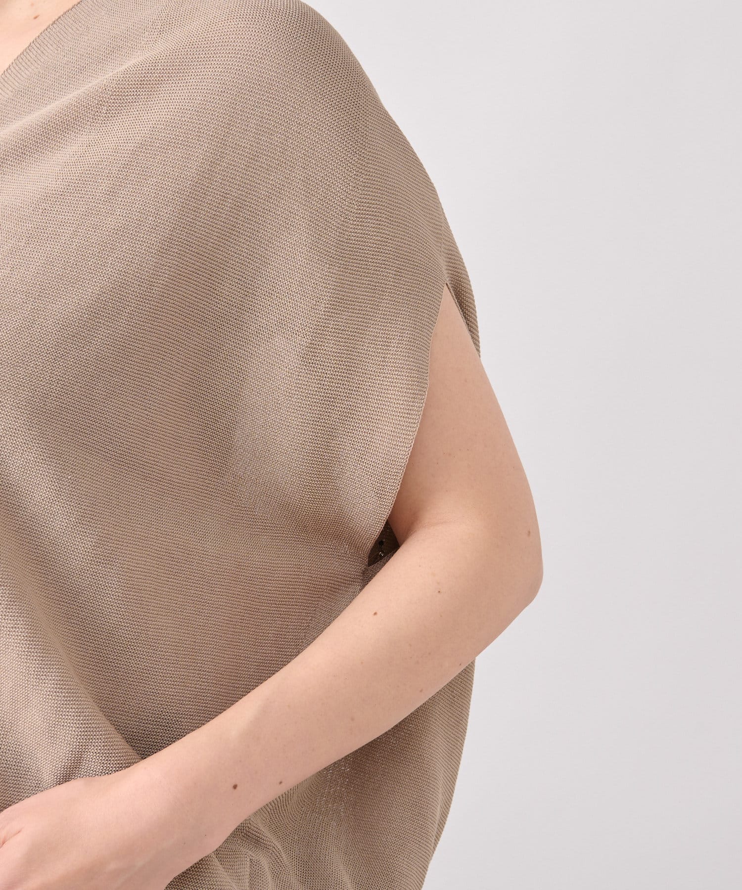肌離れの良い清涼感のある編地でほんのり透け感があり、涼しげな見た目もポイント。