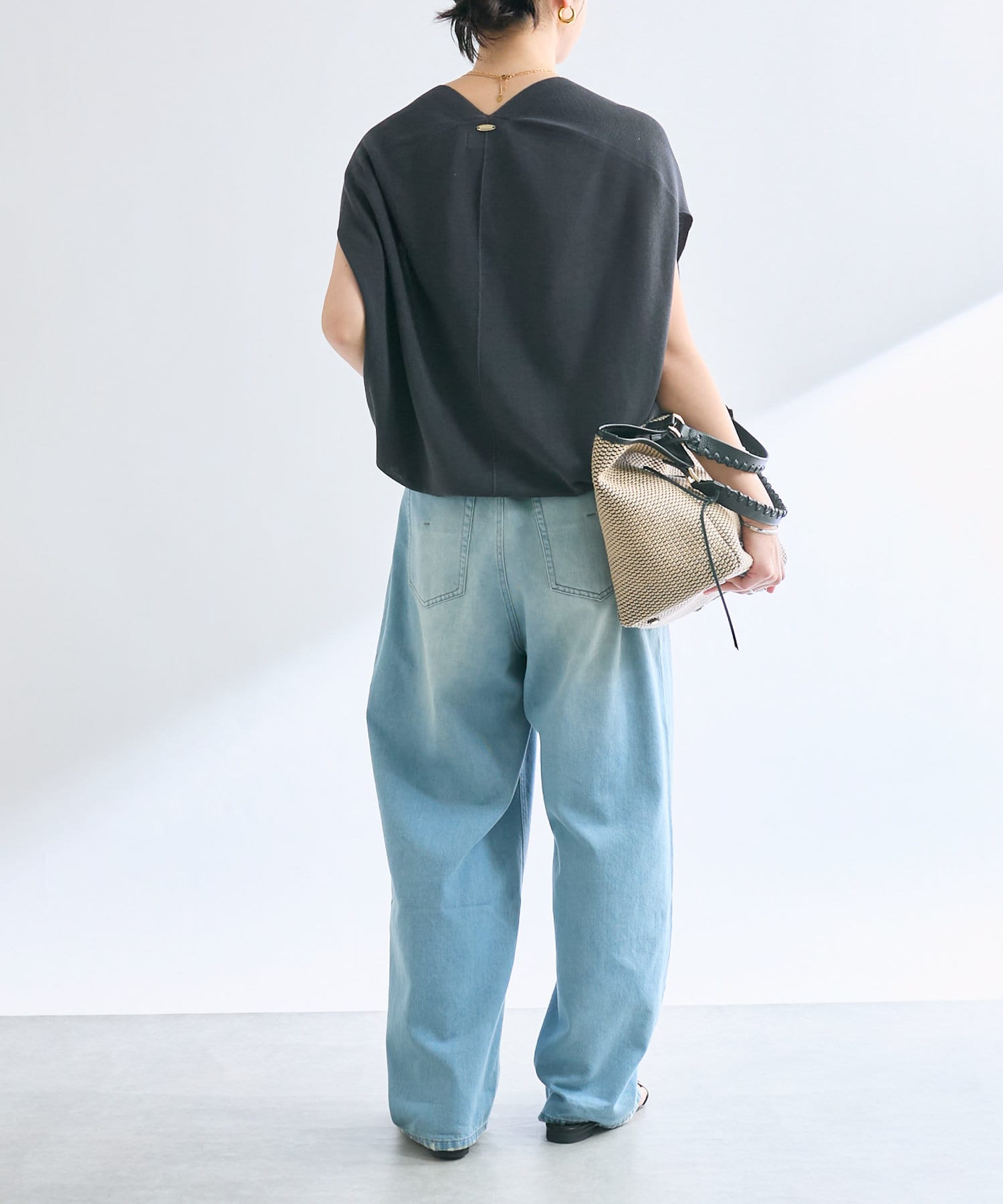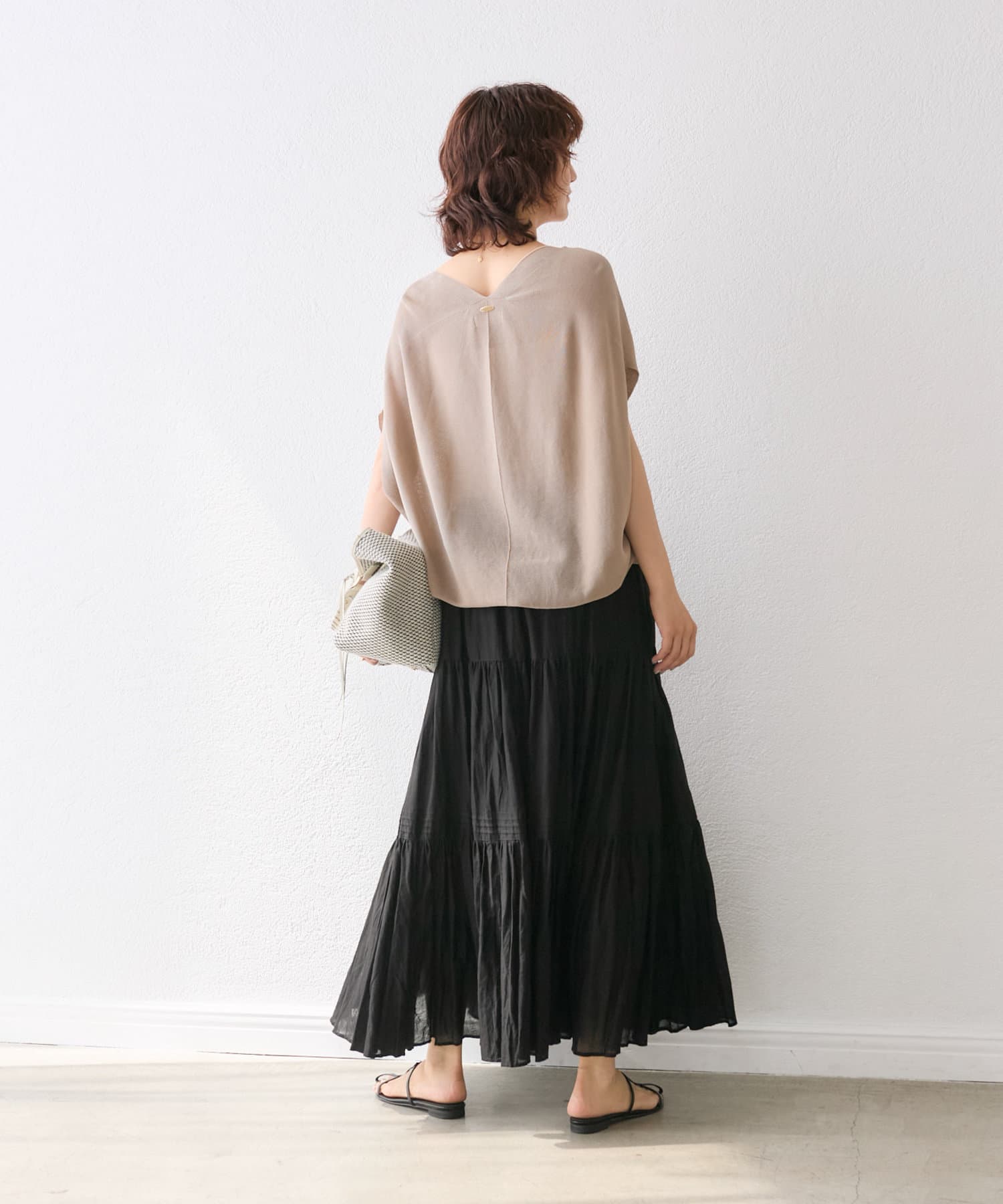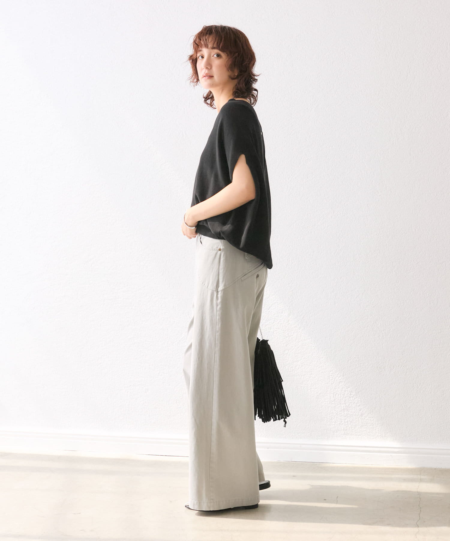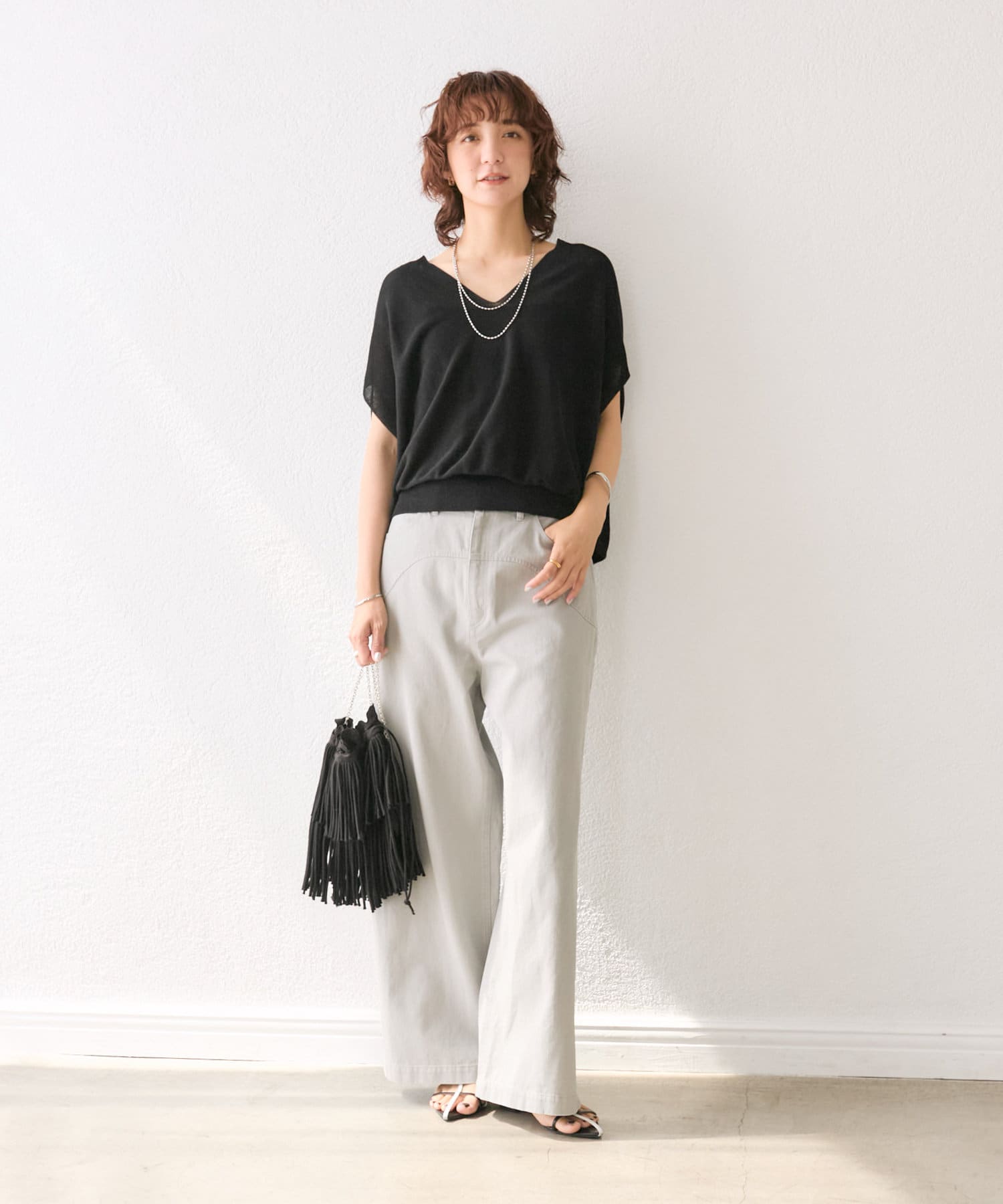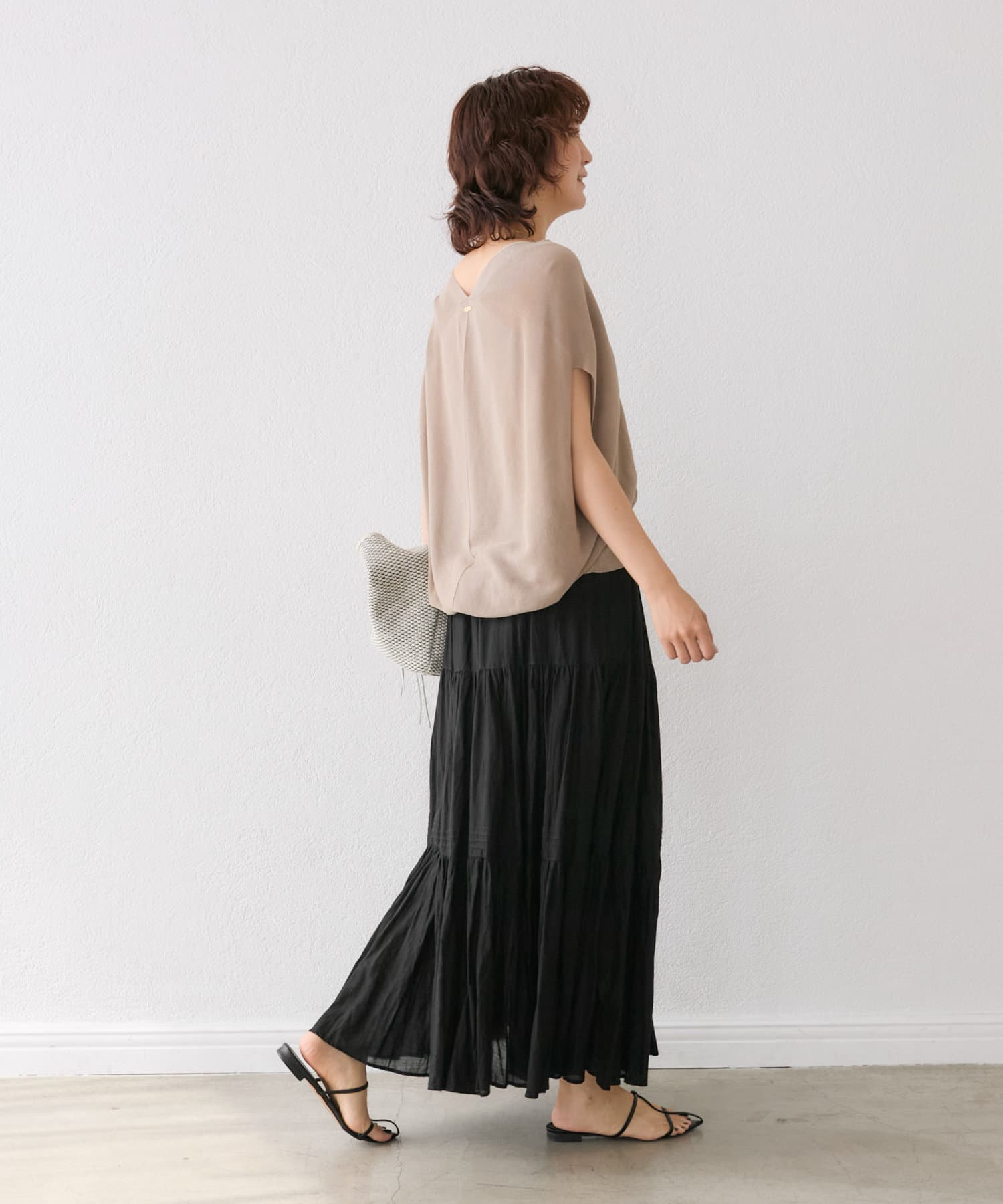 肌離れの良い清涼感のある編地でほんのり透け感があり、涼しげな見た目もポイント。