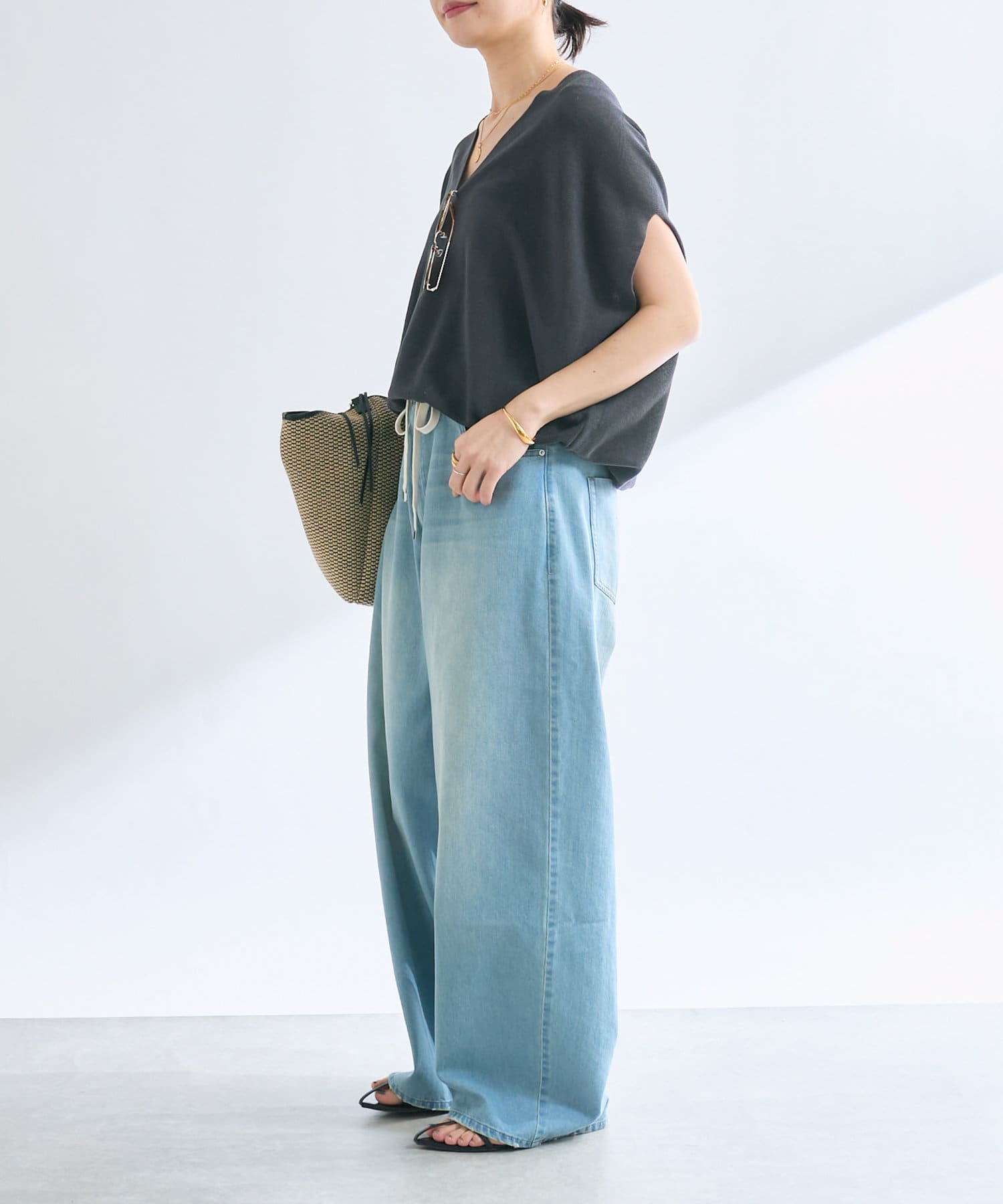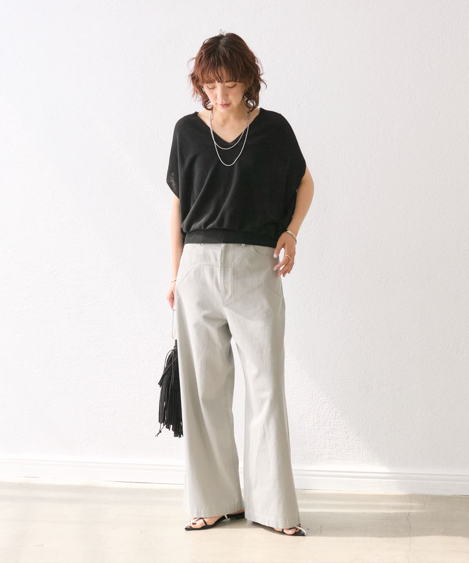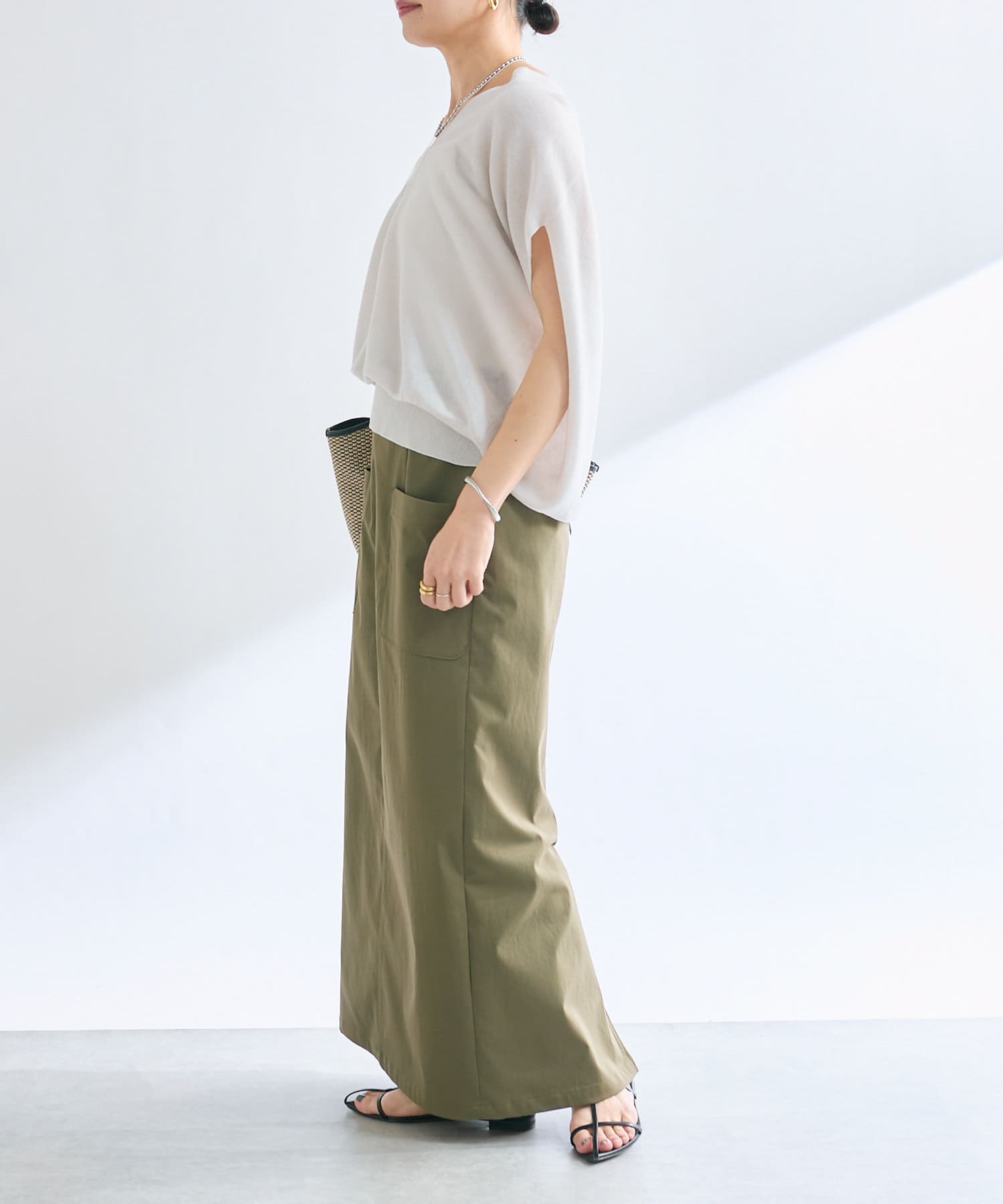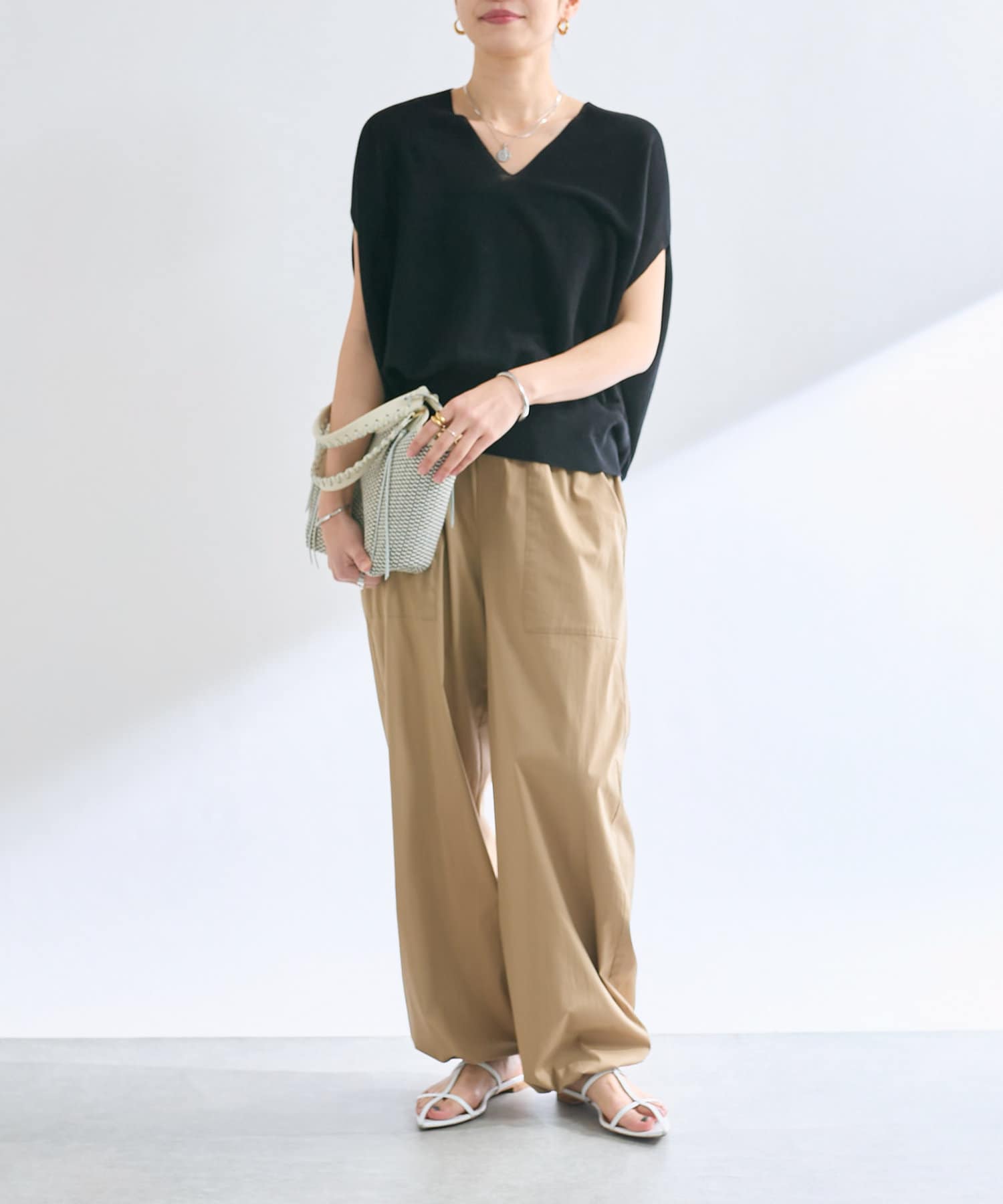 肌離れの良い清涼感のある編地でほんのり透け感があり、涼しげな見た目もポイント。