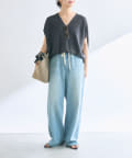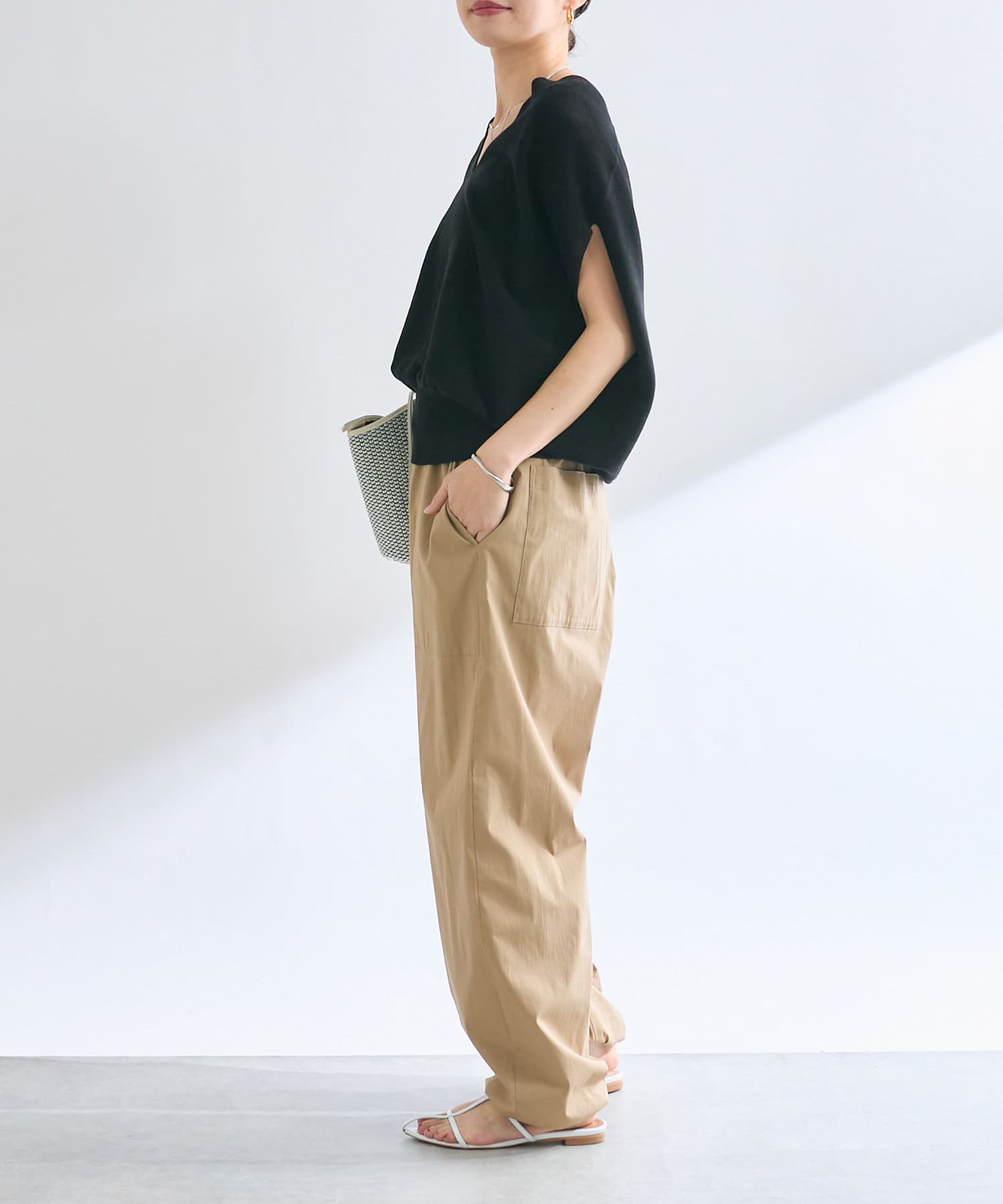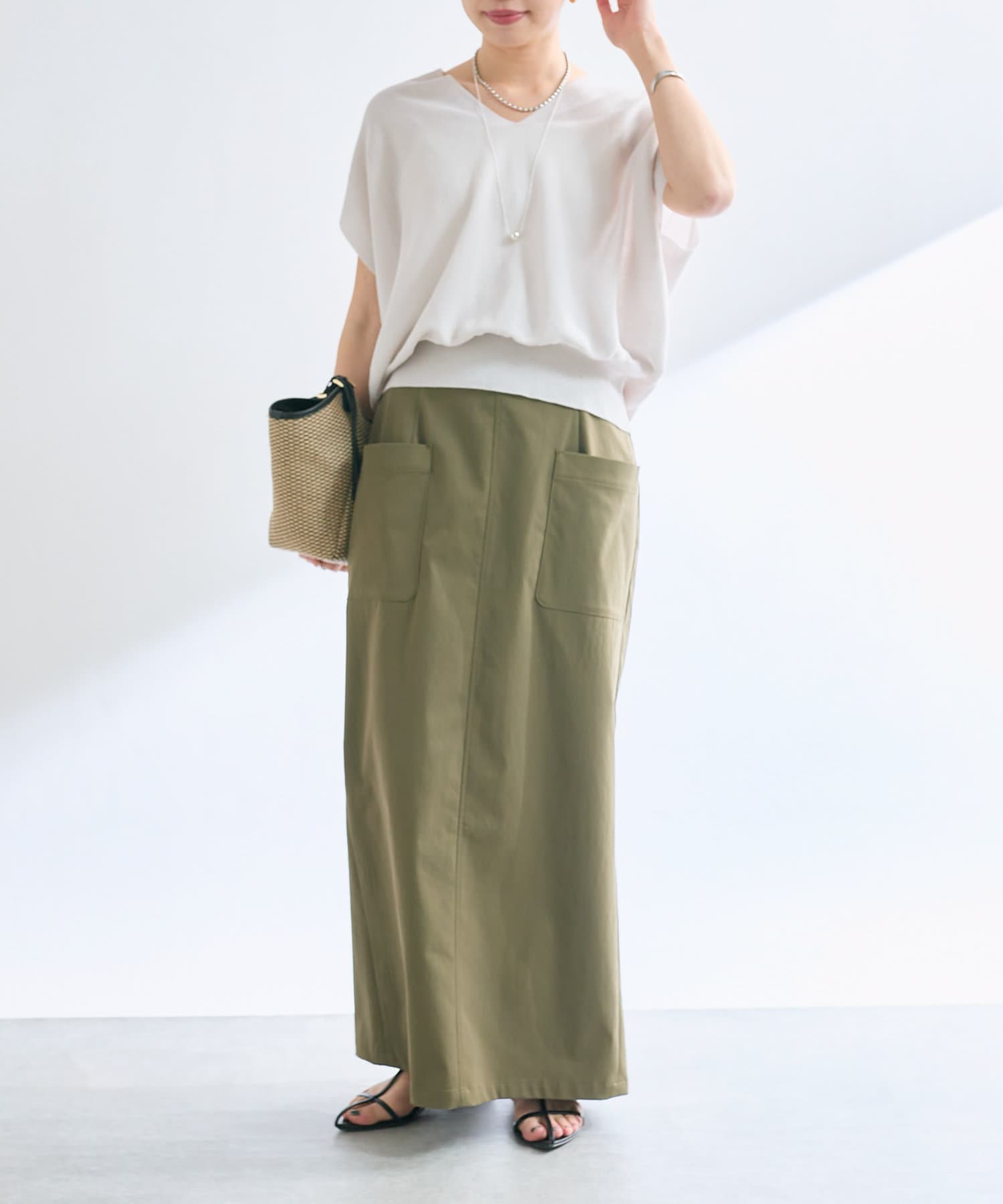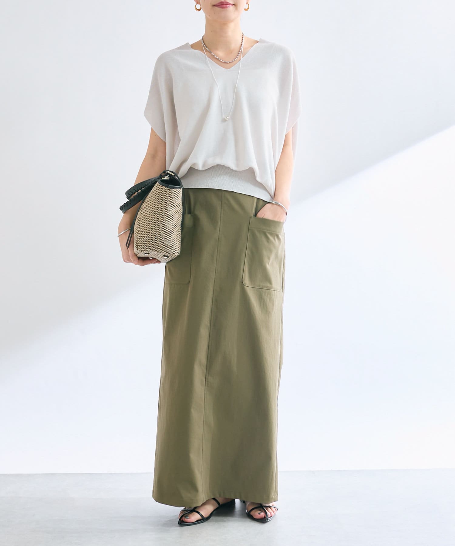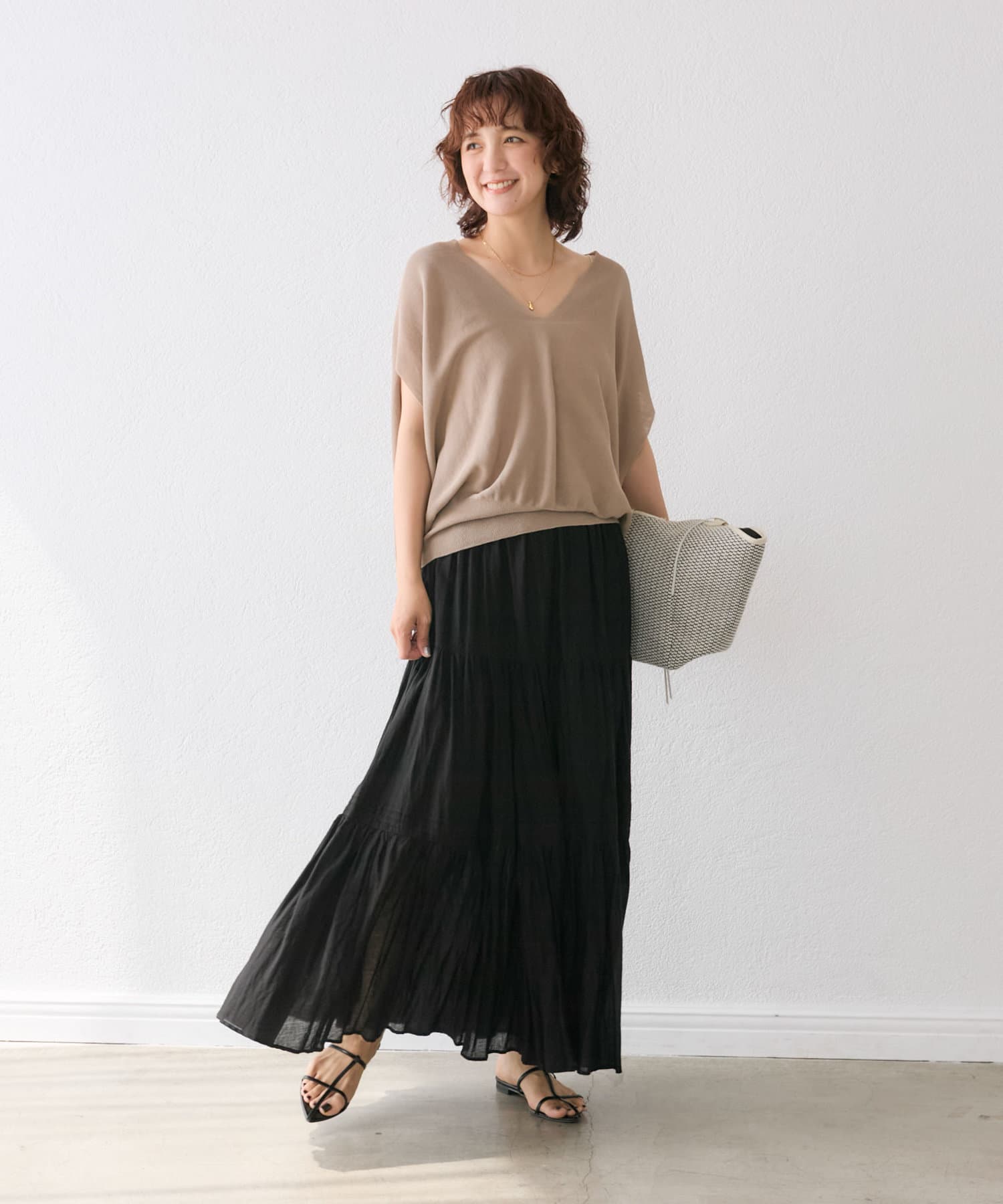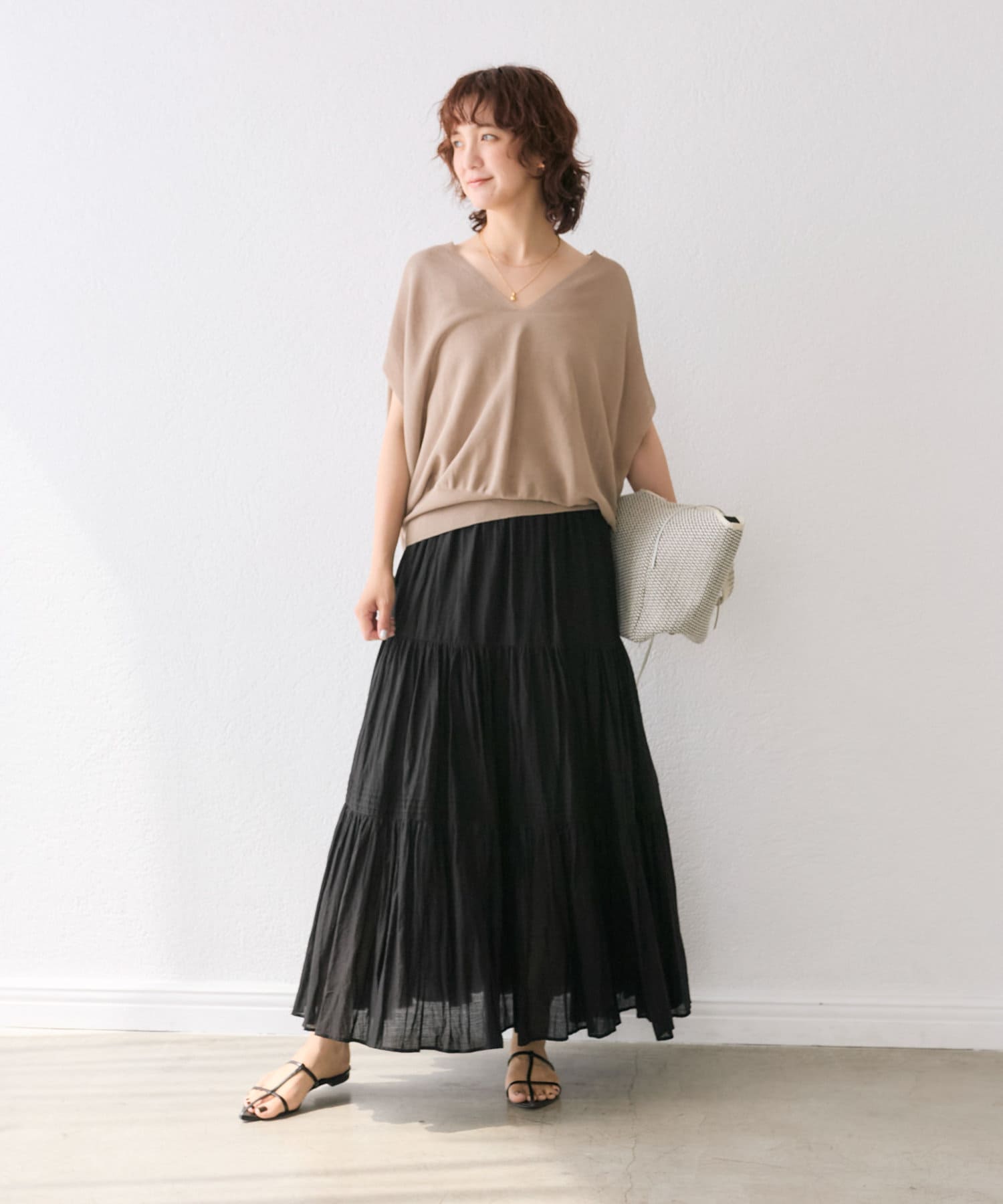 肌離れの良い清涼感のある編地でほんのり透け感があり、涼しげな見た目もポイント。