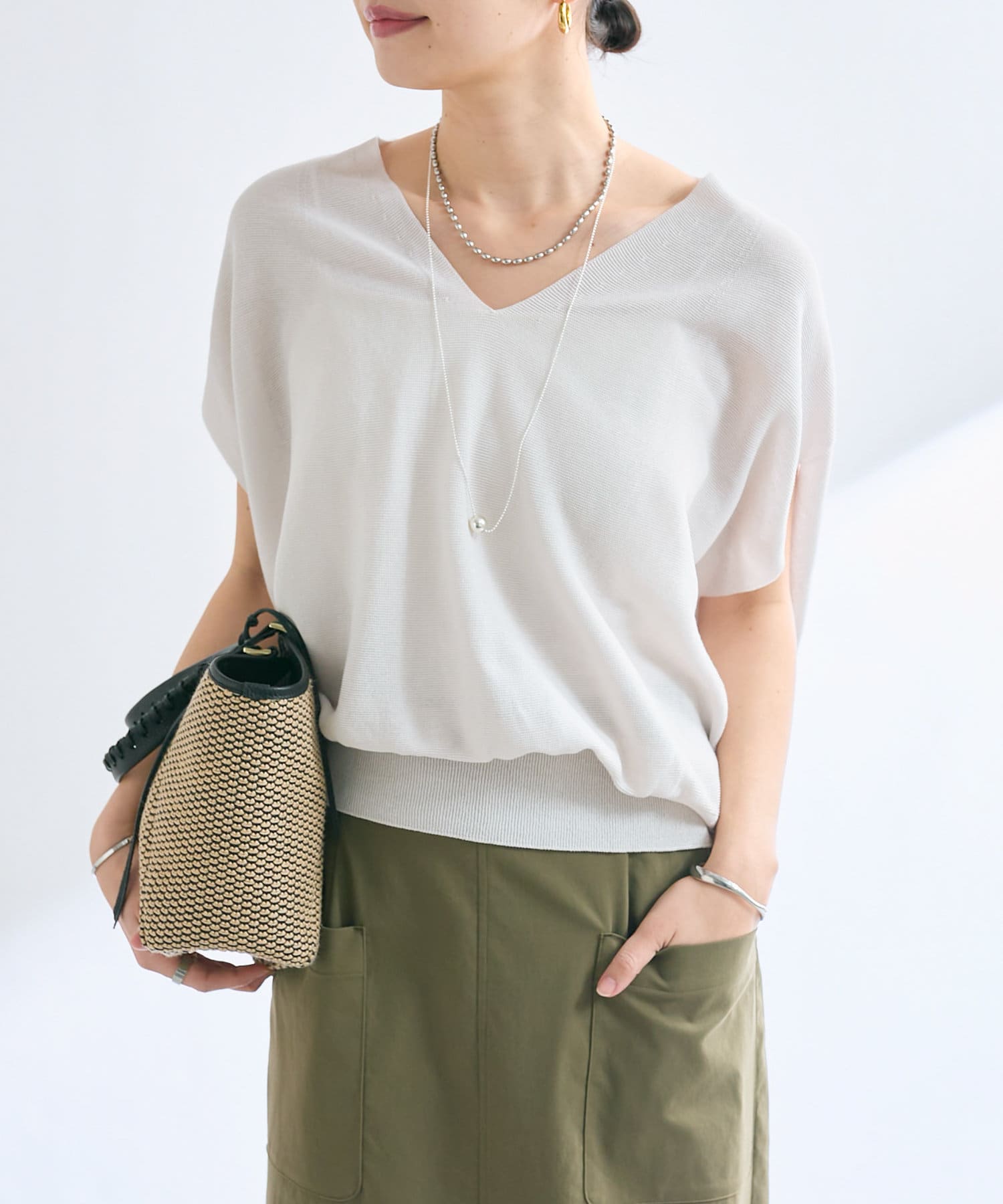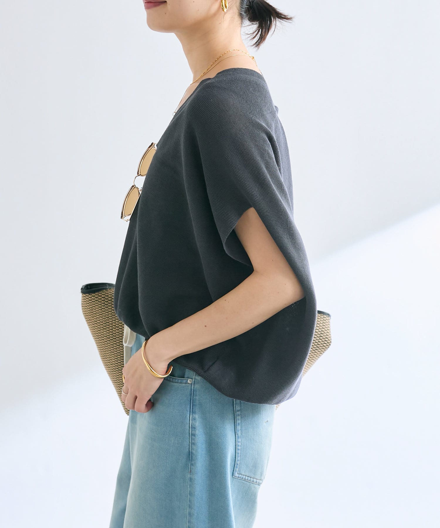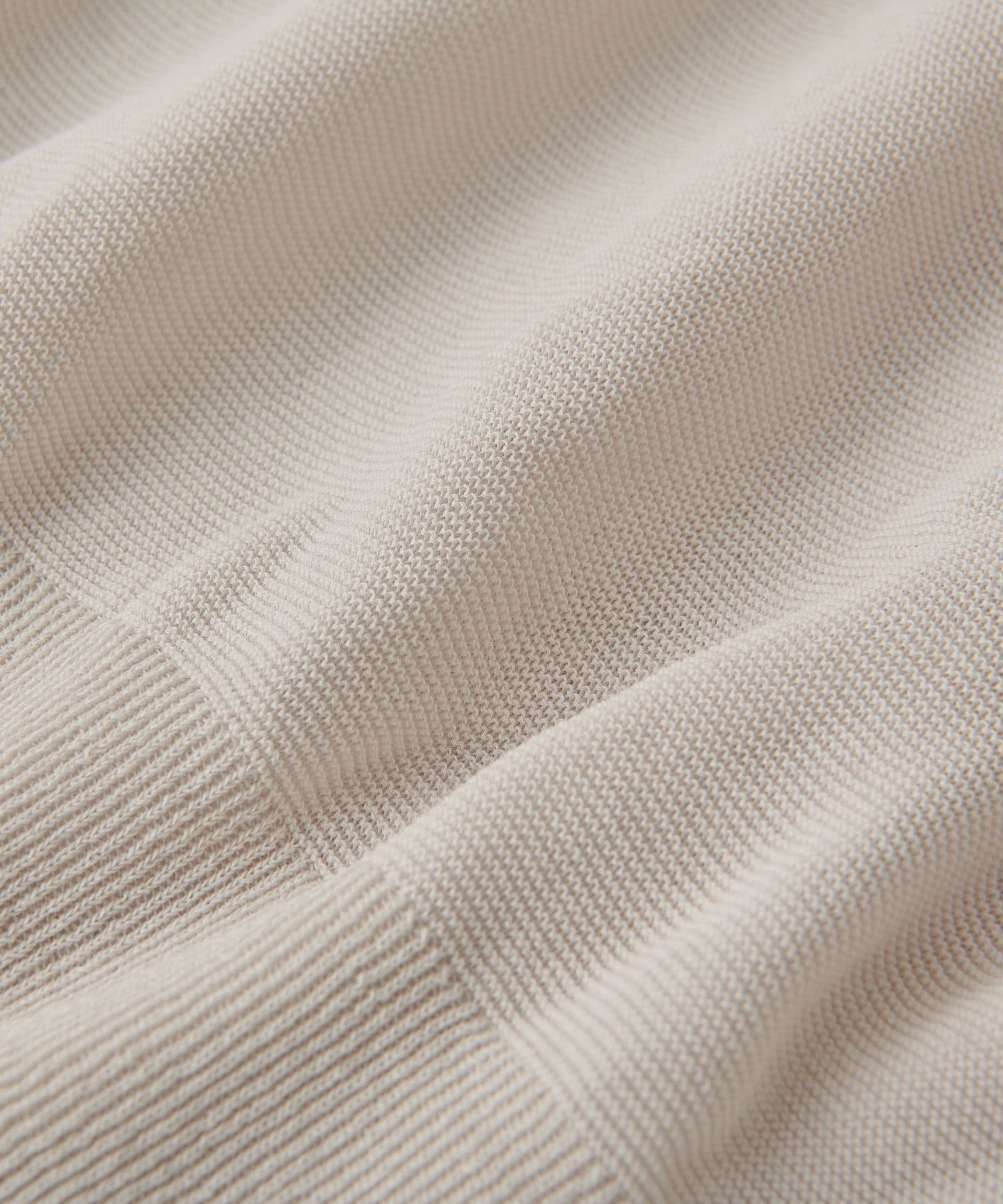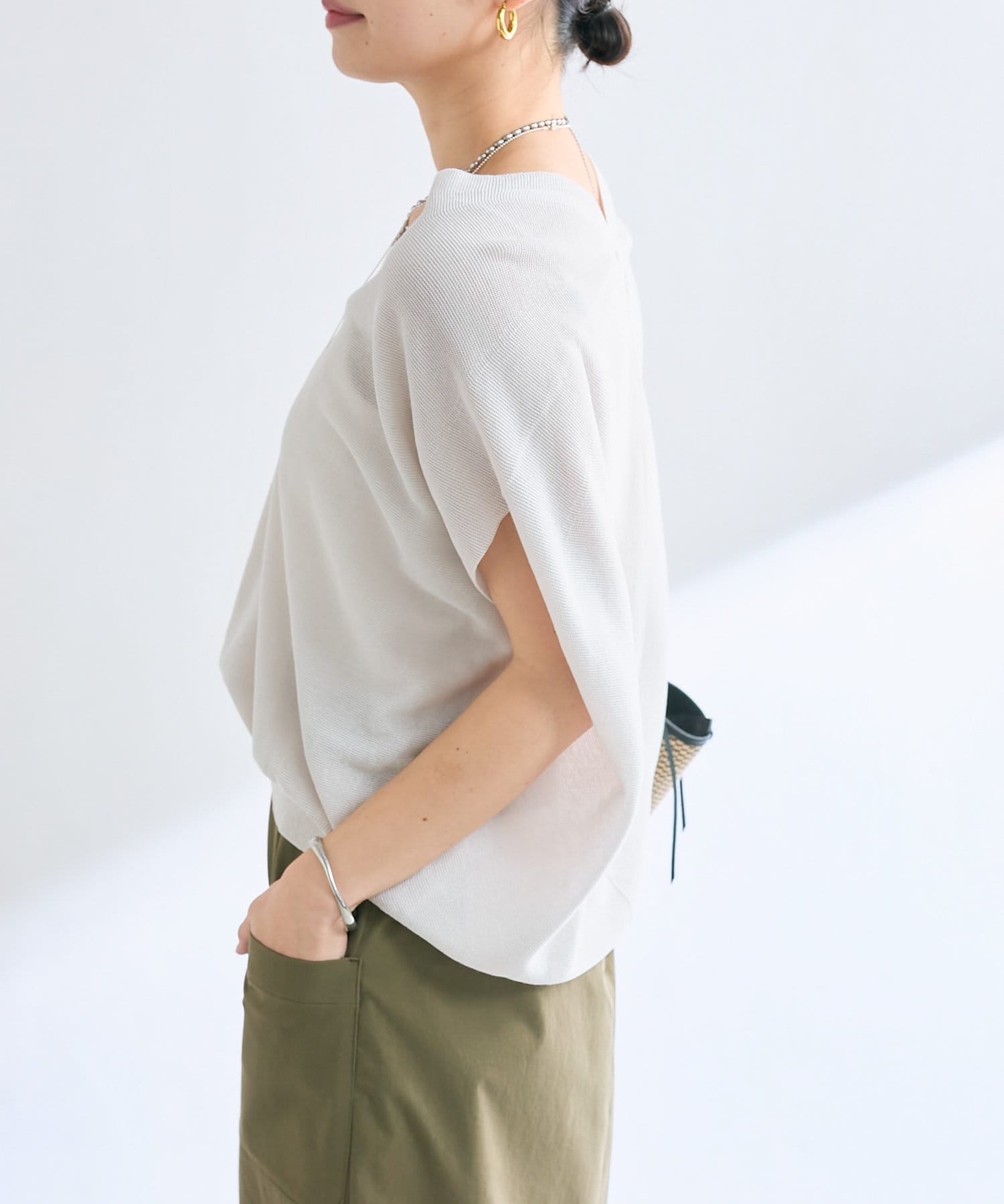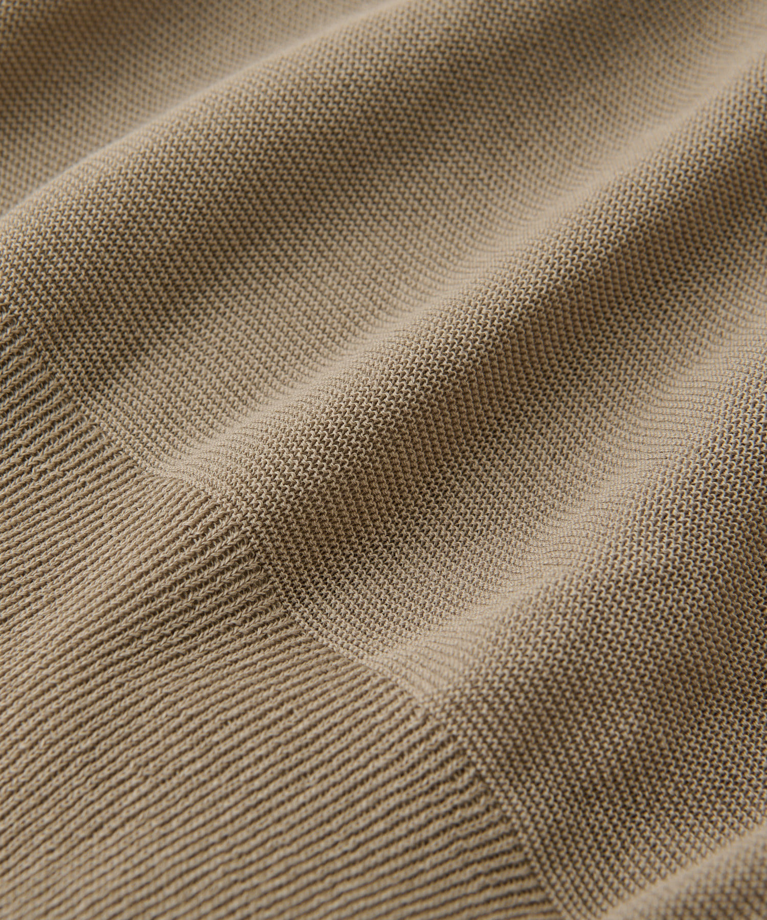 ジャケットやブルゾンの下に着用いただいても、夏一枚できていただいてもおすすめなサマーニットです。