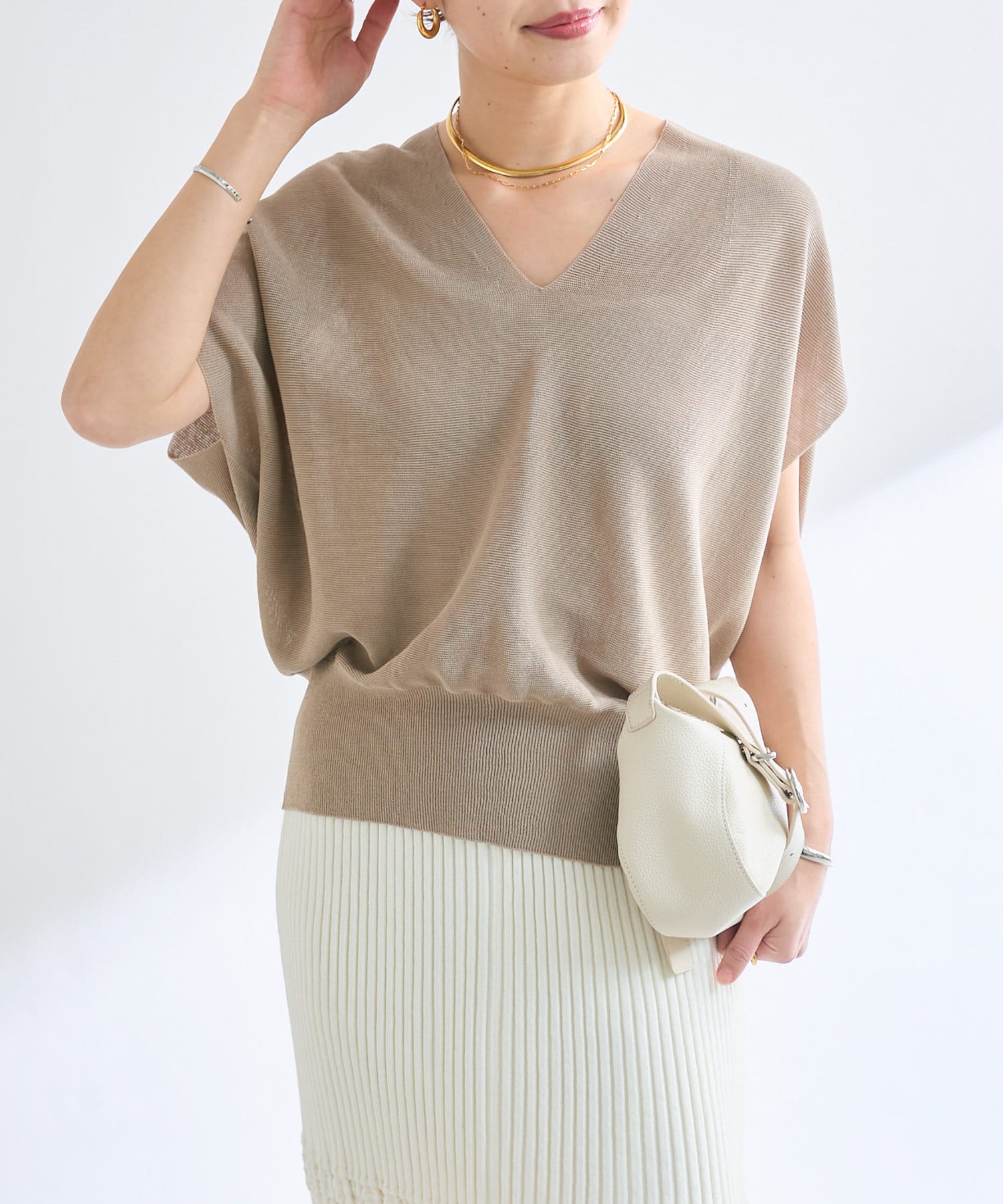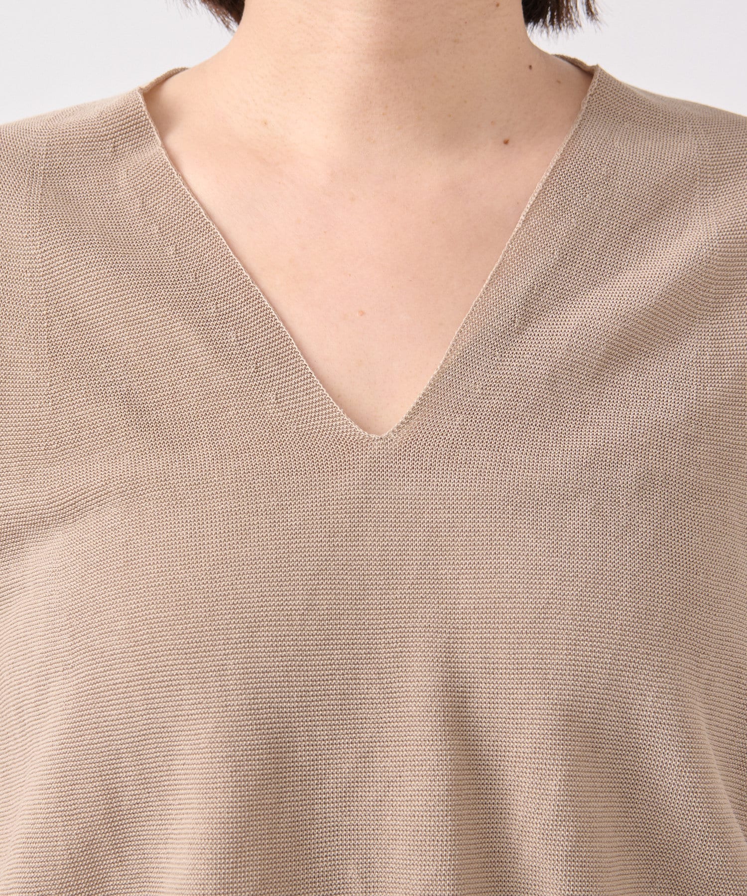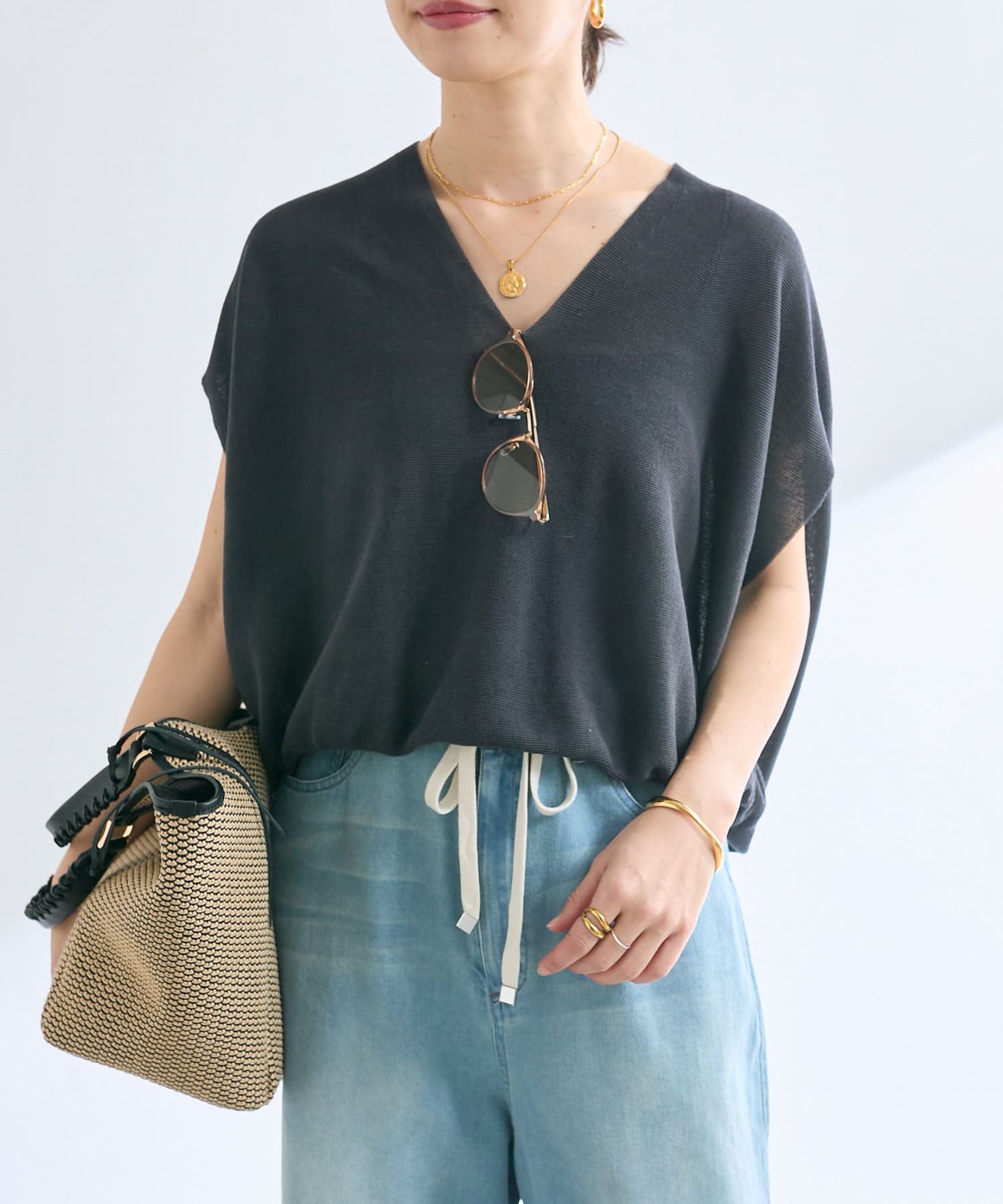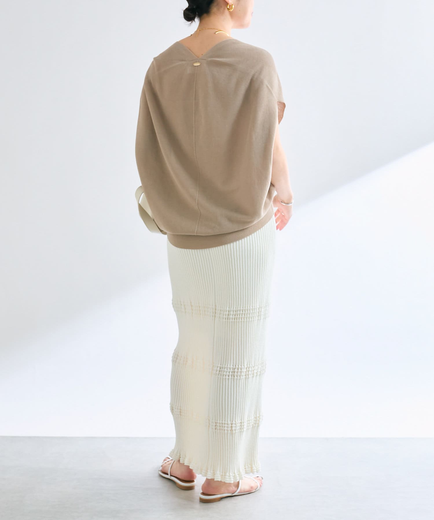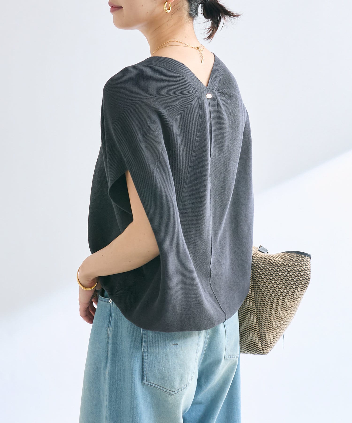 ジャケットやブルゾンの下に着用いただいても、夏一枚できていただいてもおすすめなサマーニットです。