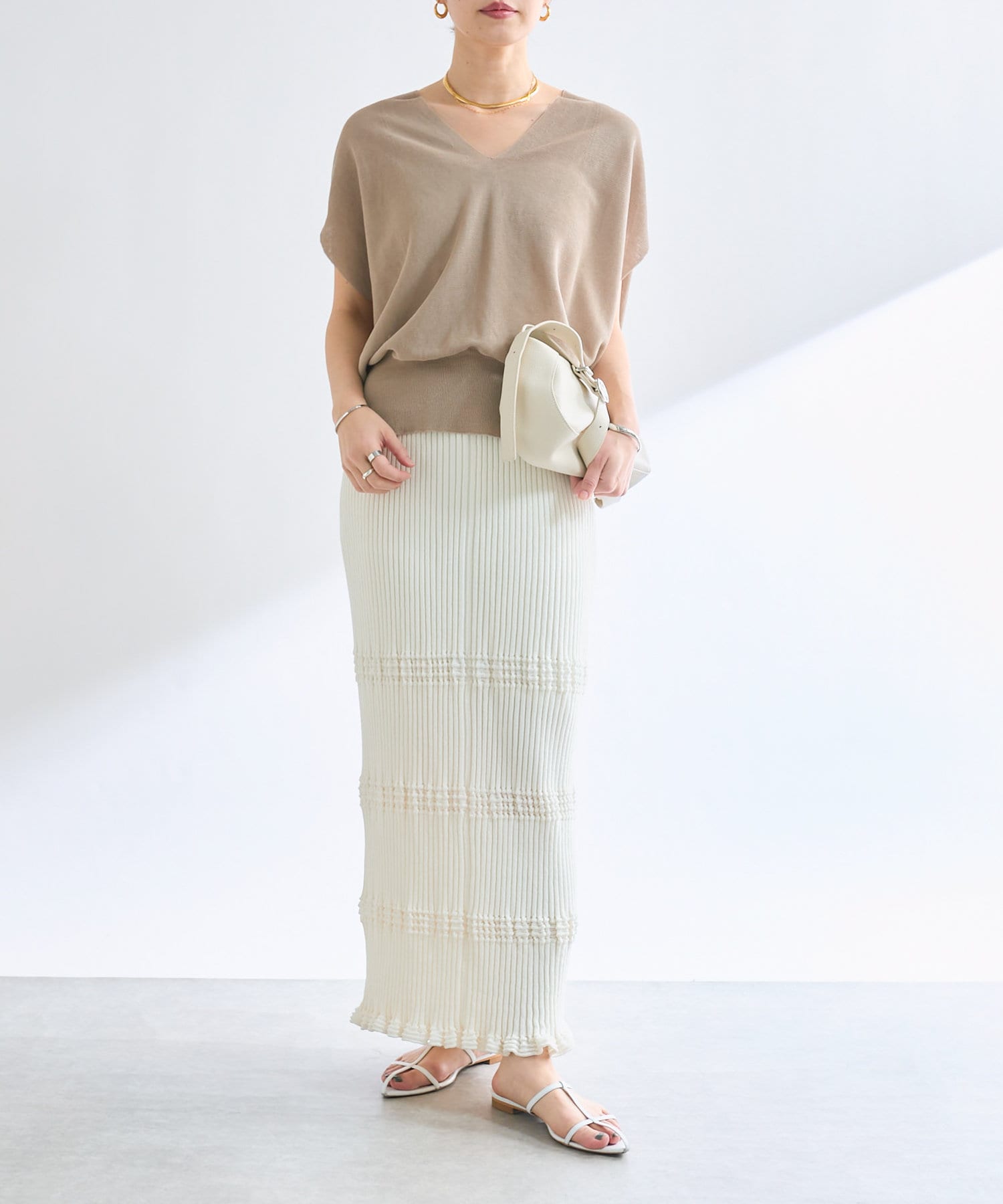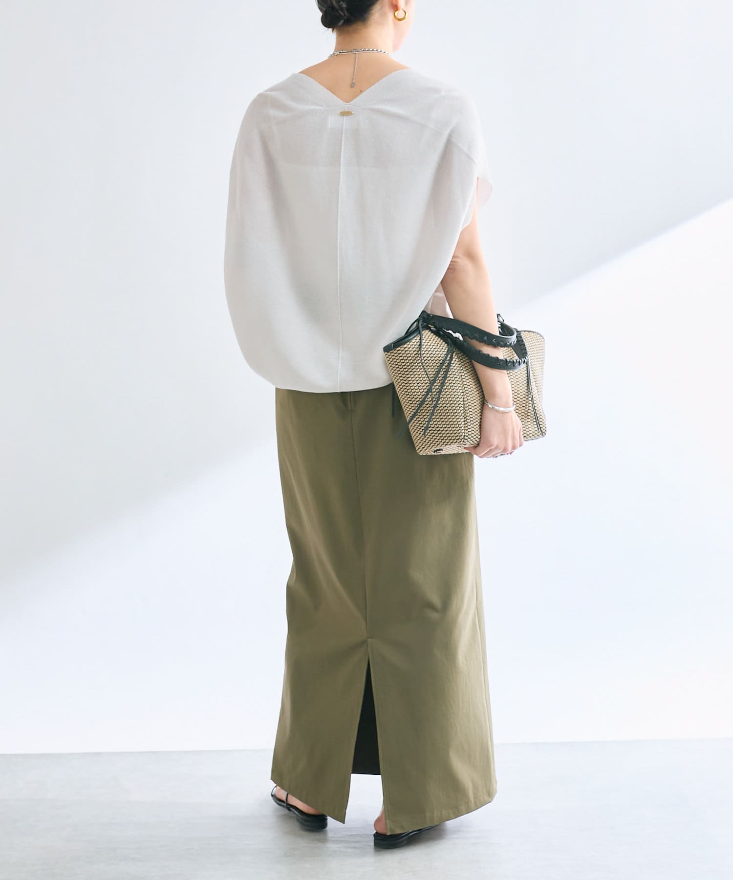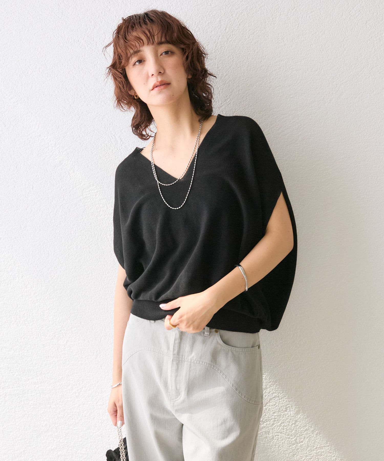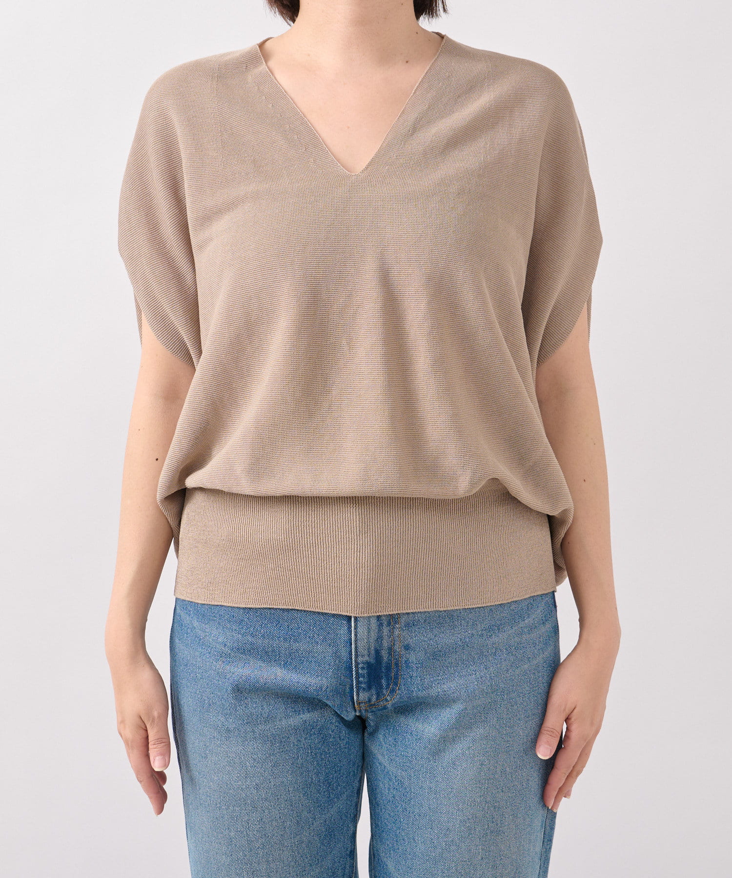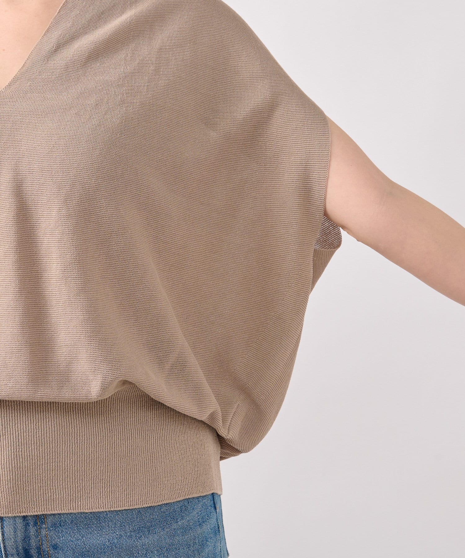 ジャケットやブルゾンの下に着用いただいても、夏一枚できていただいてもおすすめなサマーニットです。