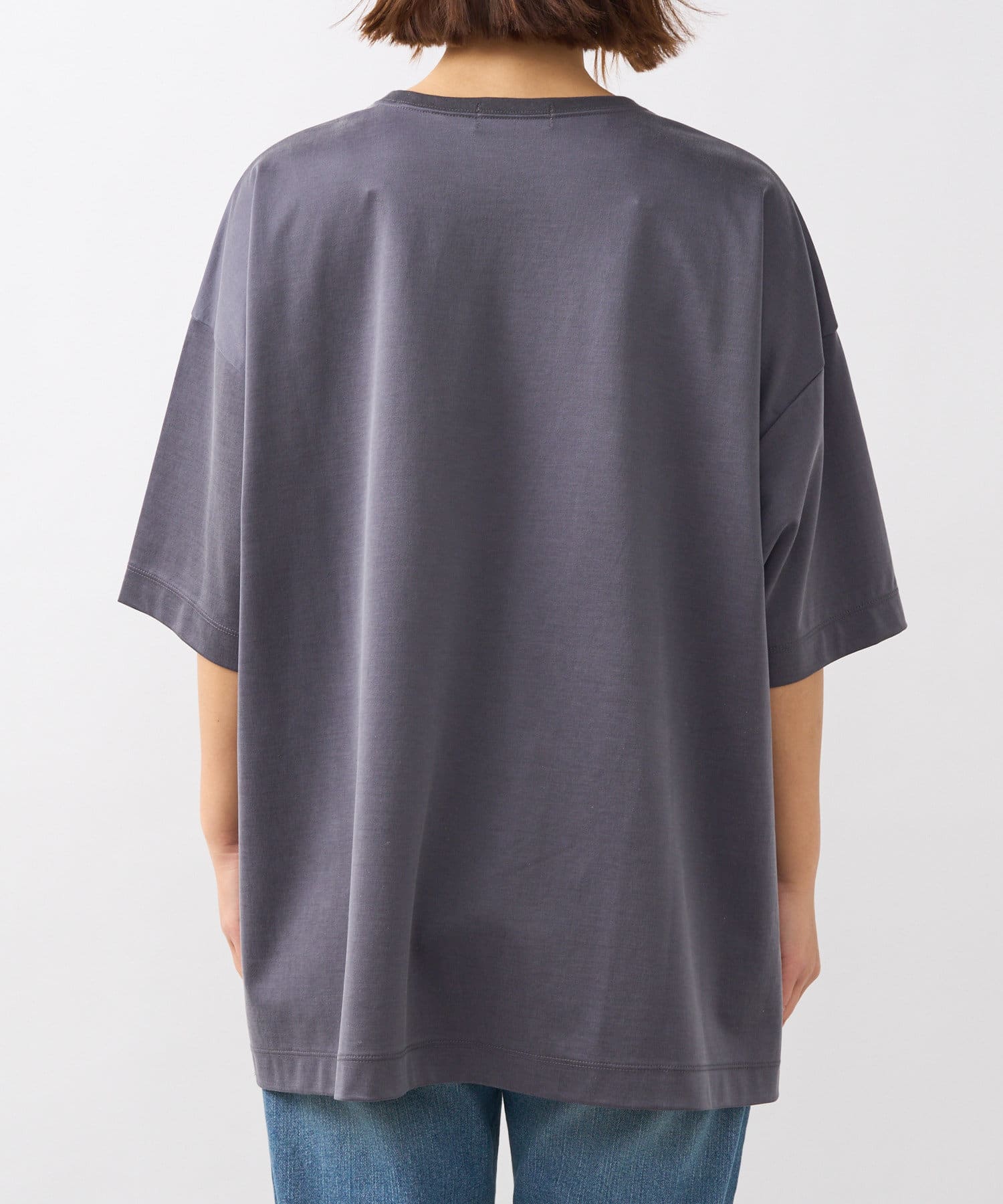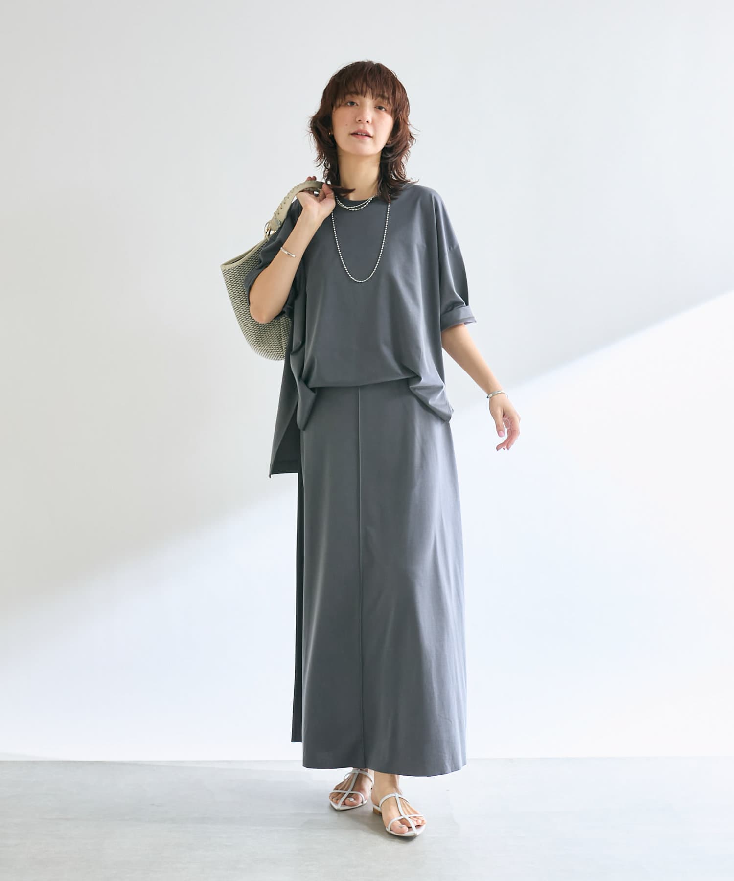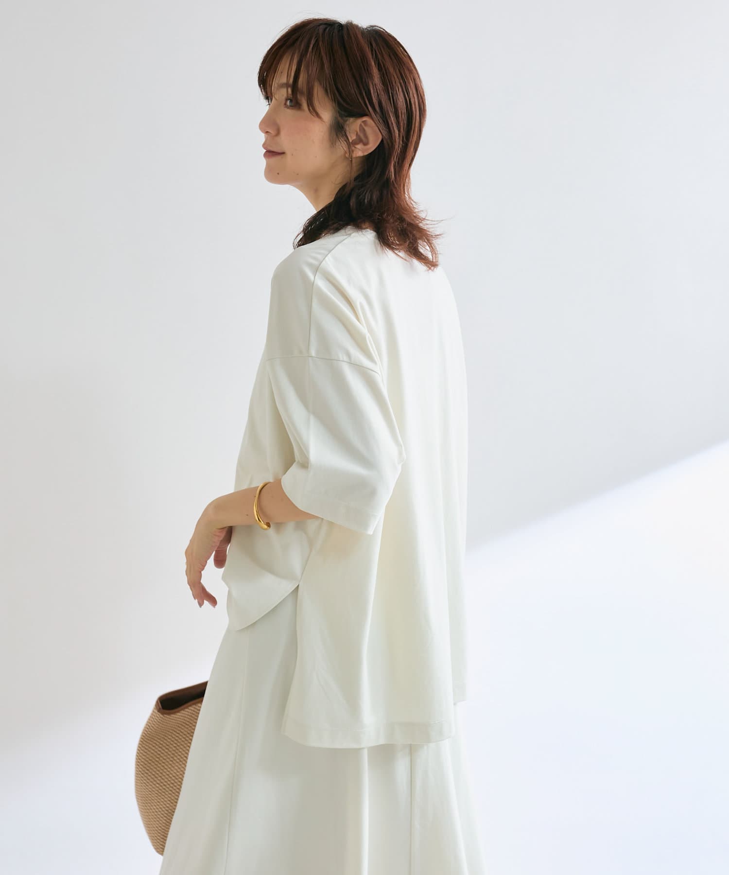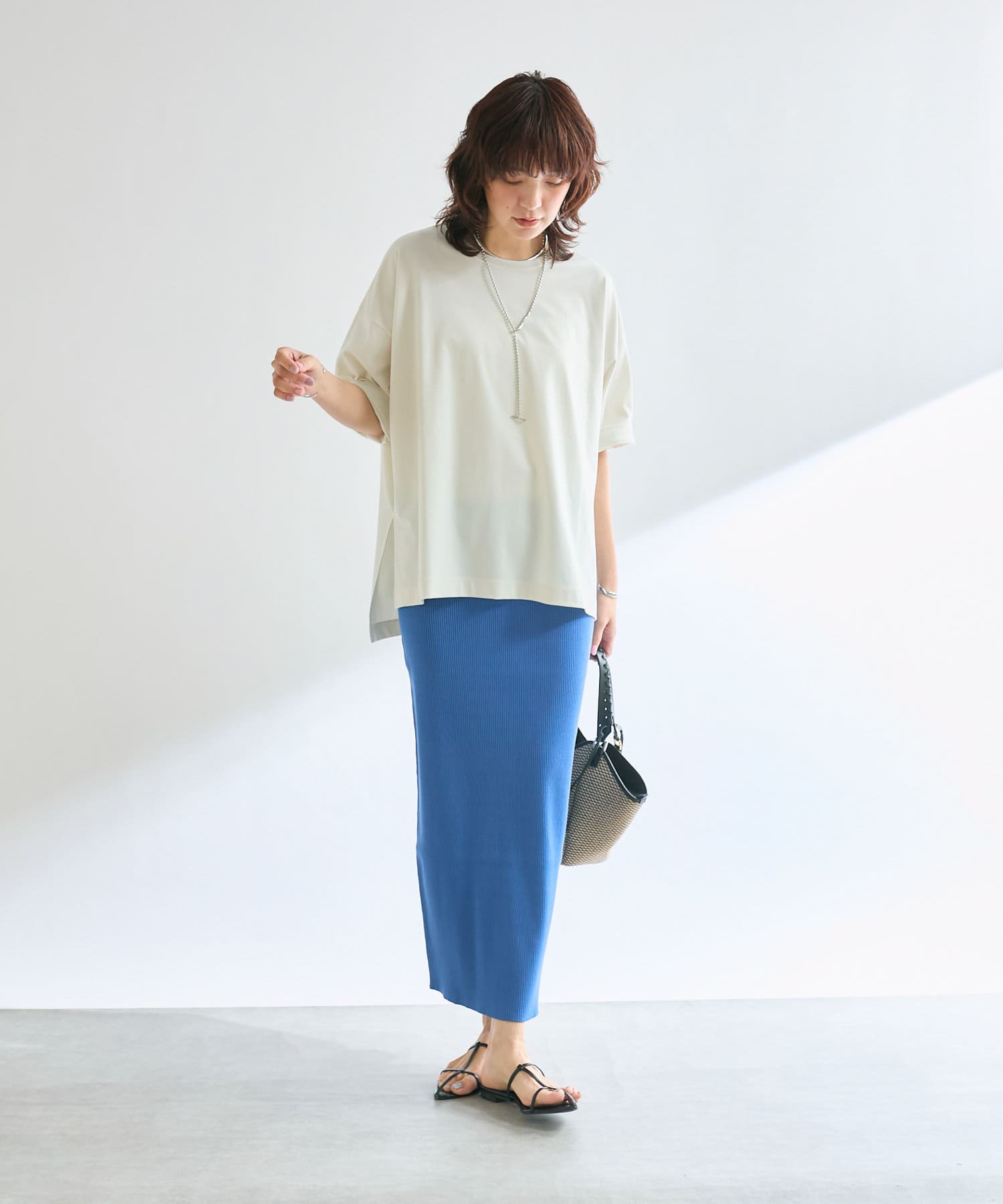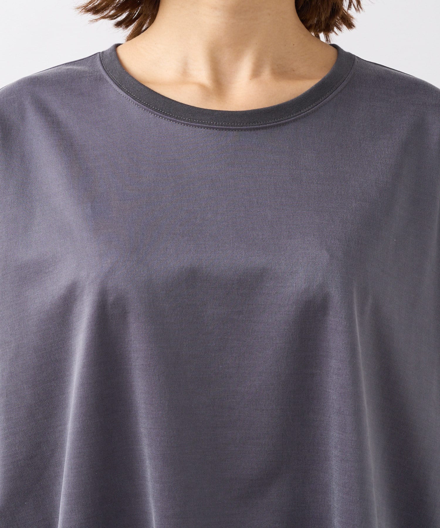 滑らかなシルキータッチで着心地もよく、程よいとろみのシンプルなオーバーT。