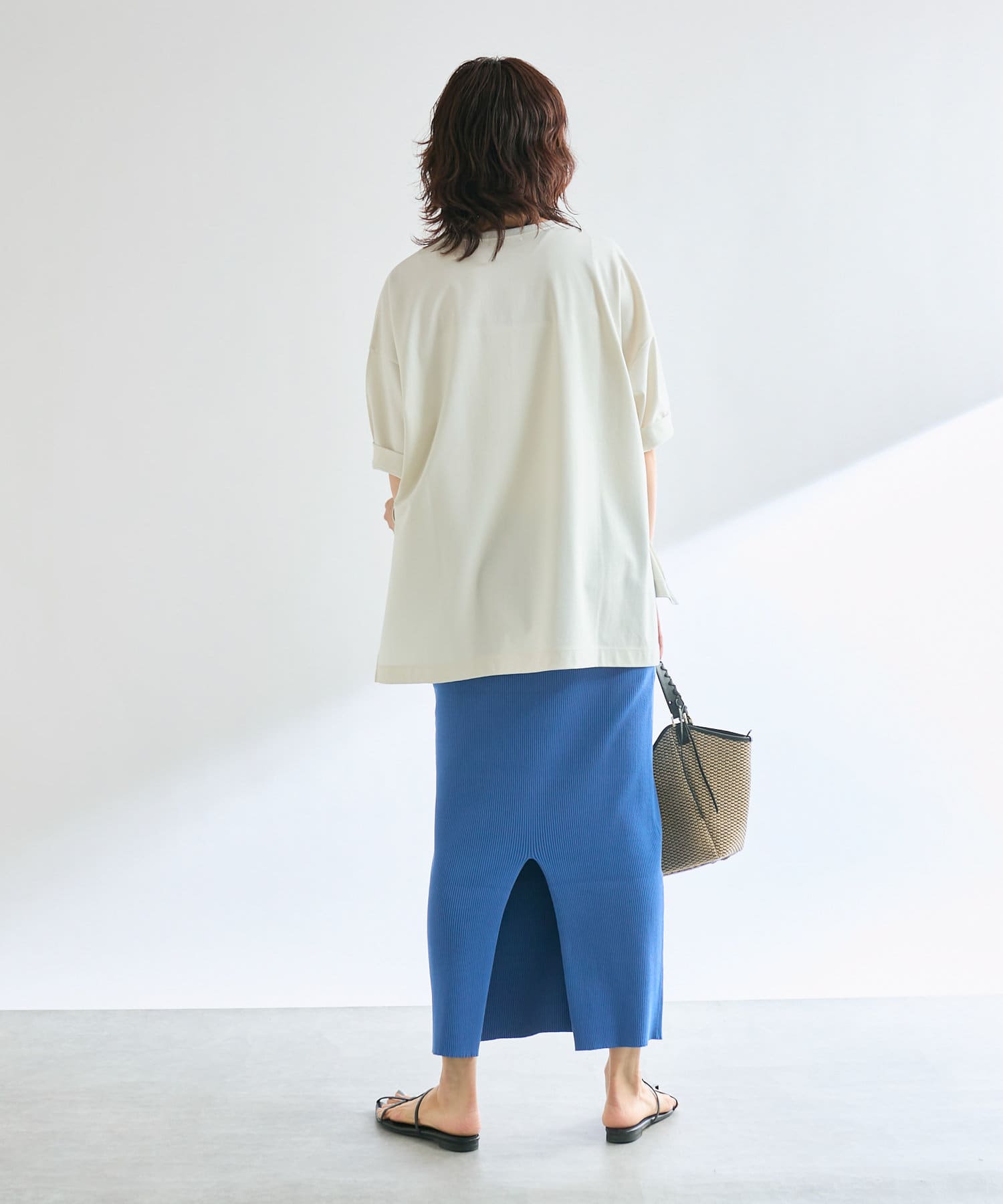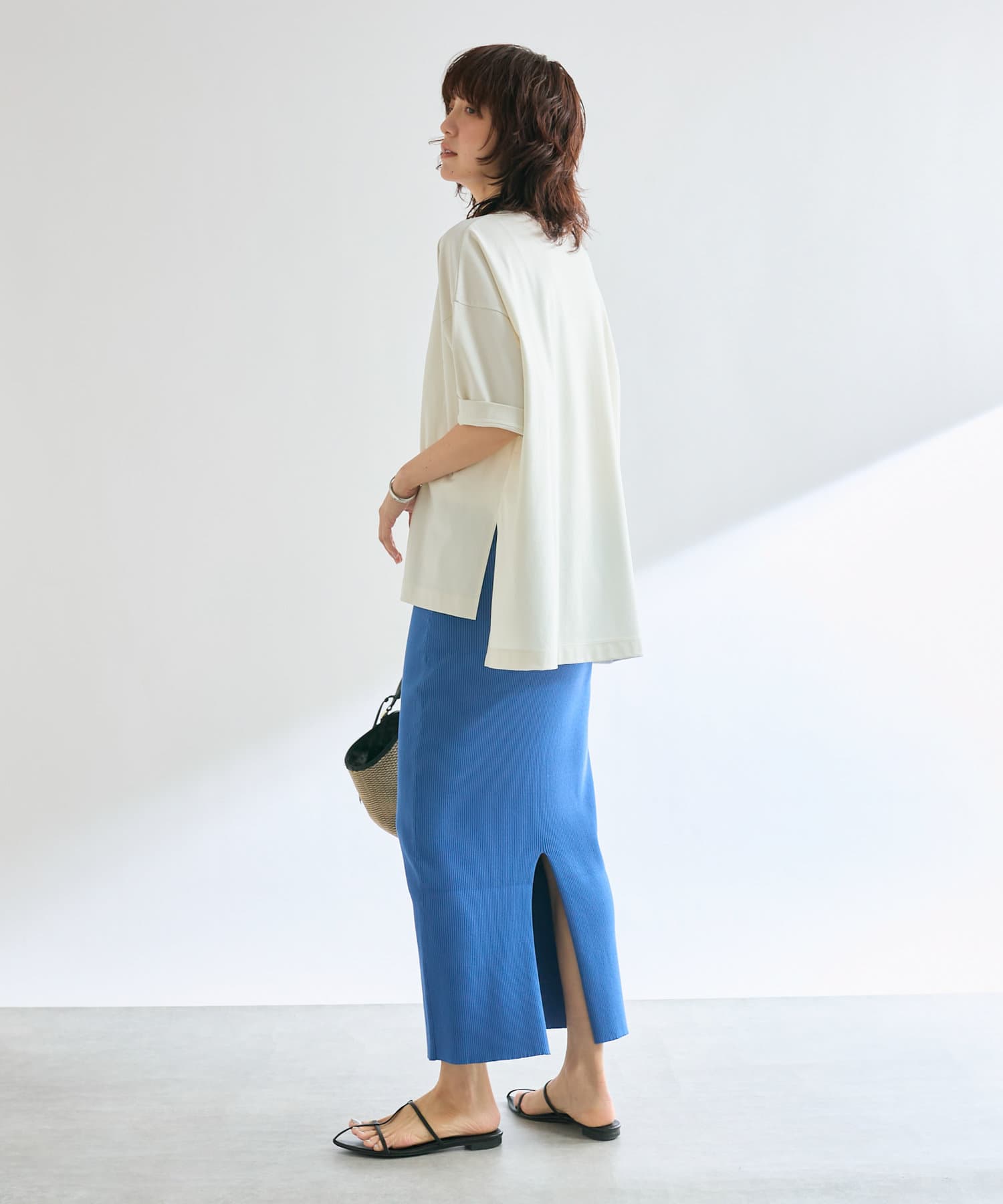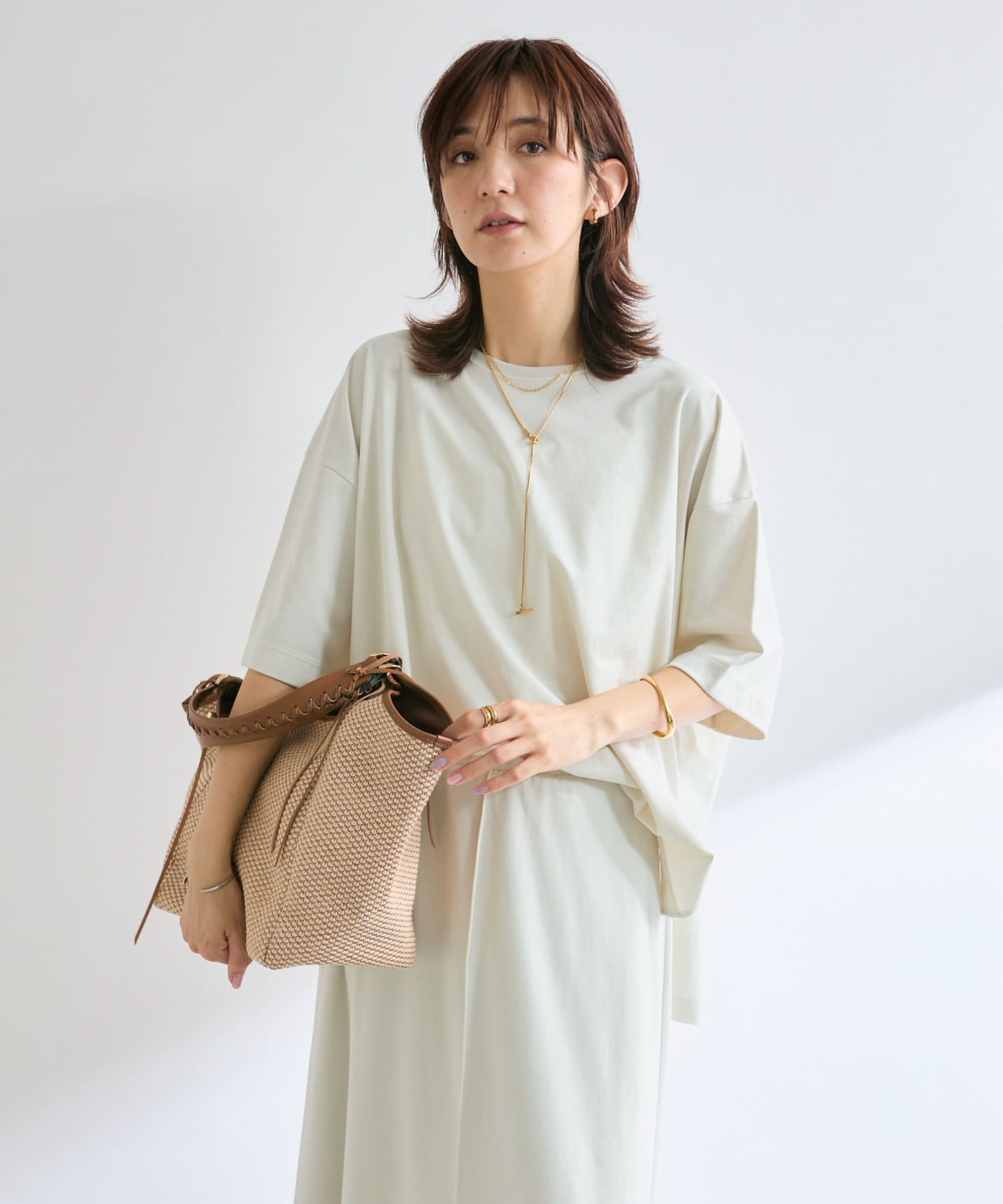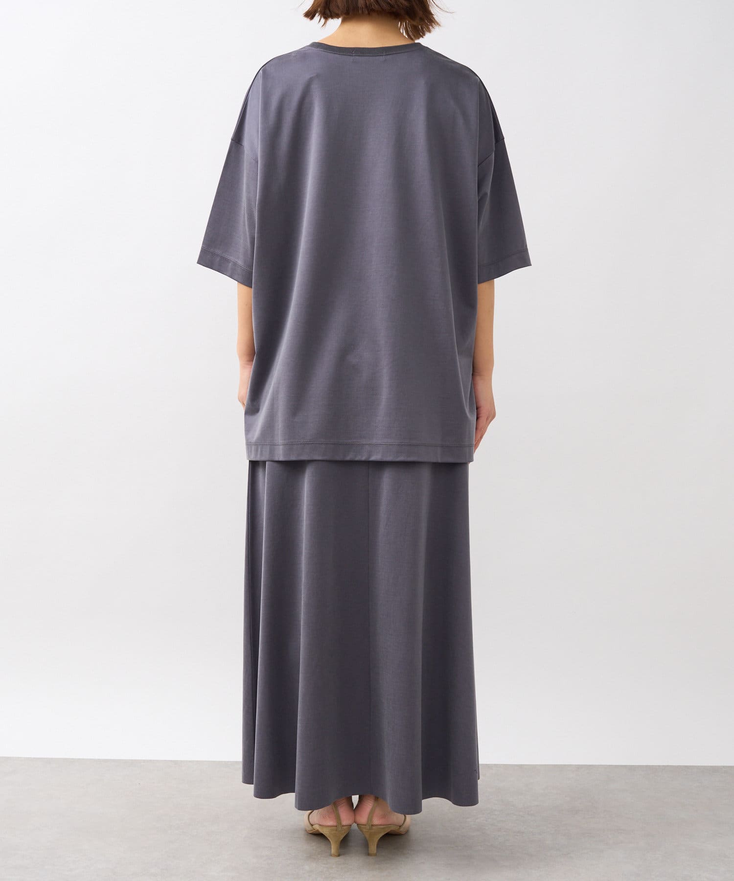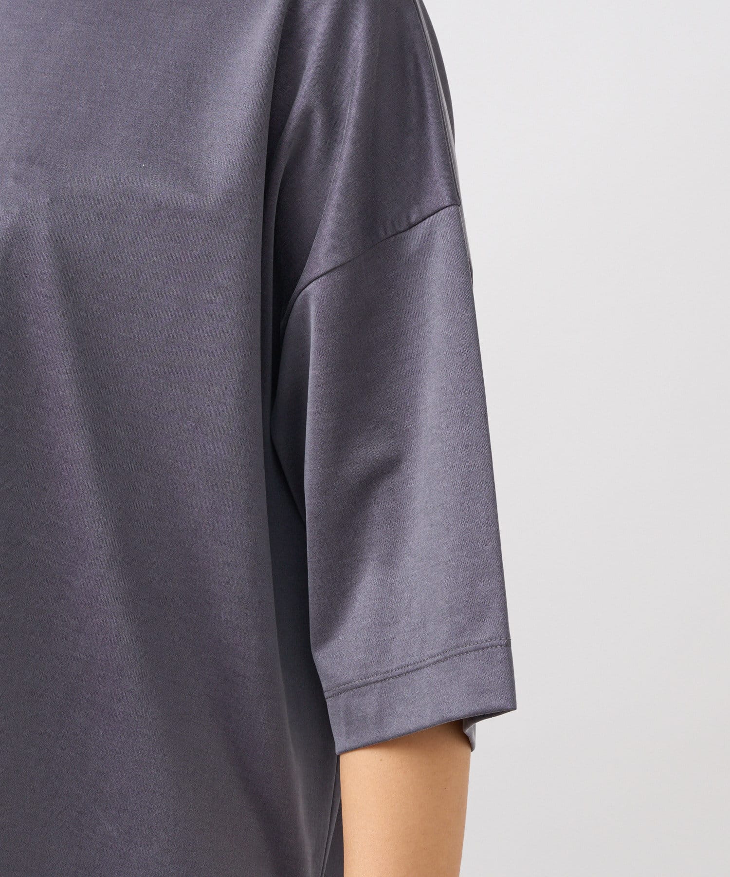 滑らかなシルキータッチで着心地もよく、程よいとろみのシンプルなオーバーT。