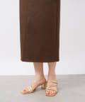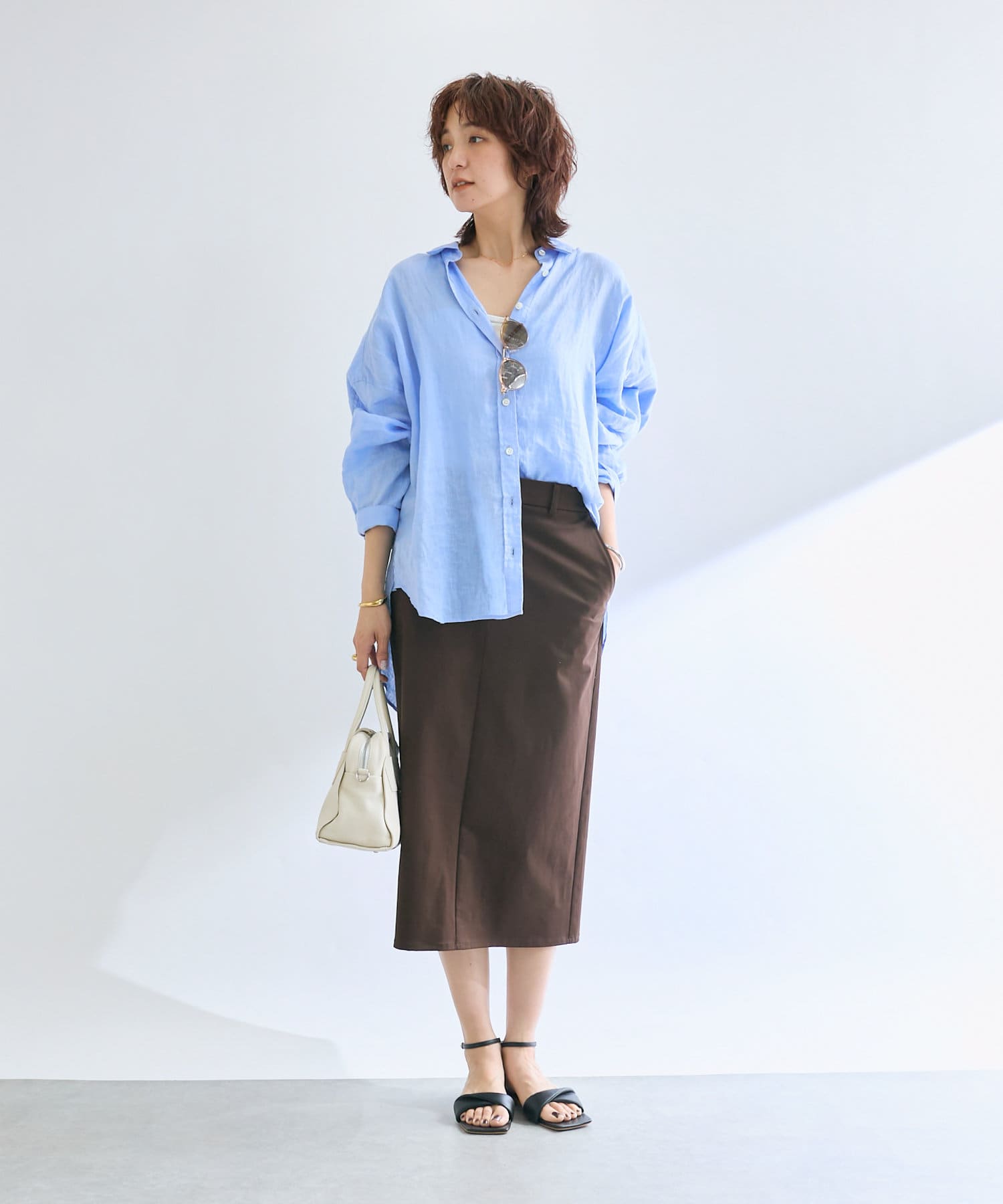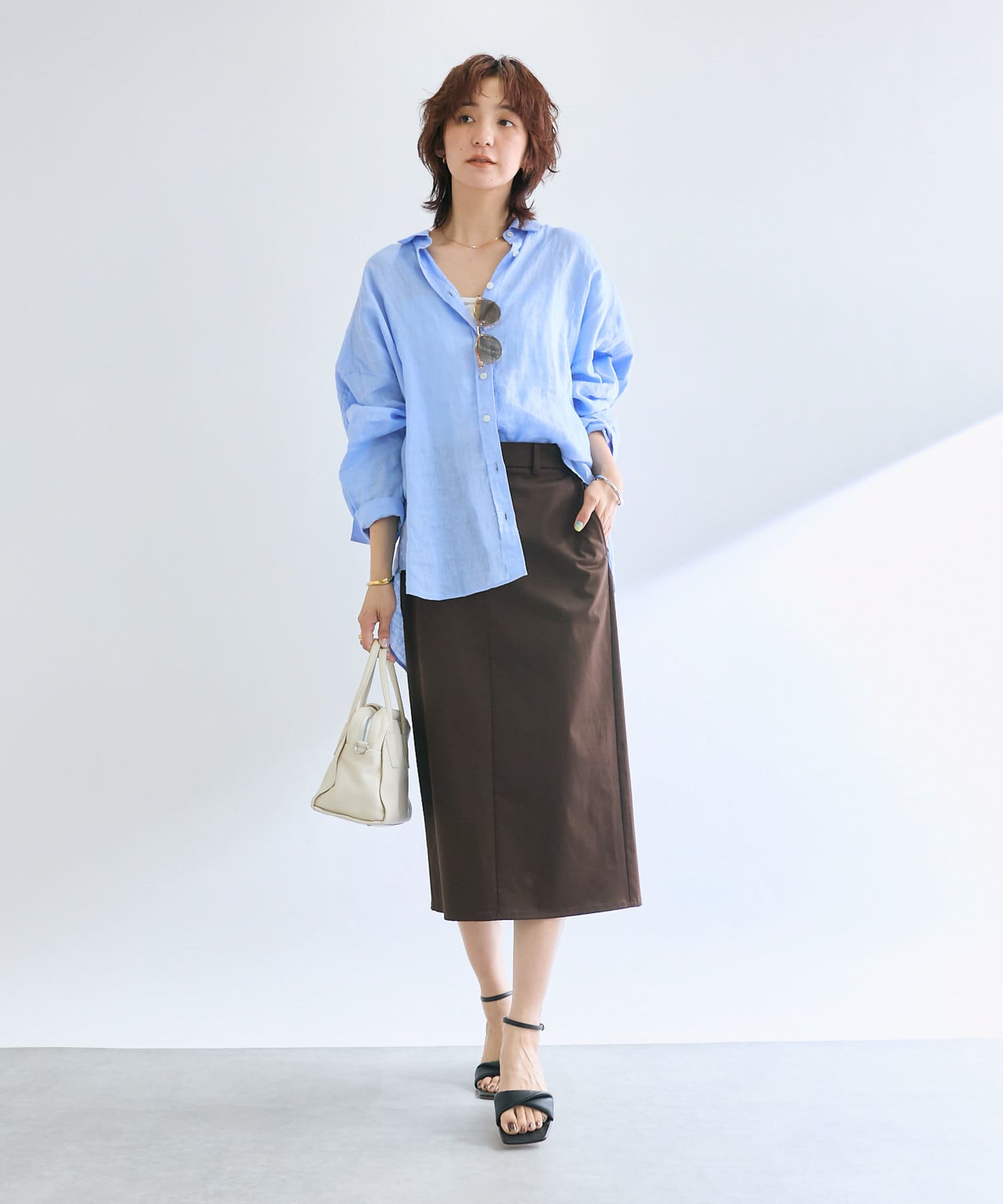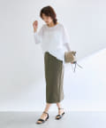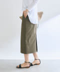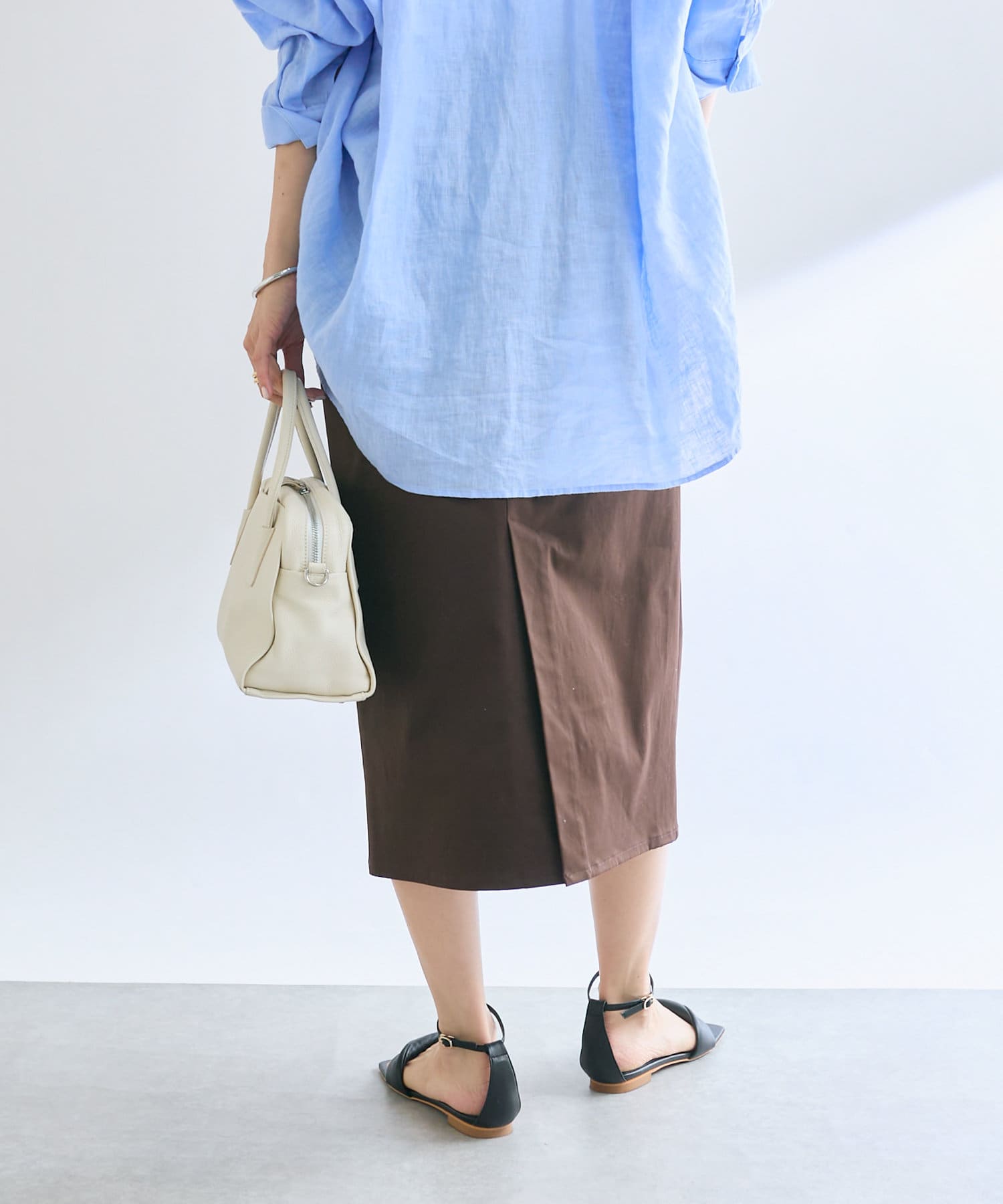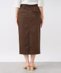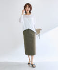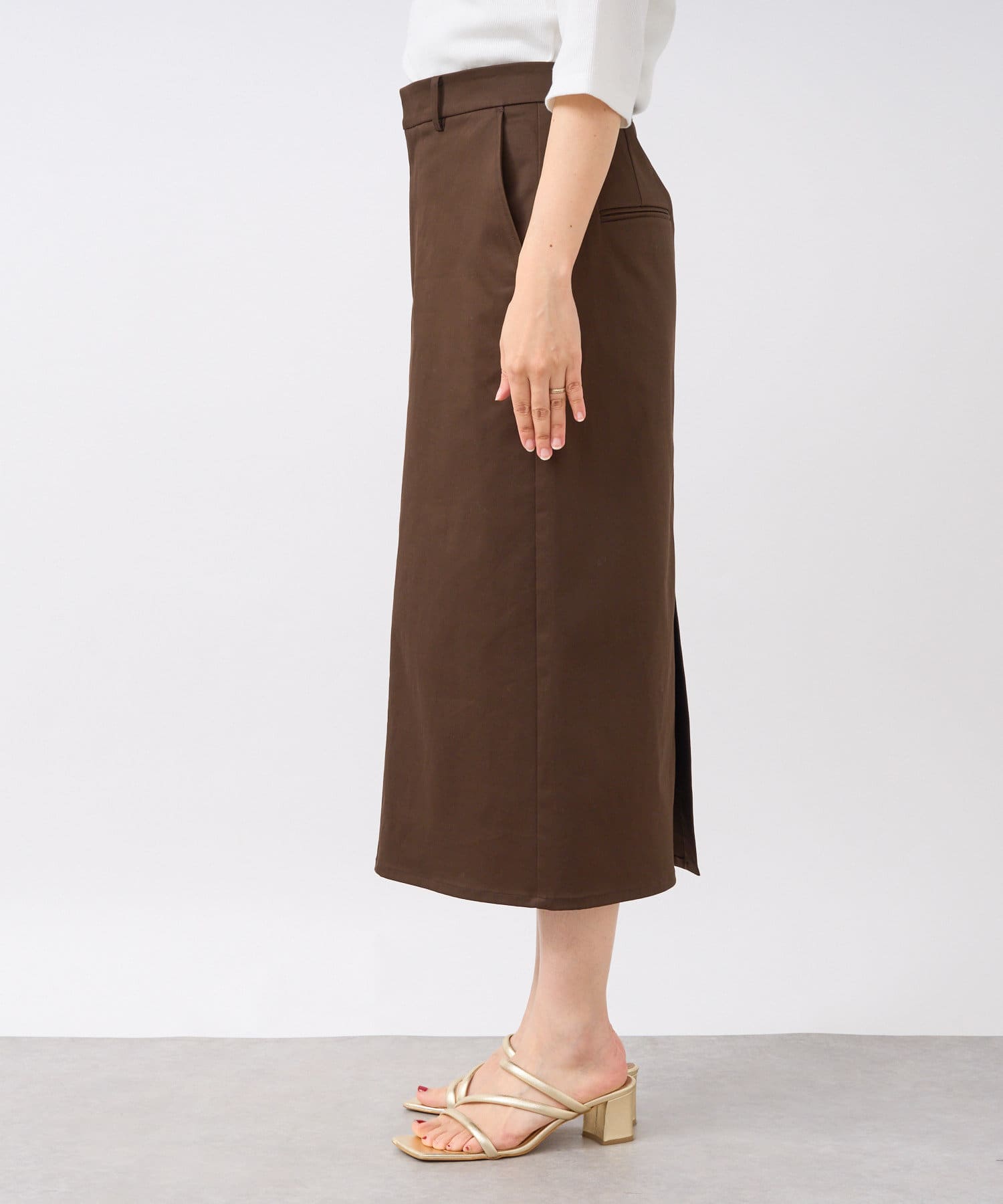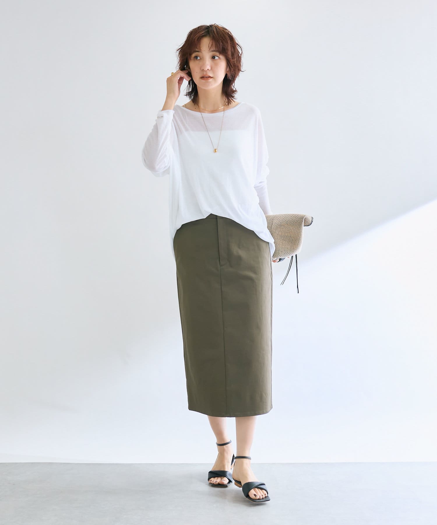 コットンサテンの光沢感がクリーンな印象のチノタイトスカート。