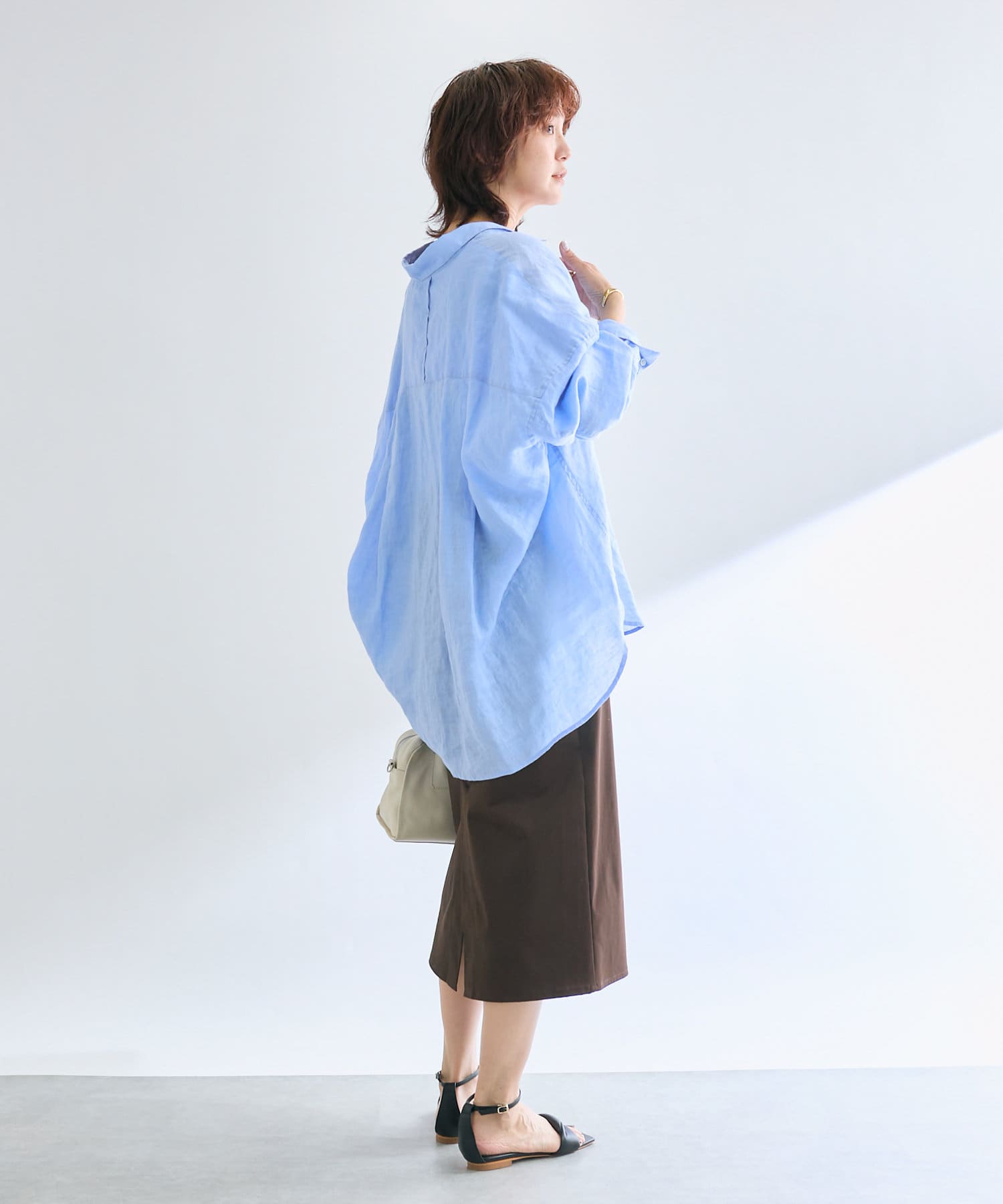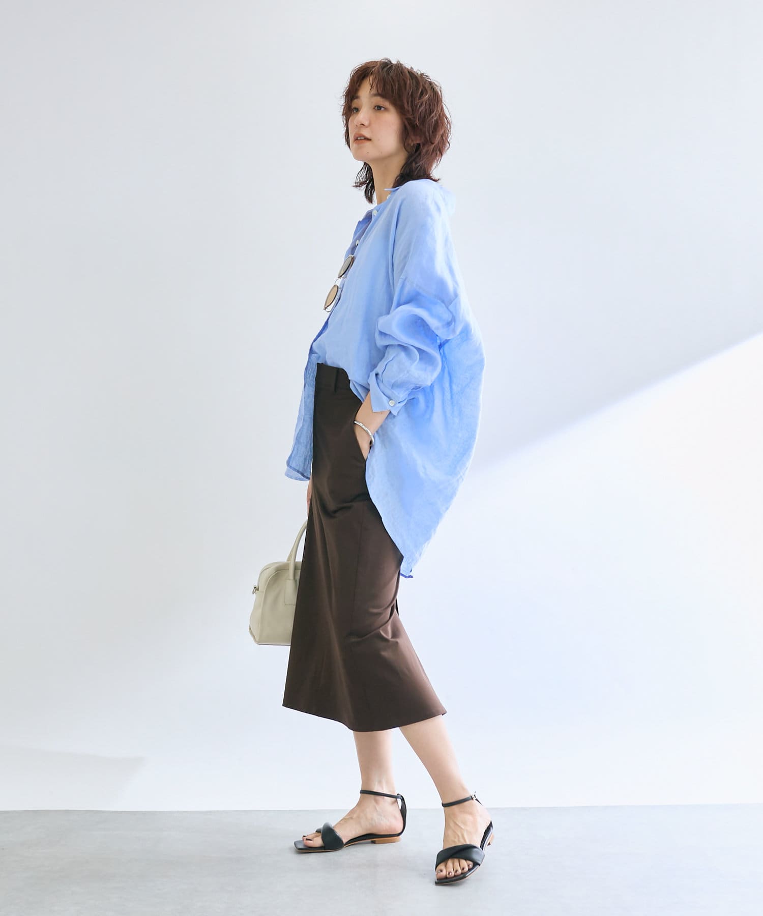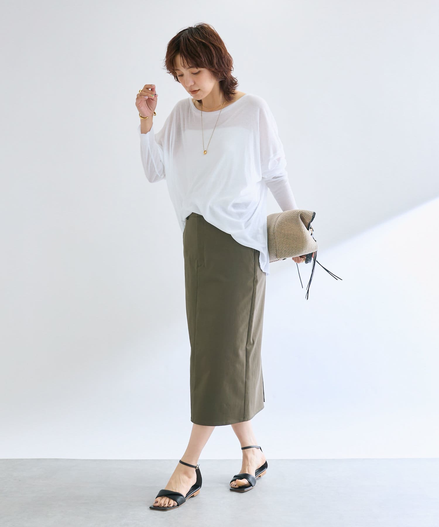 程よく厚みのある生地感で身体のラインを拾いにくいのもポイント◎