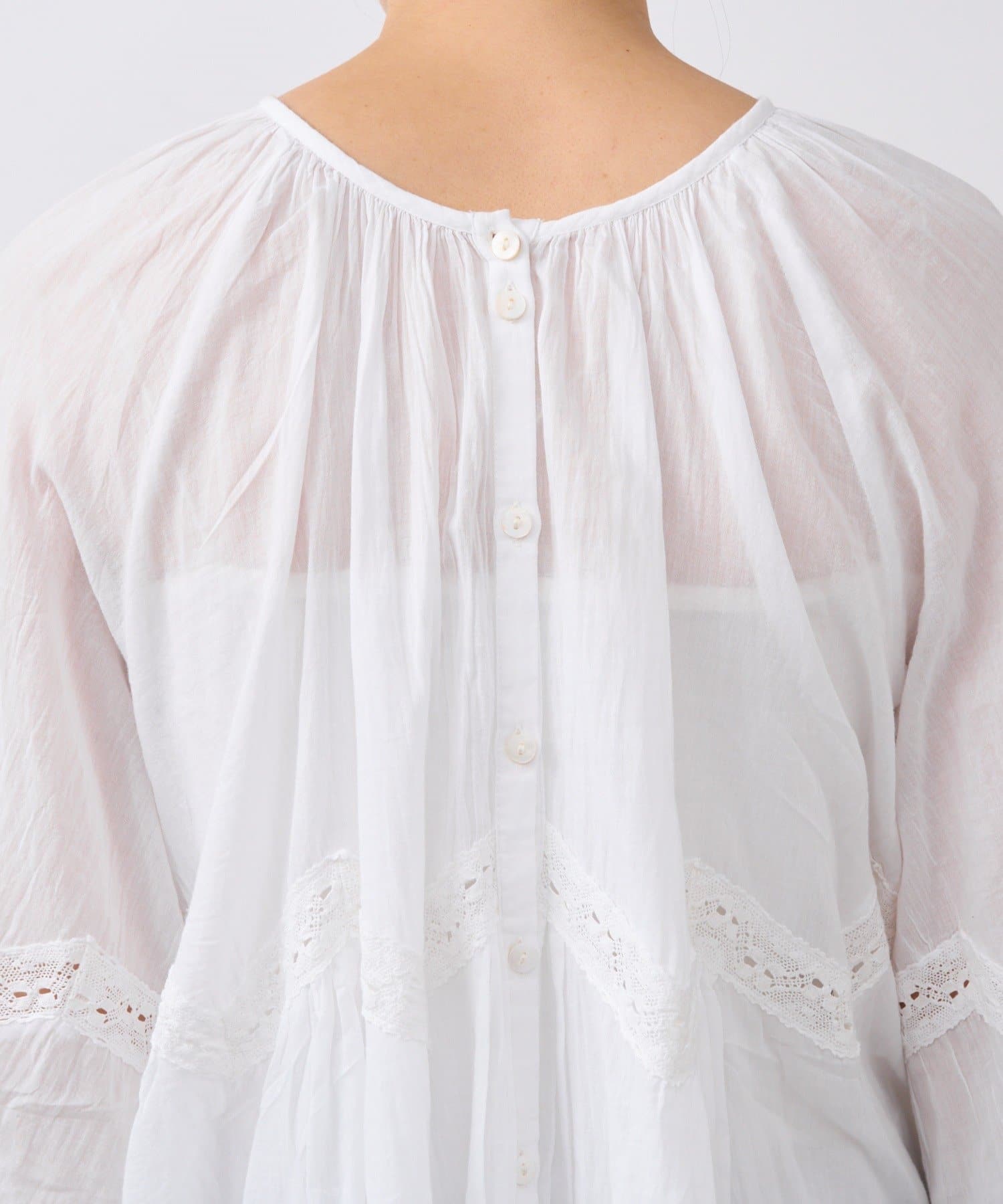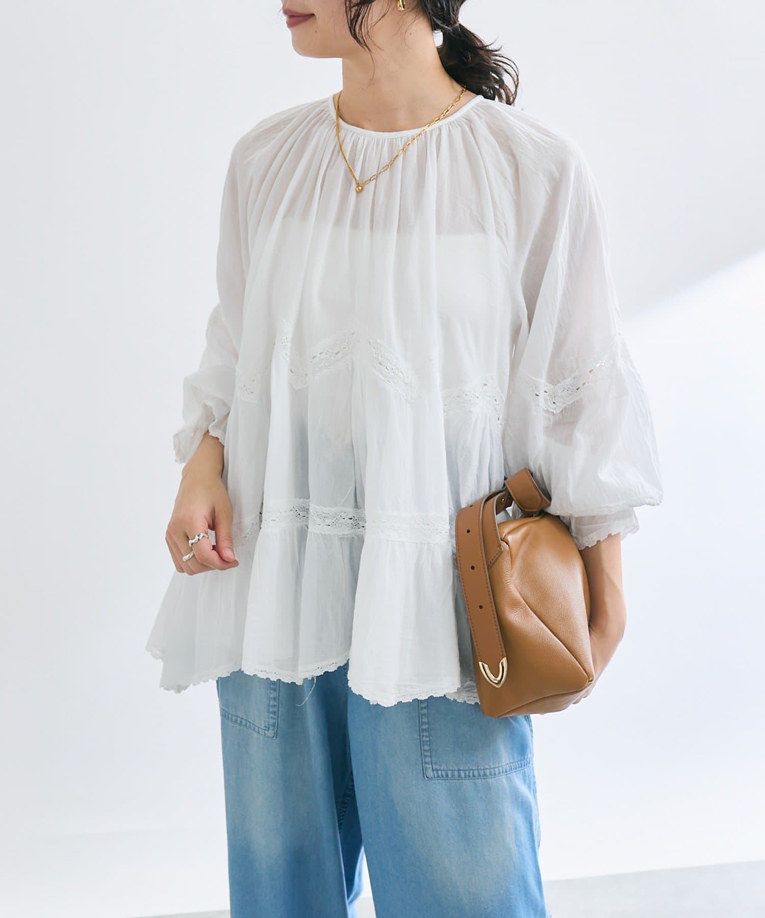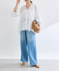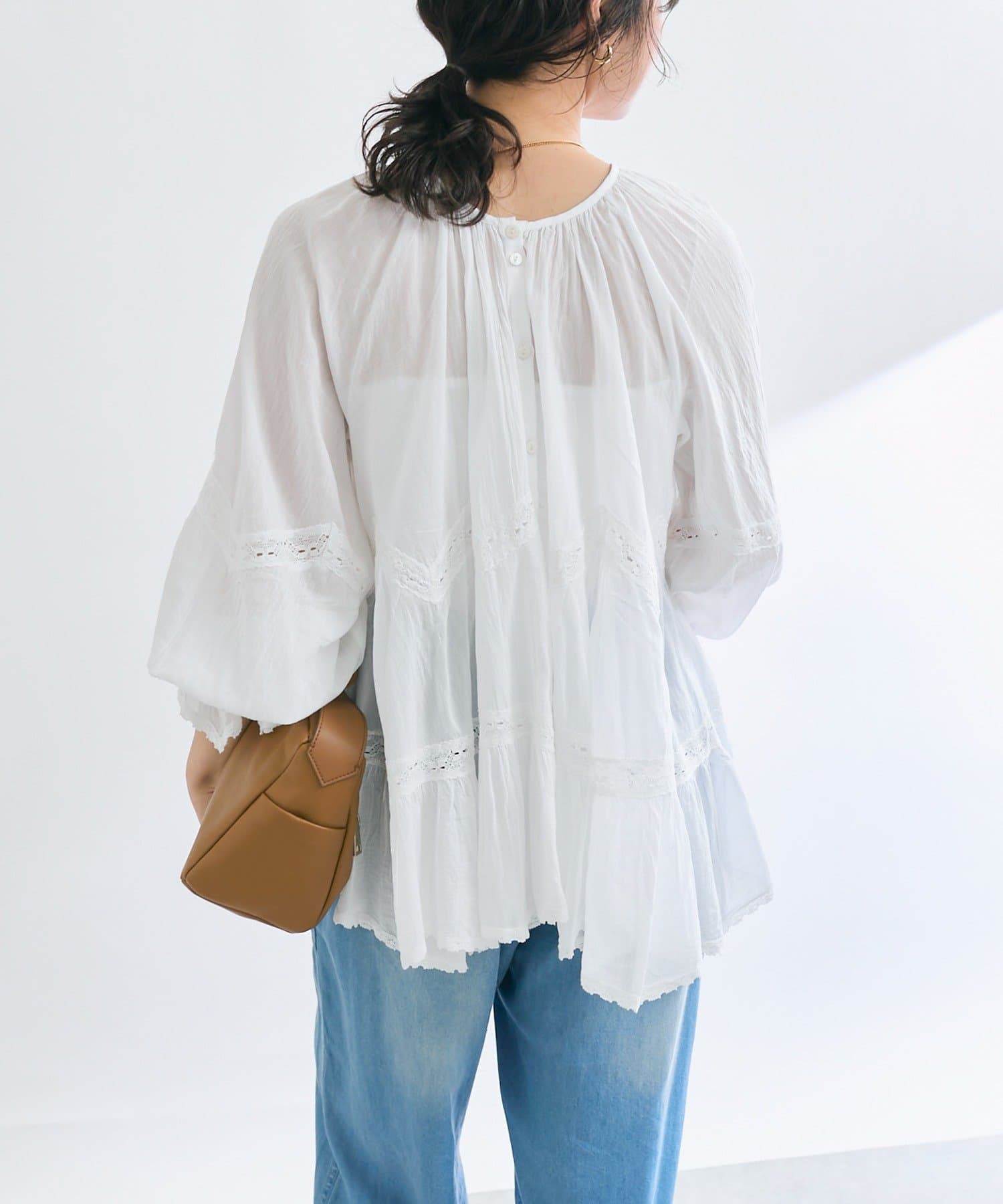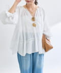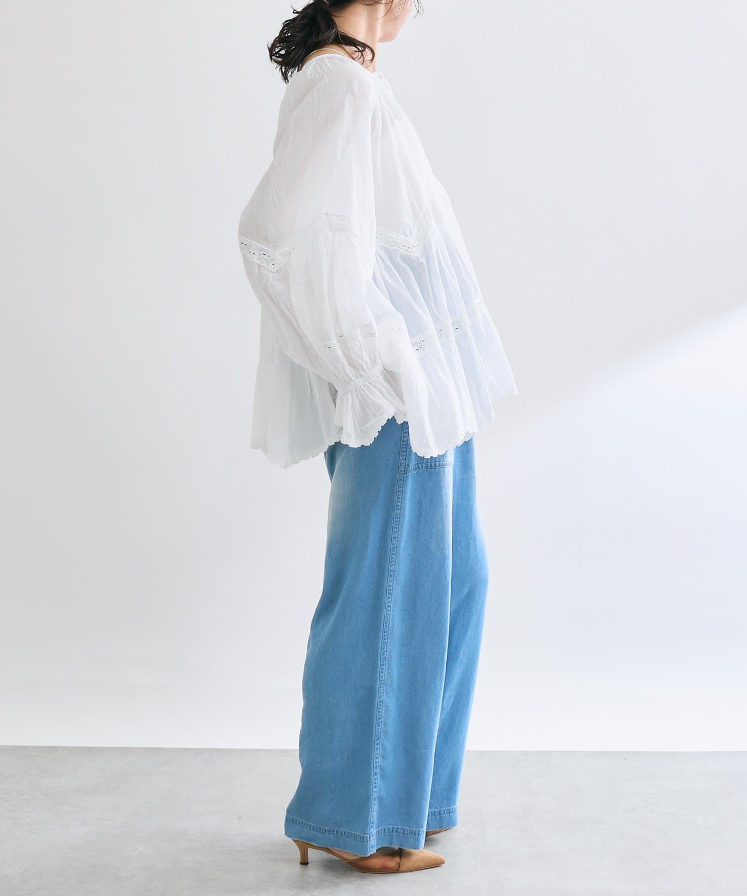 ふんわり軽やかな透け感と刺繍レースが映えるブラウス