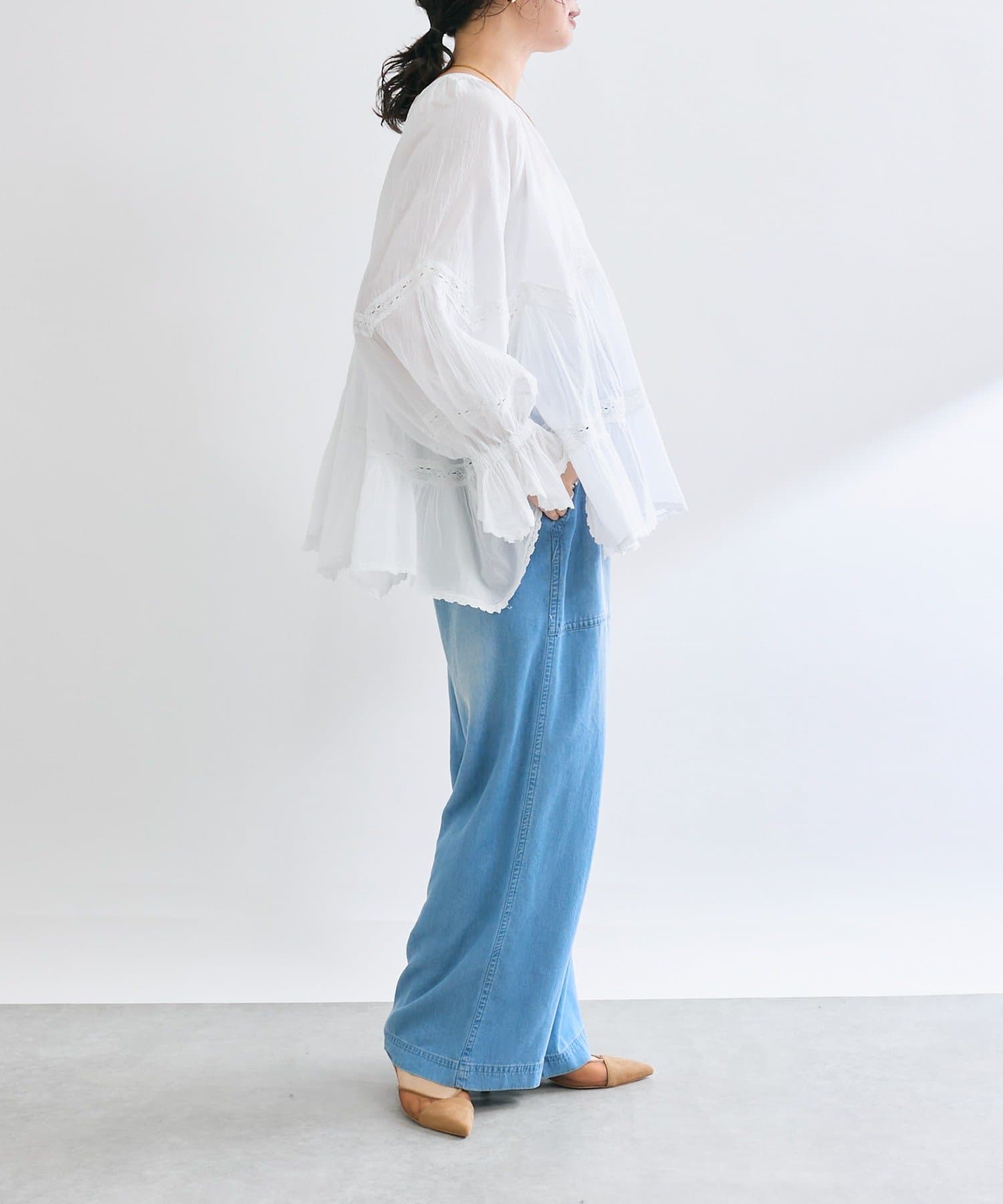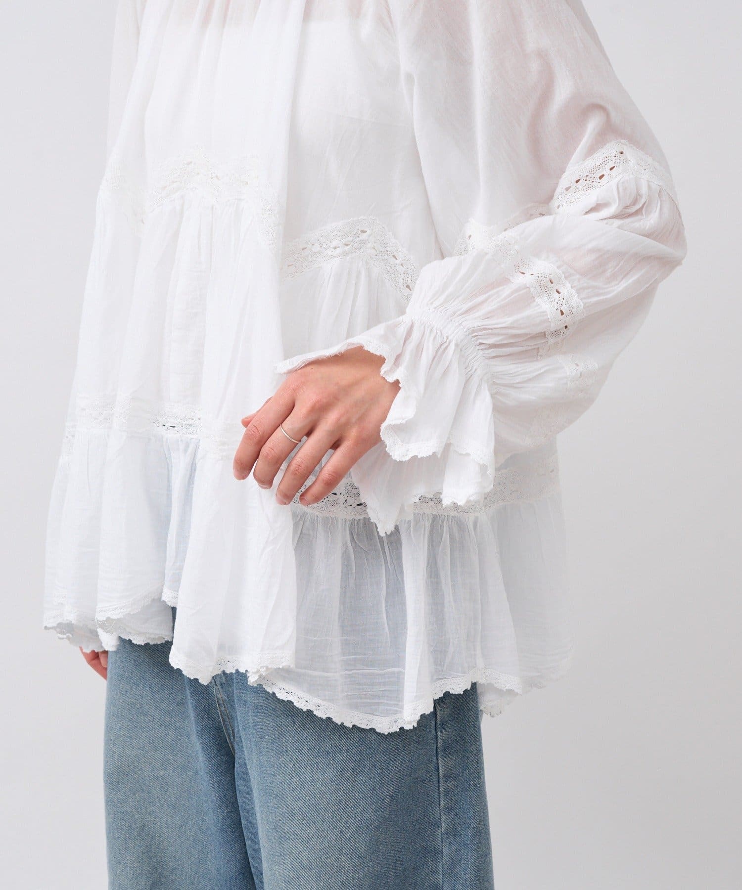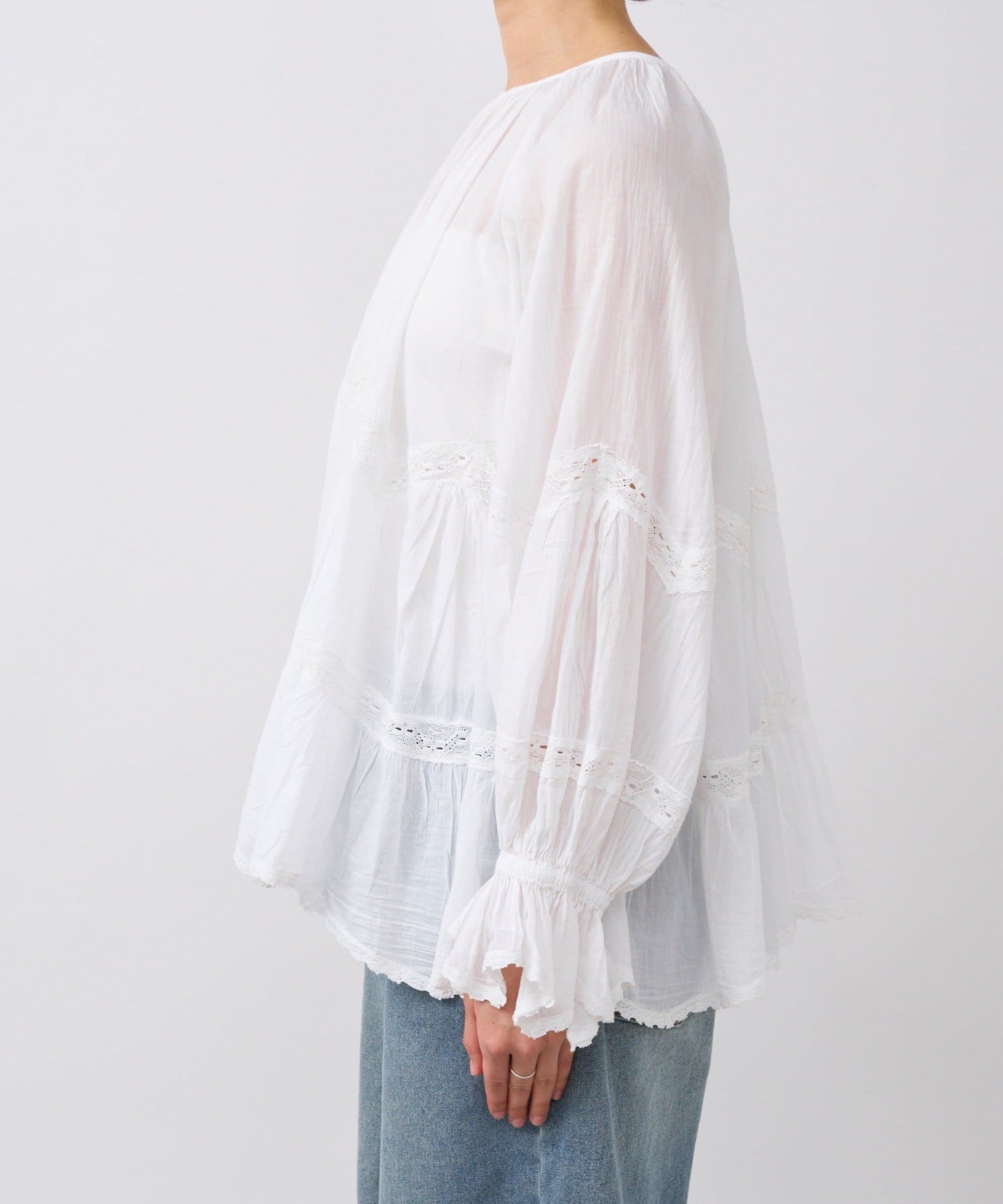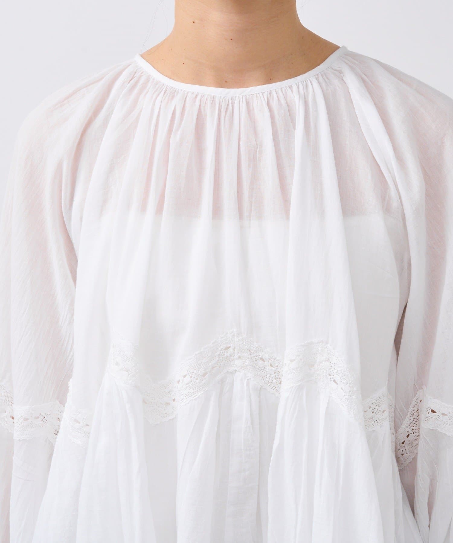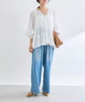 ふんわり軽やかな透け感と刺繍レースが映えるブラウス