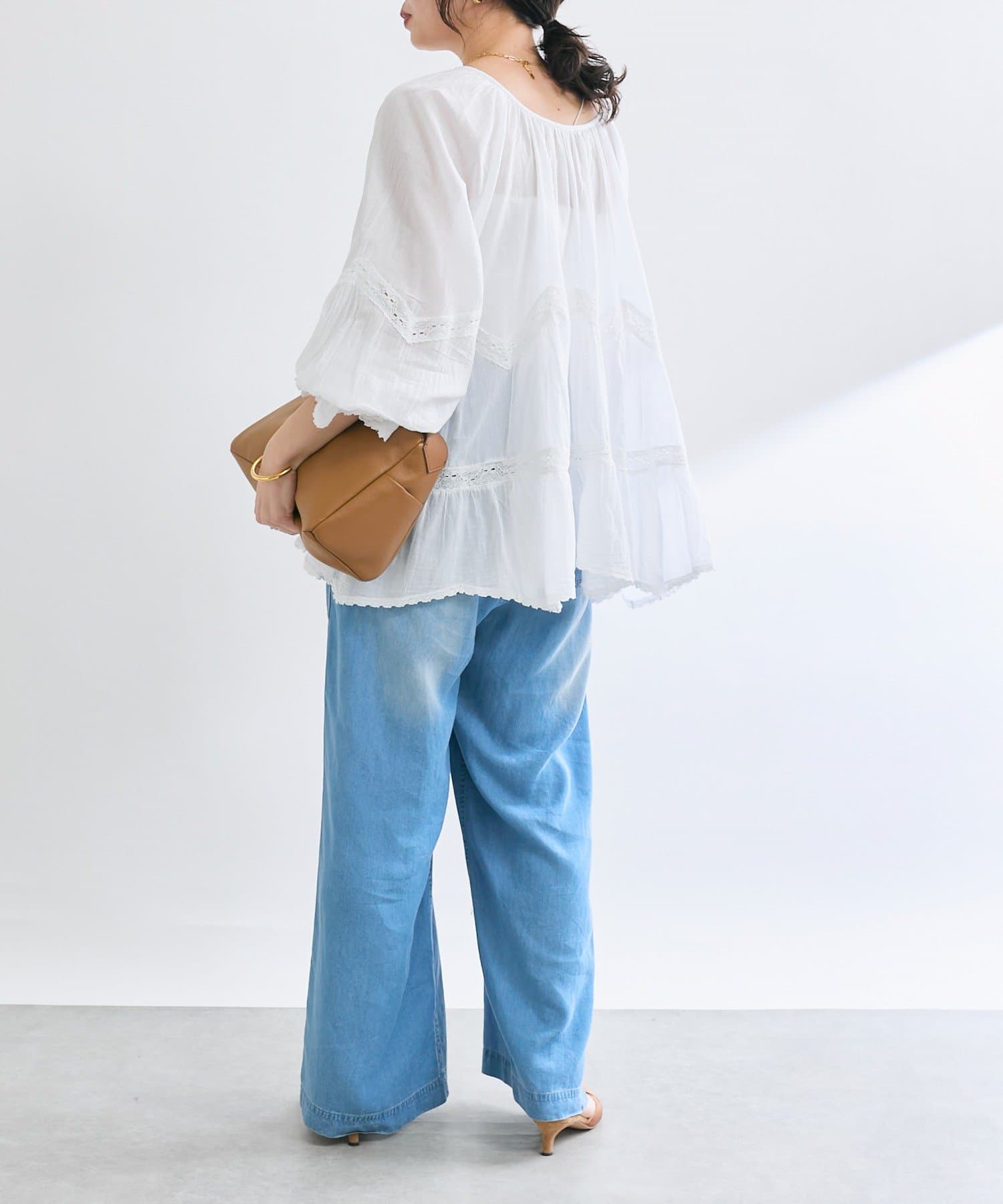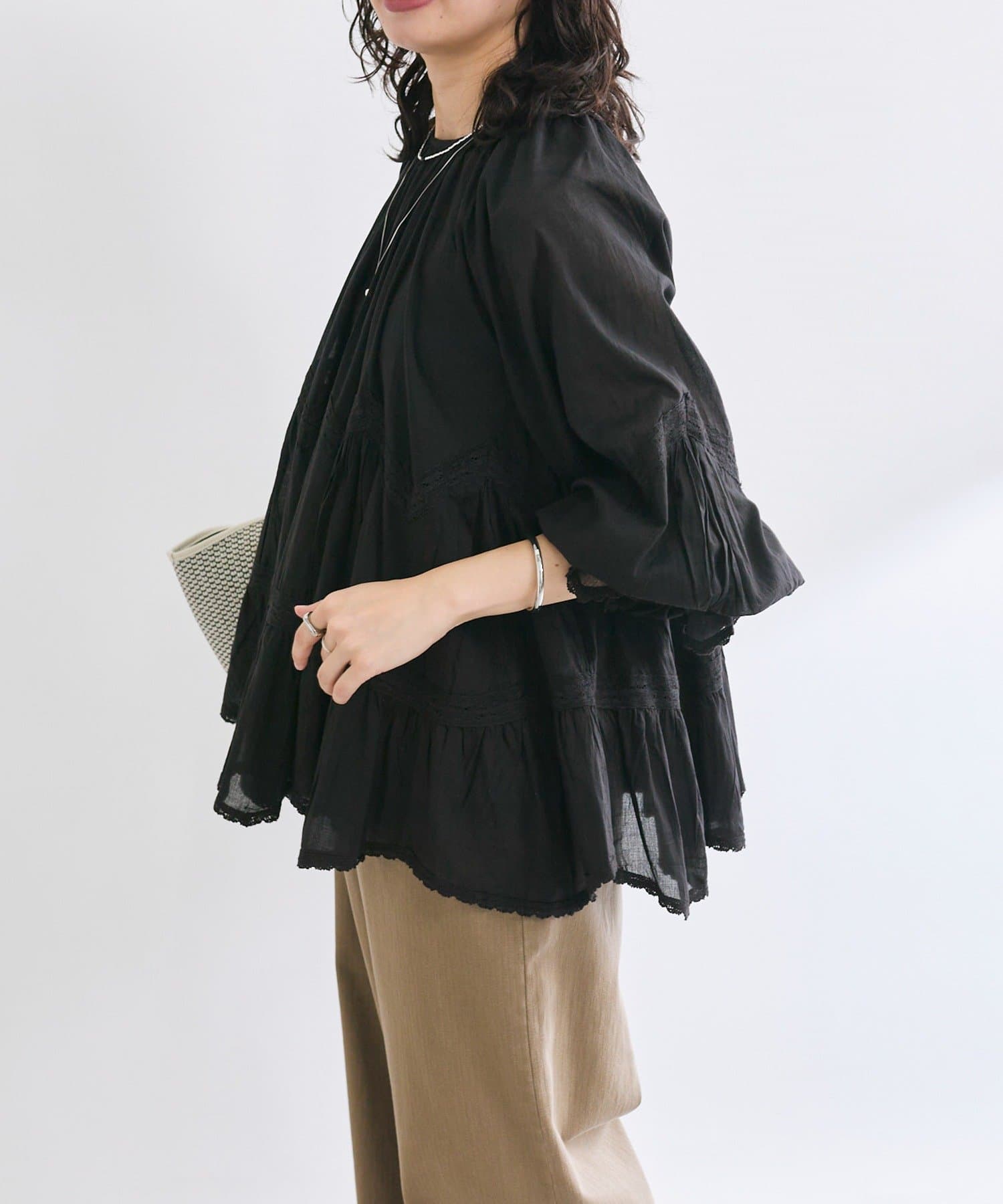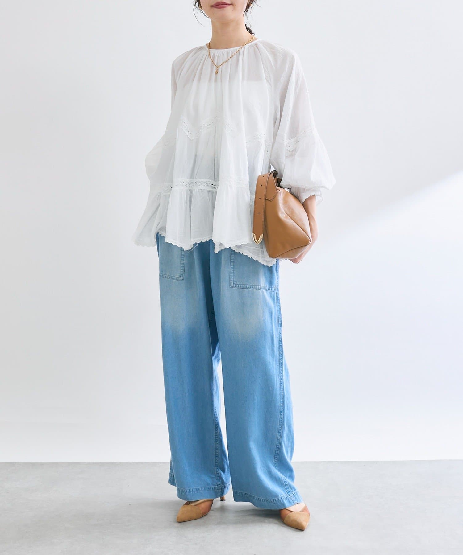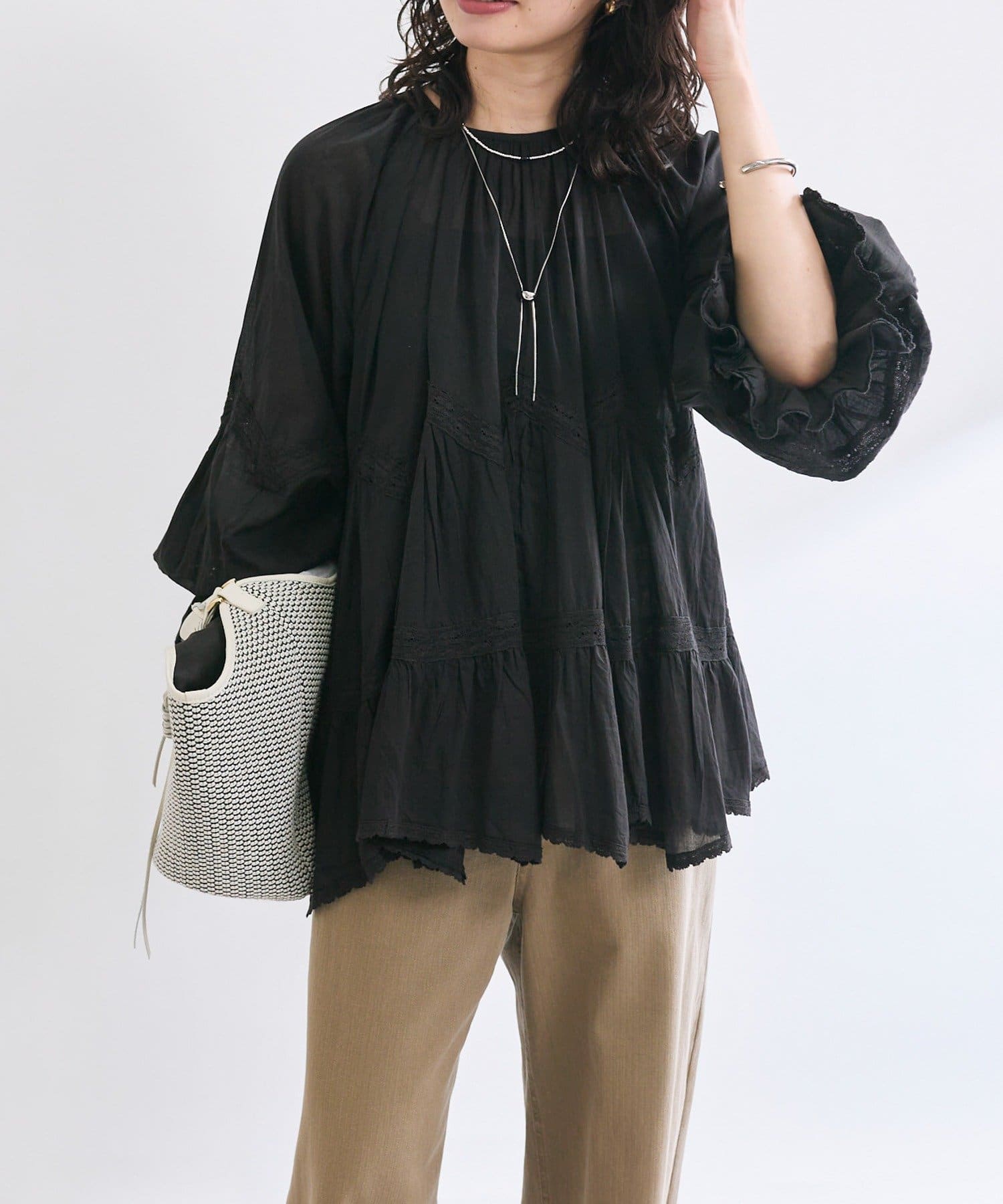 • ふんわり軽やかな透け感と刺繍レースが映えるブラウス