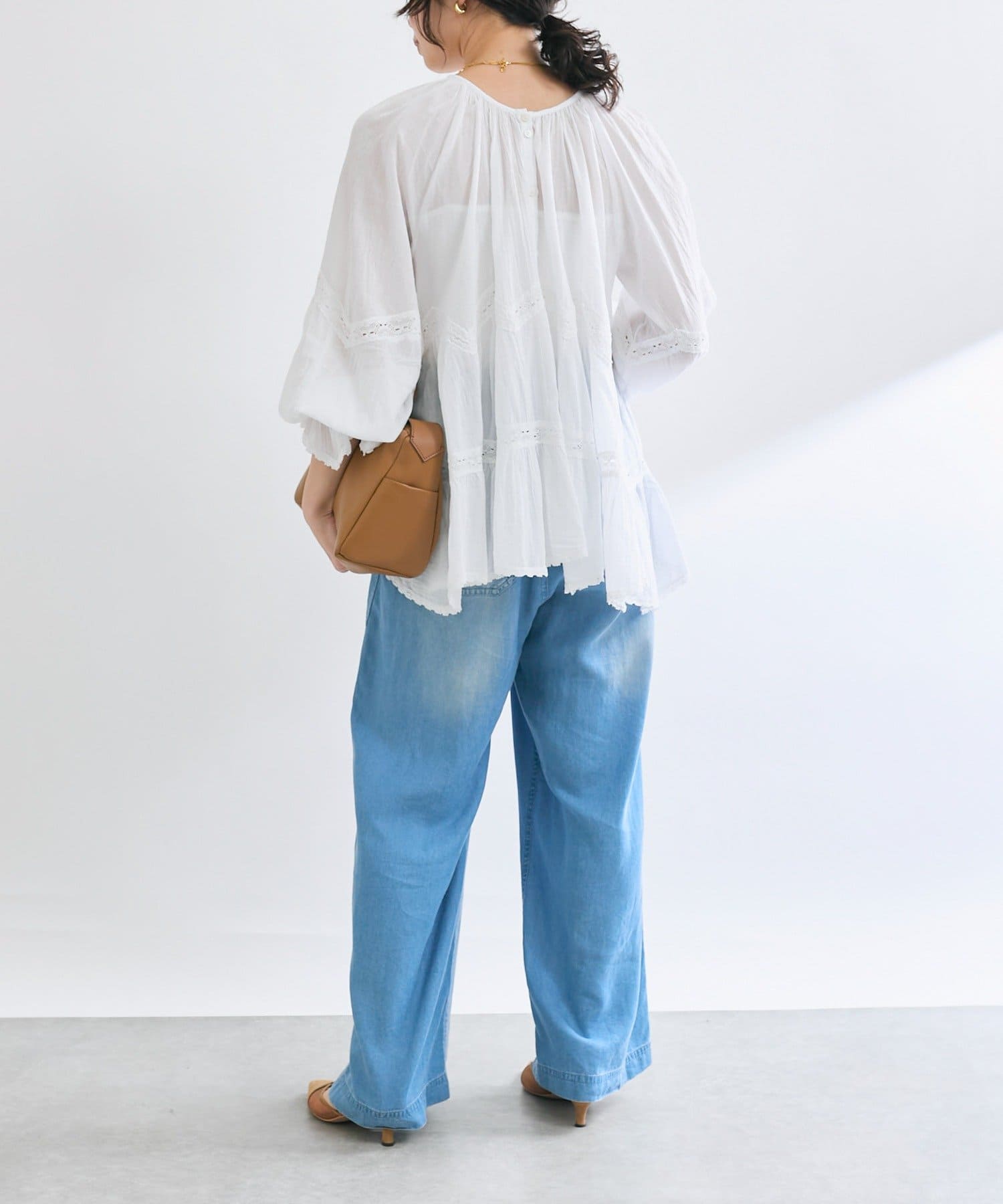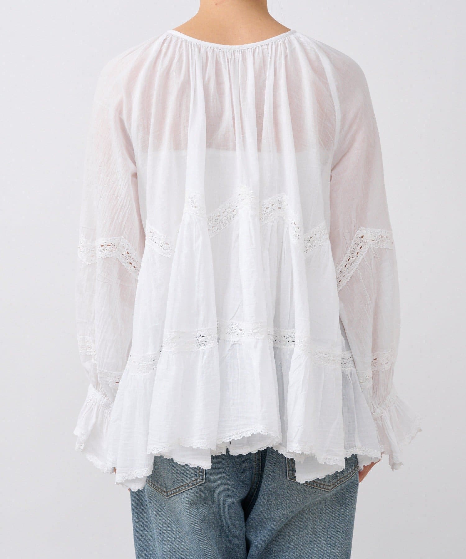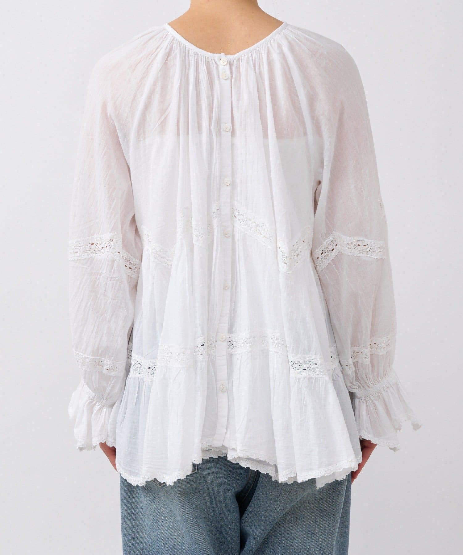 • ふんわり軽やかな透け感と刺繍レースが映えるブラウス