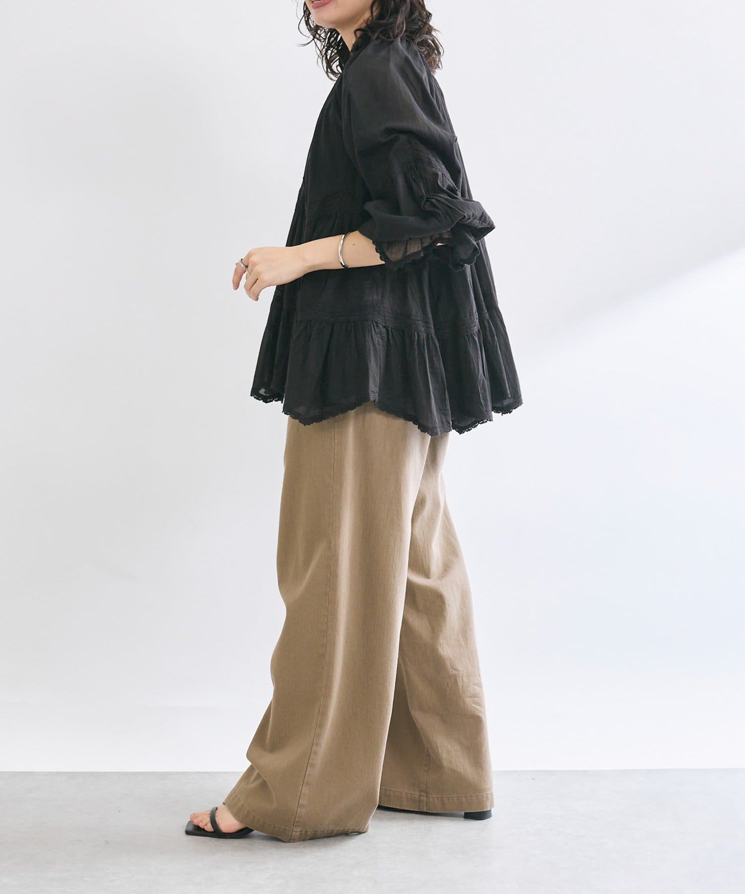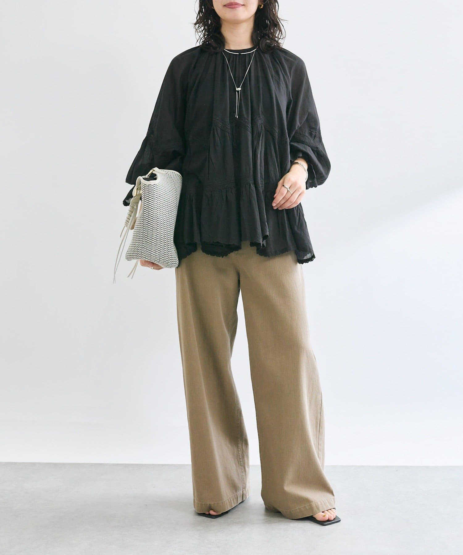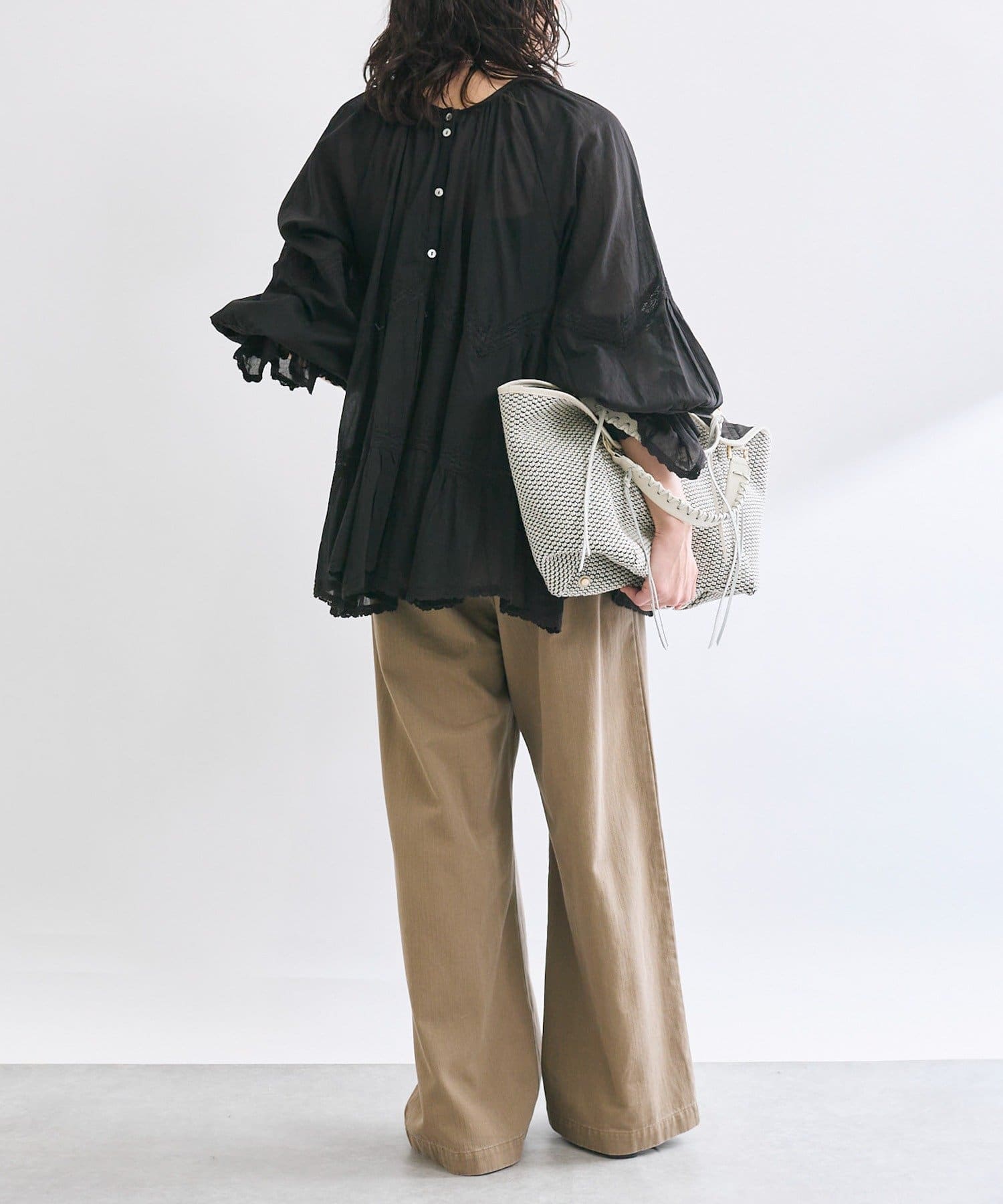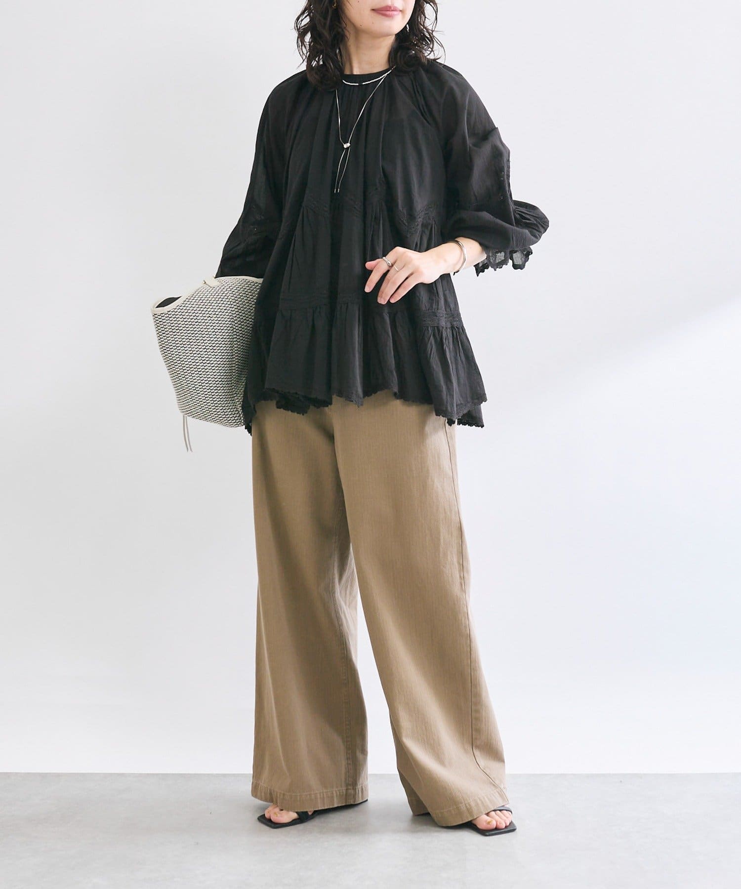 • ふんわり軽やかな透け感と刺繍レースが映えるブラウス
