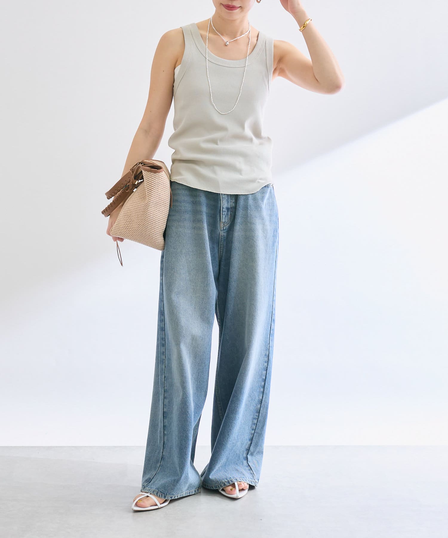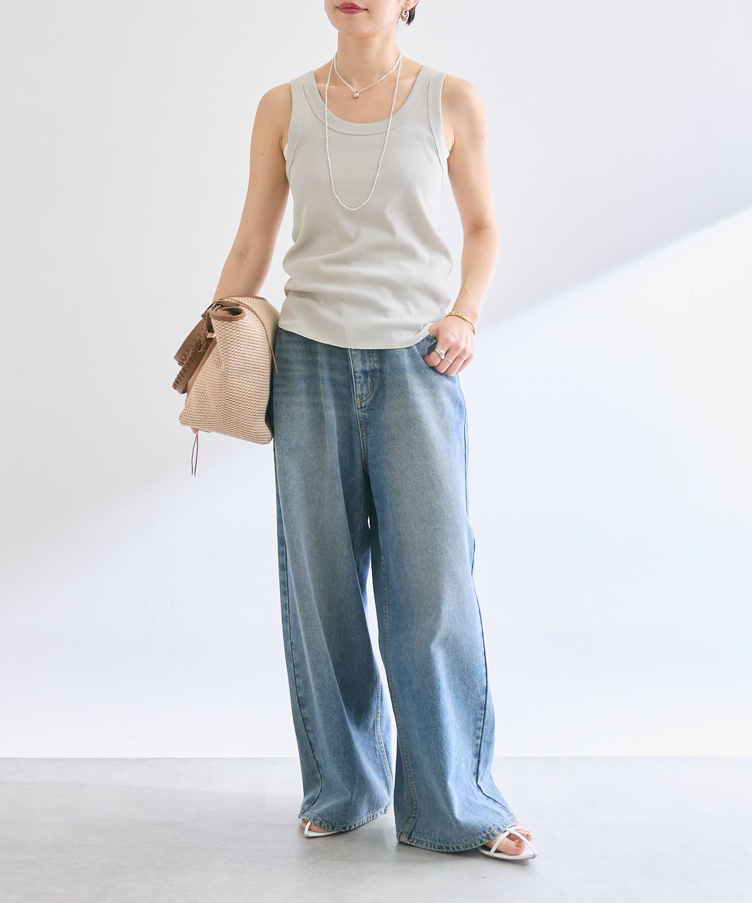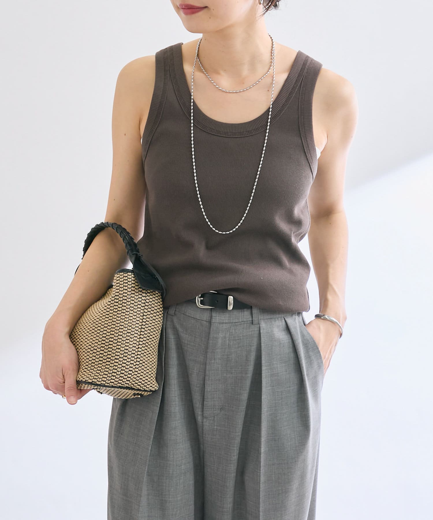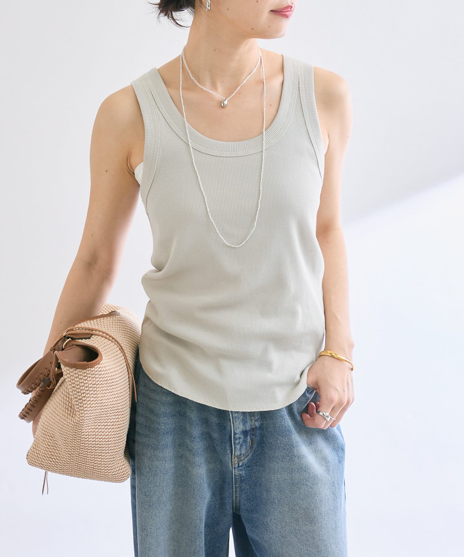 タンクトップは、Uネックタンクとアメスリタンクの異なる表情で着用可能。