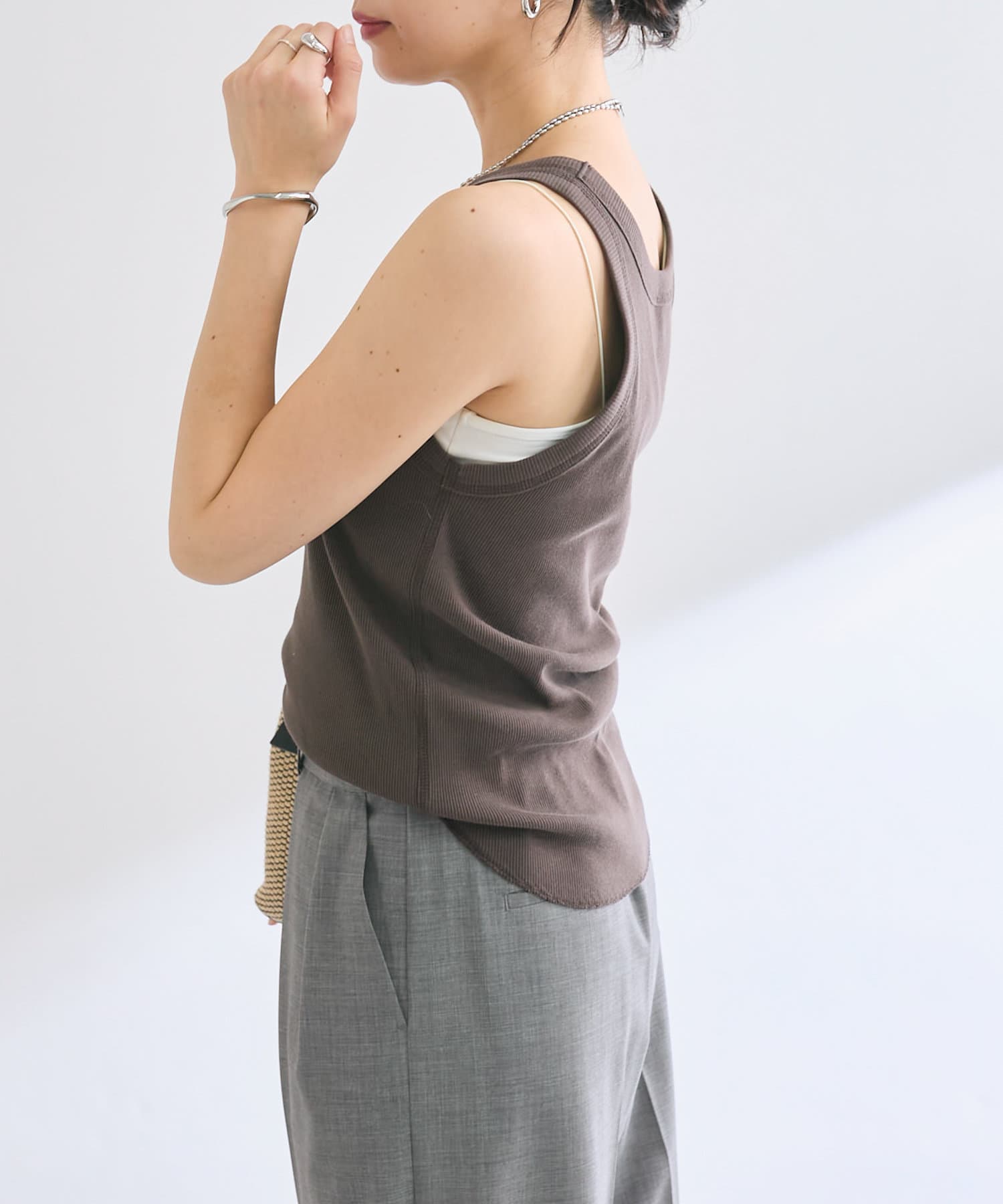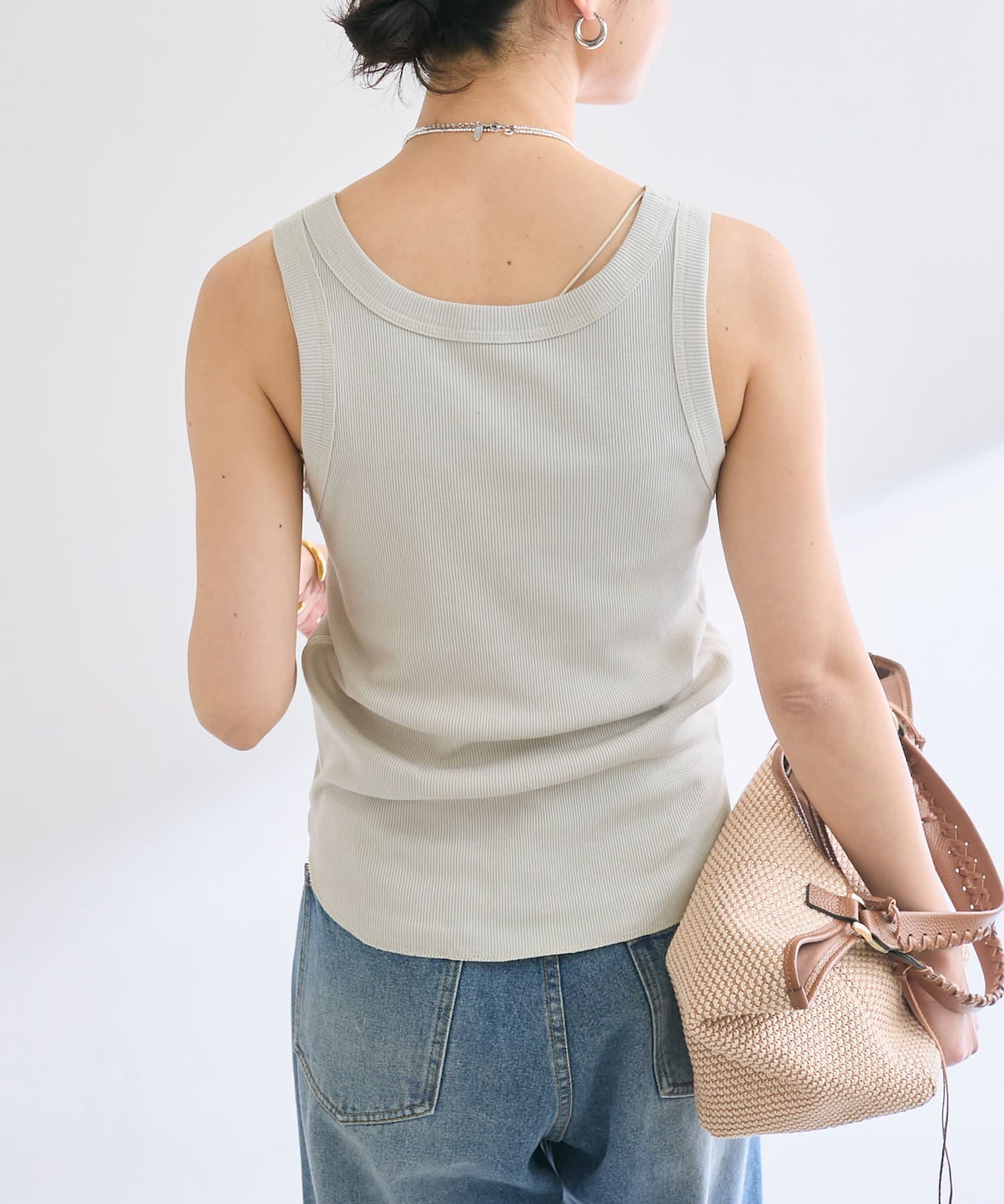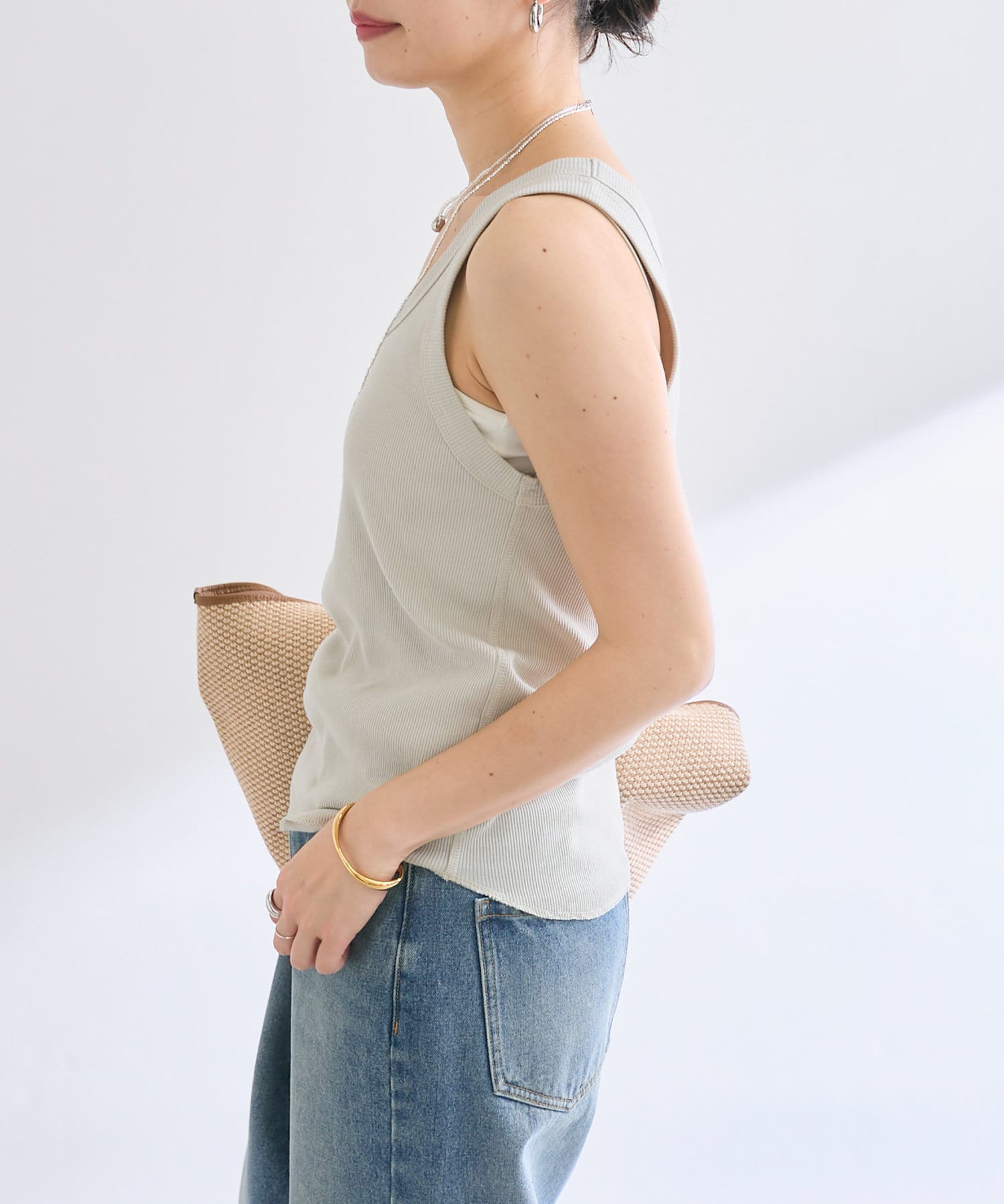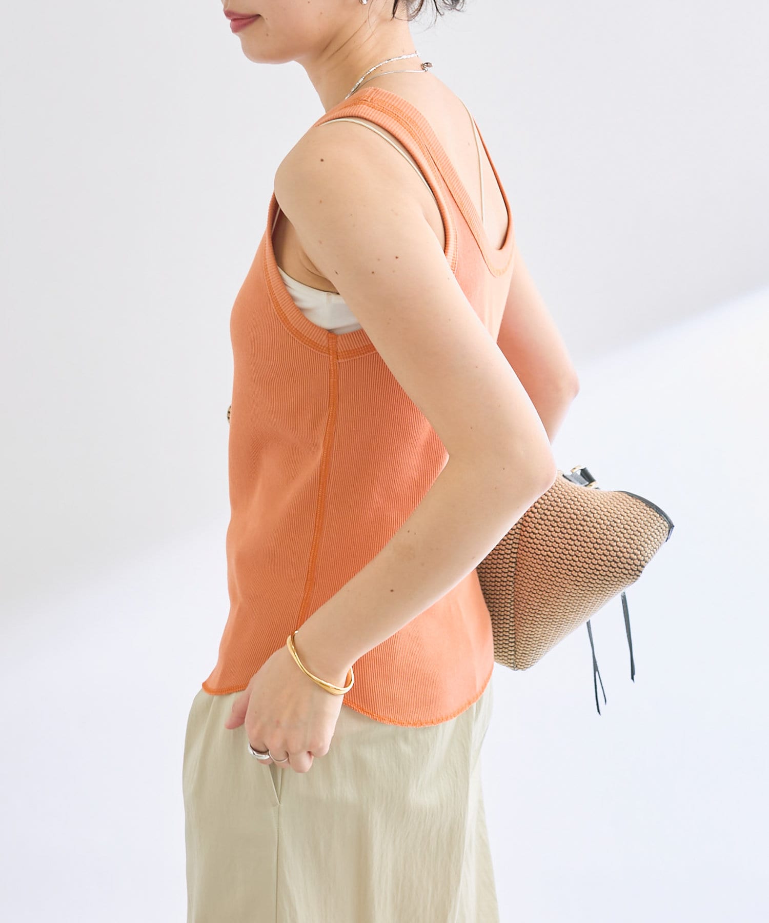 タンクトップは、Uネックタンクとアメスリタンクの異なる表情で着用可能。