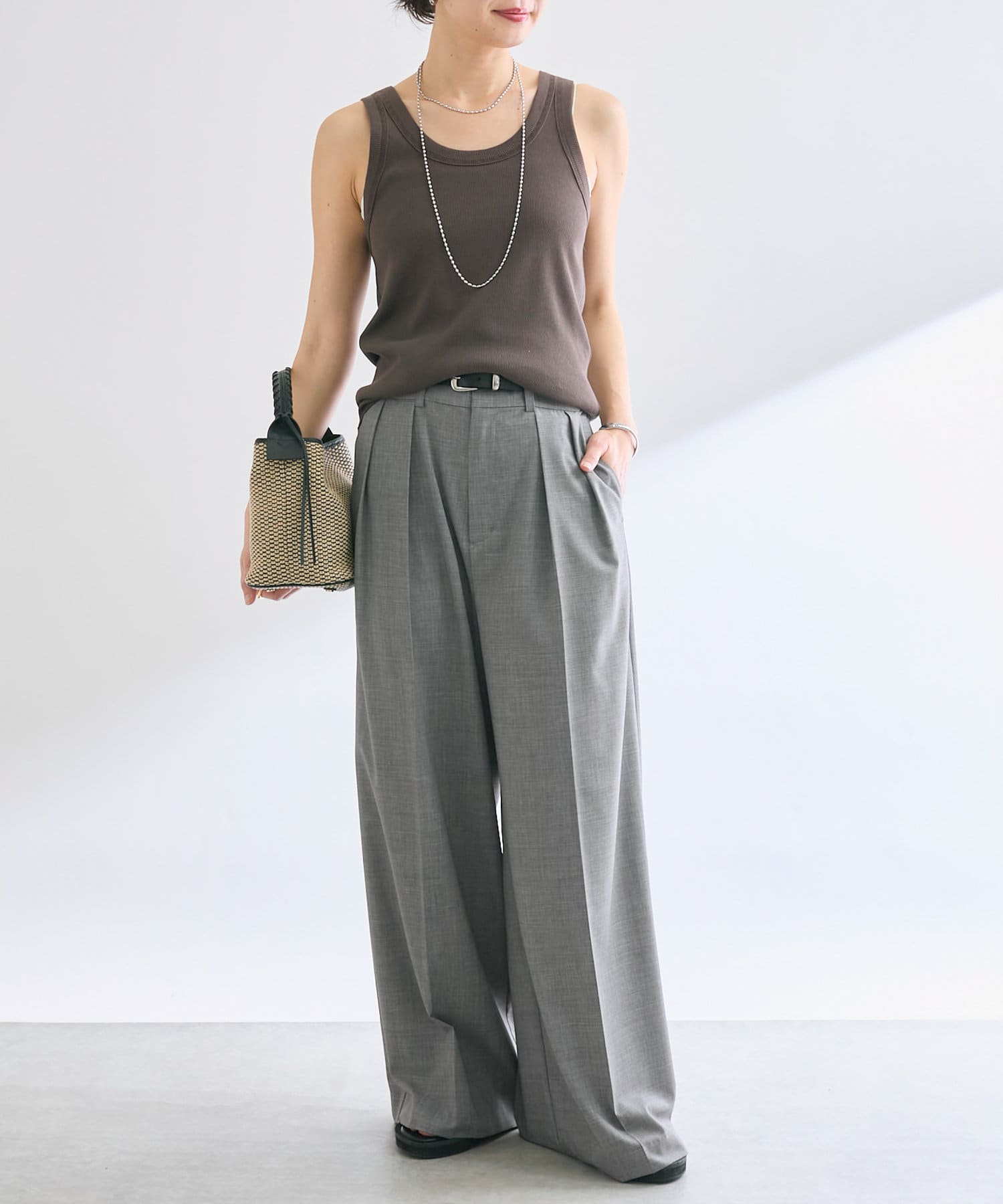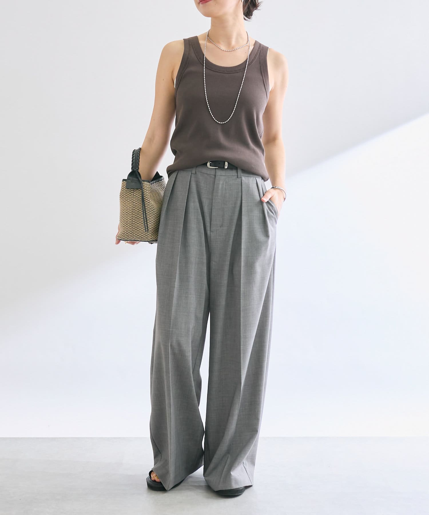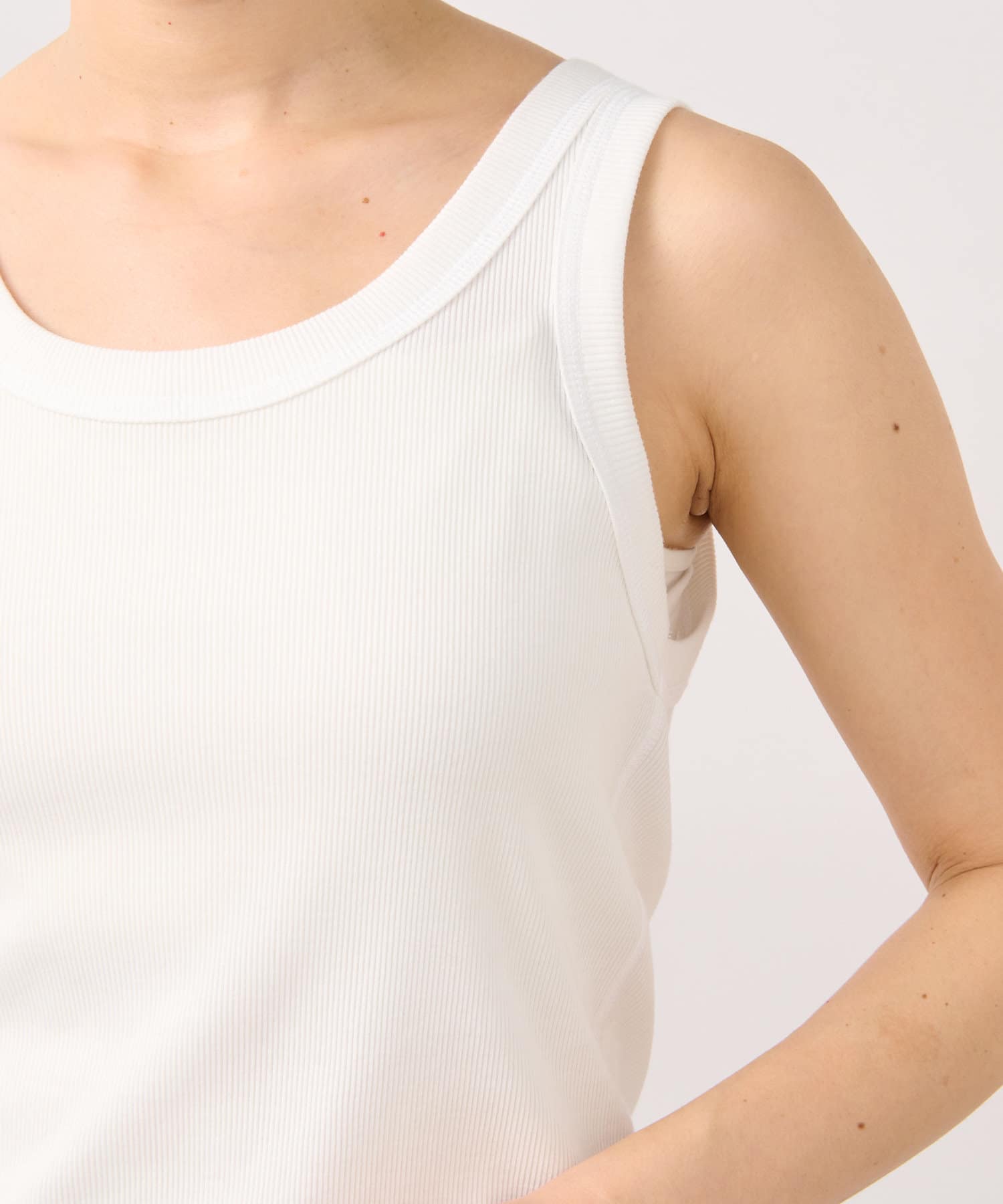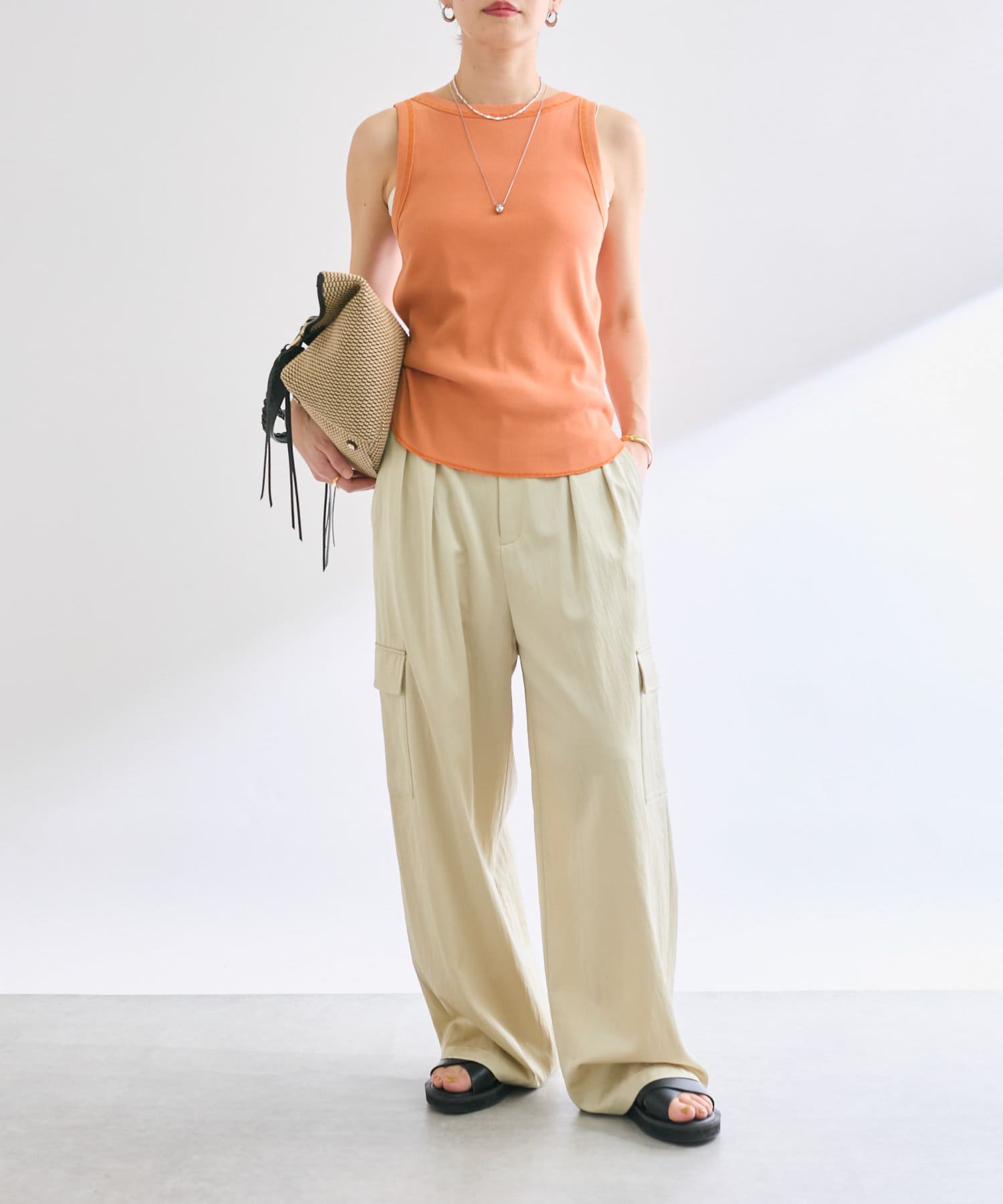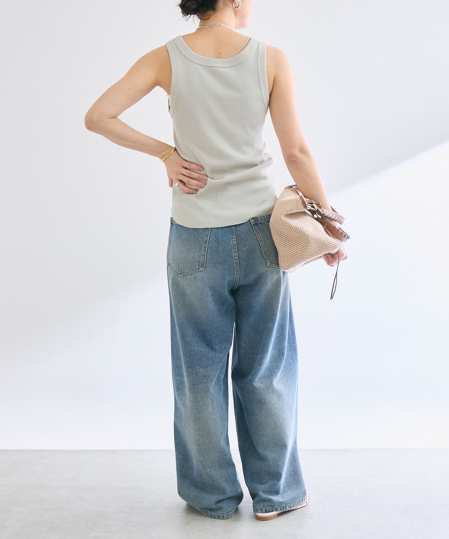 タンクトップは、Uネックタンクとアメスリタンクの異なる表情で着用可能。