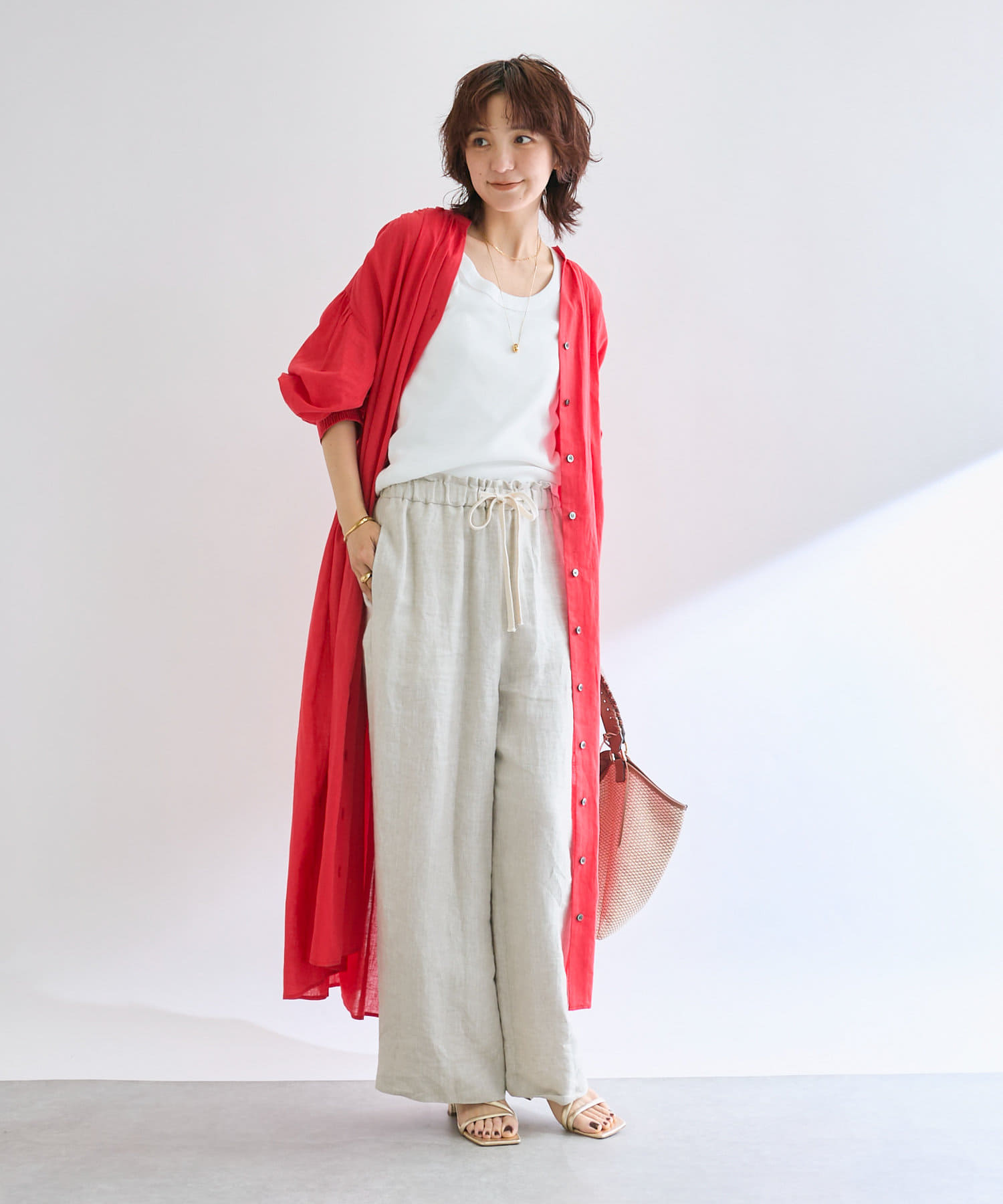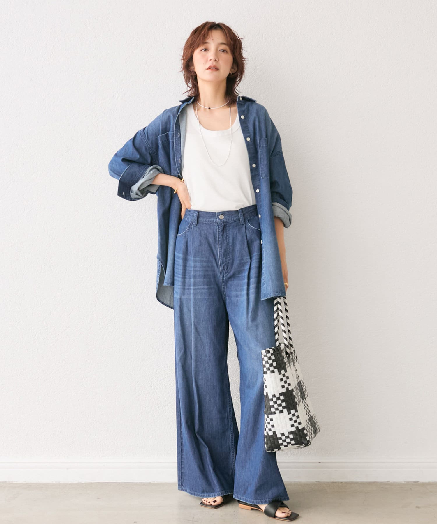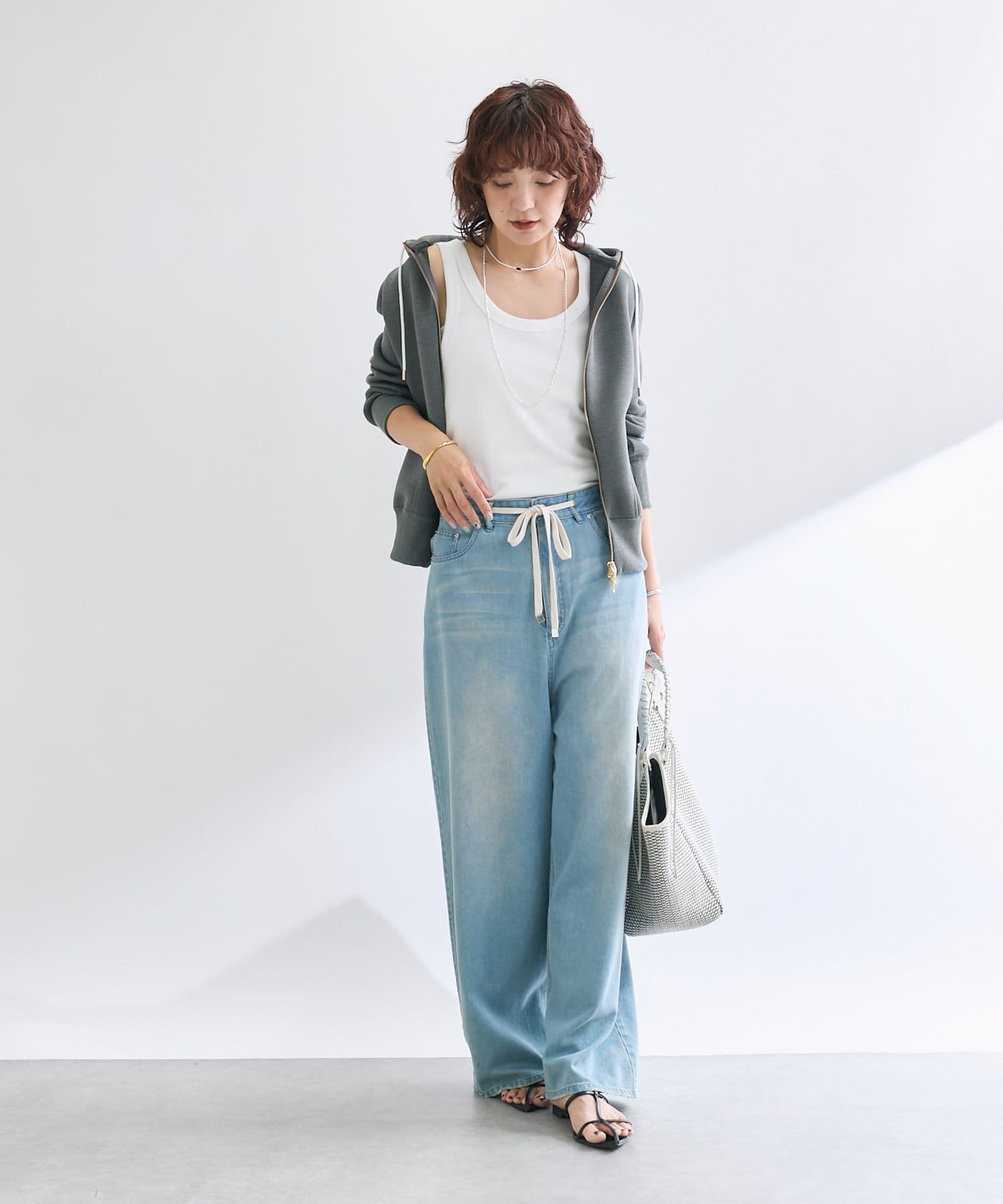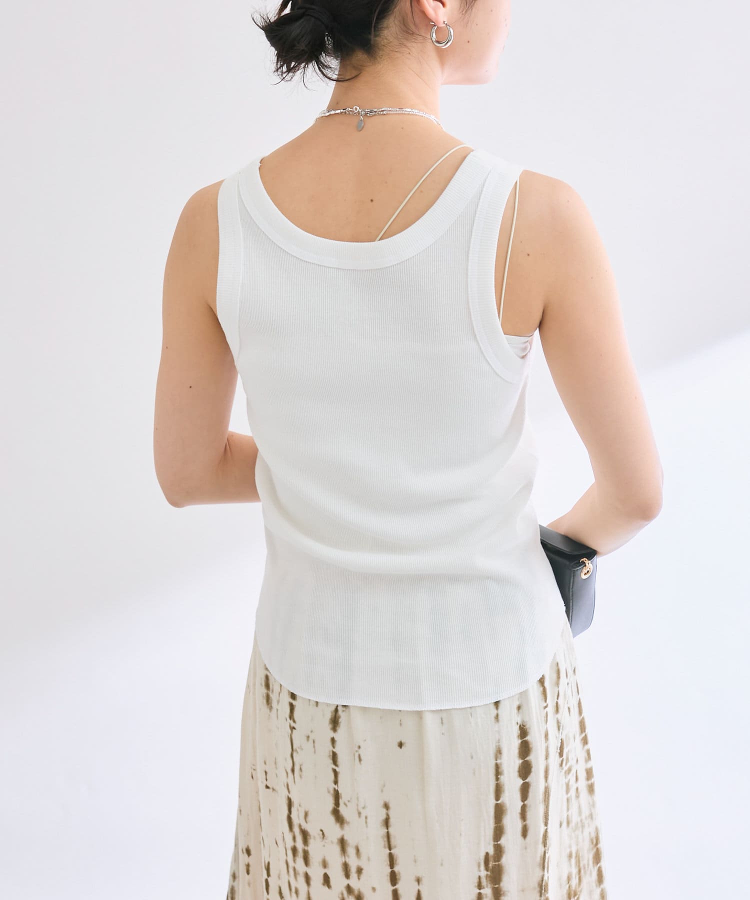 タンクトップは、Uネックタンクとアメスリタンクの異なる表情で着用可能。