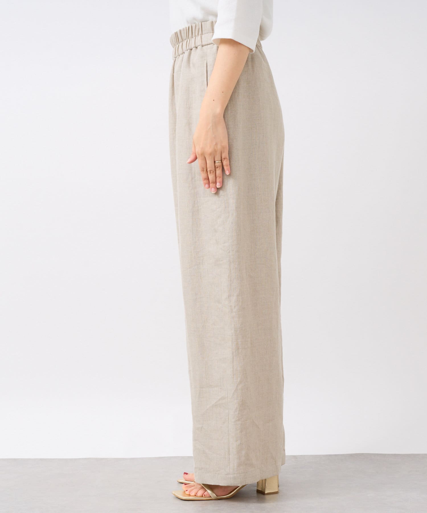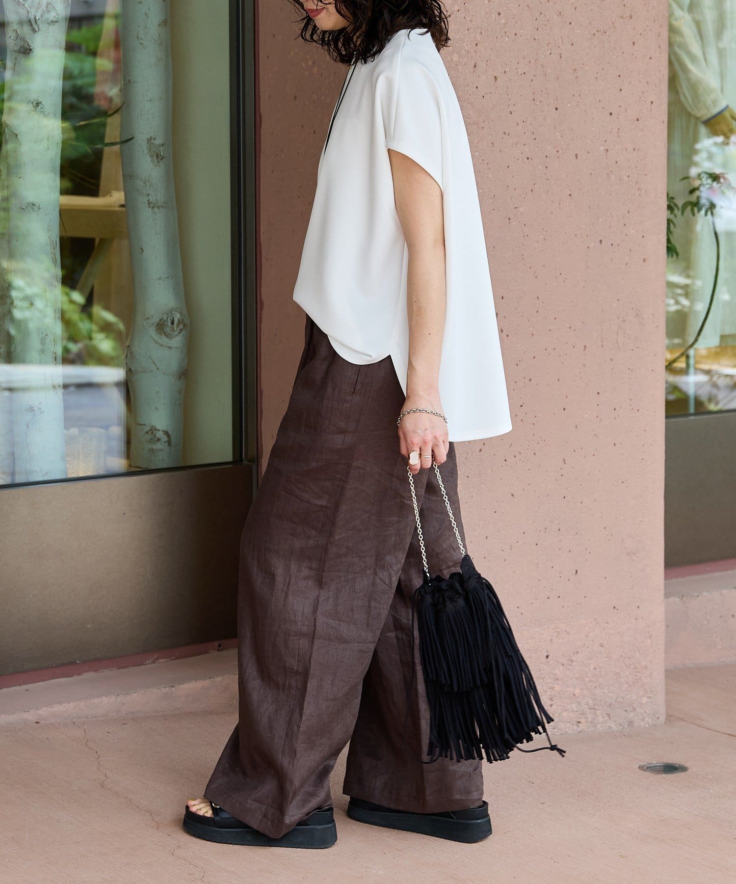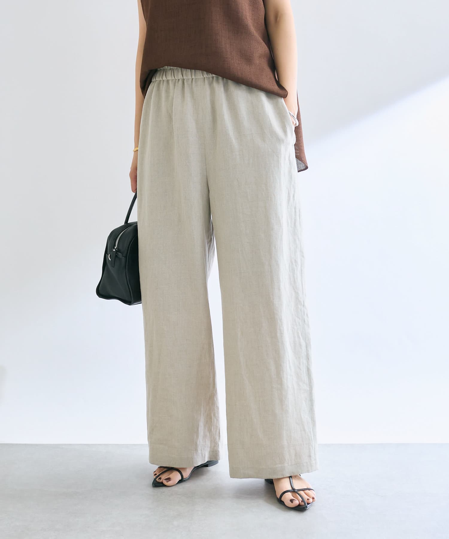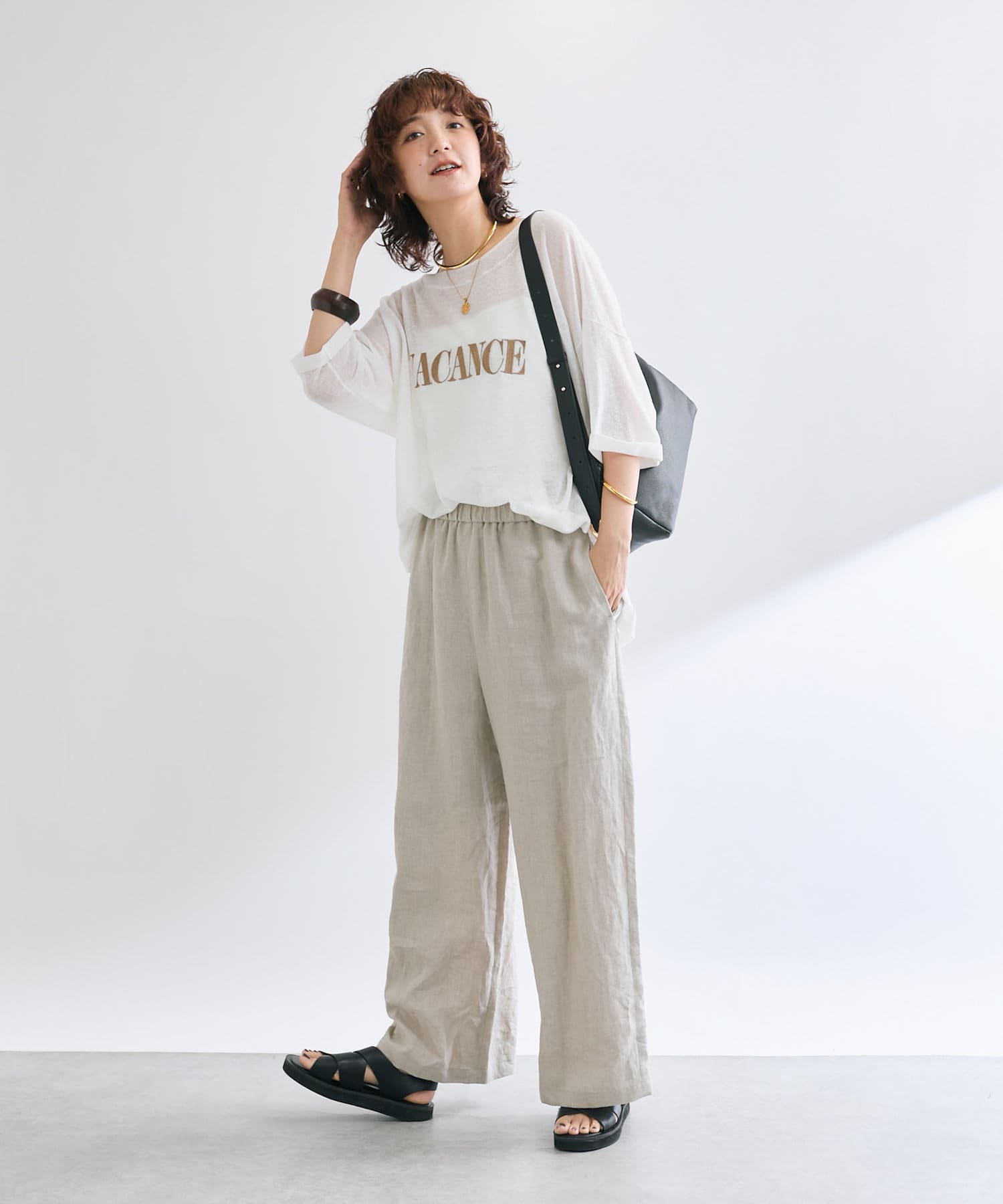 爽やかな印象をもたらすリネンのワイドパンツ。