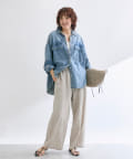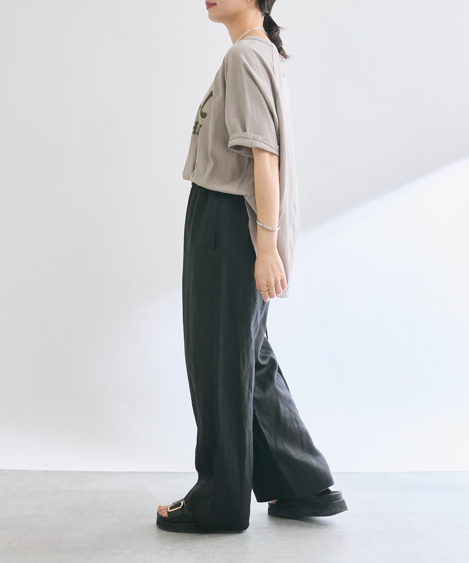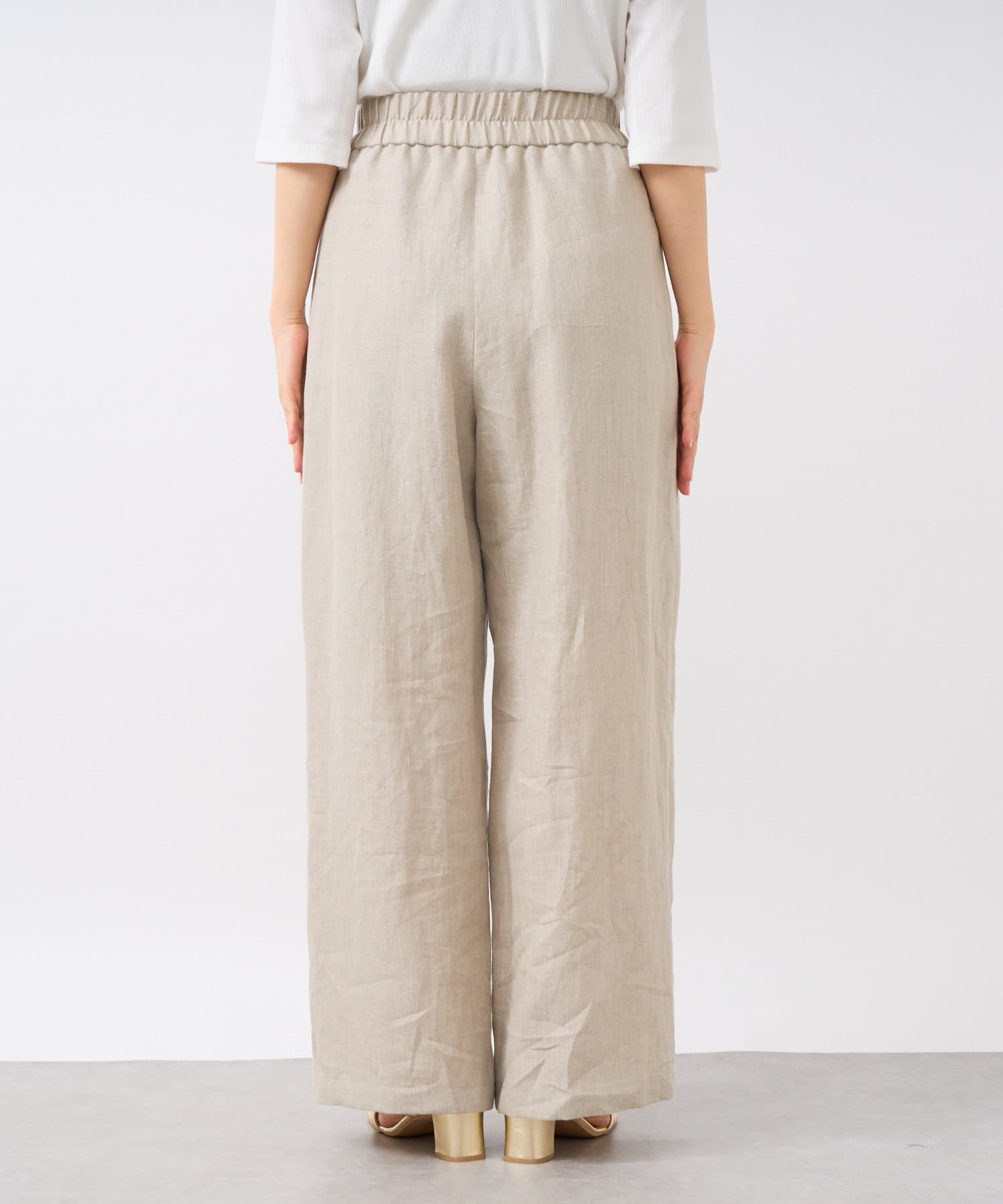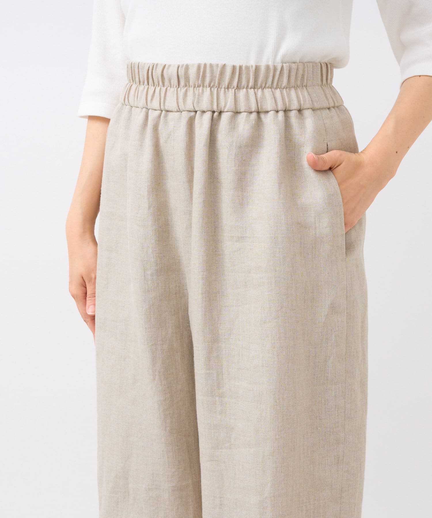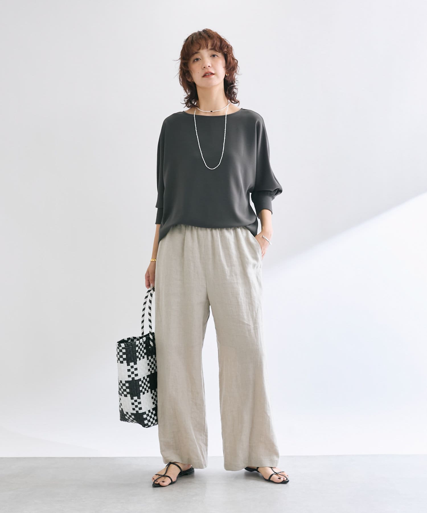 爽やかな印象をもたらすリネンのワイドパンツ。