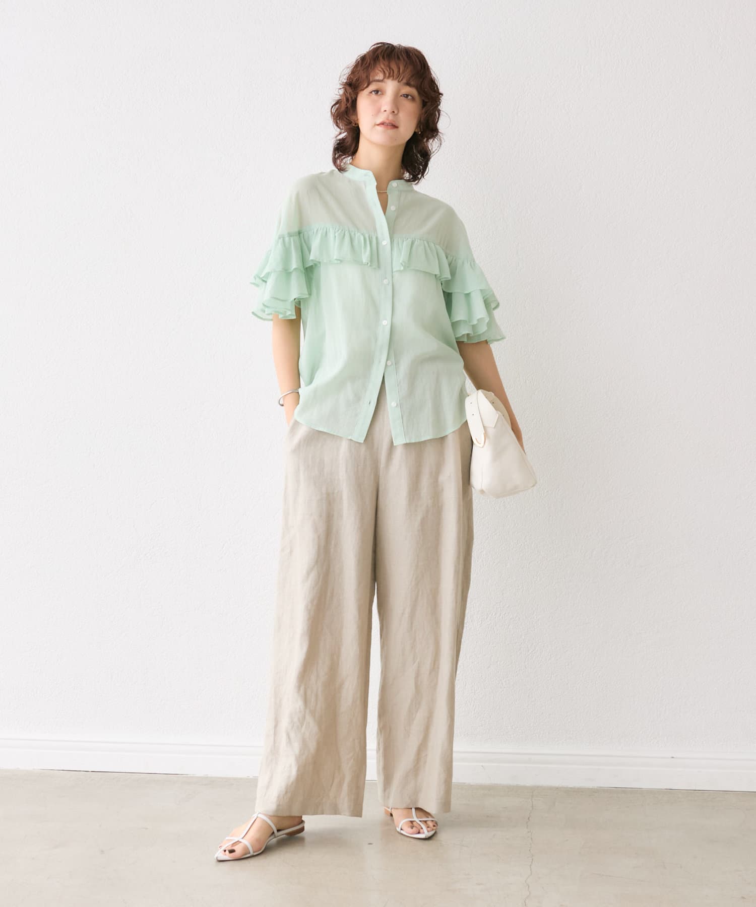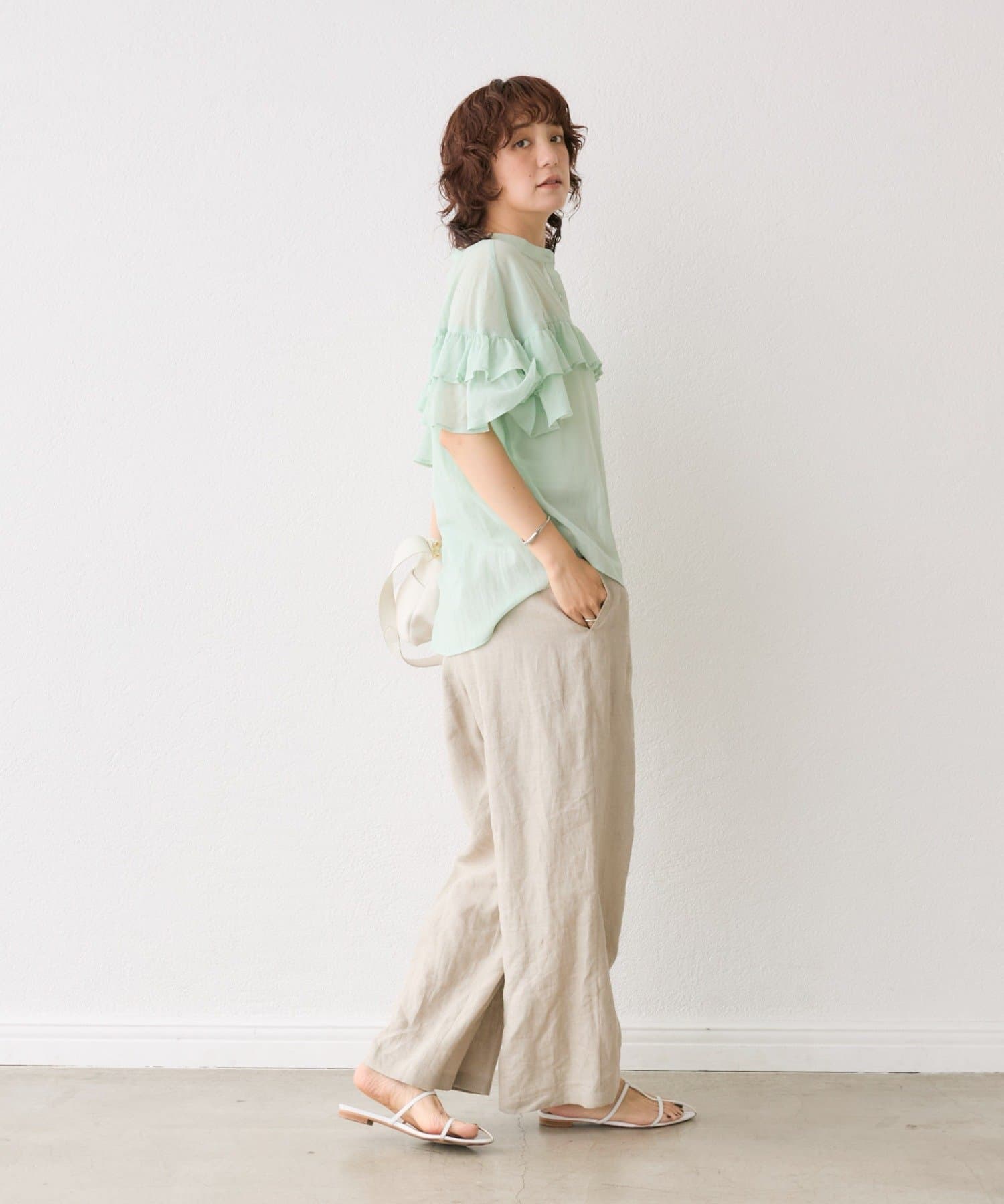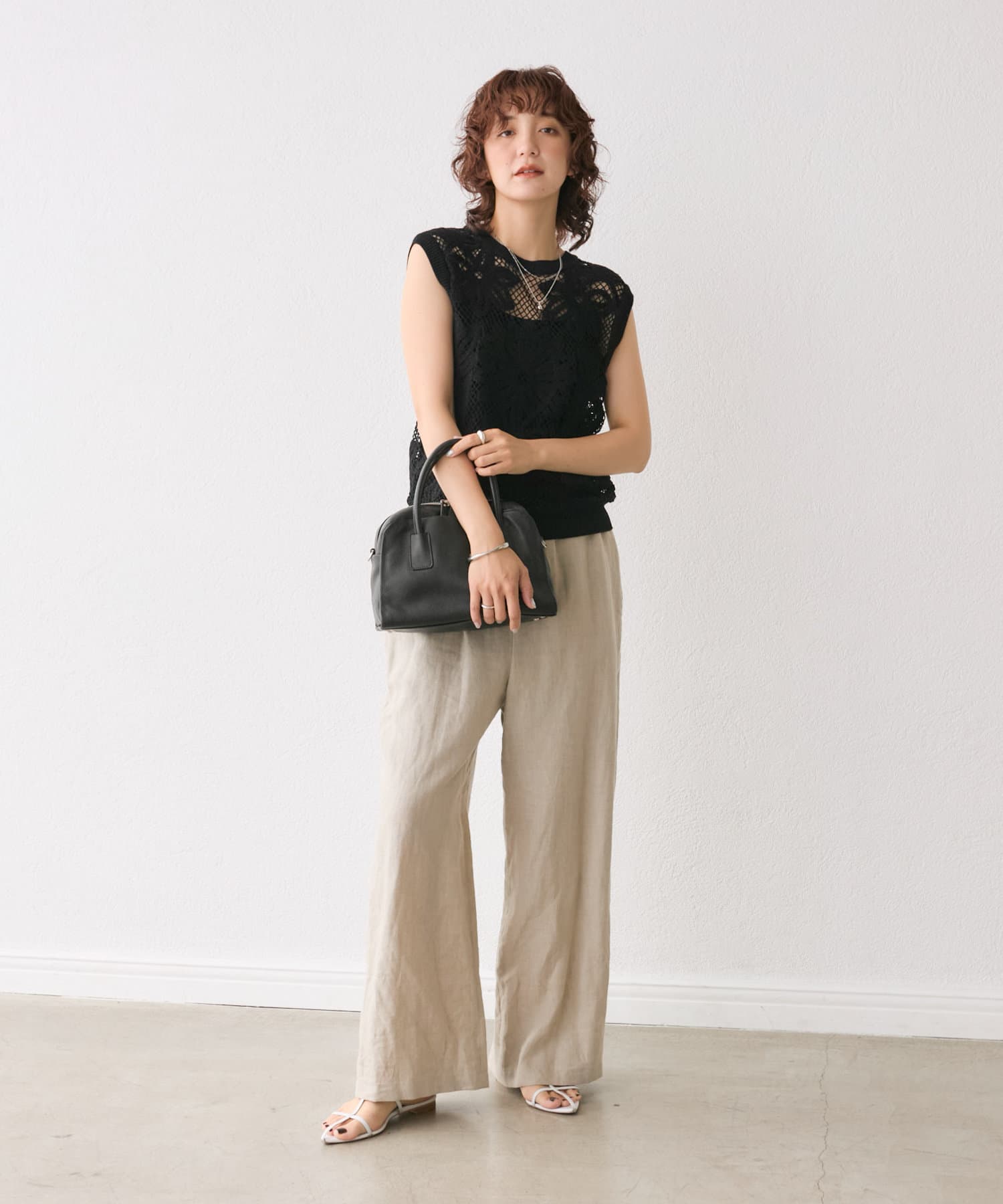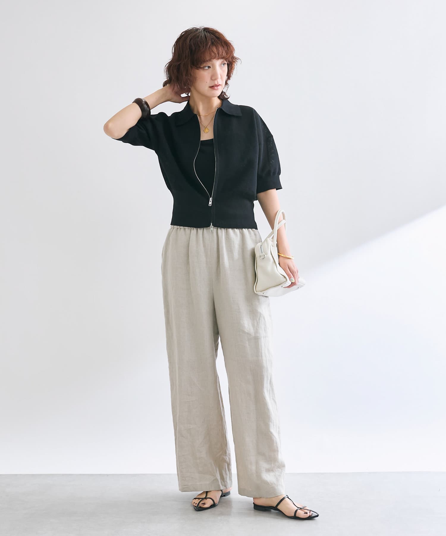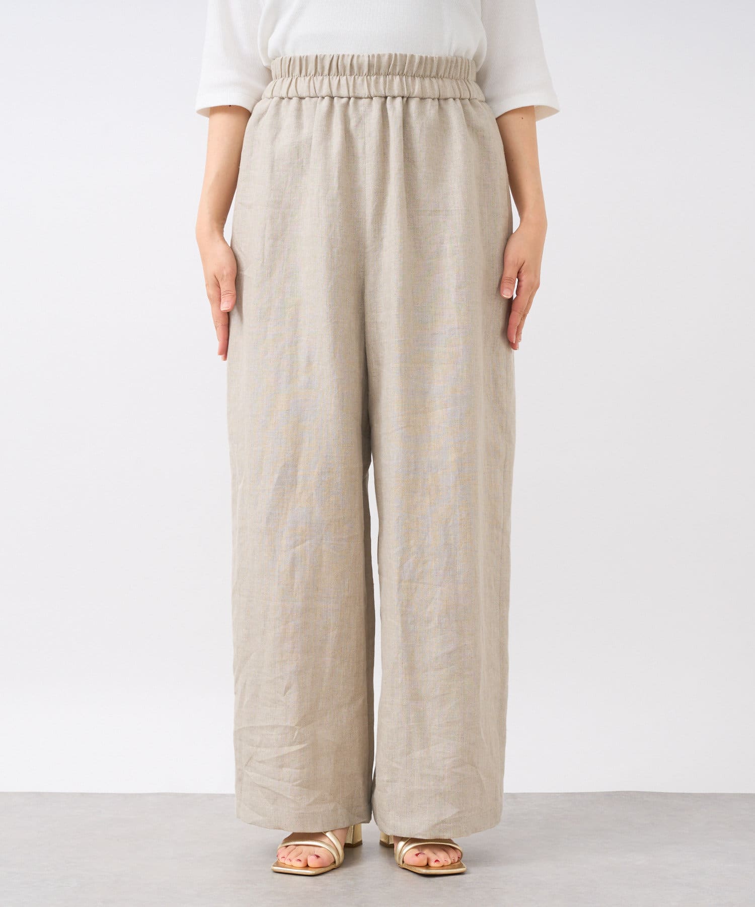 爽やかな印象をもたらすリネンのワイドパンツ。