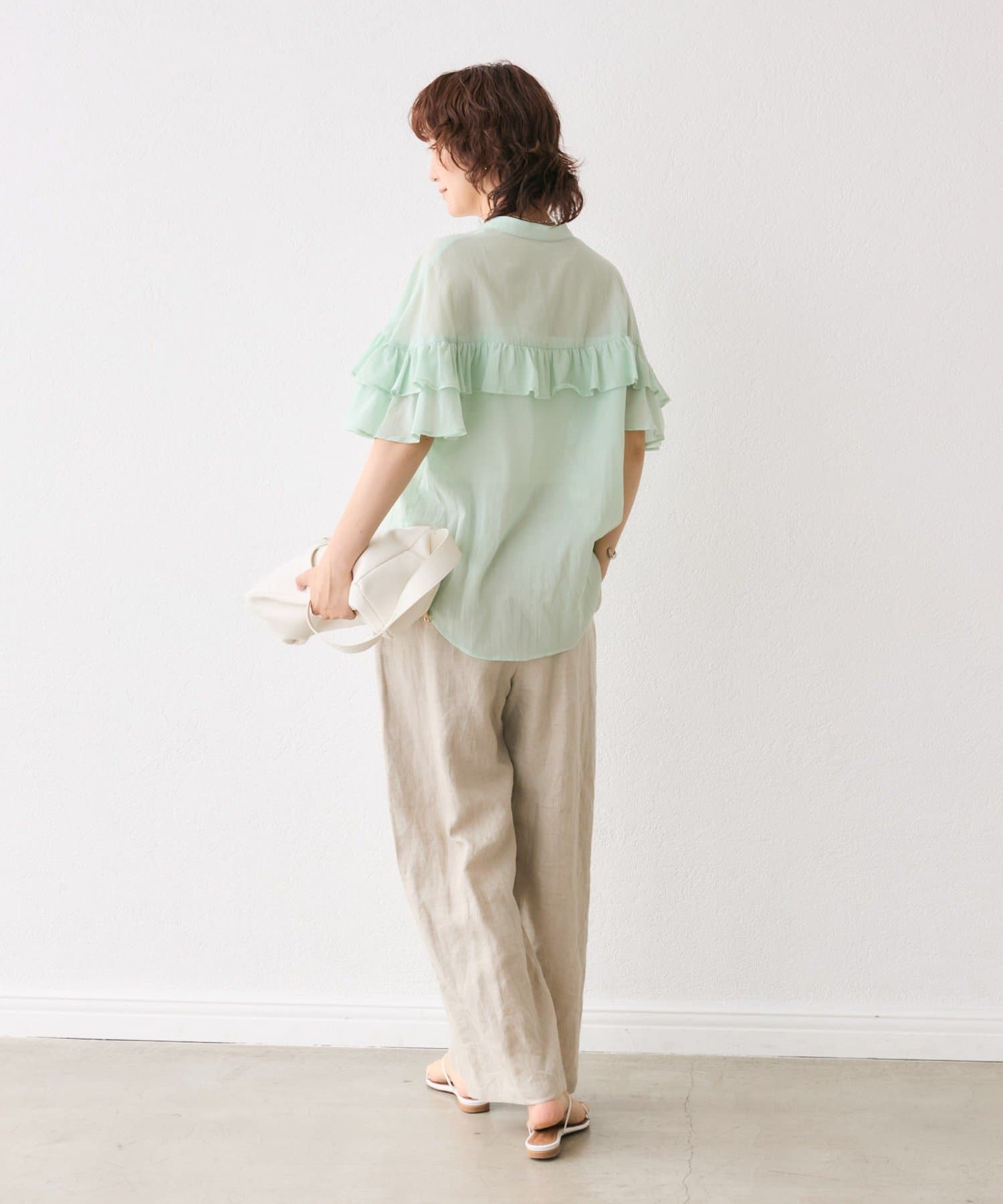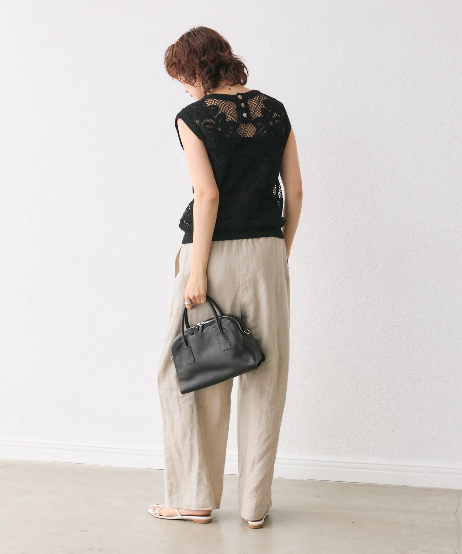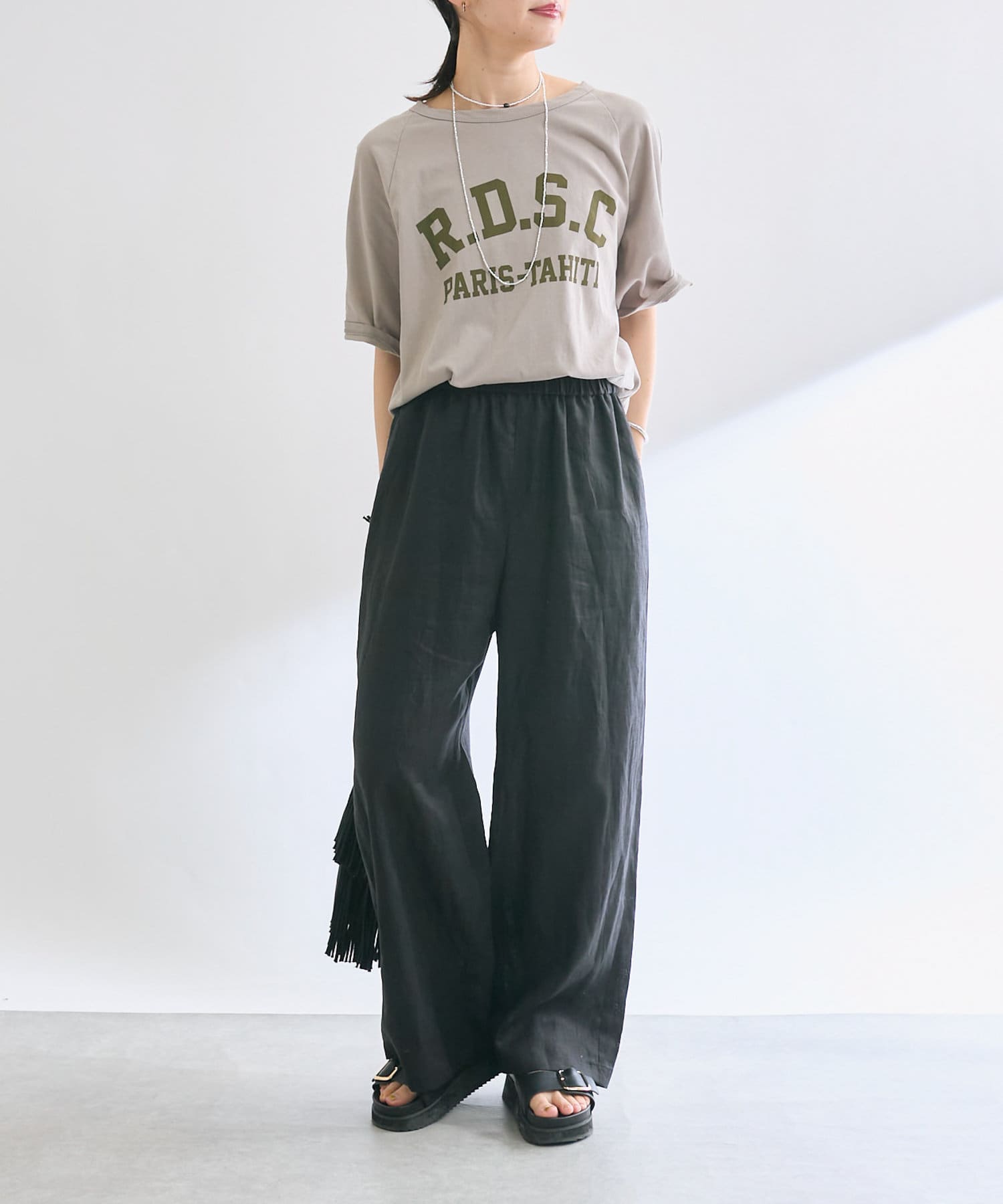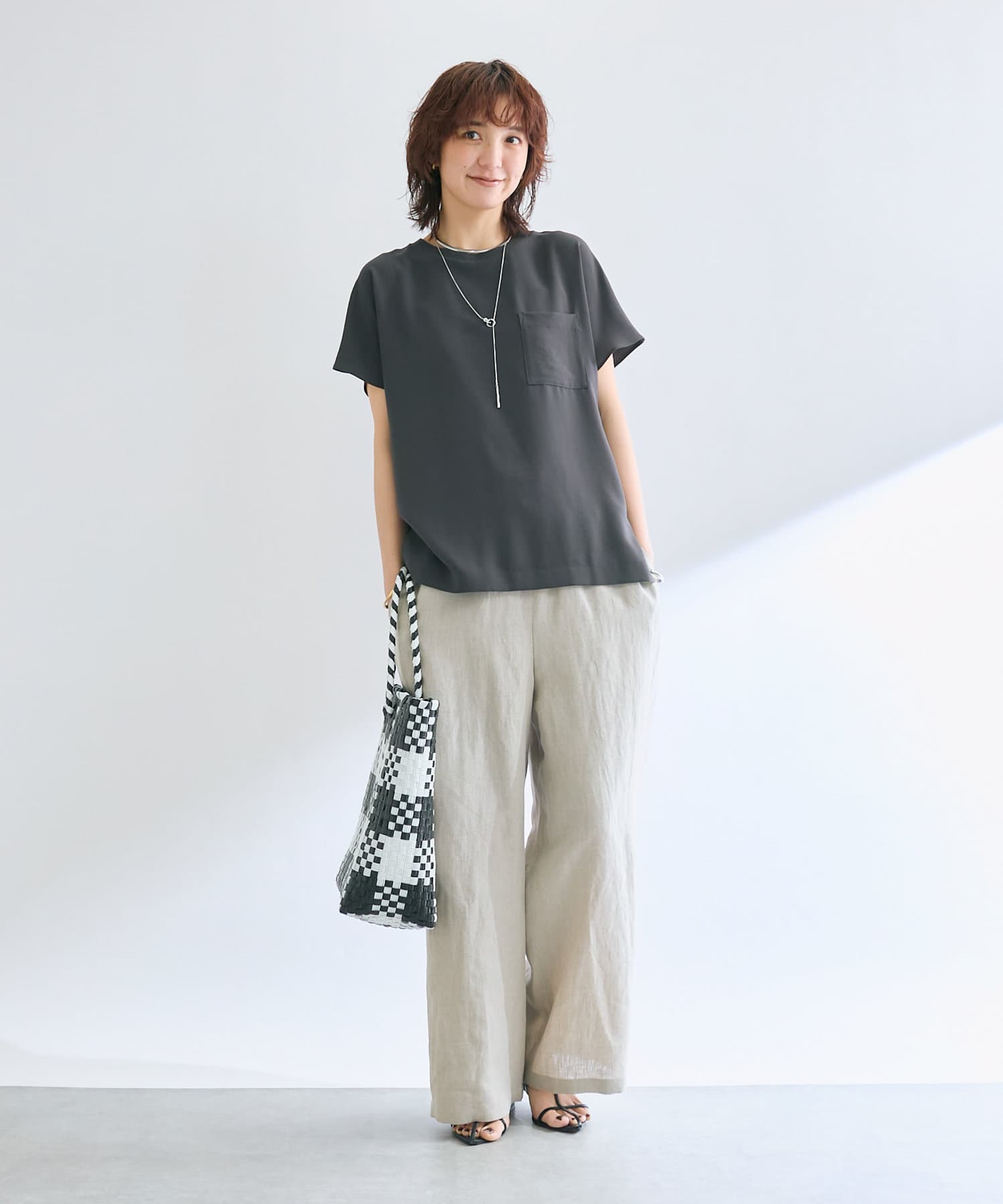 爽やかな印象をもたらすリネンのワイドパンツ。