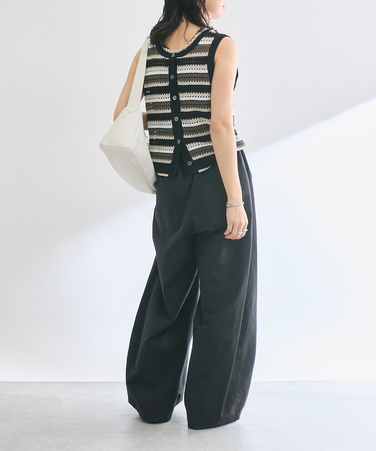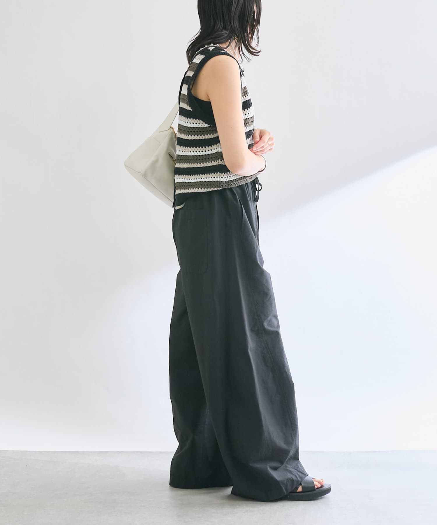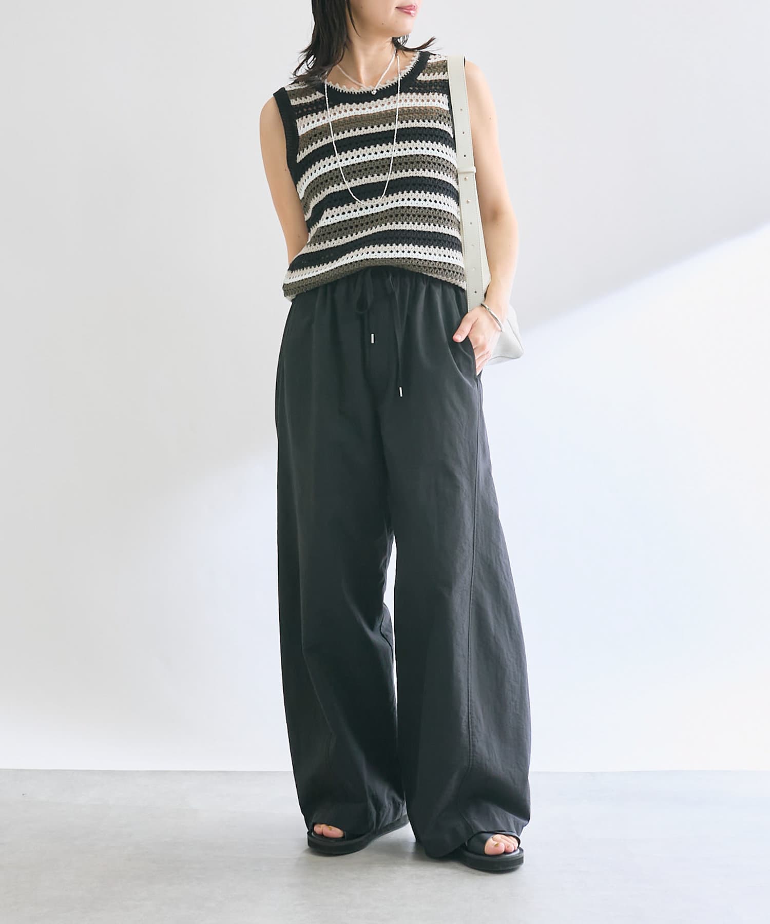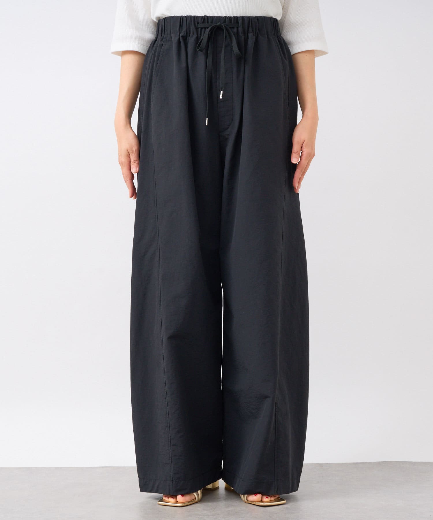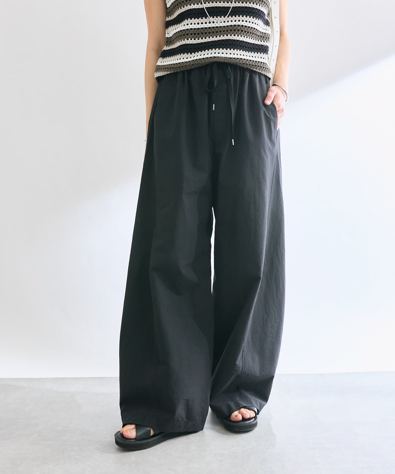 ルーズなフォルムとドロストでヘルシーな着こなしが叶うカーブパンツ。