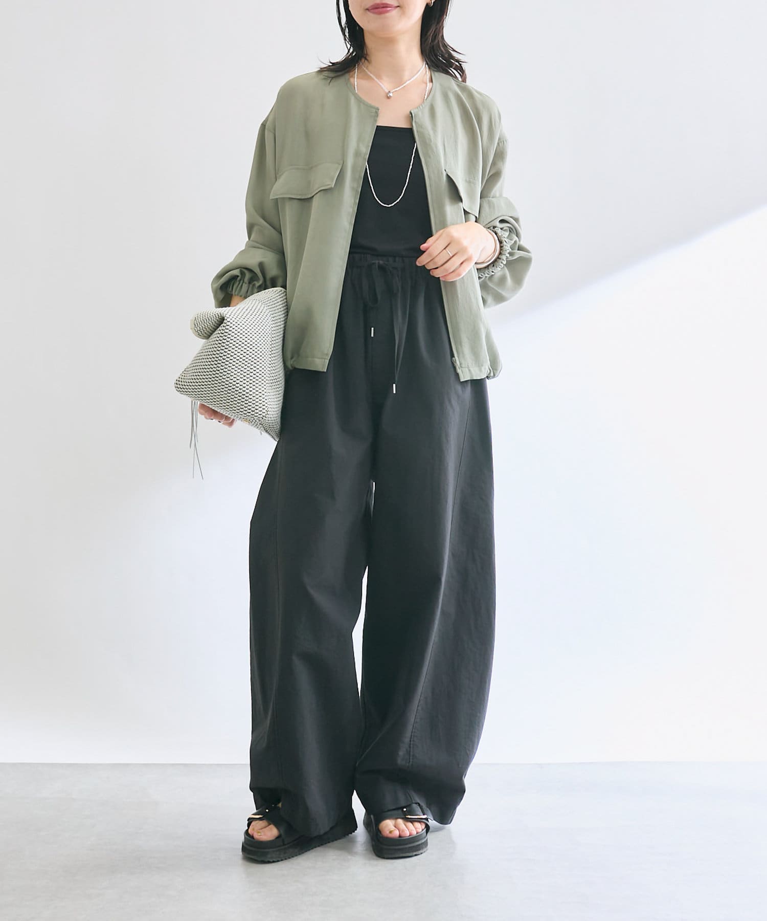 ゆるやかなシルエットとドロストで抜け感をプラス