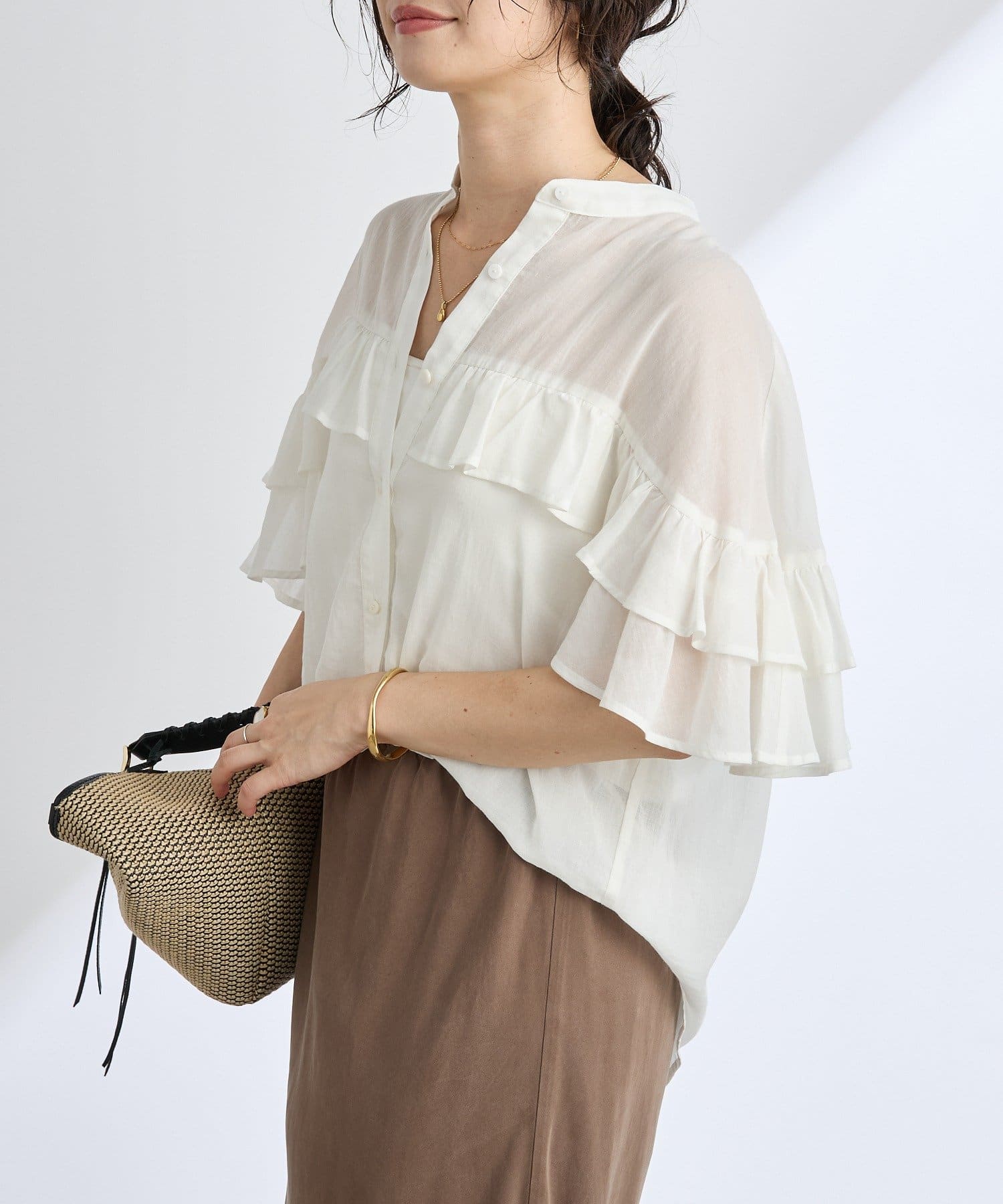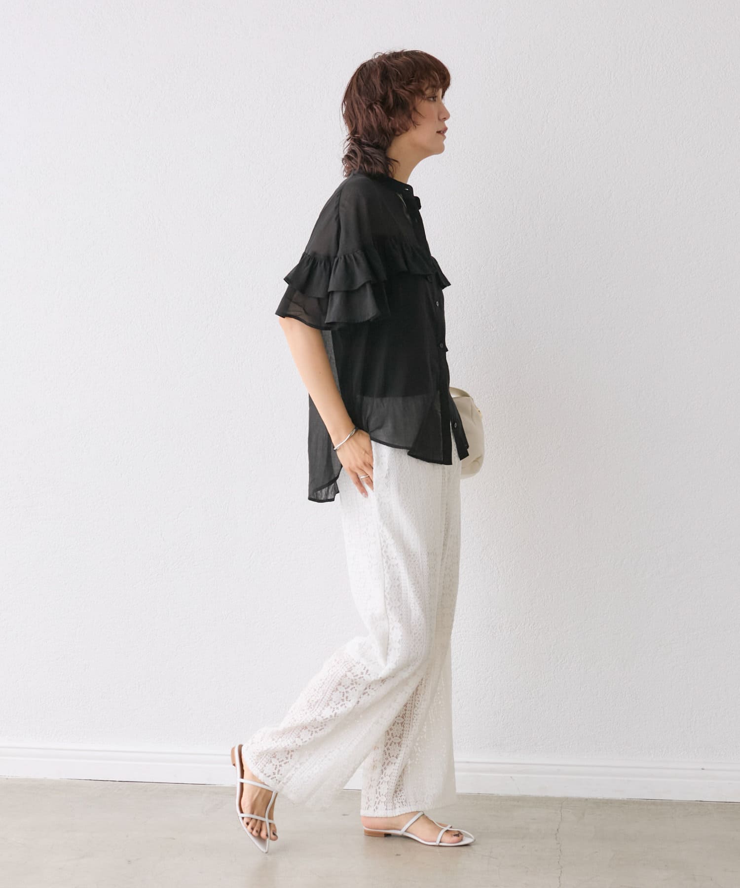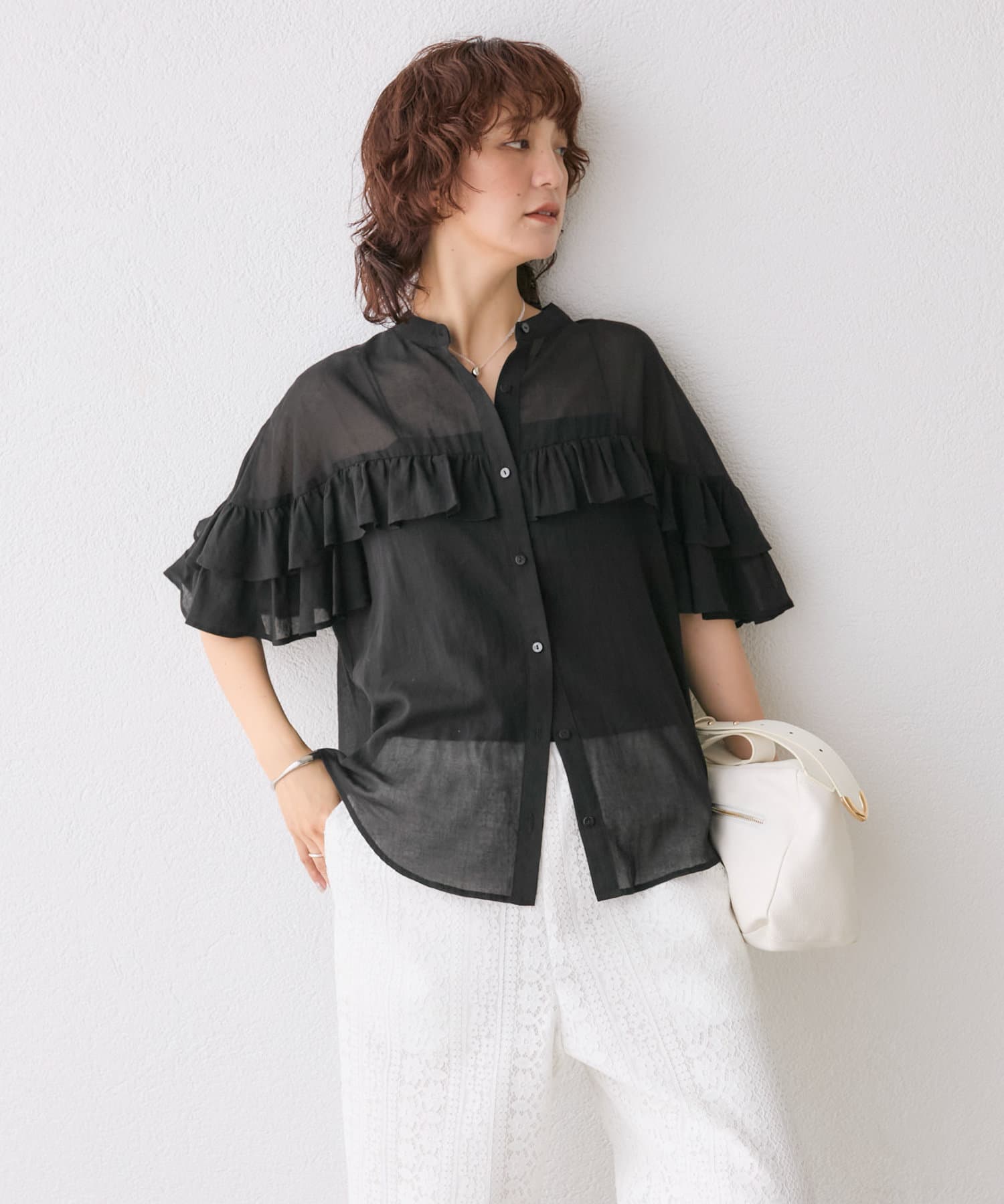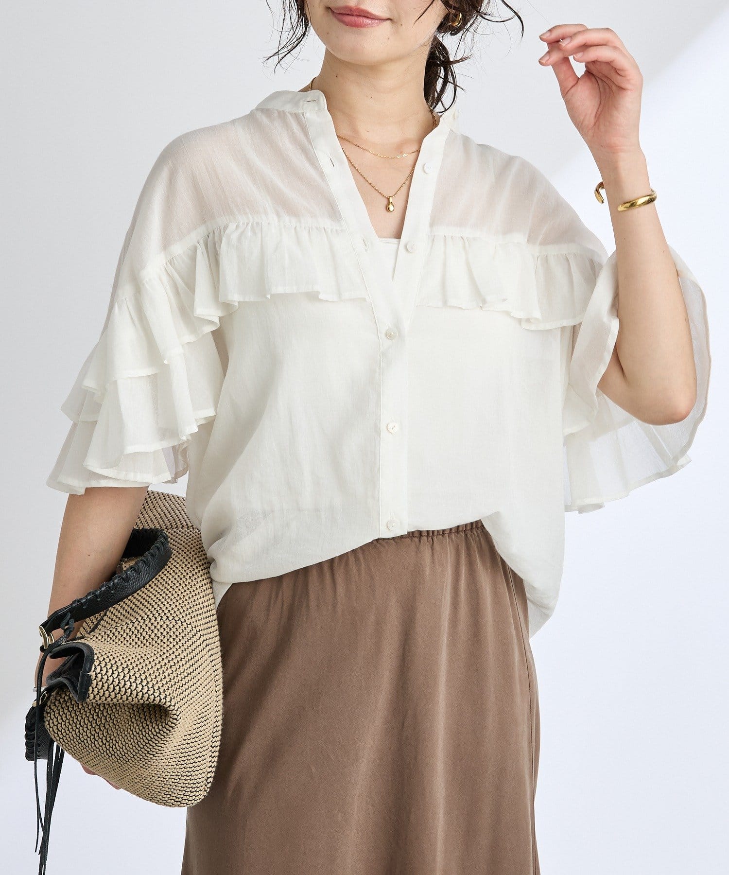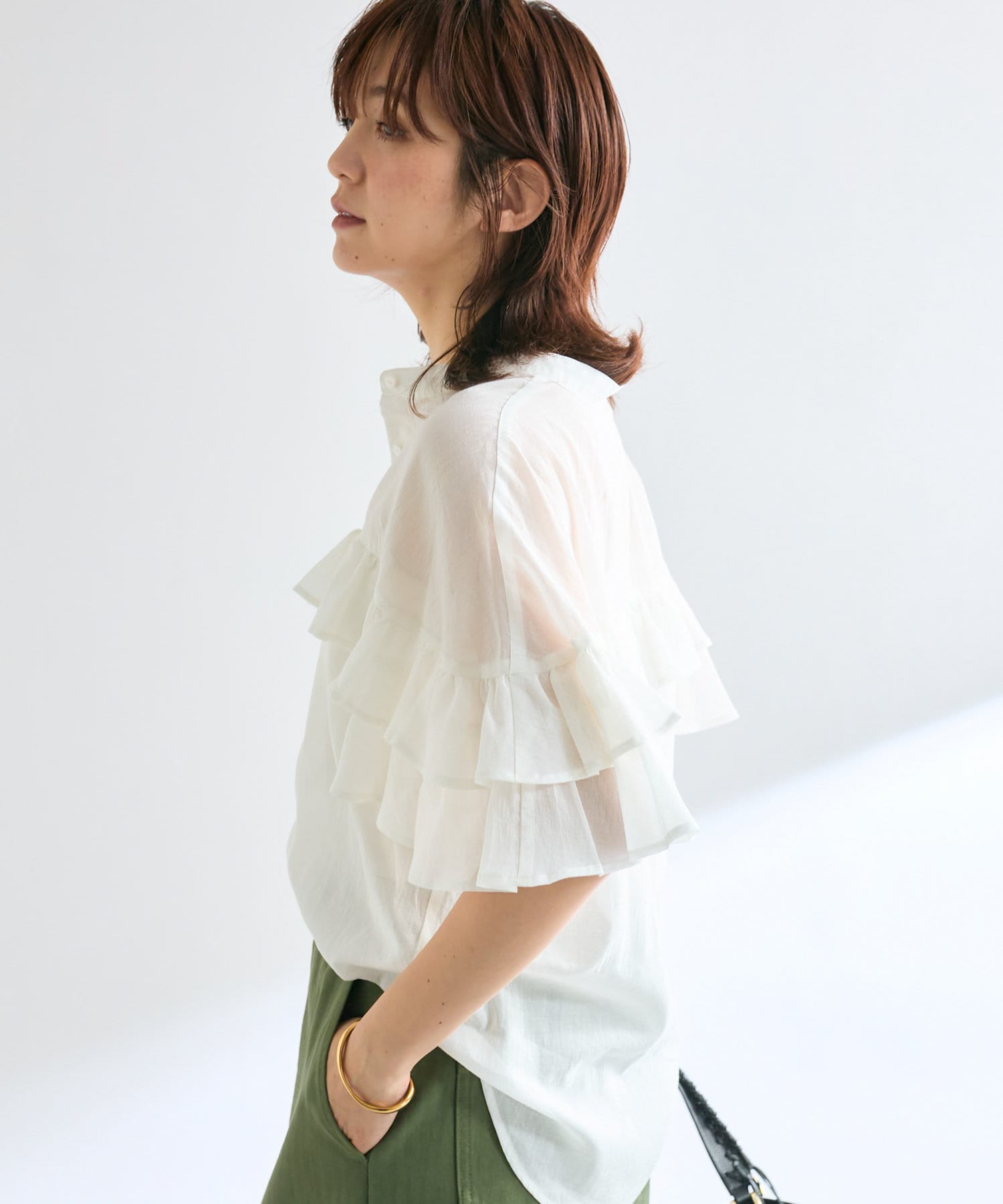 着こなしに繊細な甘さをプラスしてくれるフリルブラウス。