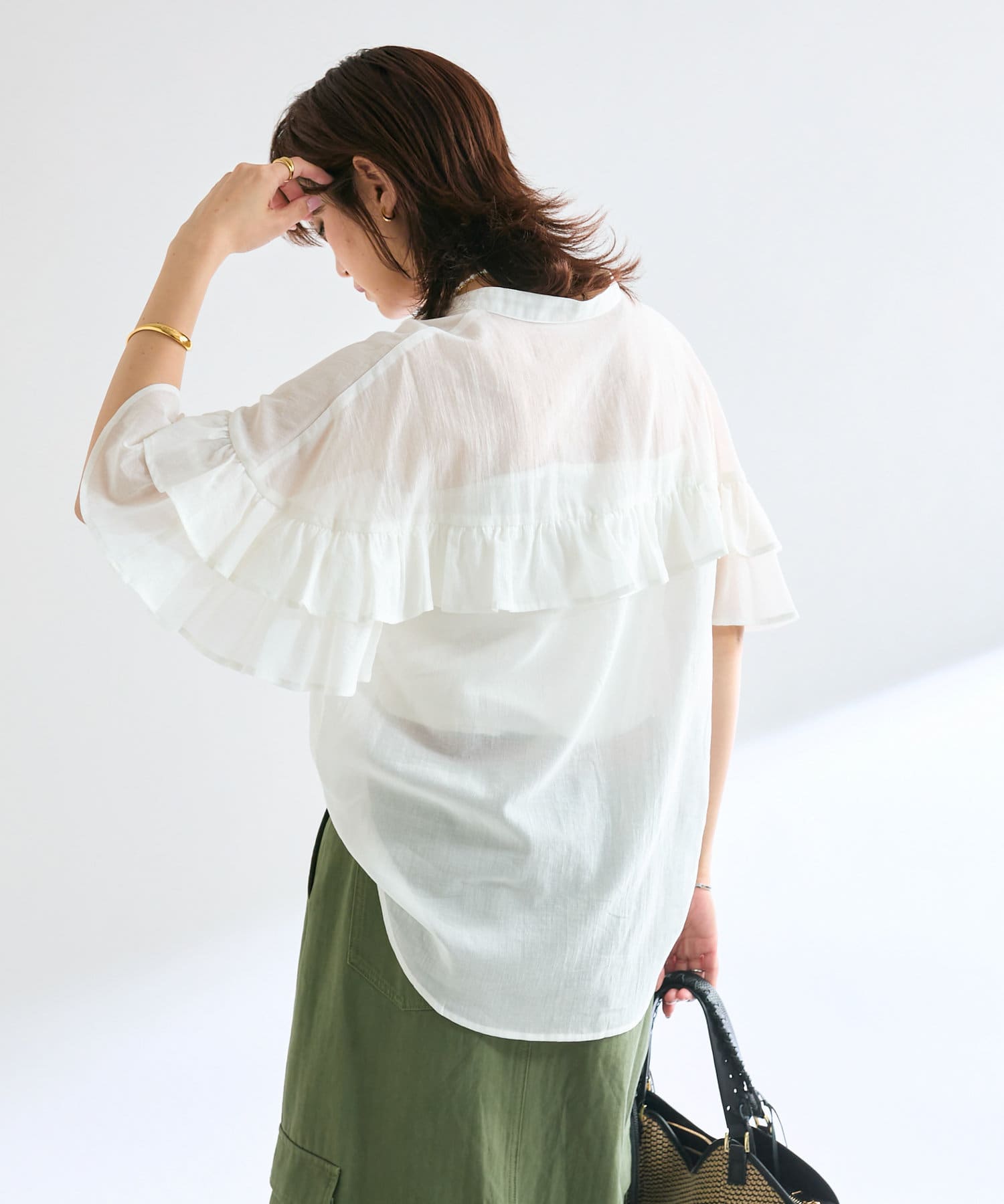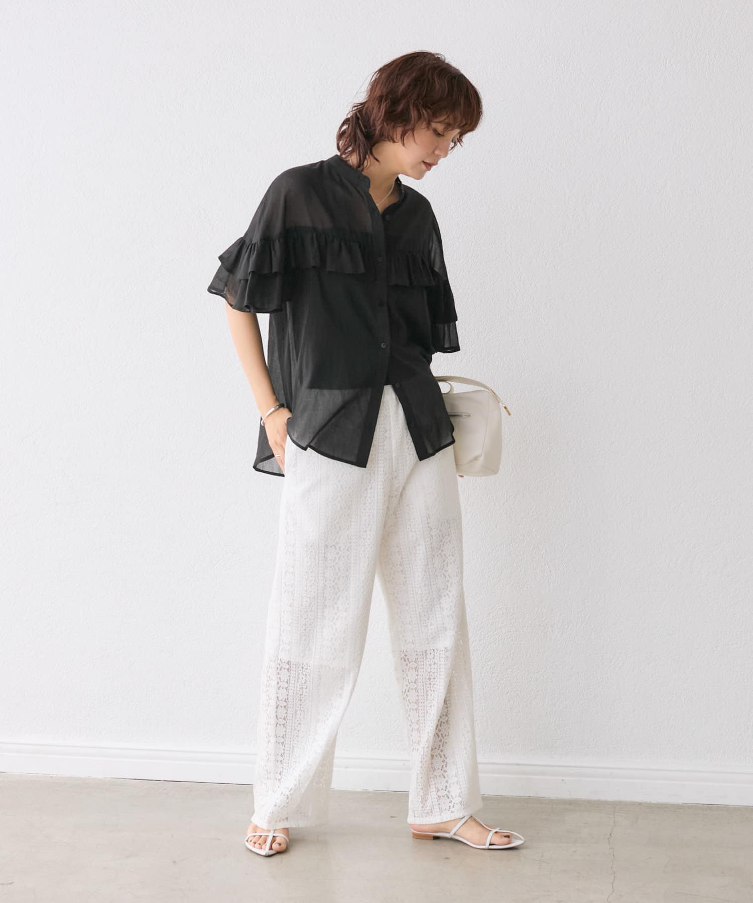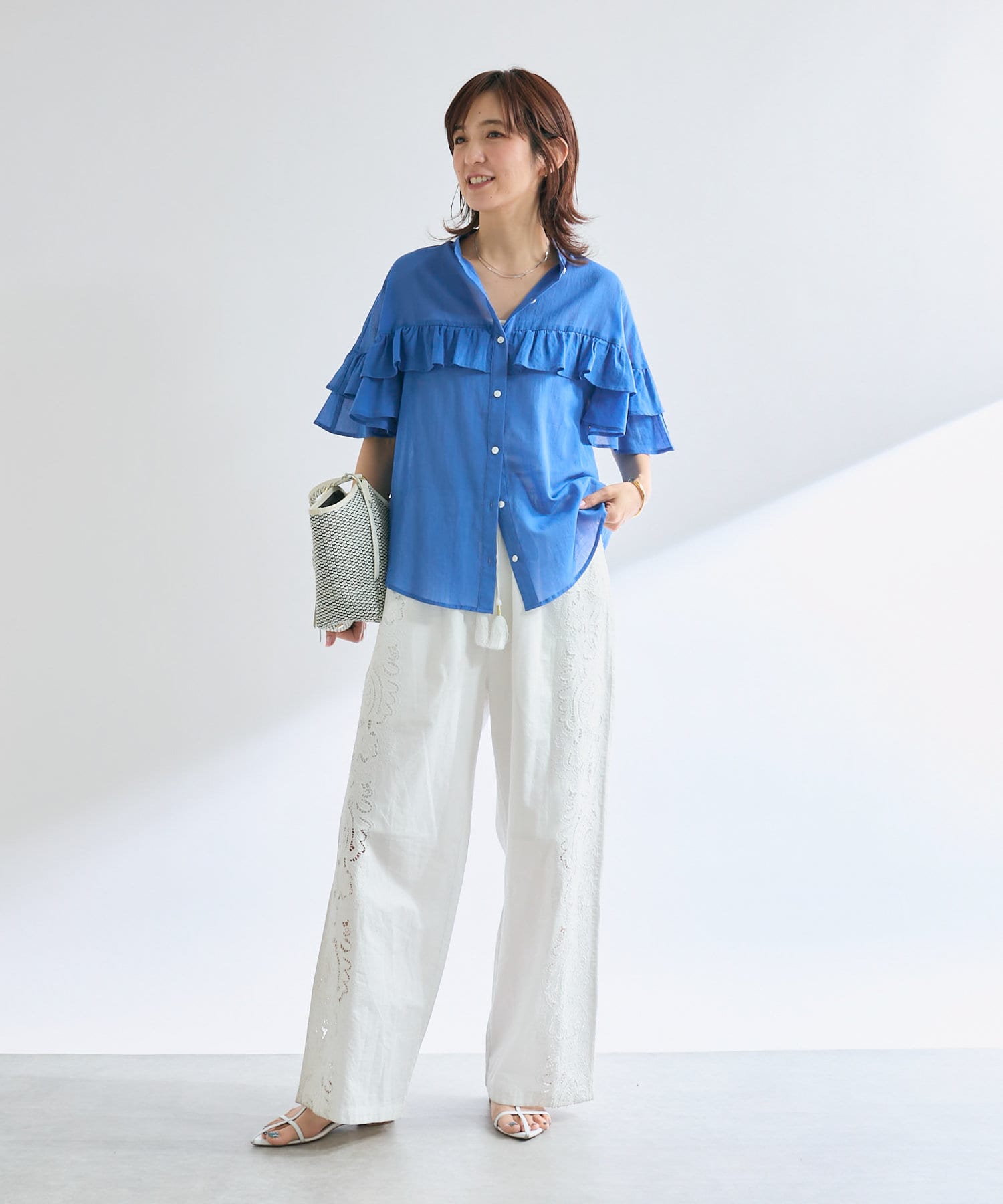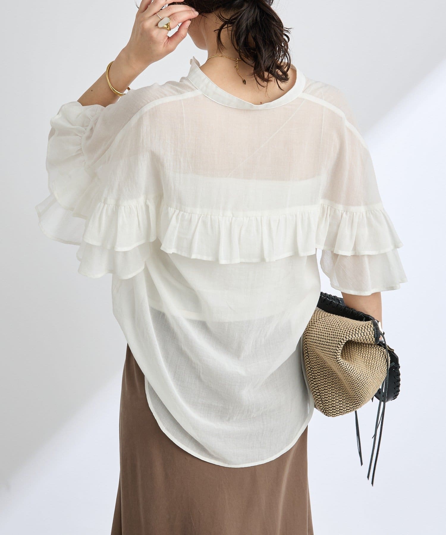 着こなしに繊細な甘さをプラスしてくれるフリルブラウス。