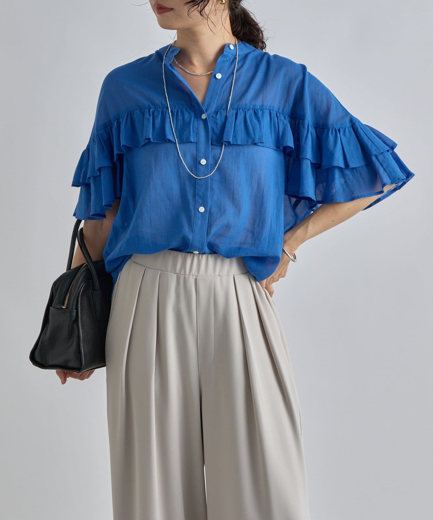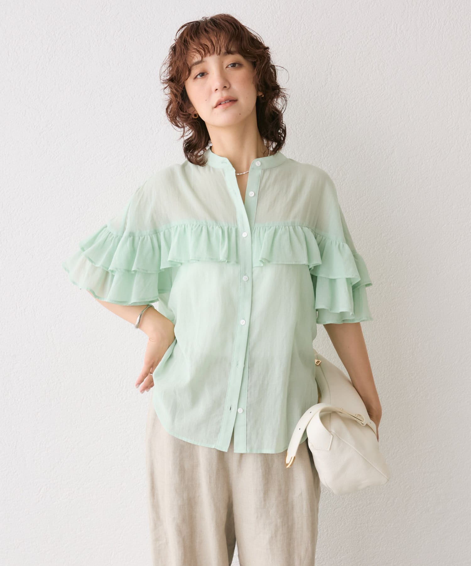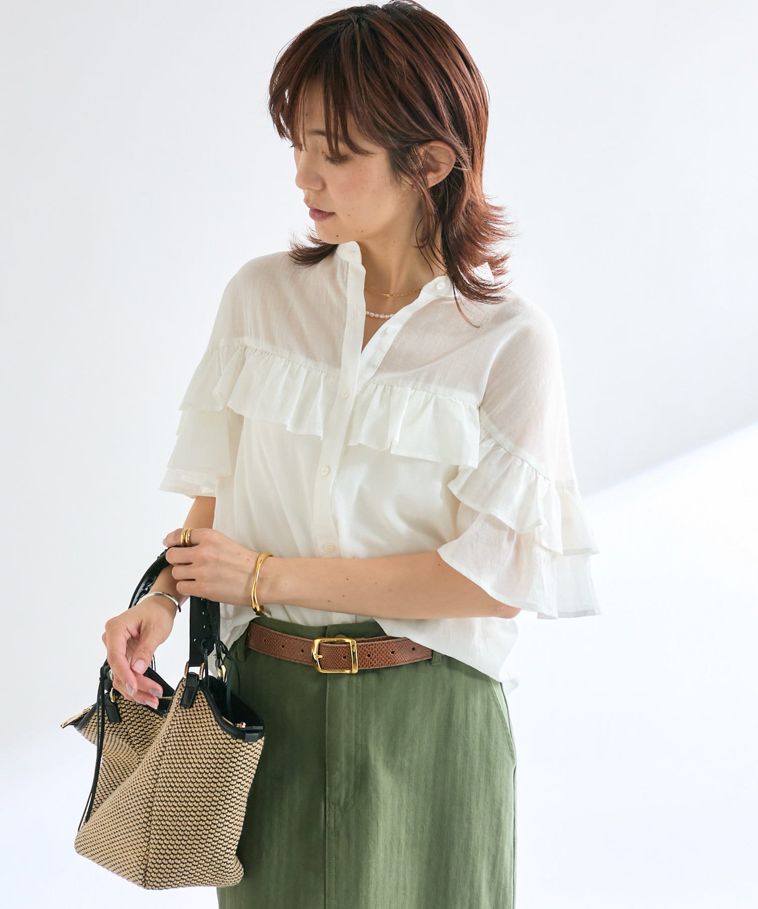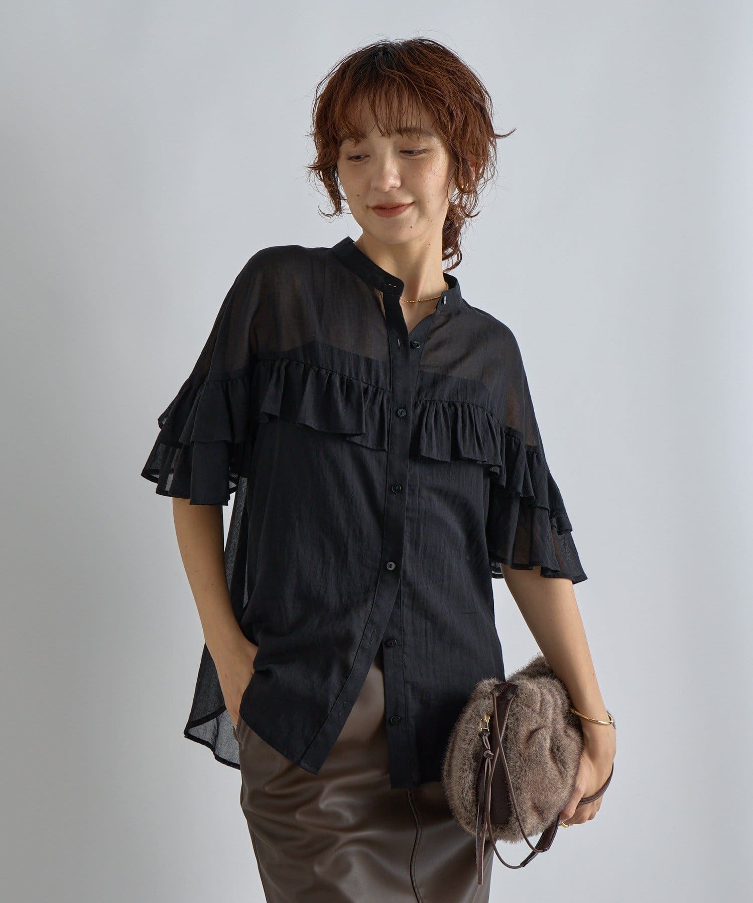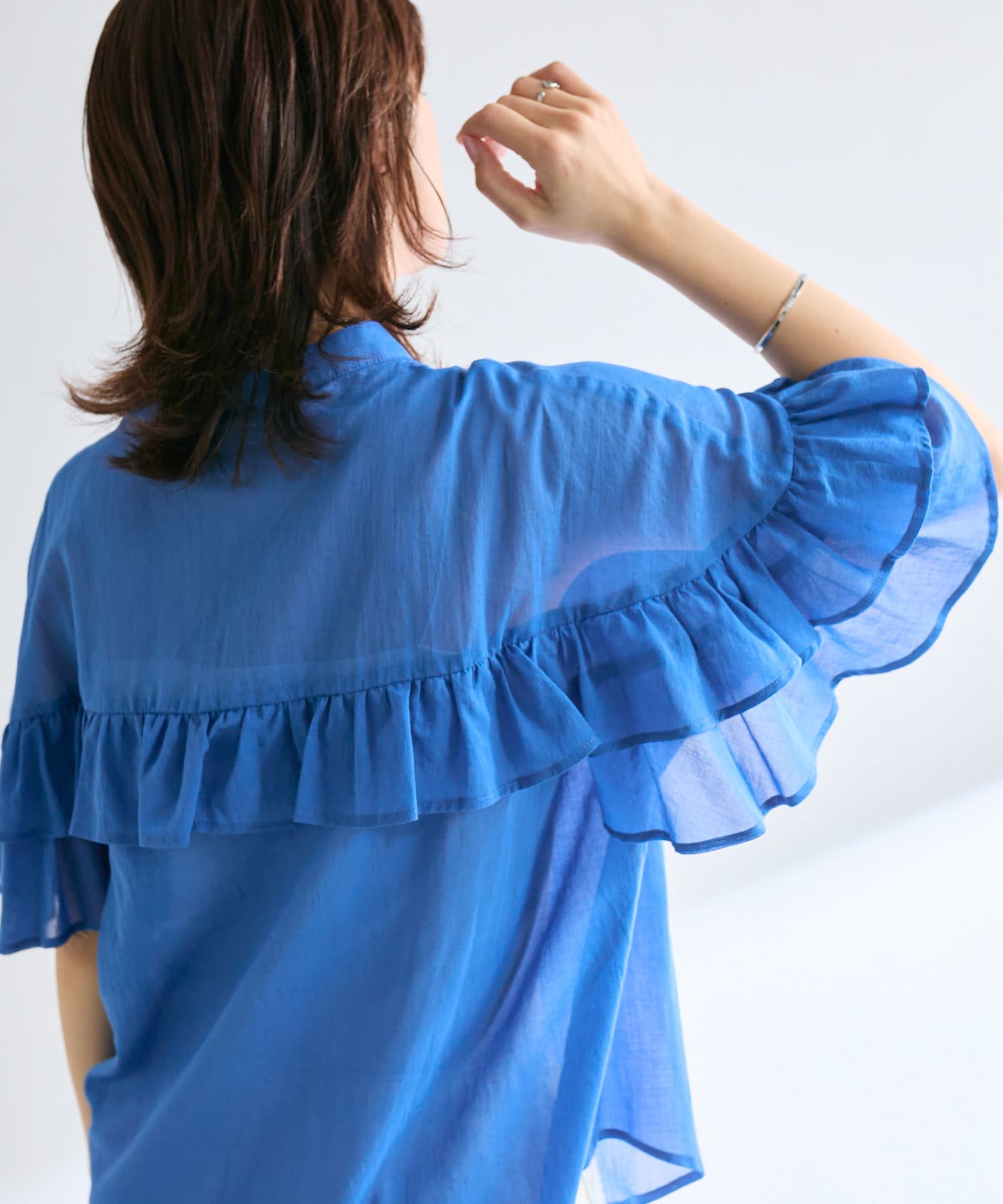 着こなしに繊細な甘さをプラスしてくれるフリルブラウス。
