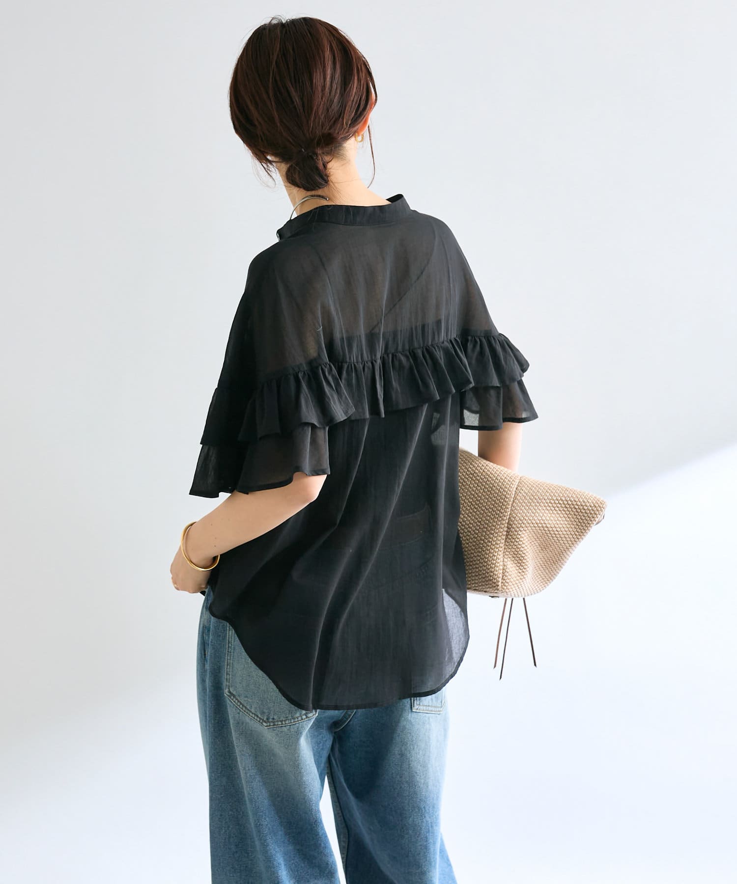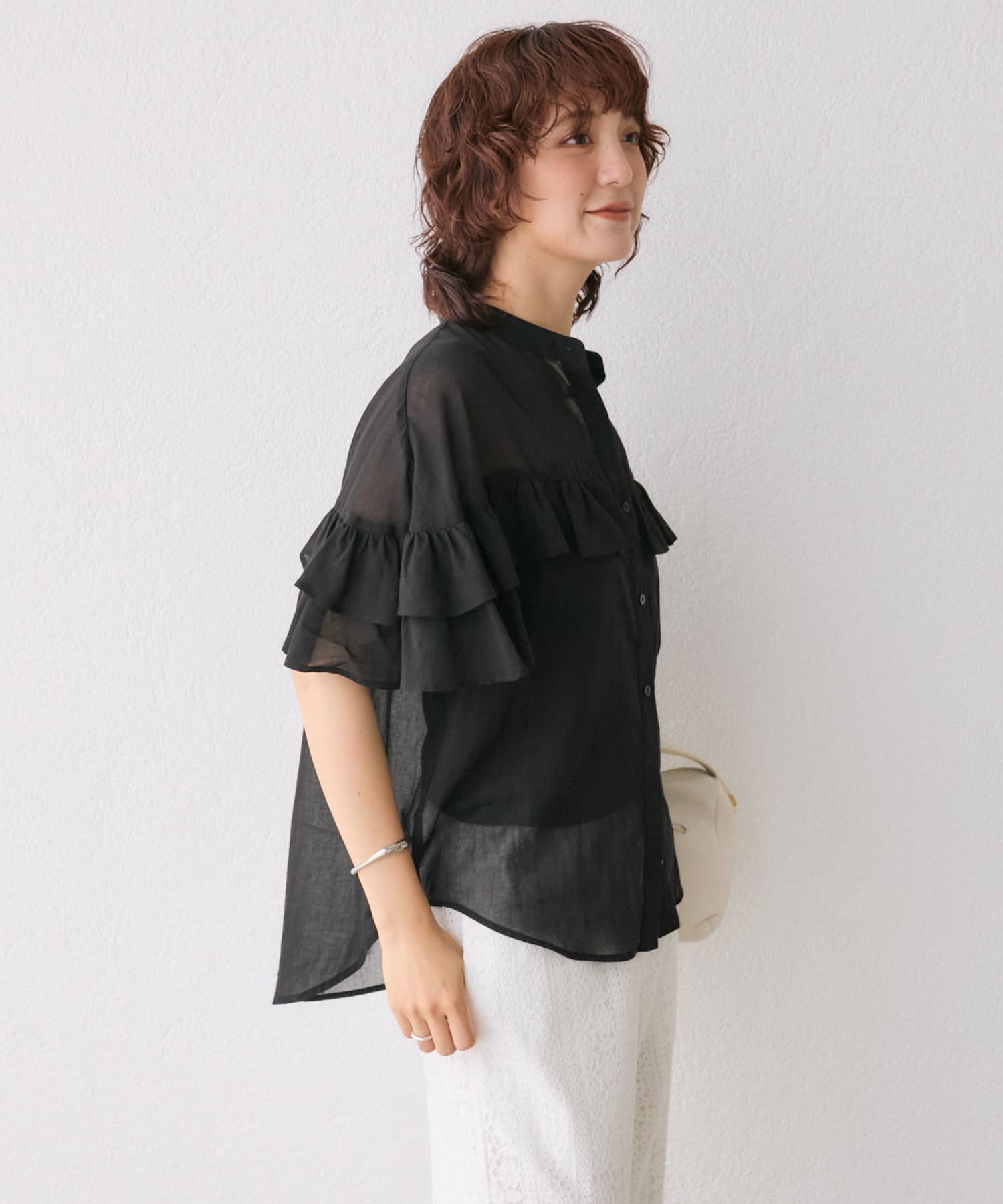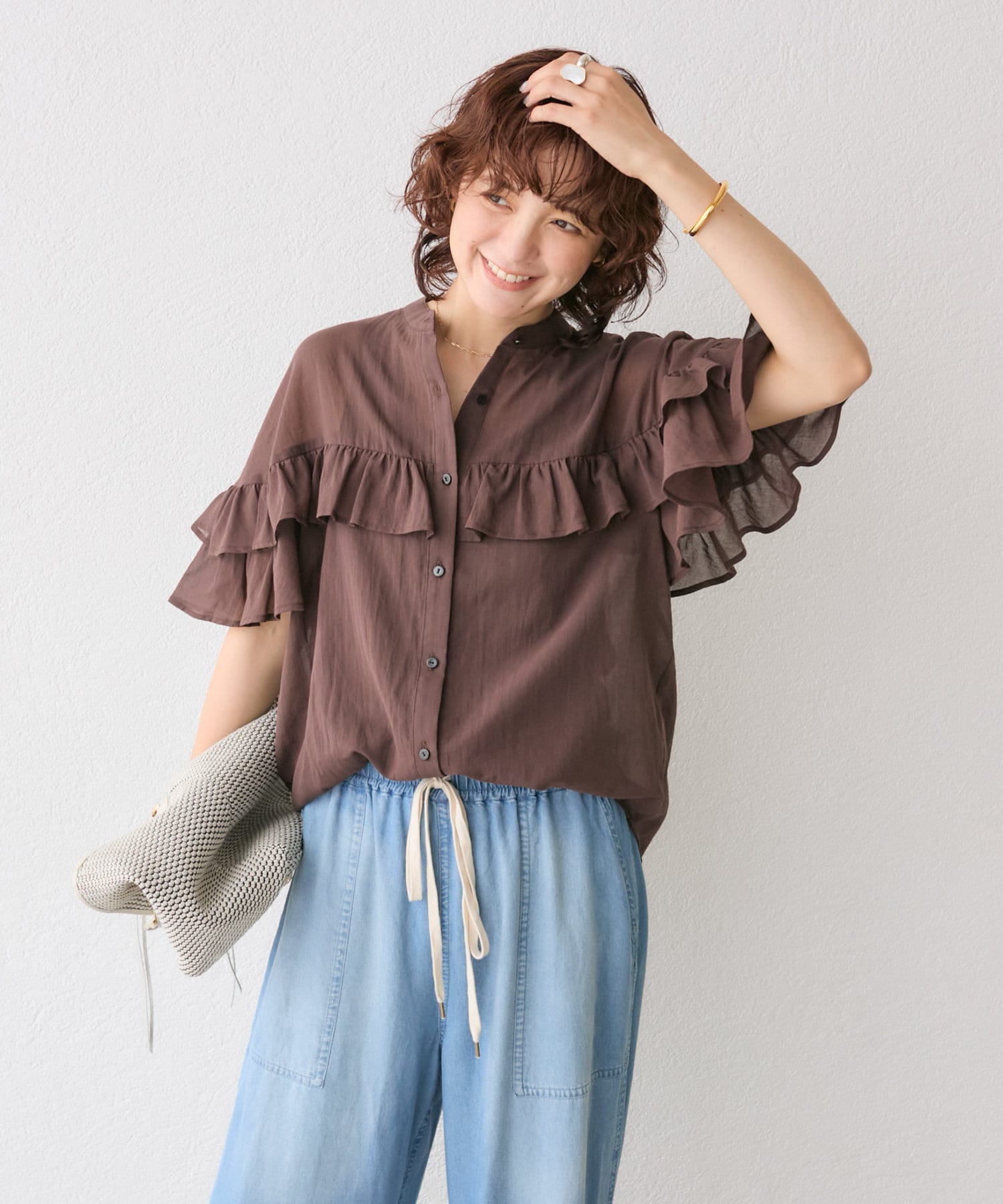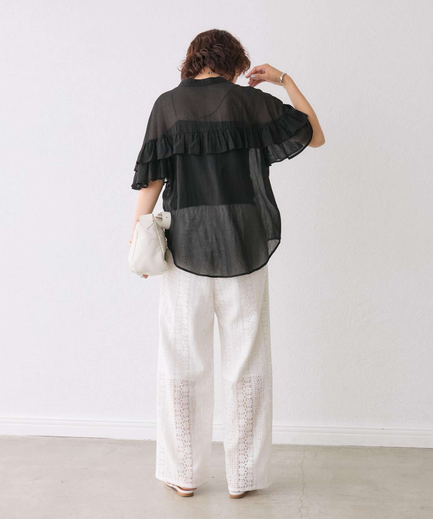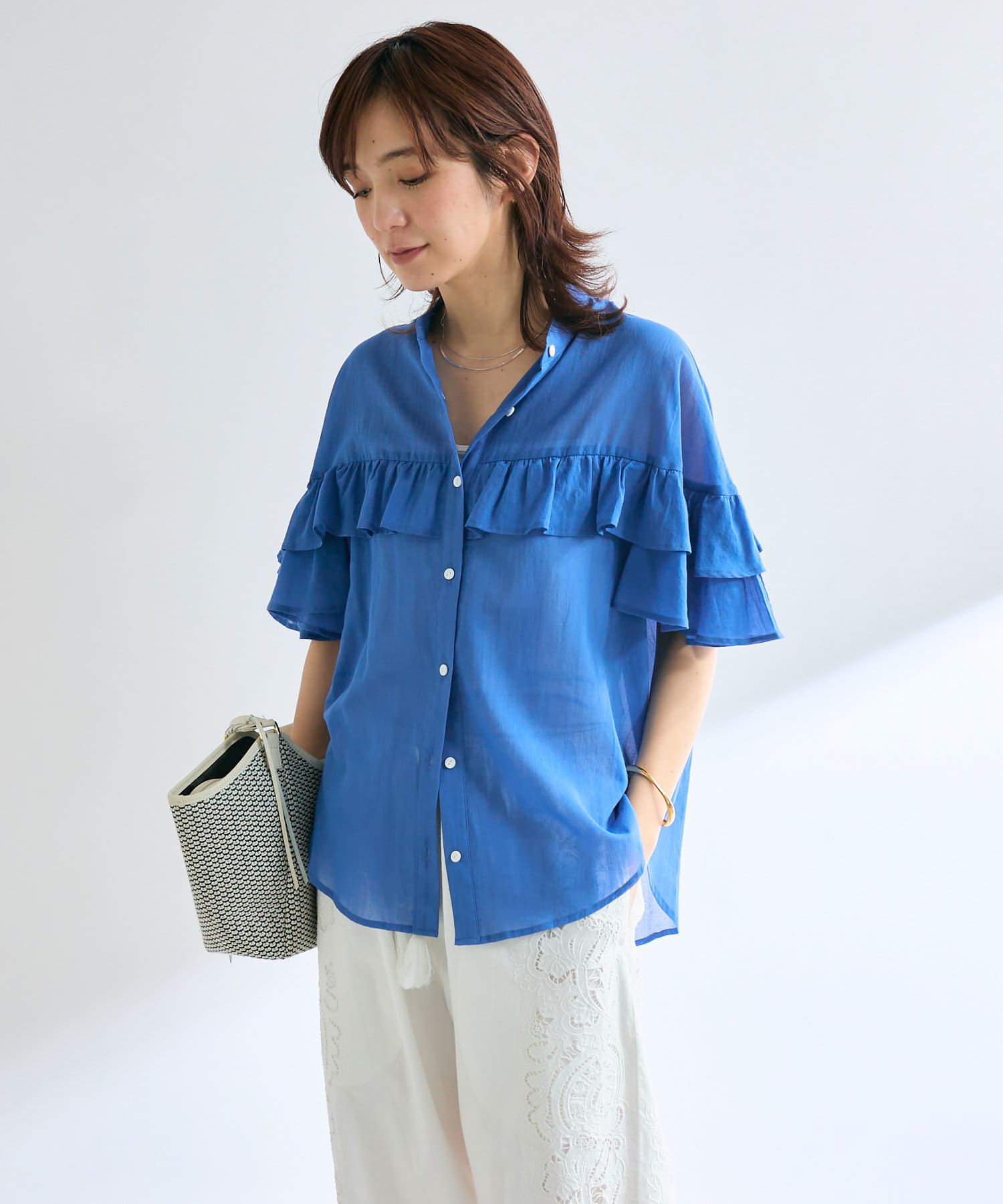 着こなしに繊細な甘さをプラスしてくれるフリルブラウス。