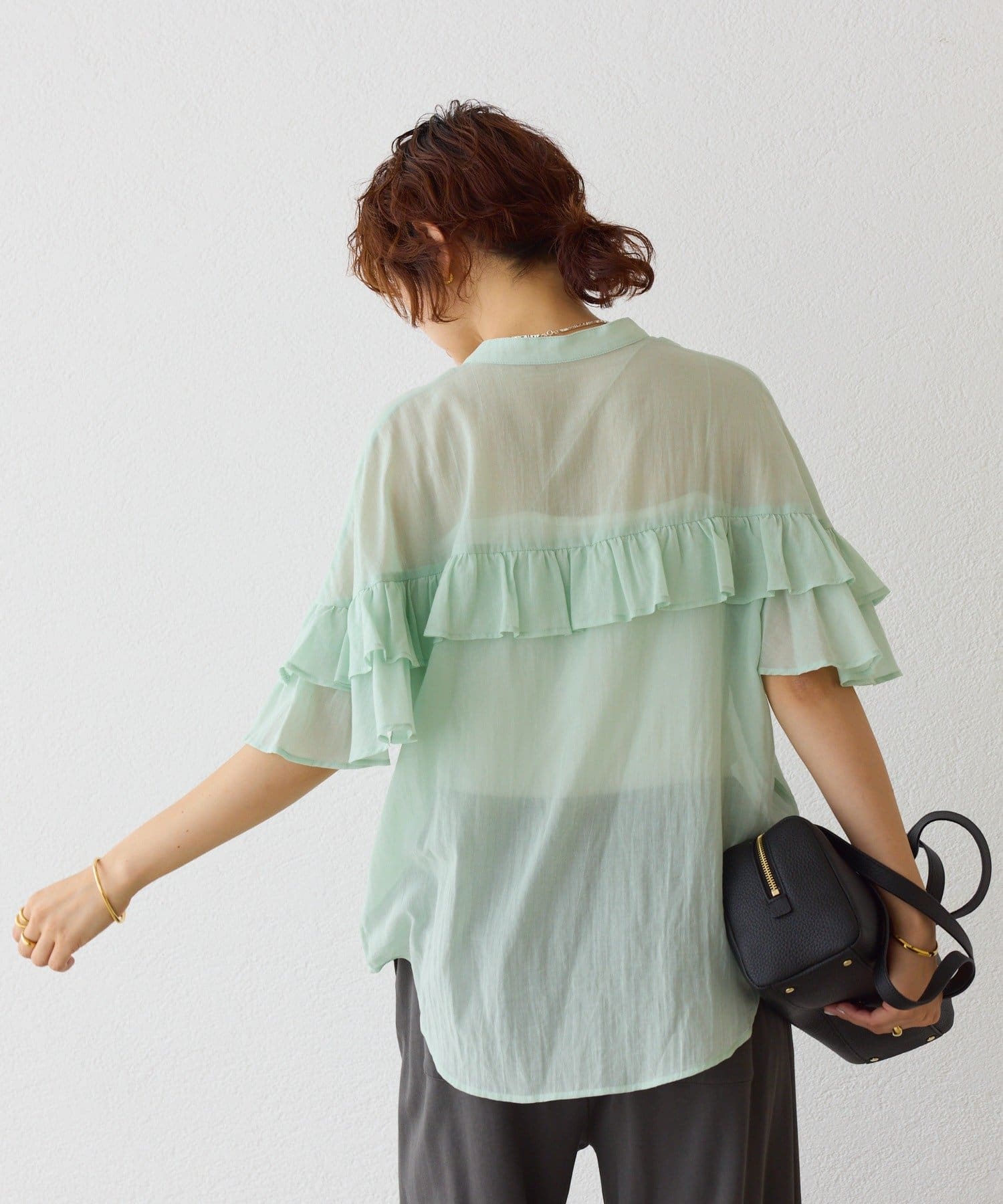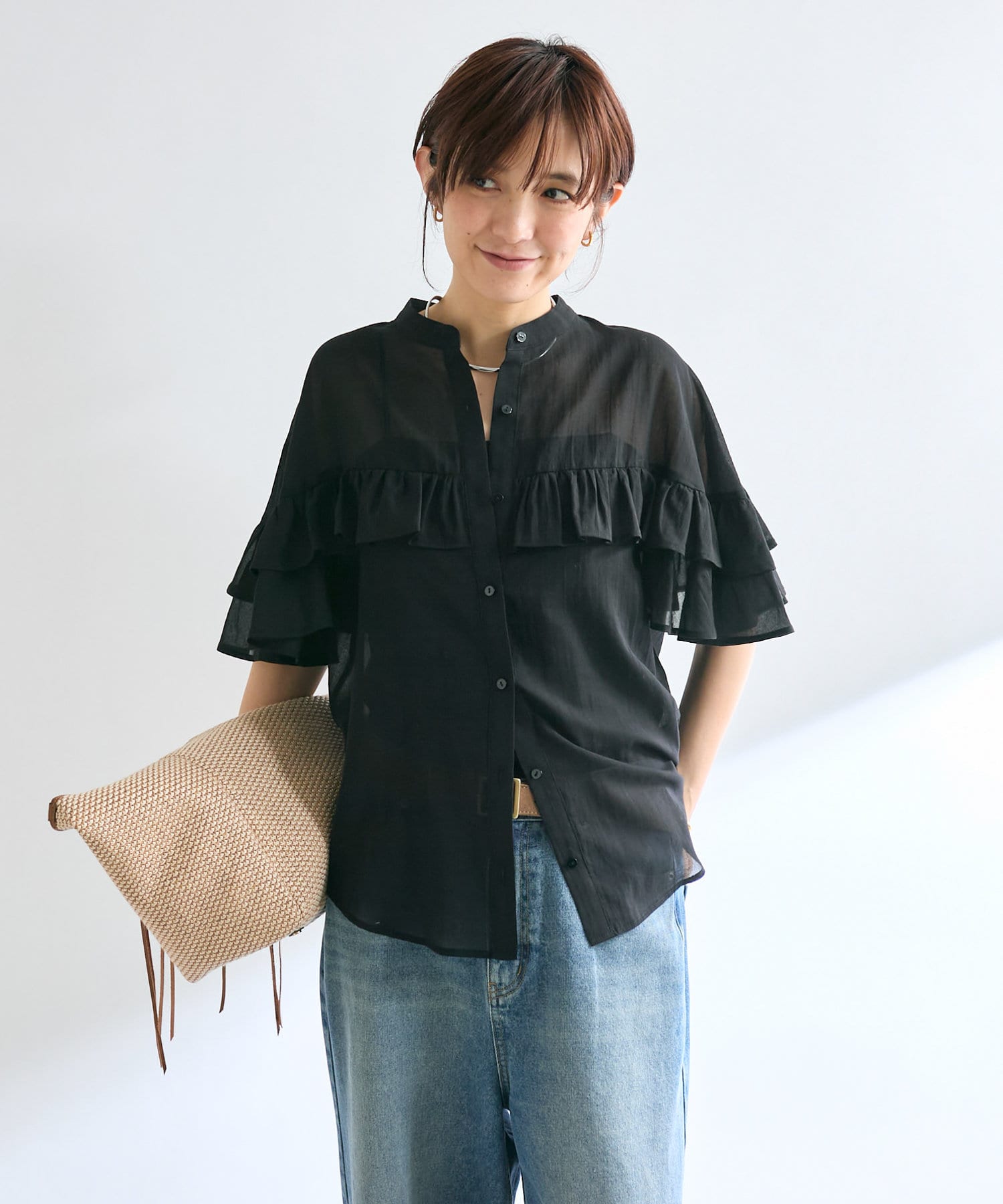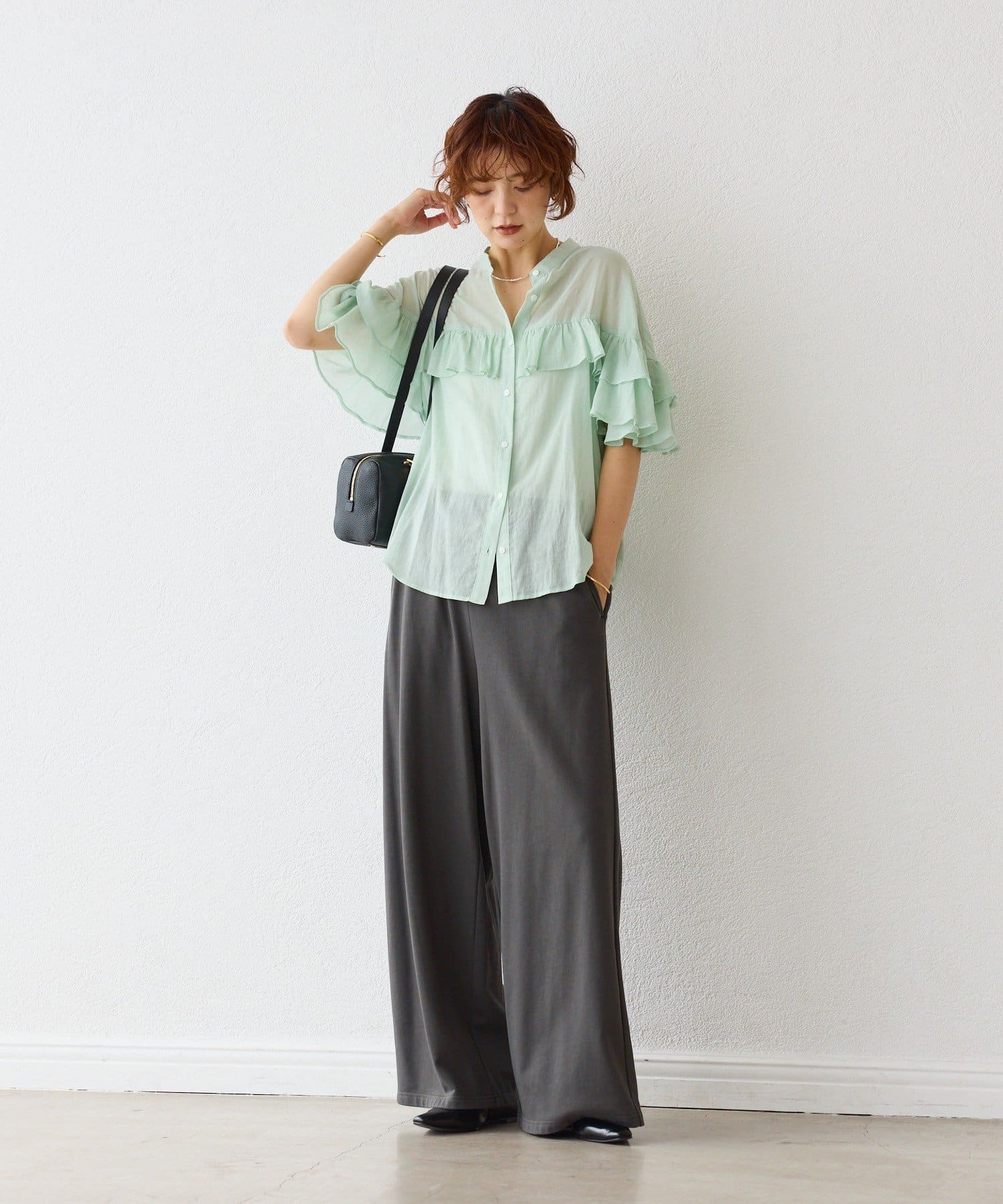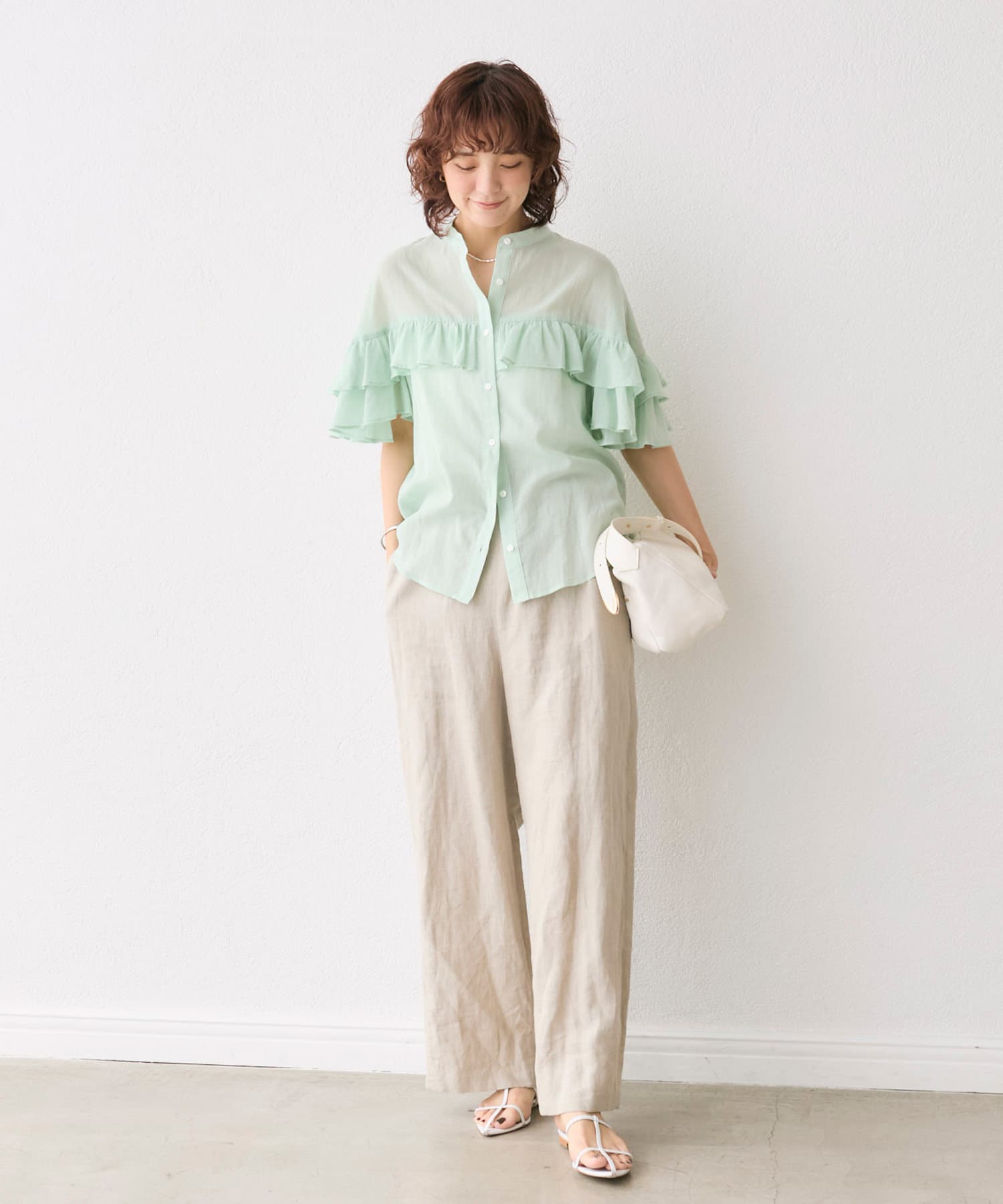 着こなしに繊細な甘さをプラスしてくれるフリルブラウス。