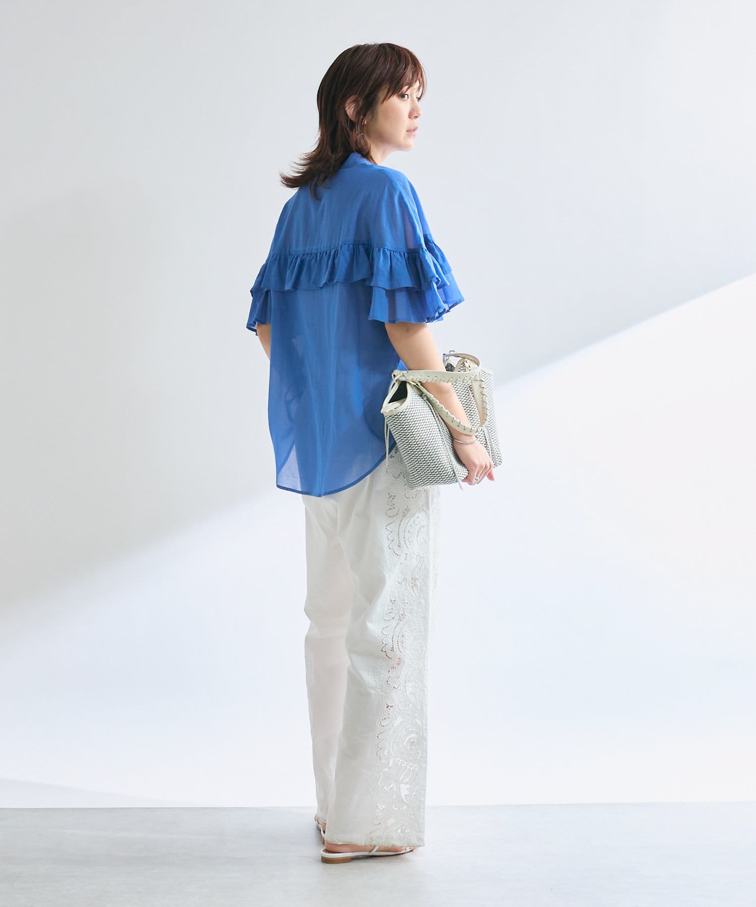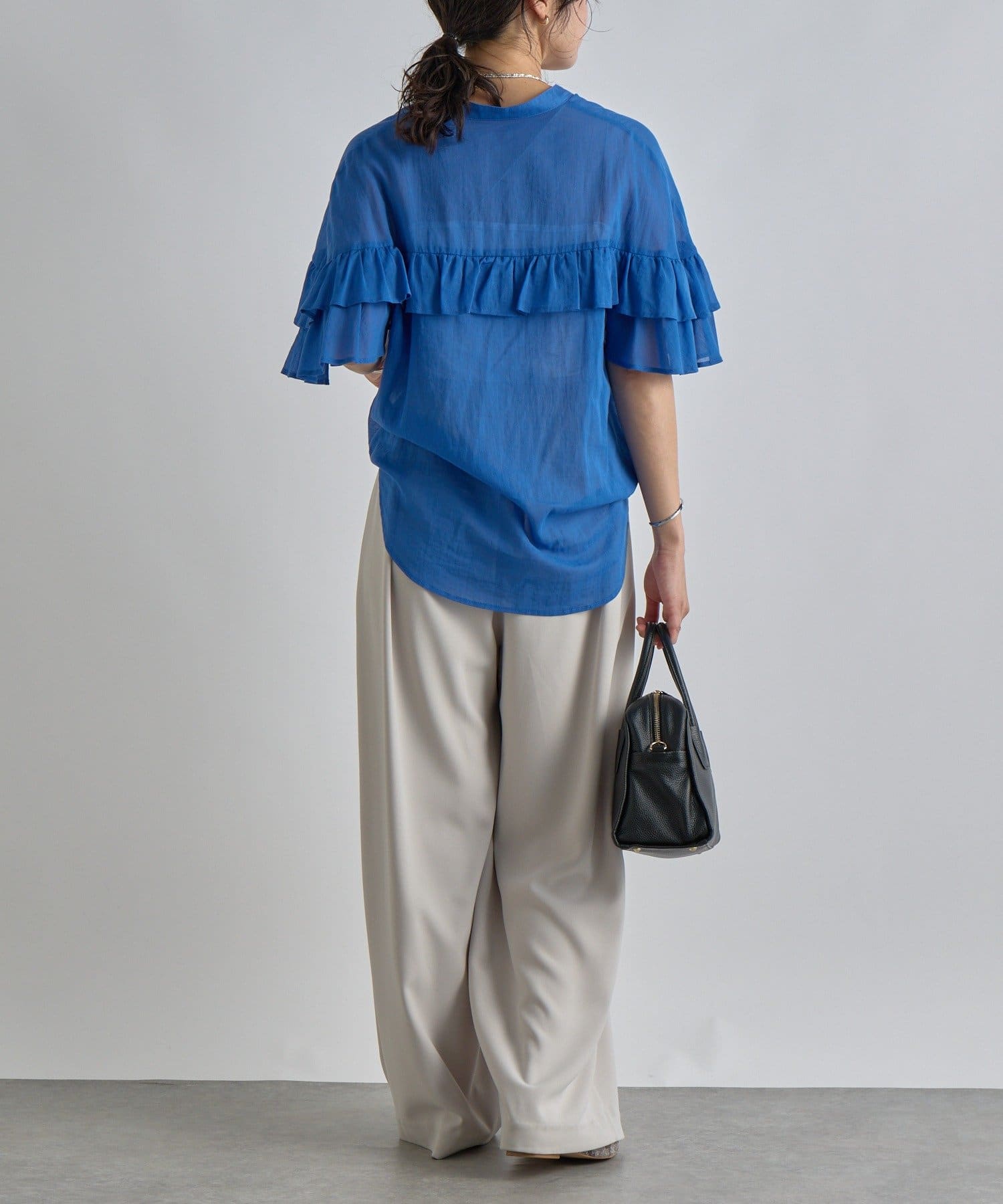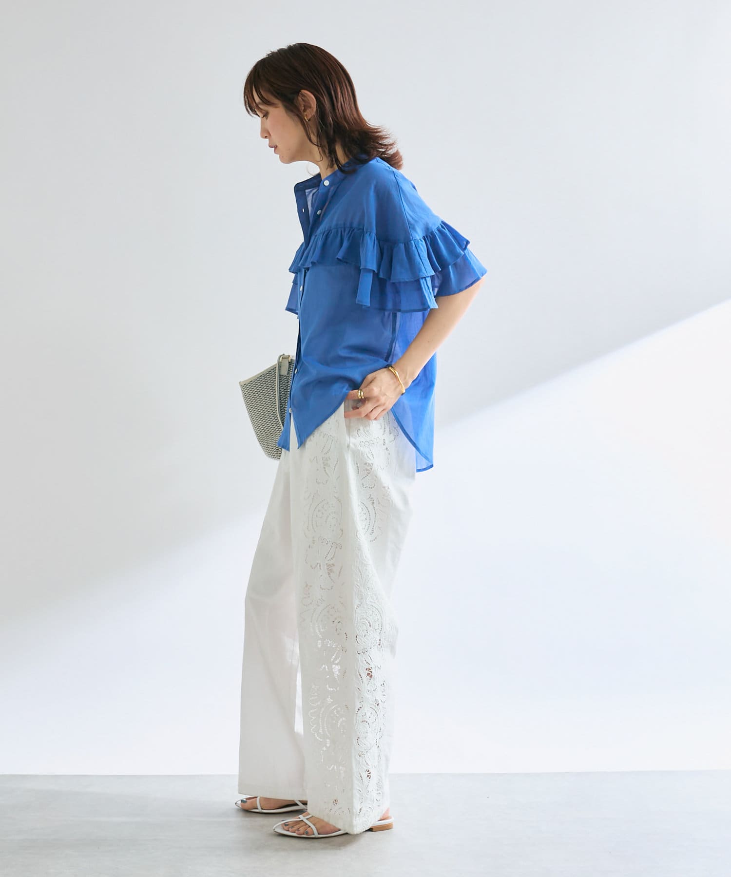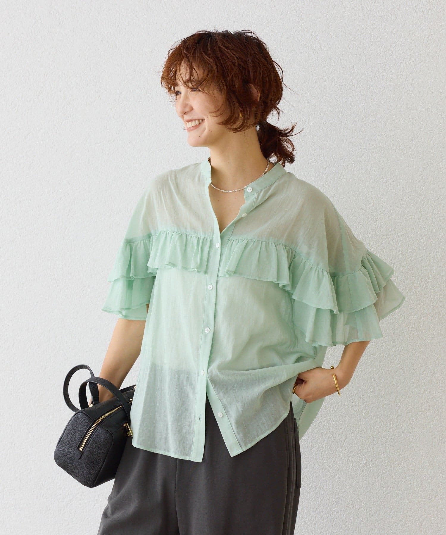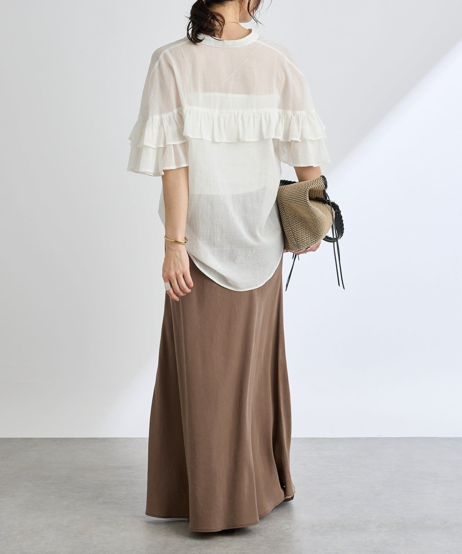 着こなしに繊細な甘さをプラスしてくれるフリルブラウス。