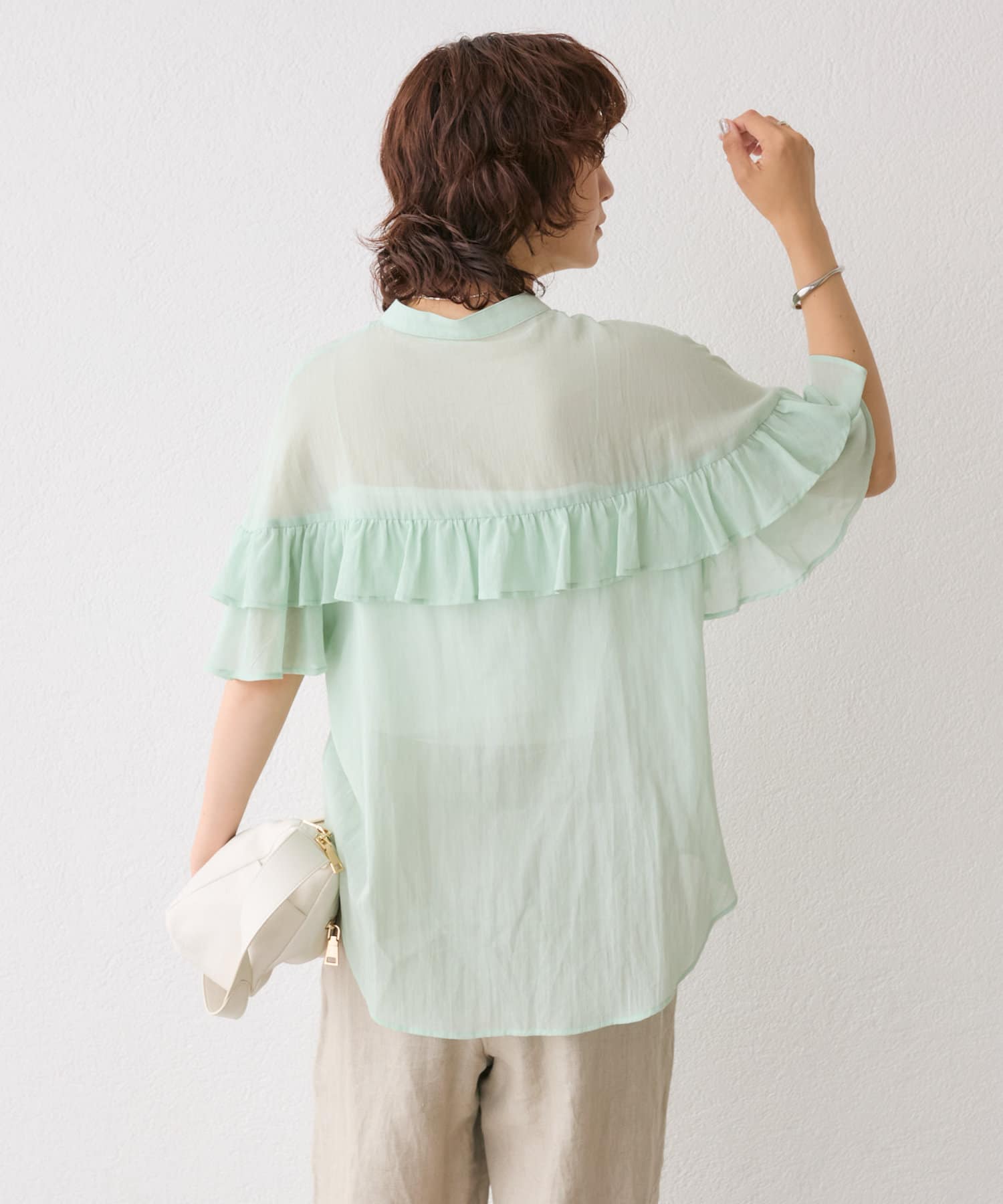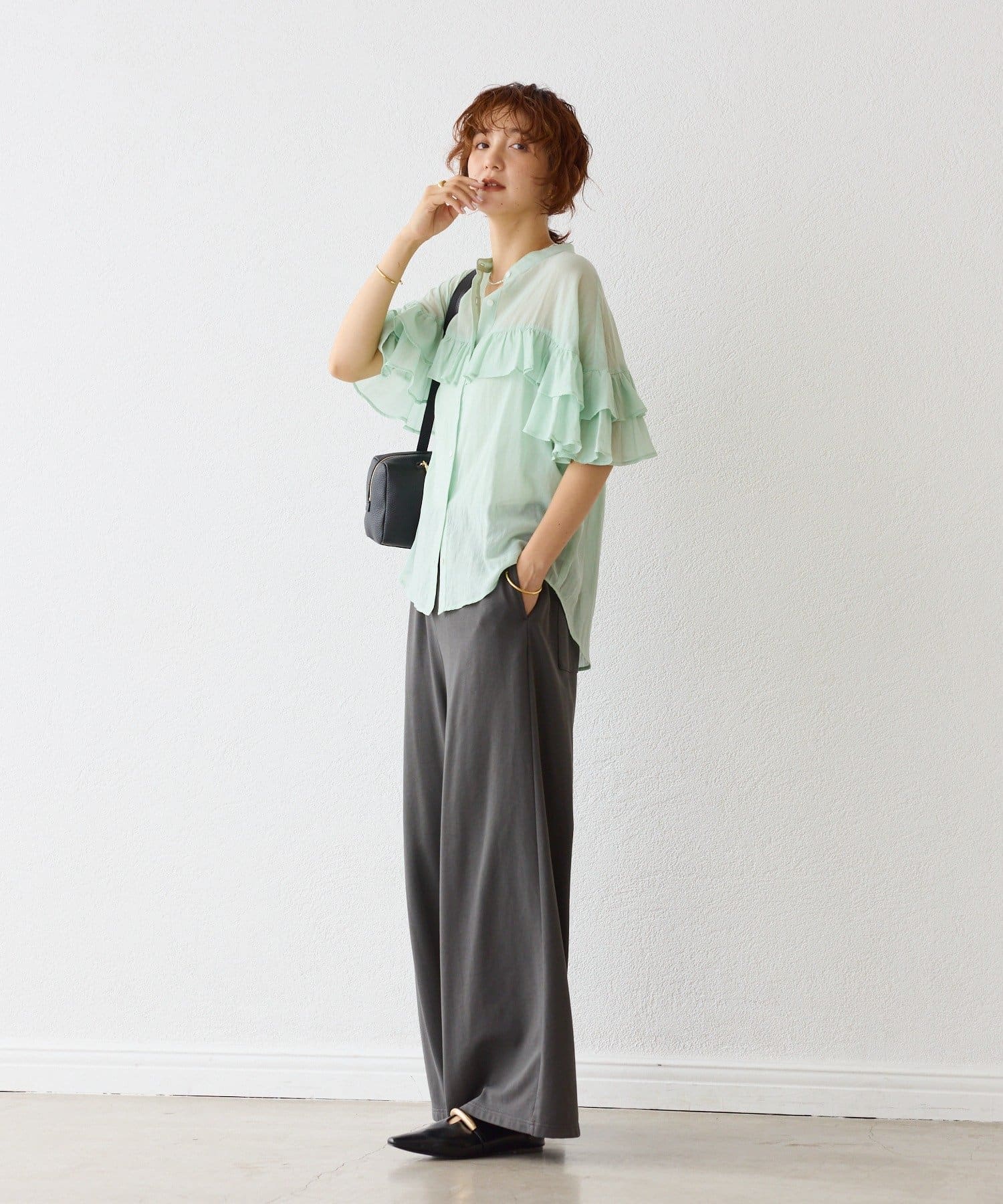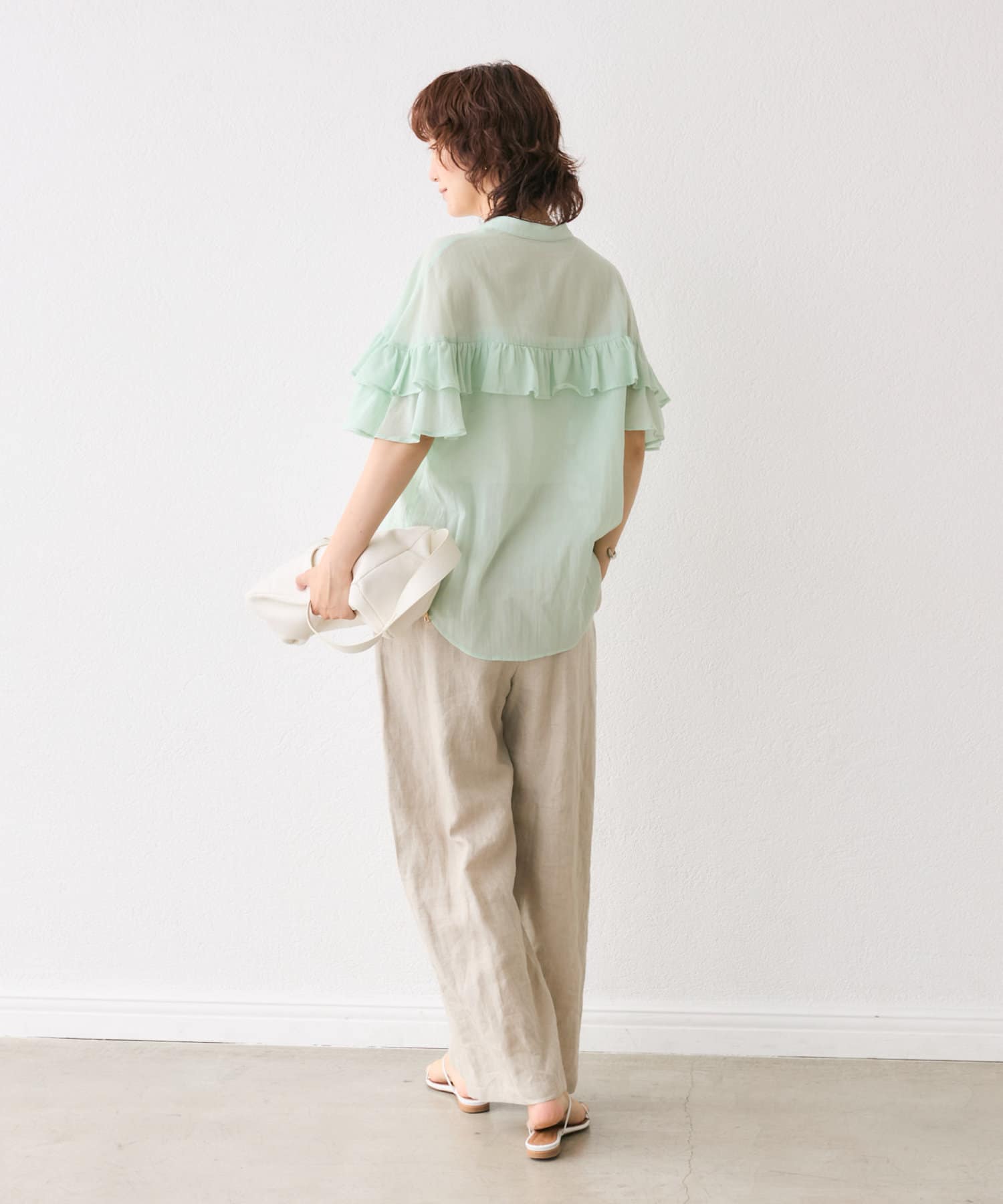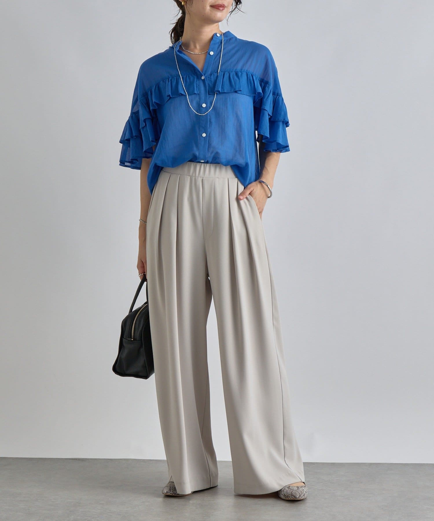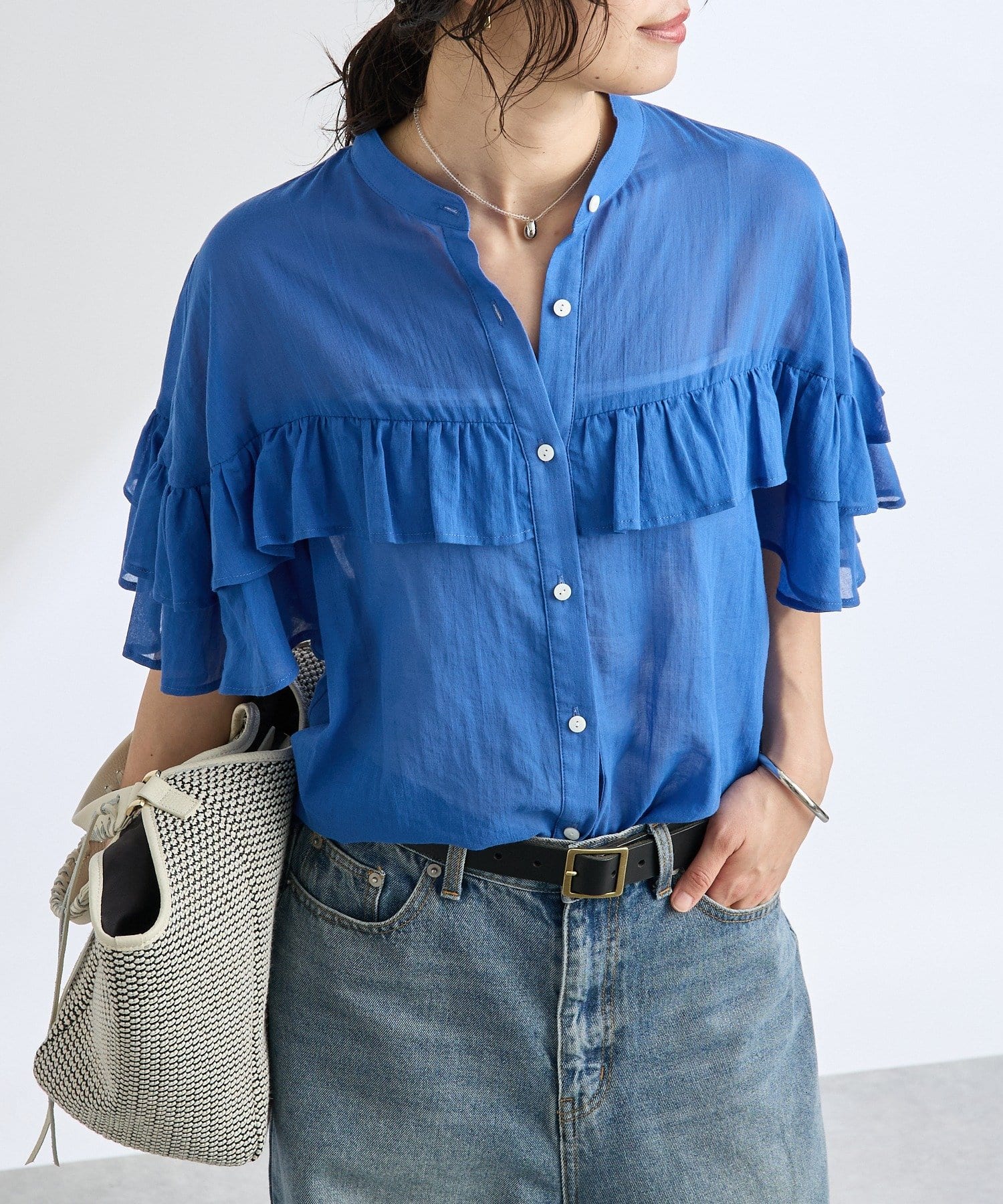 着こなしに繊細な甘さをプラスしてくれるフリルブラウス。