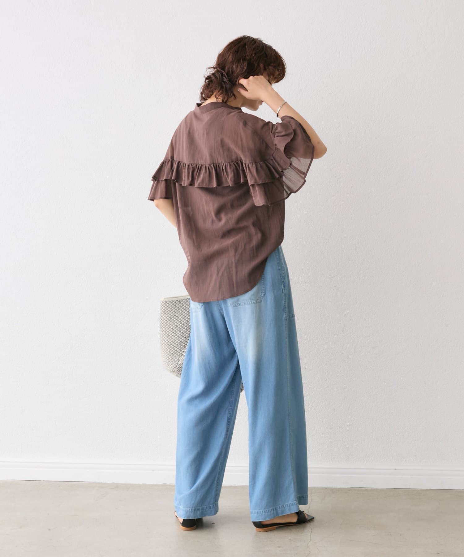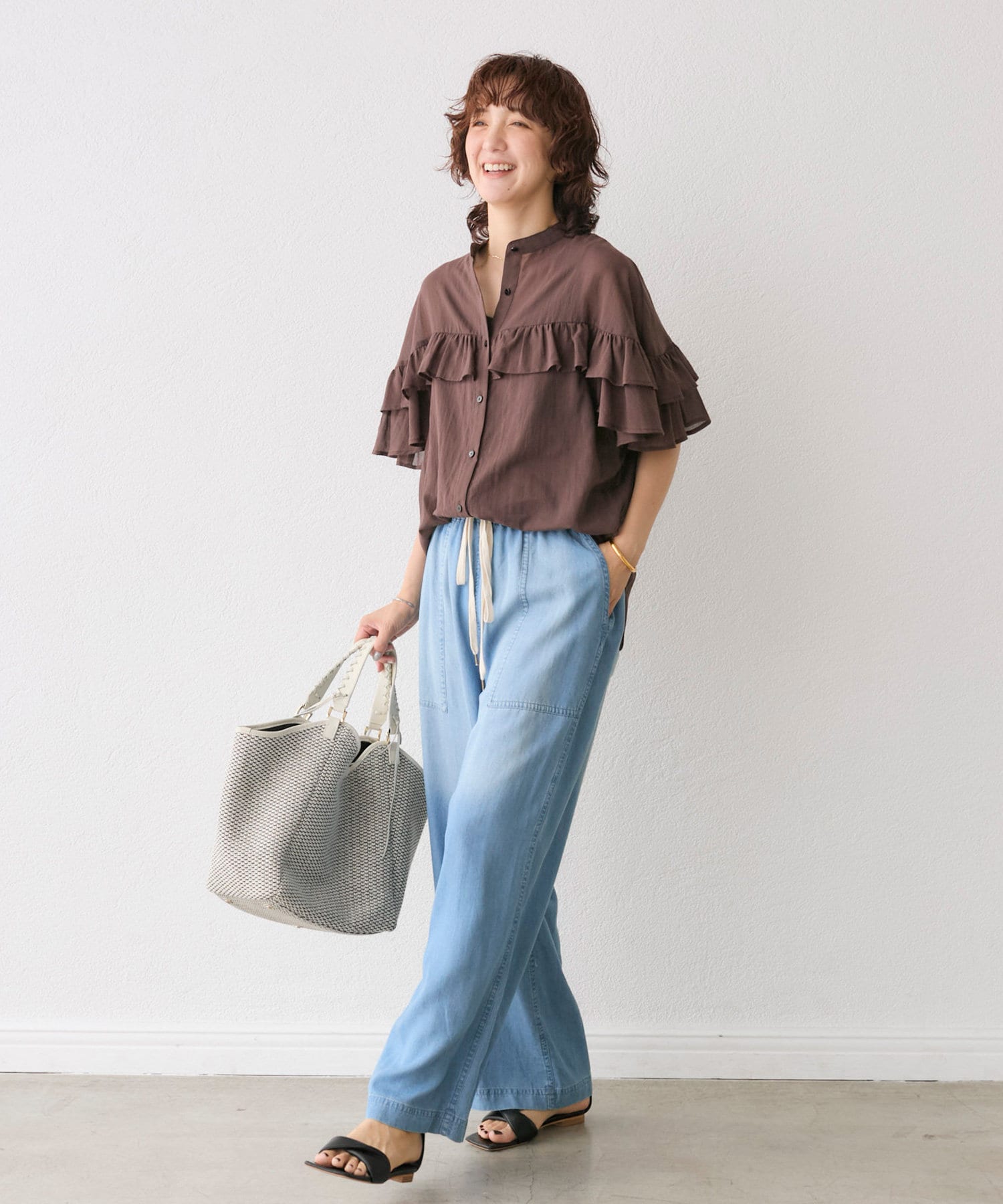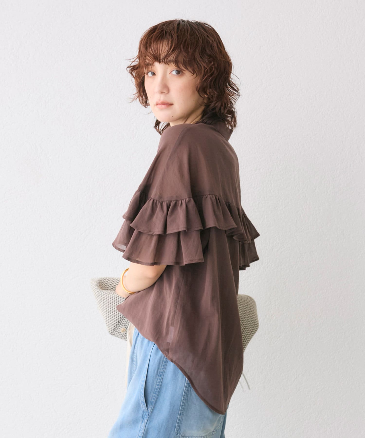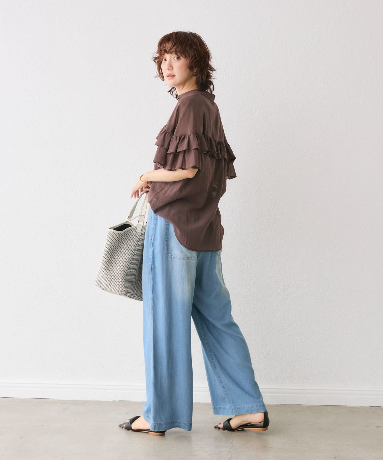 着こなしに繊細な甘さをプラスしてくれるフリルブラウス。