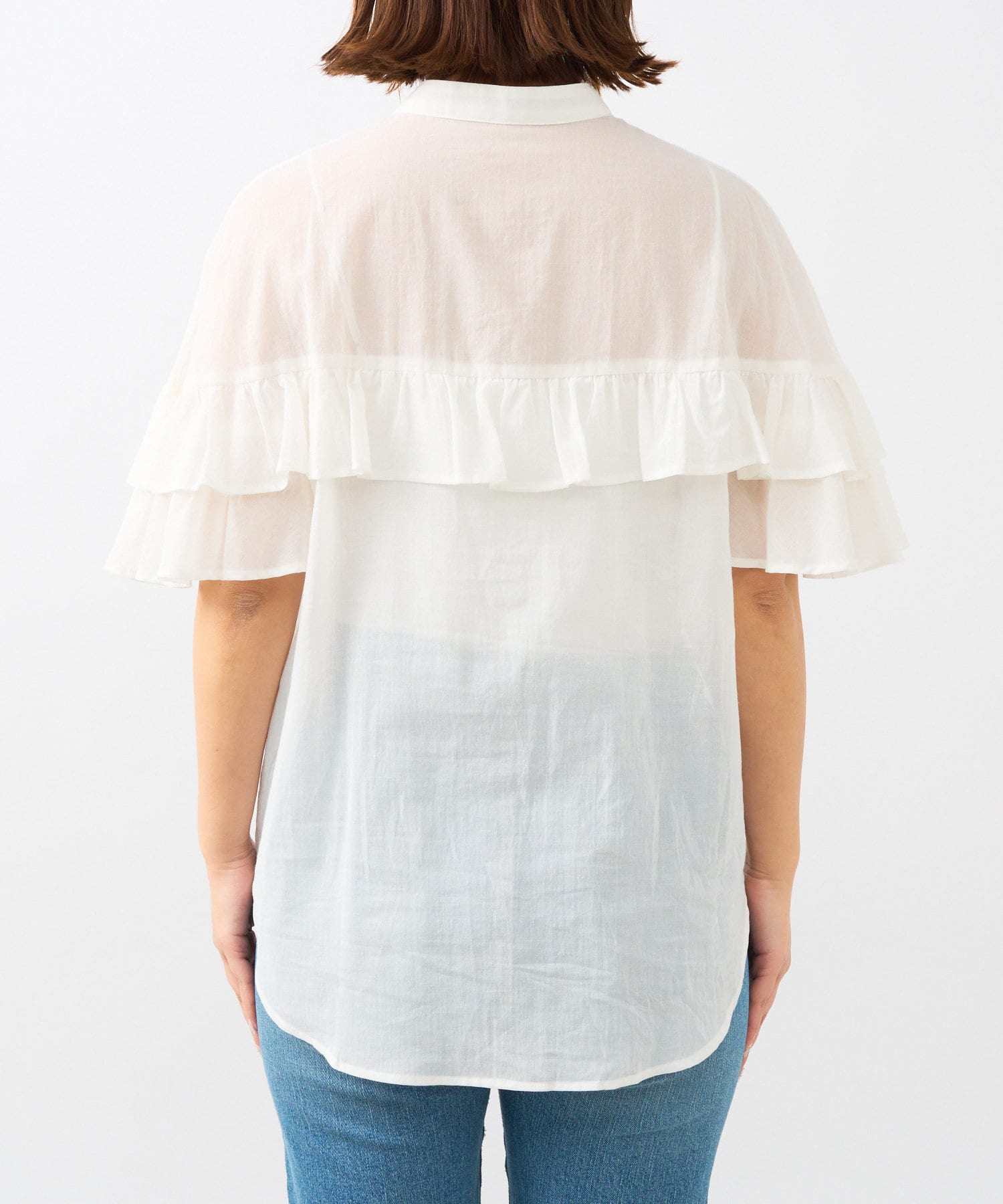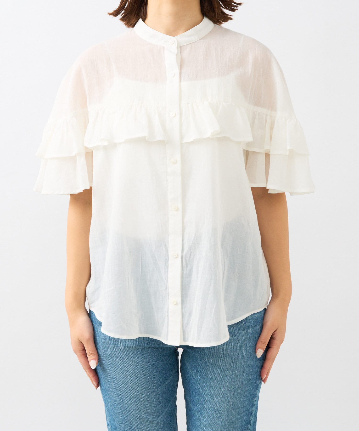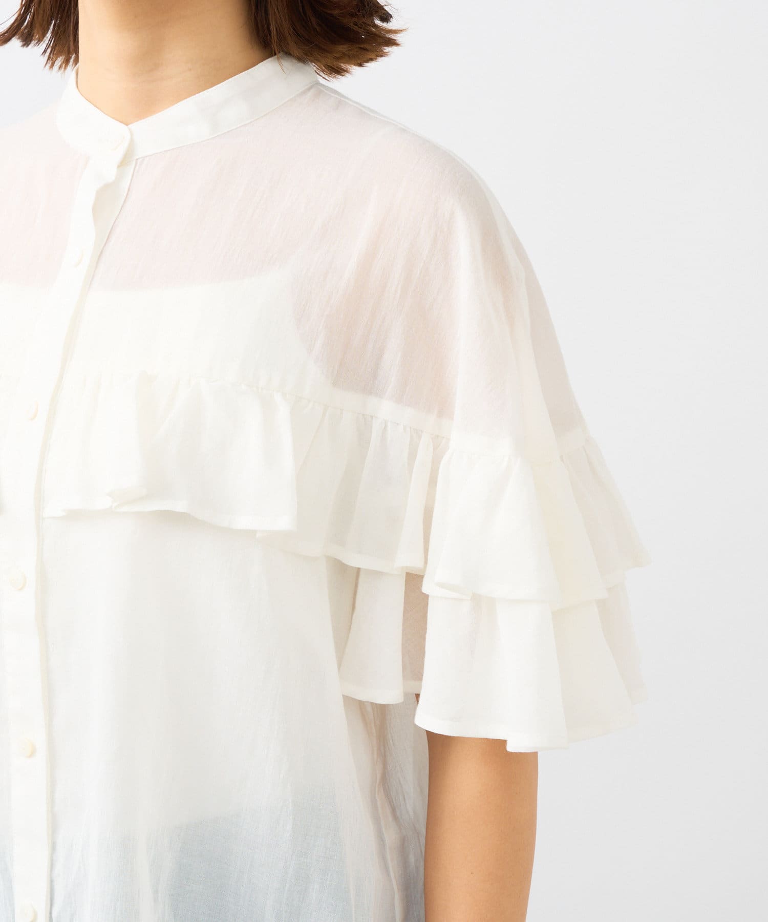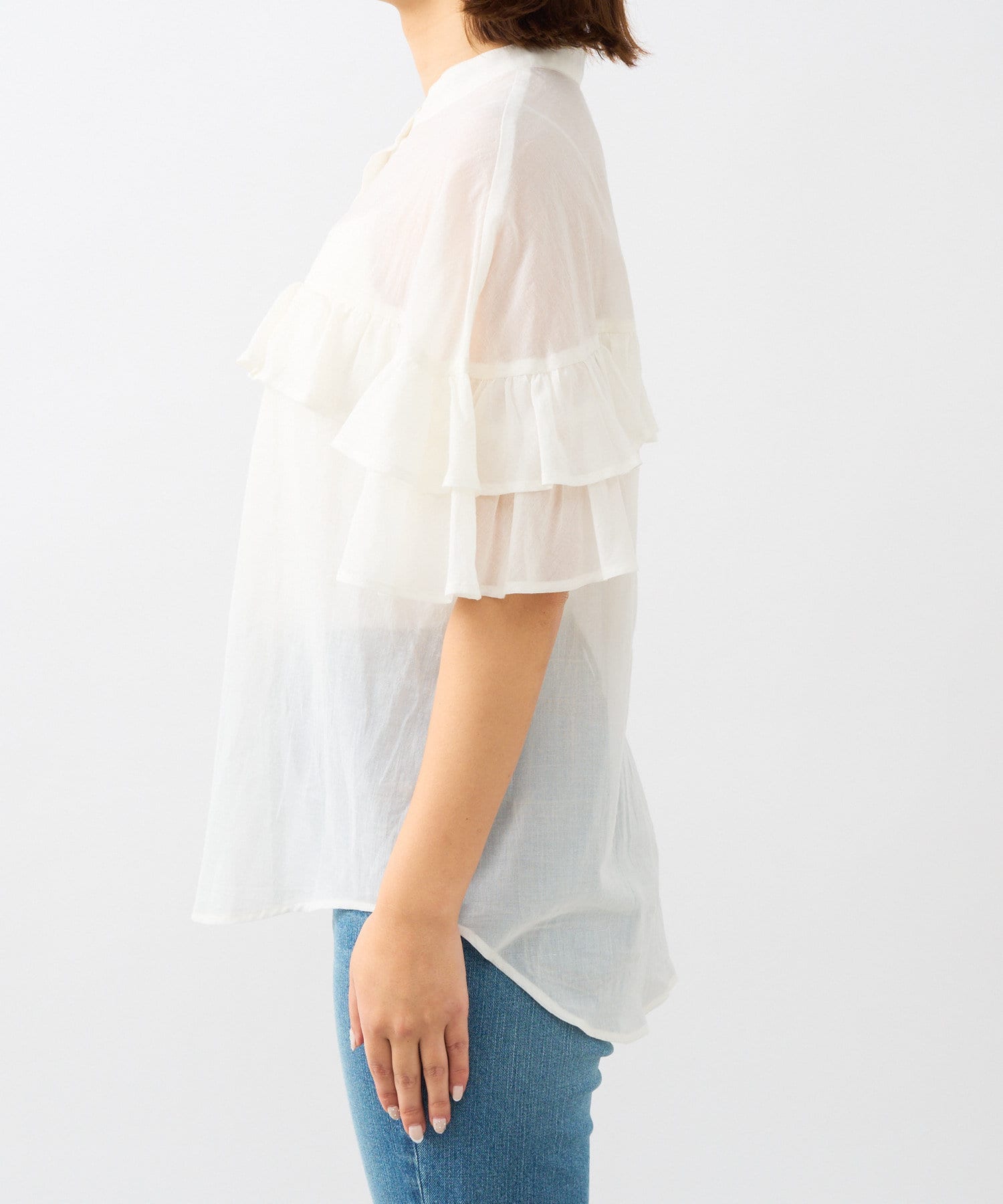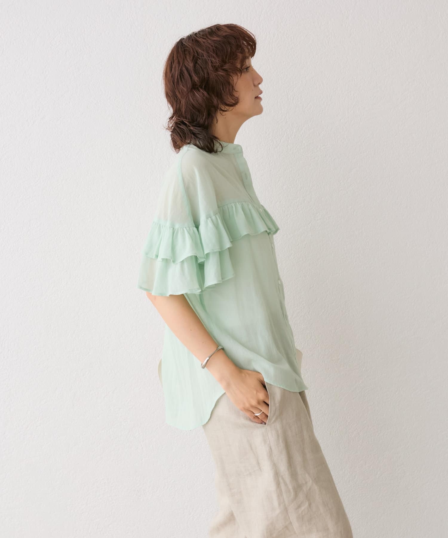 着こなしに繊細な甘さをプラスしてくれるフリルブラウス。