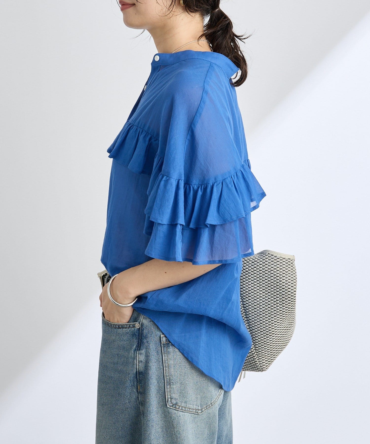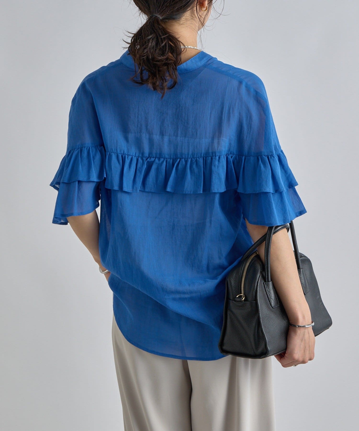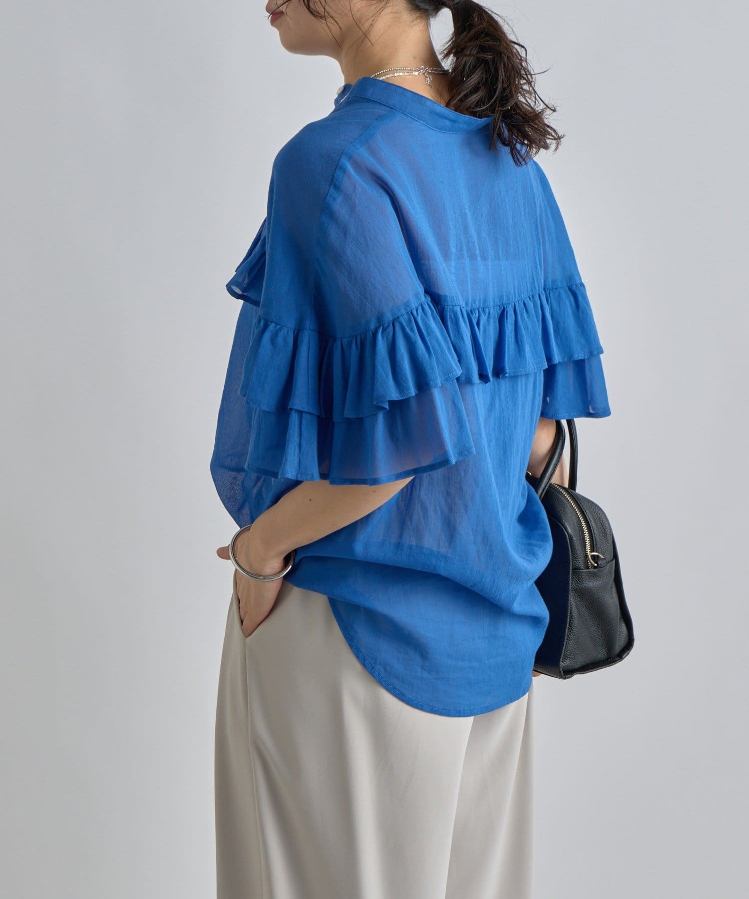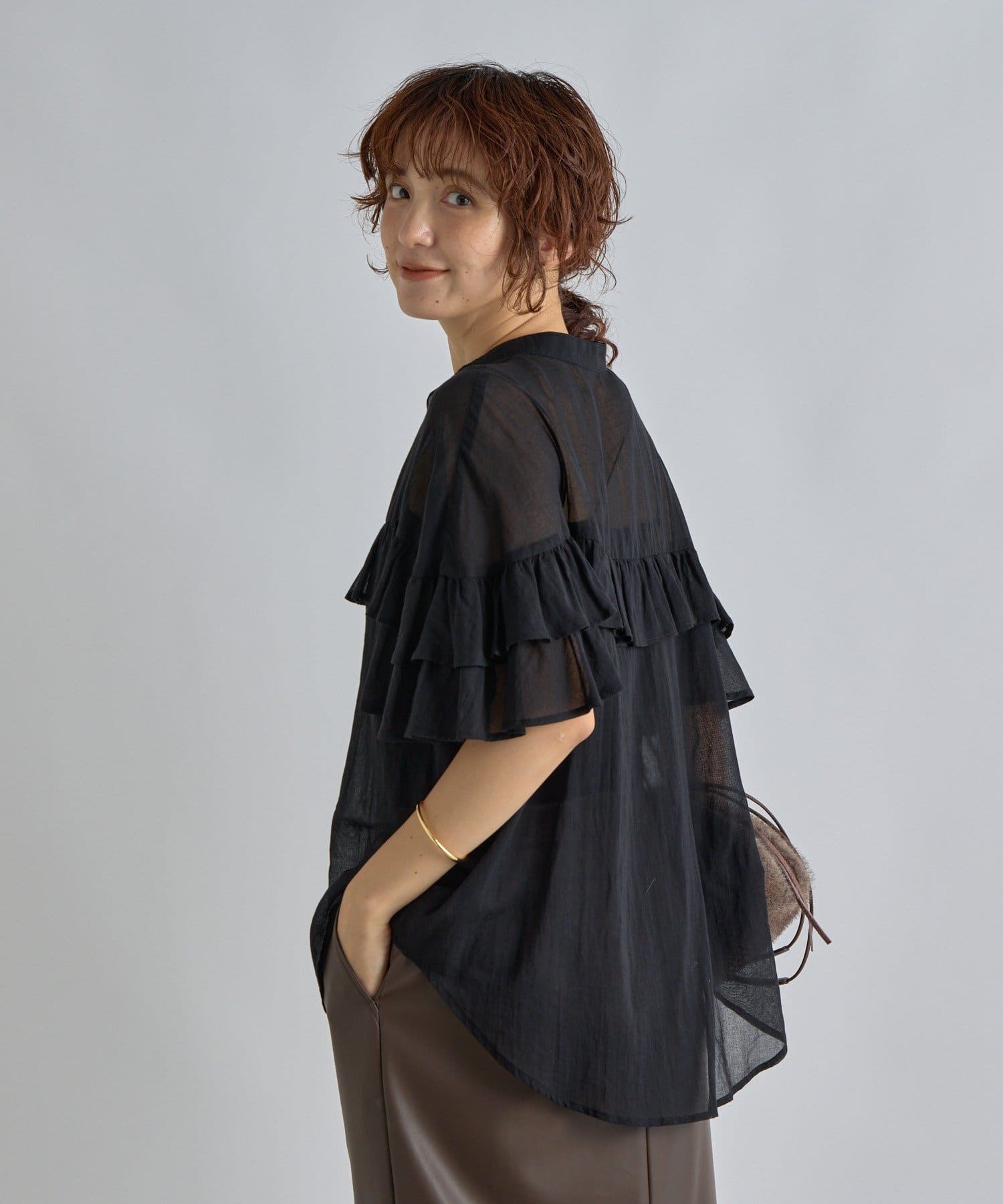【着映え/二の腕カバー】ティアードフリルブラウス